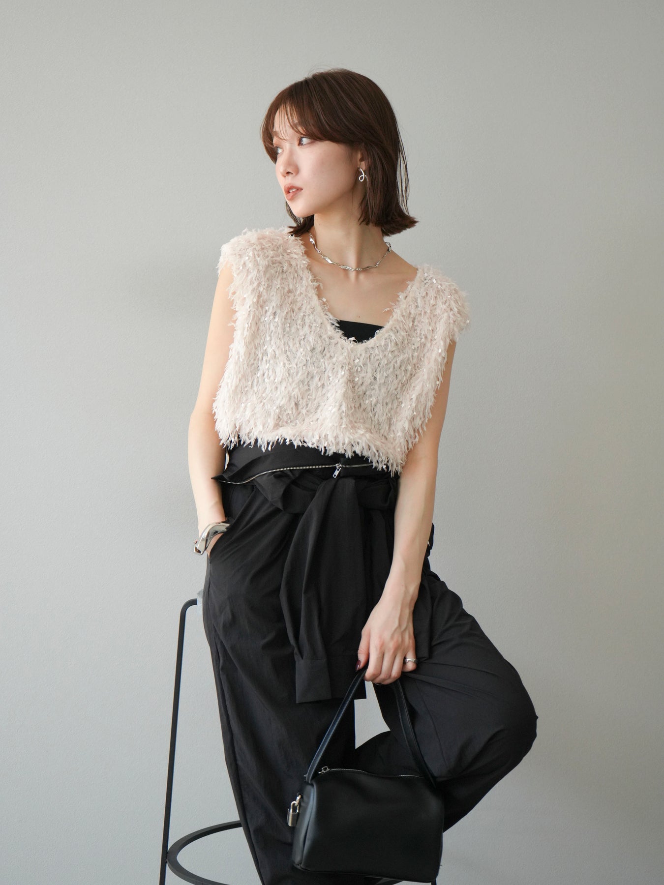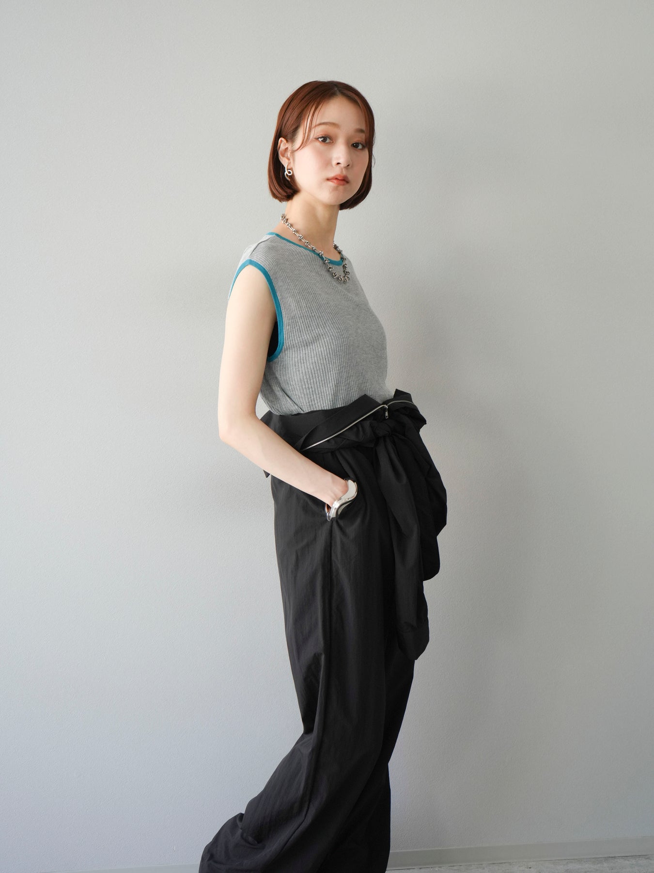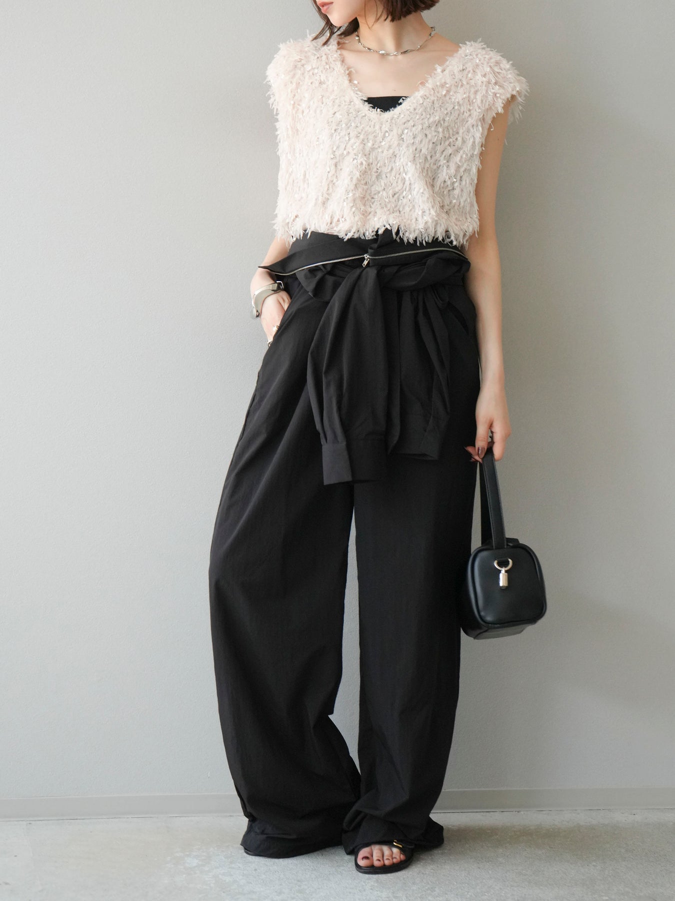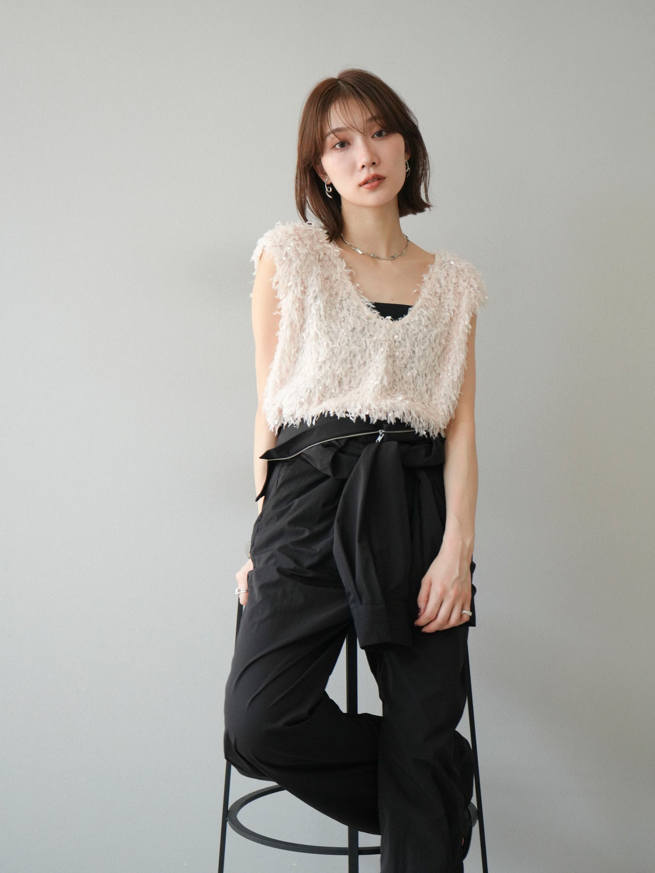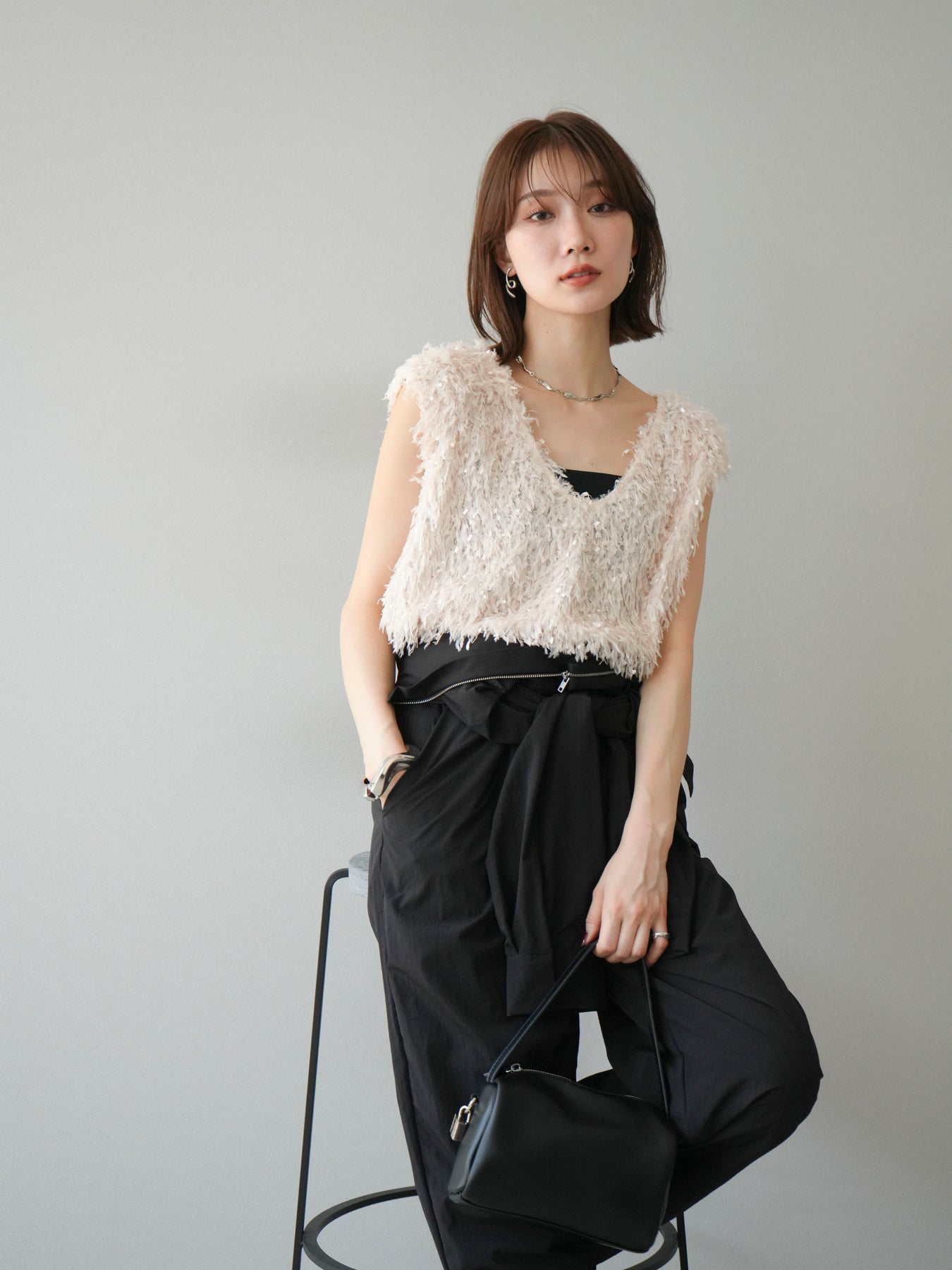 ミニマルなデザインとモード感を兼ね備えたナイロン素材のジャンプスーツ。 軽くしなやかな風合いで、ワイドなシルエットがこなれた印象を与えてくれます。 ウエストの共布ベルトでシルエットの調整も可能。 1枚でサマになる主役アイテムとして、デイリーにも旅行やお出かけにも活躍します。