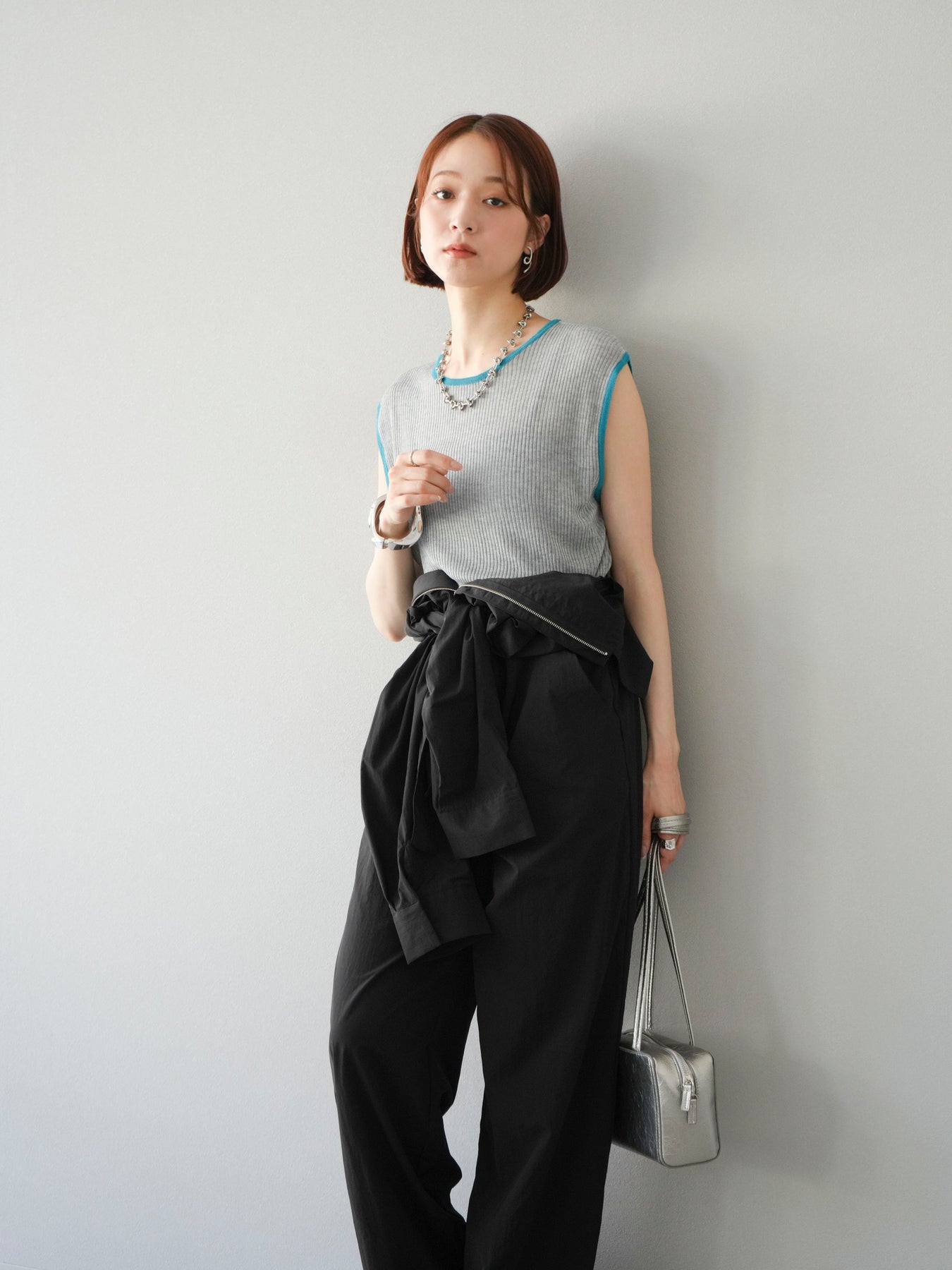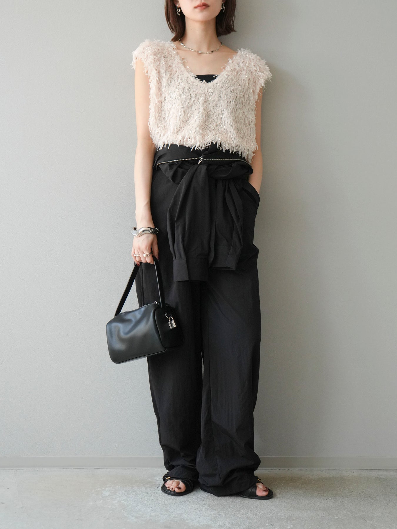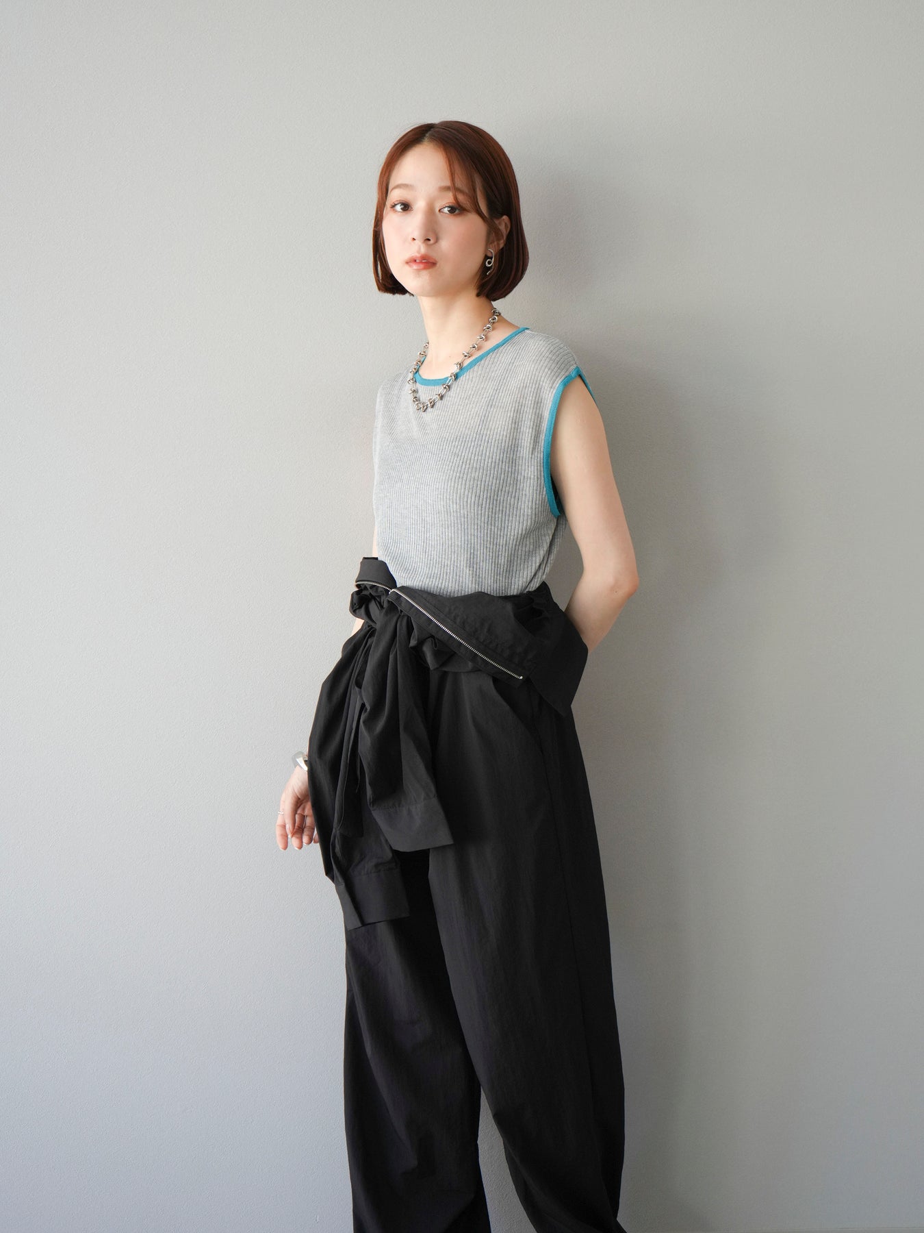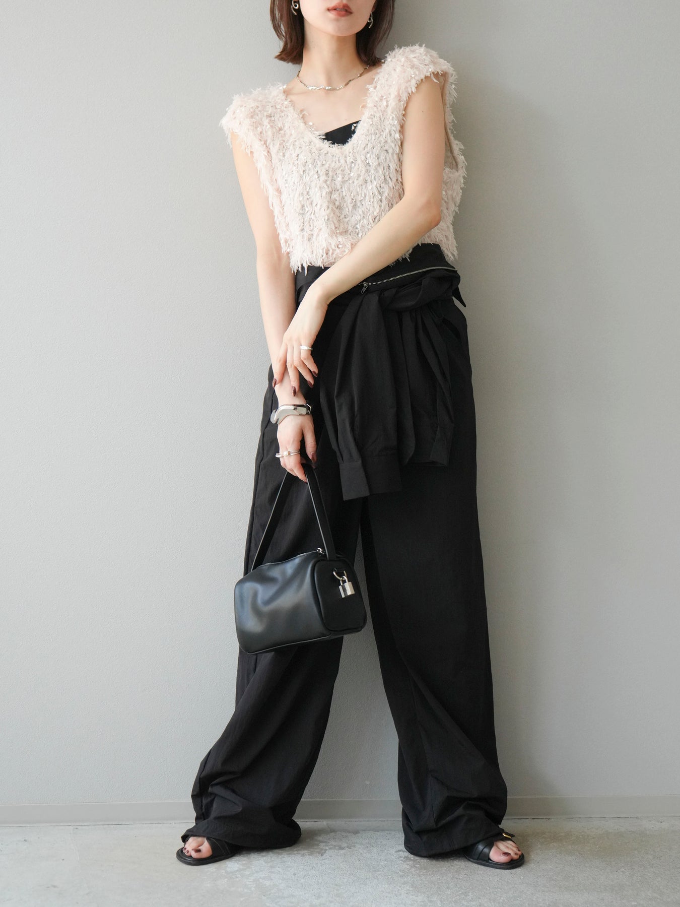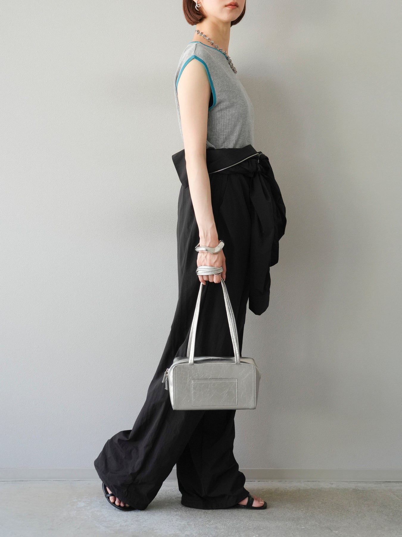 ・お手入れ方法:手洗い水温30℃以下、おしゃれ着用液体洗剤または中性洗剤のご使用をお薦めします。素材の特性上、洗濯の際に色落ちが生じる恐れがありますので単独で・短時間でのお洗濯をお薦めします。洗濯後は形を整えてから陰干ししてください。アイロンはご使用いただけません。※タンブラー乾燥は控え、色物とは分けてください。濡れたままの状態で擦れると、色落ち色移りすることがあります。つけ置き洗いや雨や汗で濡れたまま放置は避け、速やかに処理してください。着用中の摩擦や汗、水濡れ、濃淡差があるものとの重ね着にご注意ください。