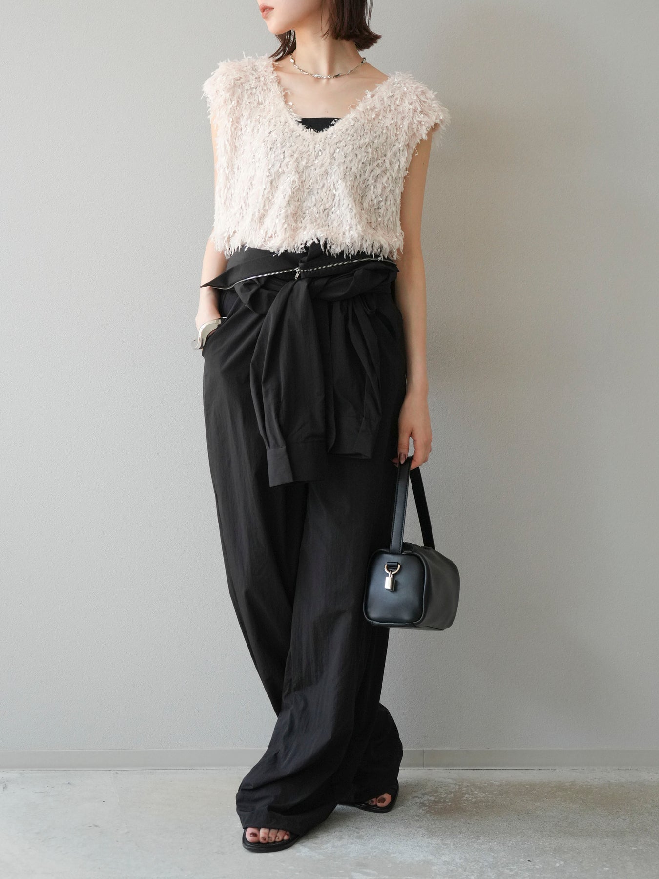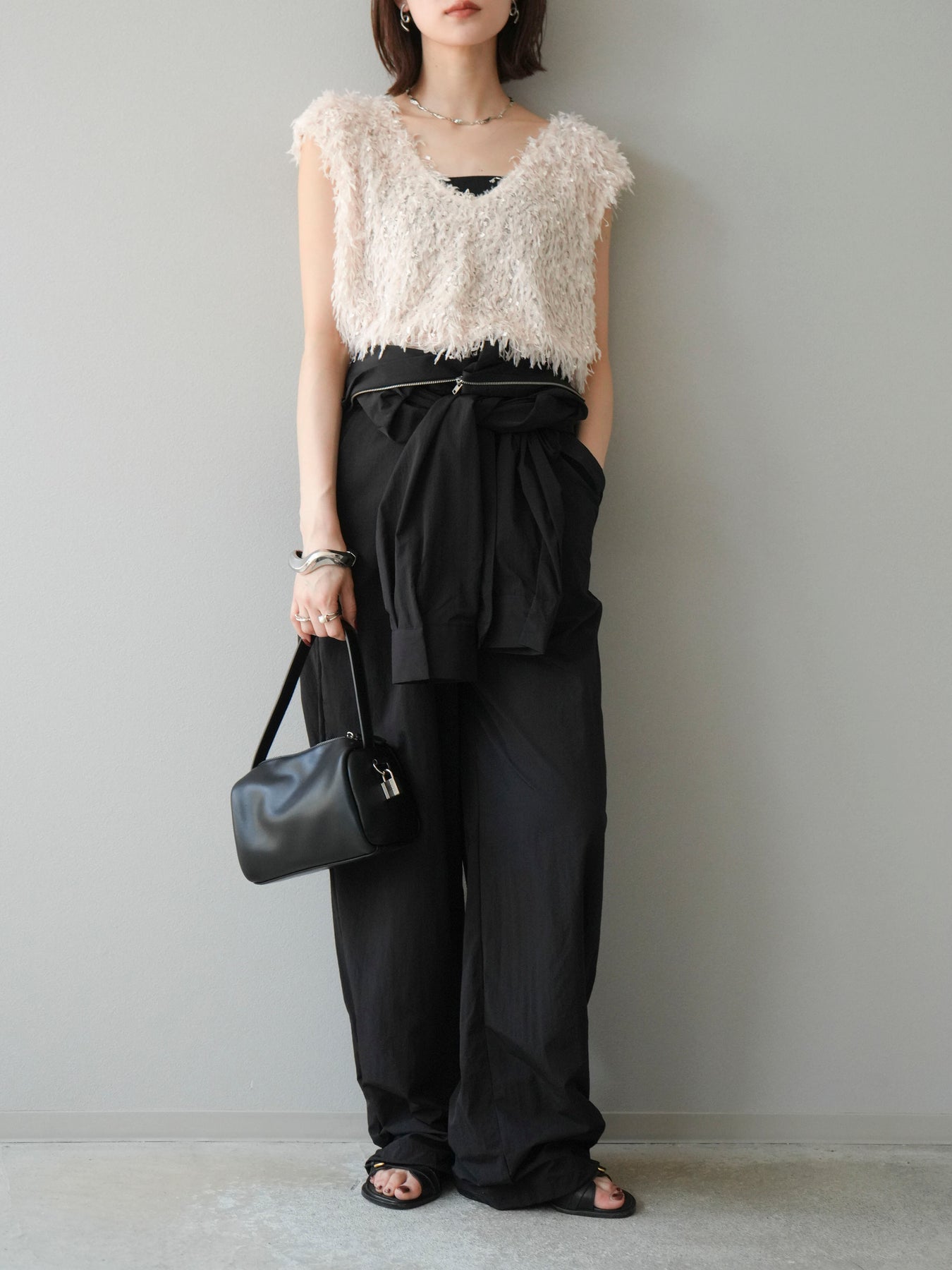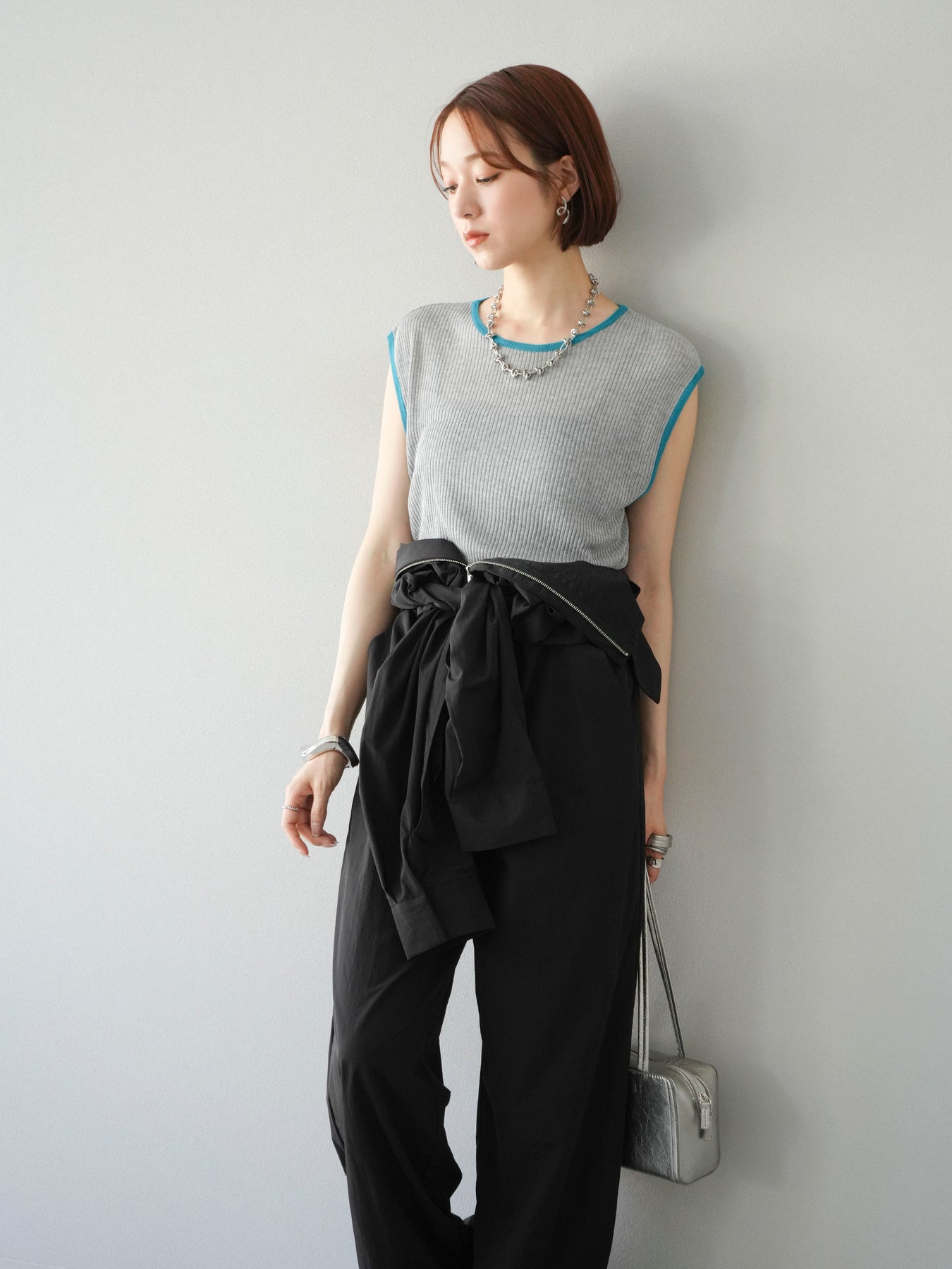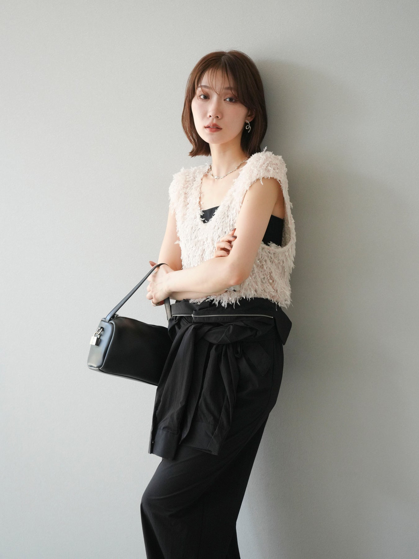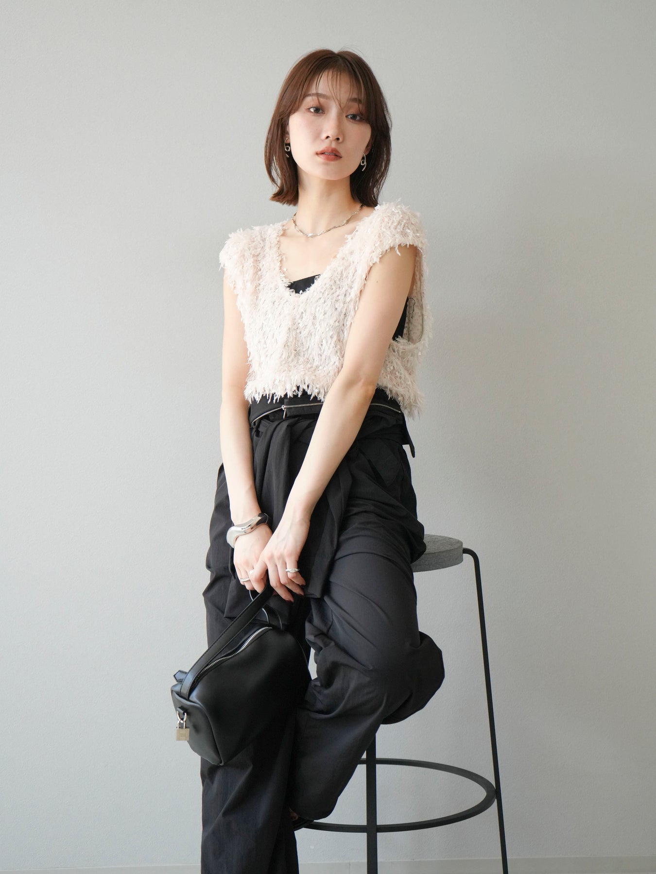 ・お手入れ方法:手洗い水温30℃以下、おしゃれ着用液体洗剤または中性洗剤のご使用をお薦めします。素材の特性上、洗濯の際に色落ちが生じる恐れがありますので単独で・短時間でのお洗濯をお薦めします。洗濯後は形を整えてから陰干ししてください。アイロンはご使用いただけません。※タンブラー乾燥は控え、色物とは分けてください。濡れたままの状態で擦れると、色落ち色移りすることがあります。つけ置き洗いや雨や汗で濡れたまま放置は避け、速やかに処理してください。着用中の摩擦や汗、水濡れ、濃淡差があるものとの重ね着にご注意ください。
