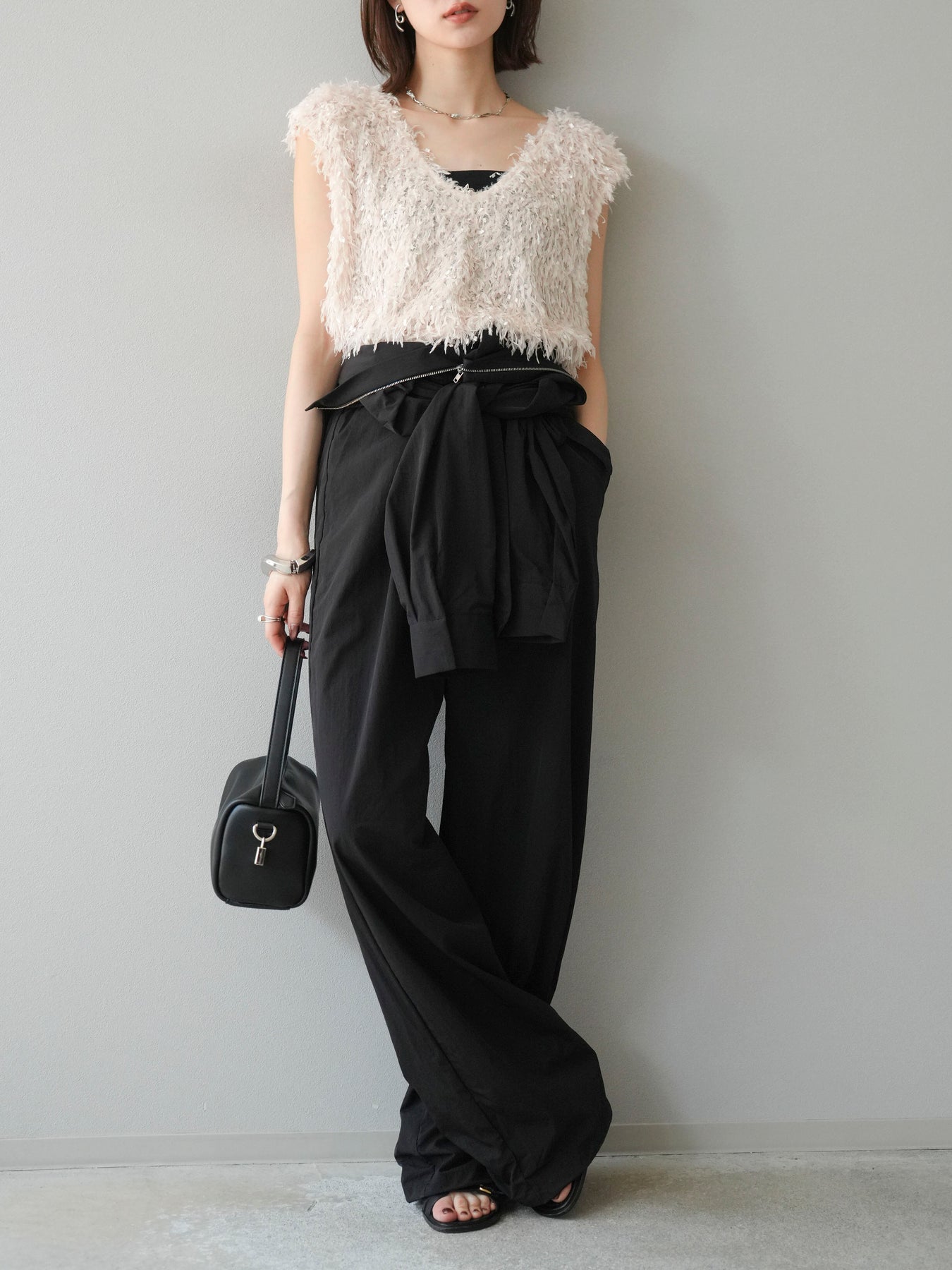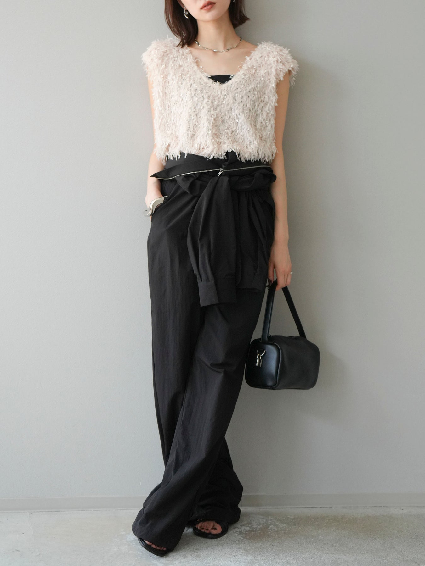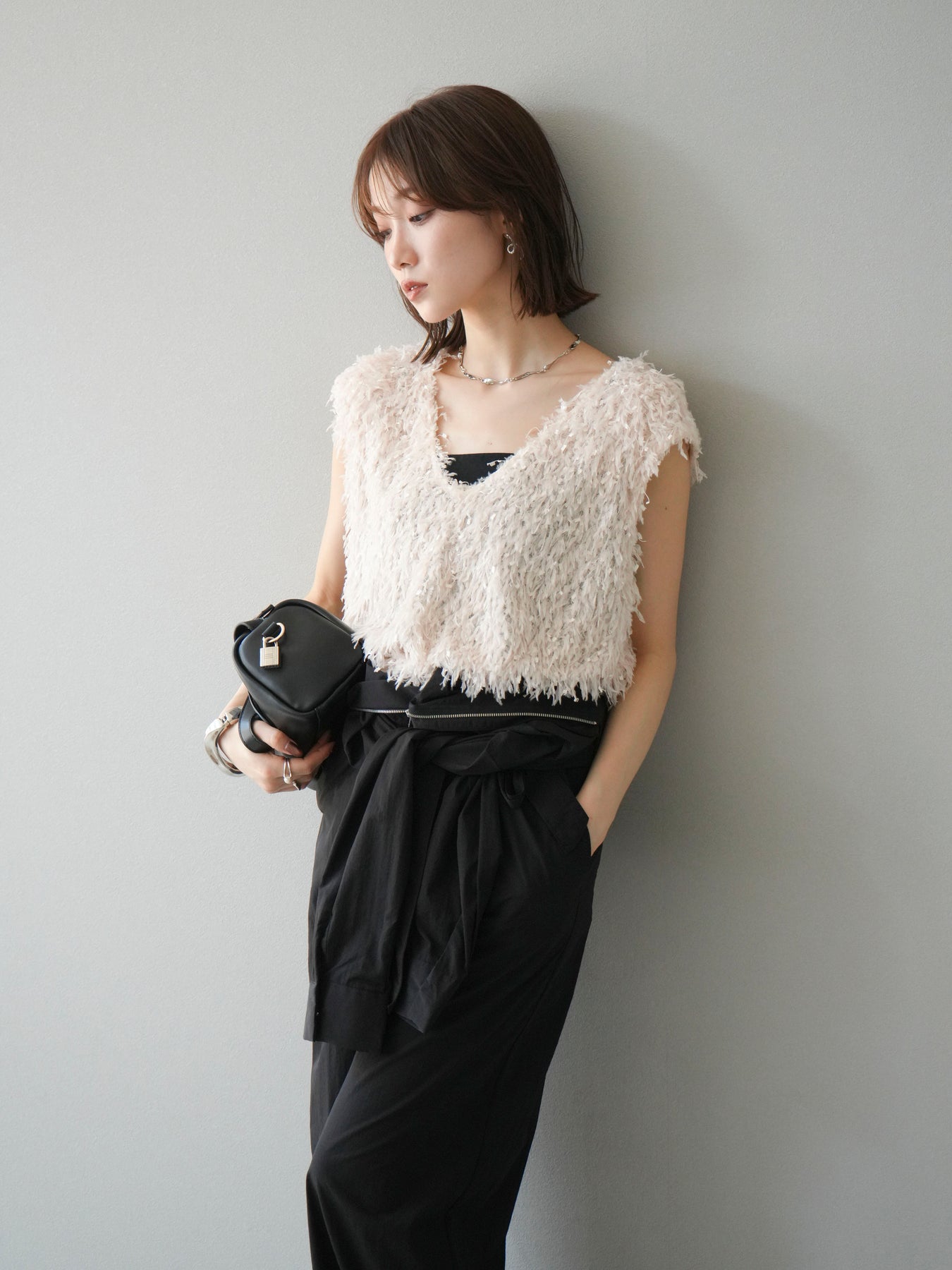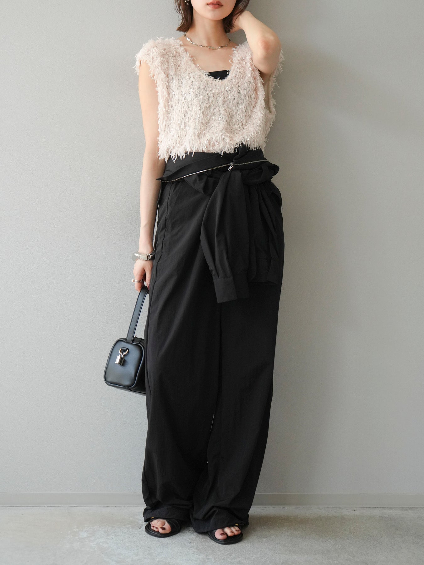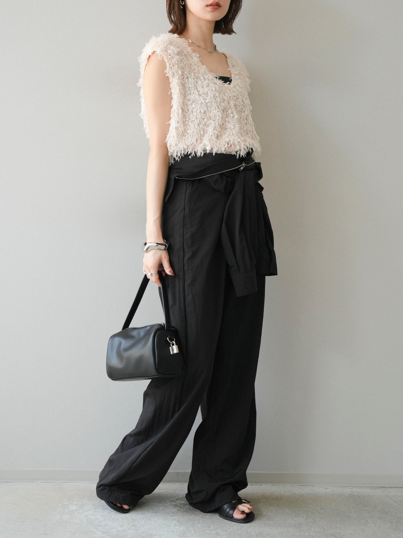 ・お手入れ方法:手洗い水温30℃以下、おしゃれ着用液体洗剤または中性洗剤のご使用をお薦めします。素材の特性上、洗濯の際に色落ちが生じる恐れがありますので単独で・短時間でのお洗濯をお薦めします。洗濯後は形を整えてから陰干ししてください。アイロンはご使用いただけません。※タンブラー乾燥は控え、色物とは分けてください。濡れたままの状態で擦れると、色落ち色移りすることがあります。つけ置き洗いや雨や汗で濡れたまま放置は避け、速やかに処理してください。着用中の摩擦や汗、水濡れ、濃淡差があるものとの重ね着にご注意ください。