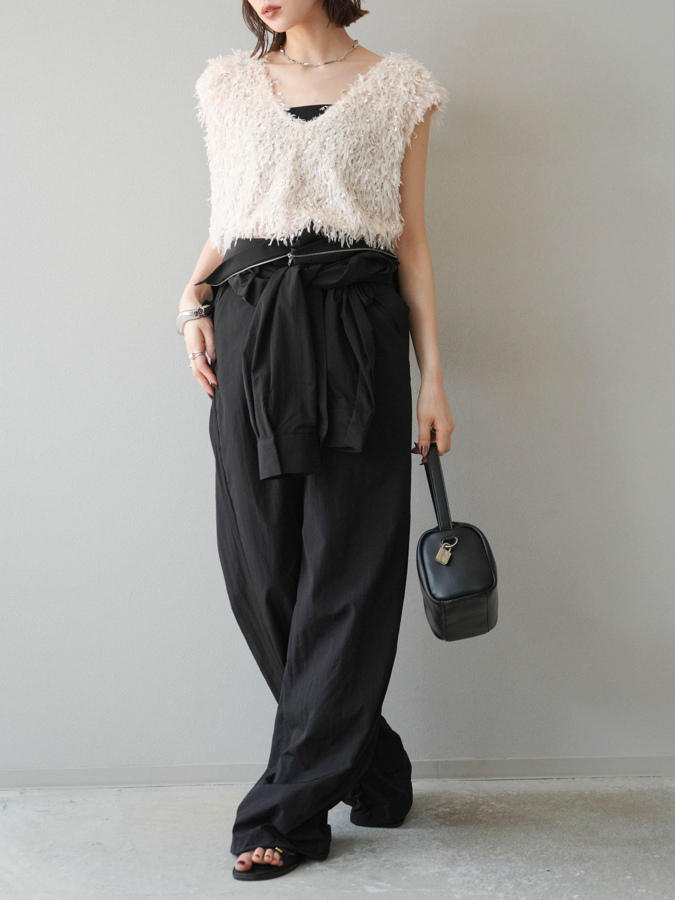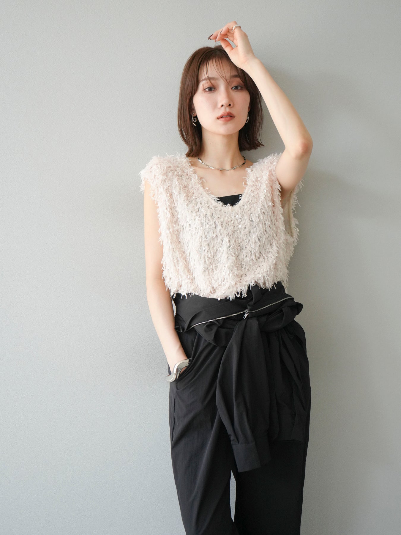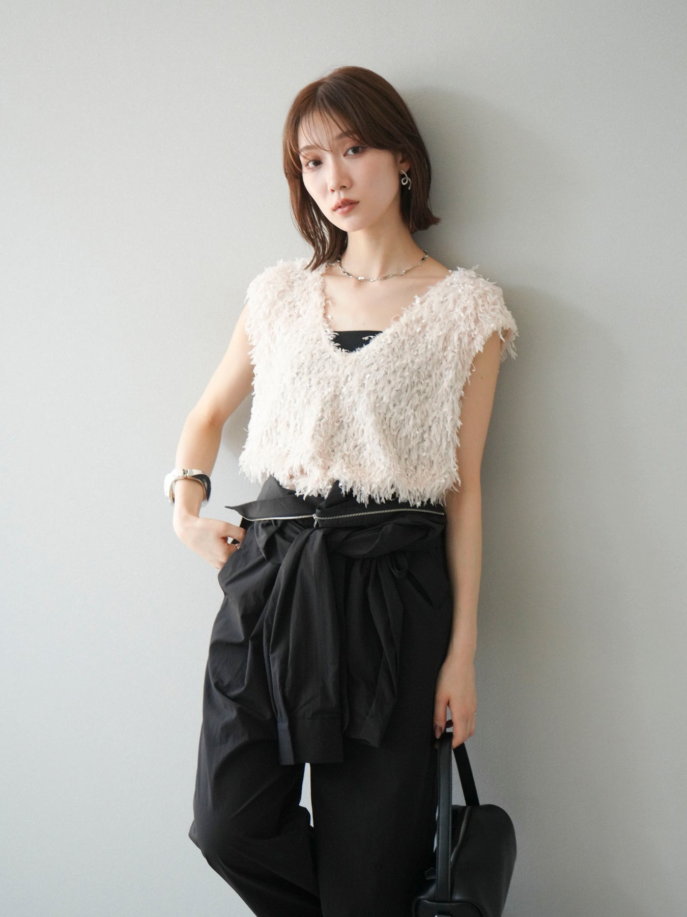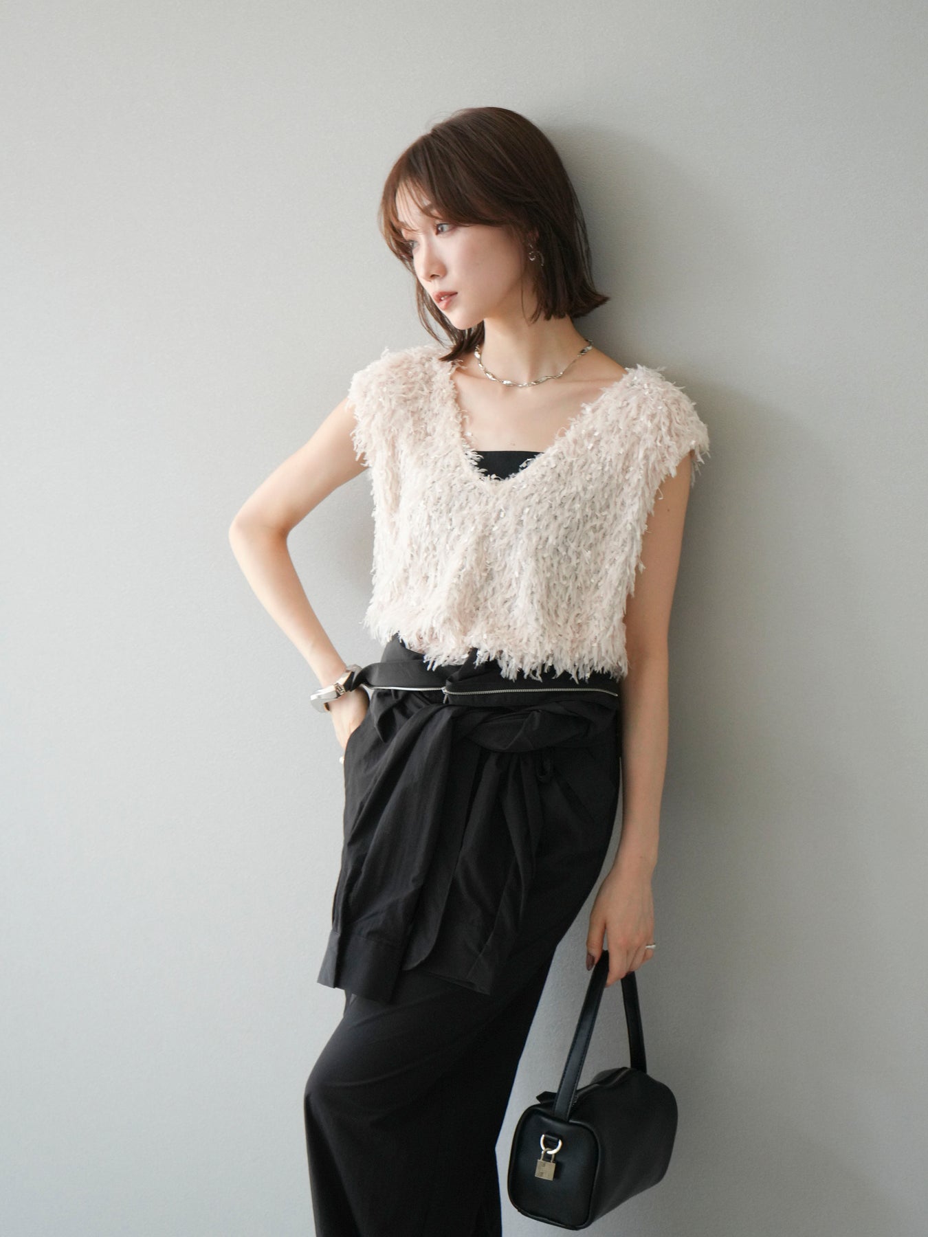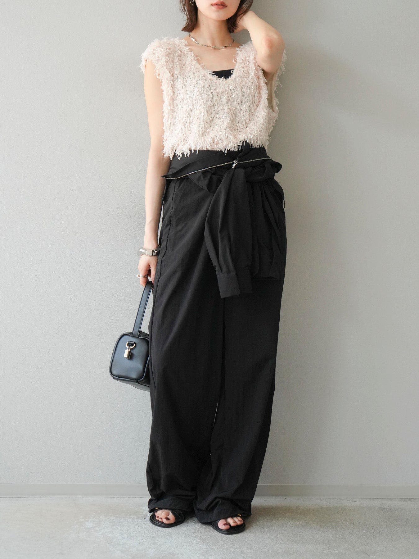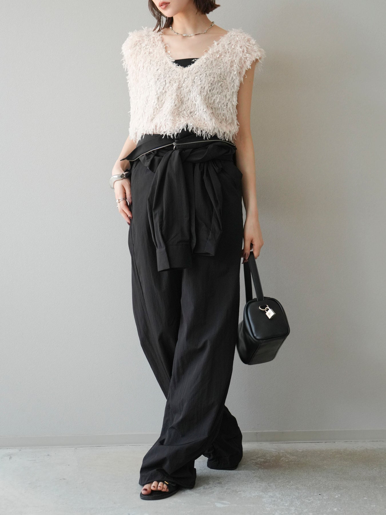 ・お手入れ方法:手洗い水温30℃以下、おしゃれ着用液体洗剤または中性洗剤のご使用をお薦めします。素材の特性上、洗濯の際に色落ちが生じる恐れがありますので単独で・短時間でのお洗濯をお薦めします。洗濯後は形を整えてから陰干ししてください。アイロンはご使用いただけません。※タンブラー乾燥は控え、色物とは分けてください。濡れたままの状態で擦れると、色落ち色移りすることがあります。つけ置き洗いや雨や汗で濡れたまま放置は避け、速やかに処理してください。着用中の摩擦や汗、水濡れ、濃淡差があるものとの重ね着にご注意ください。