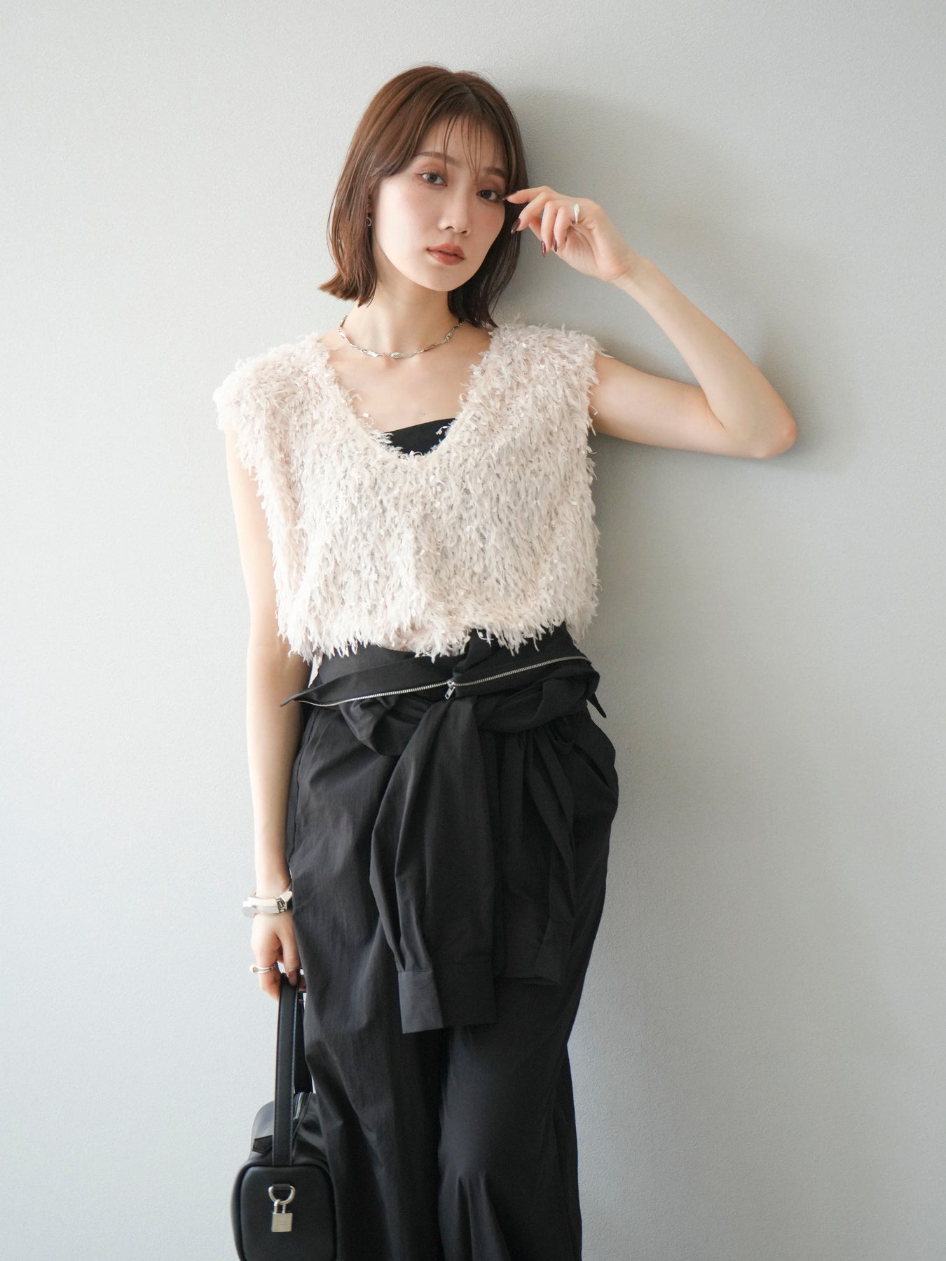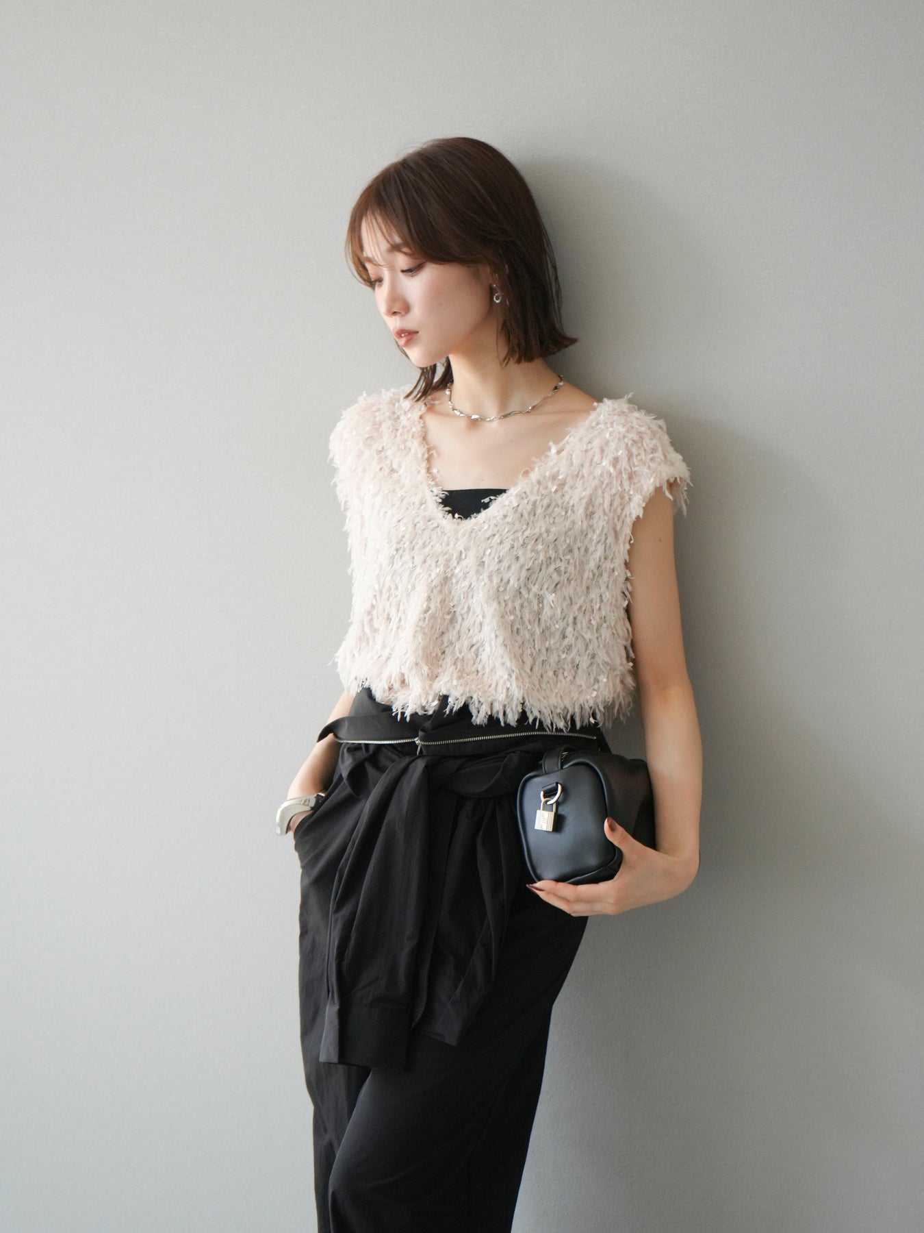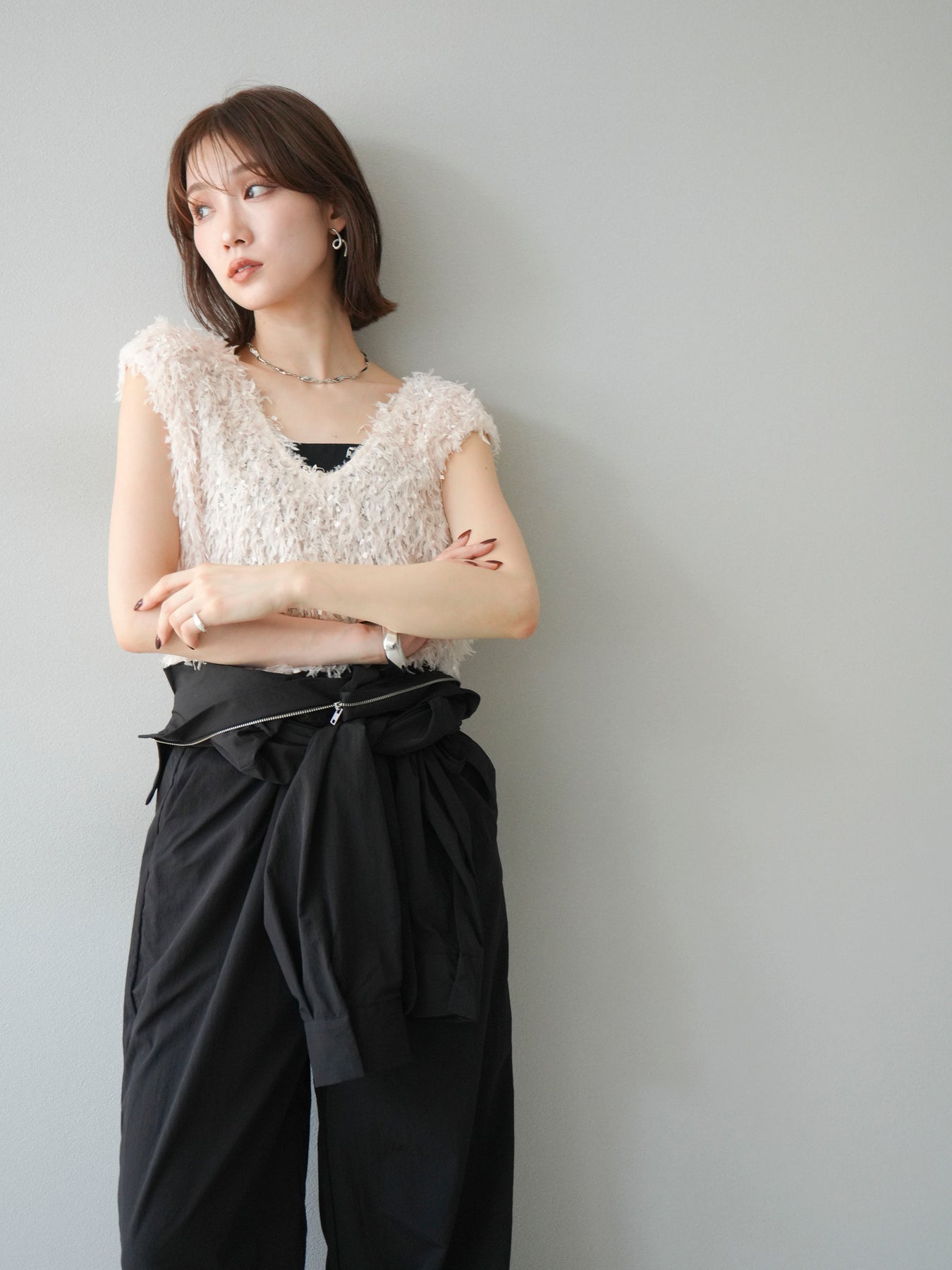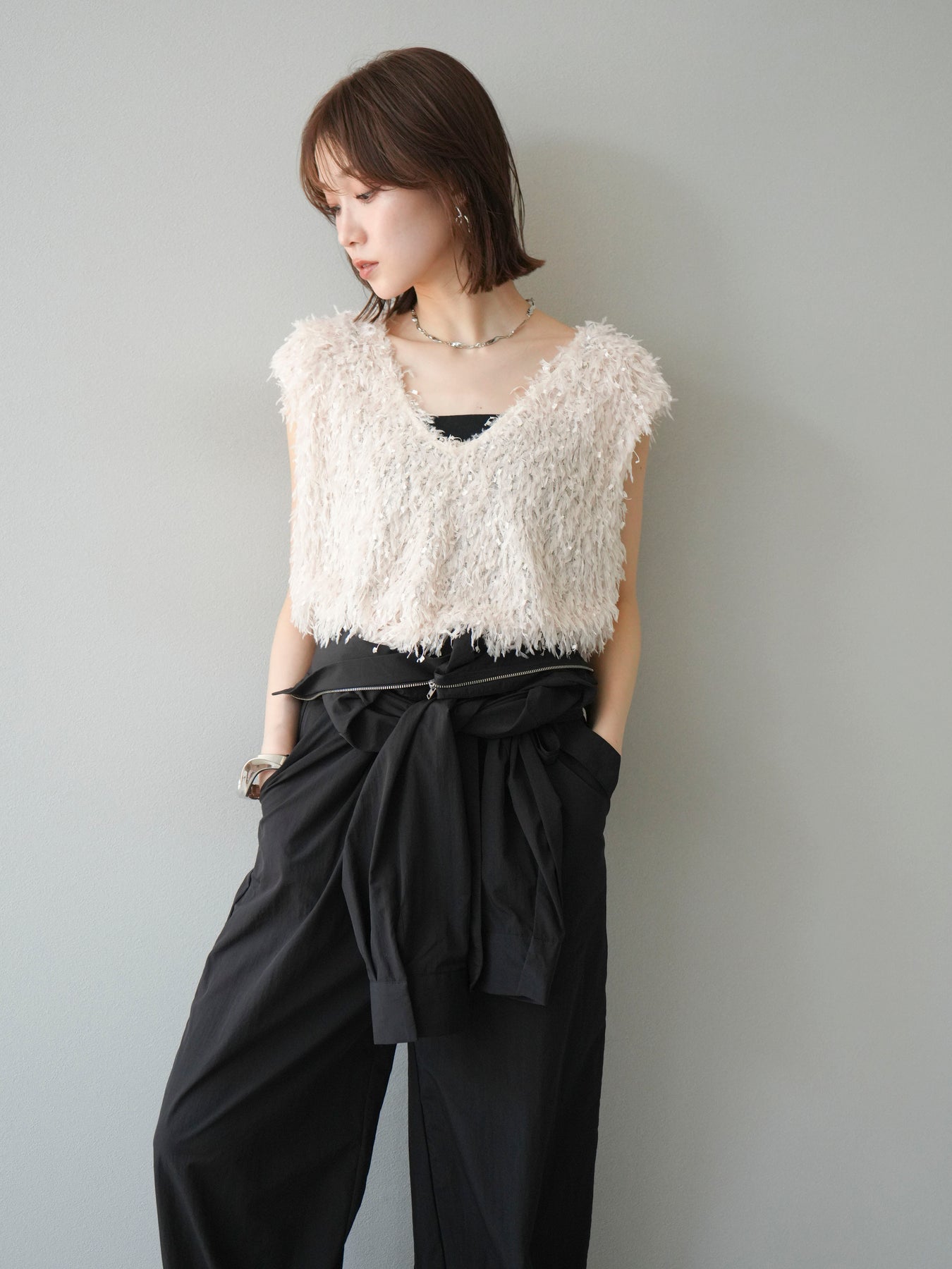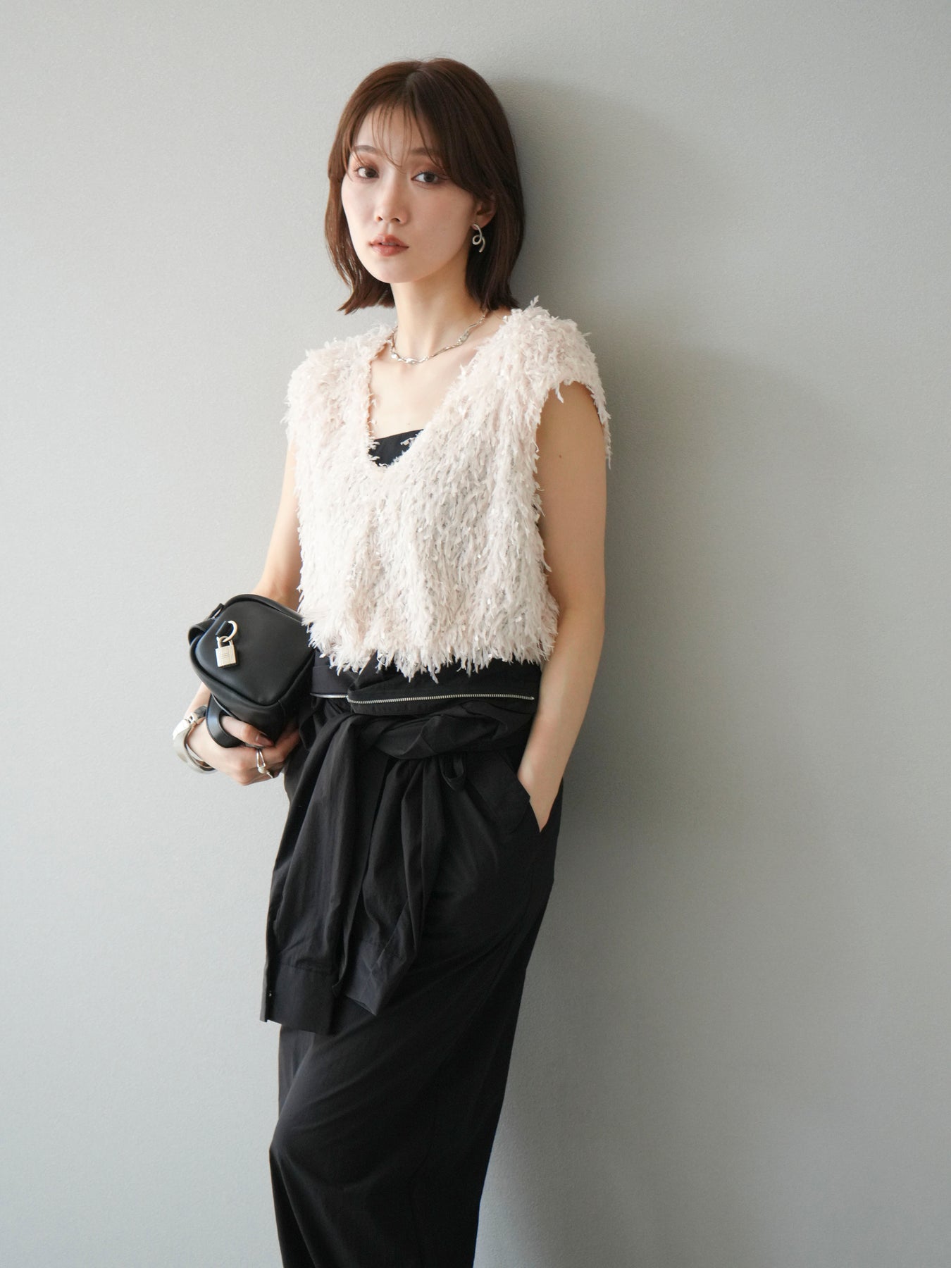 ・お手入れ方法:手洗い水温30℃以下、おしゃれ着用液体洗剤または中性洗剤のご使用をお薦めします。素材の特性上、洗濯の際に色落ちが生じる恐れがありますので単独で・短時間でのお洗濯をお薦めします。洗濯後は形を整えてから陰干ししてください。アイロンはご使用いただけません。※タンブラー乾燥は控え、色物とは分けてください。濡れたままの状態で擦れると、色落ち色移りすることがあります。つけ置き洗いや雨や汗で濡れたまま放置は避け、速やかに処理してください。着用中の摩擦や汗、水濡れ、濃淡差があるものとの重ね着にご注意ください。