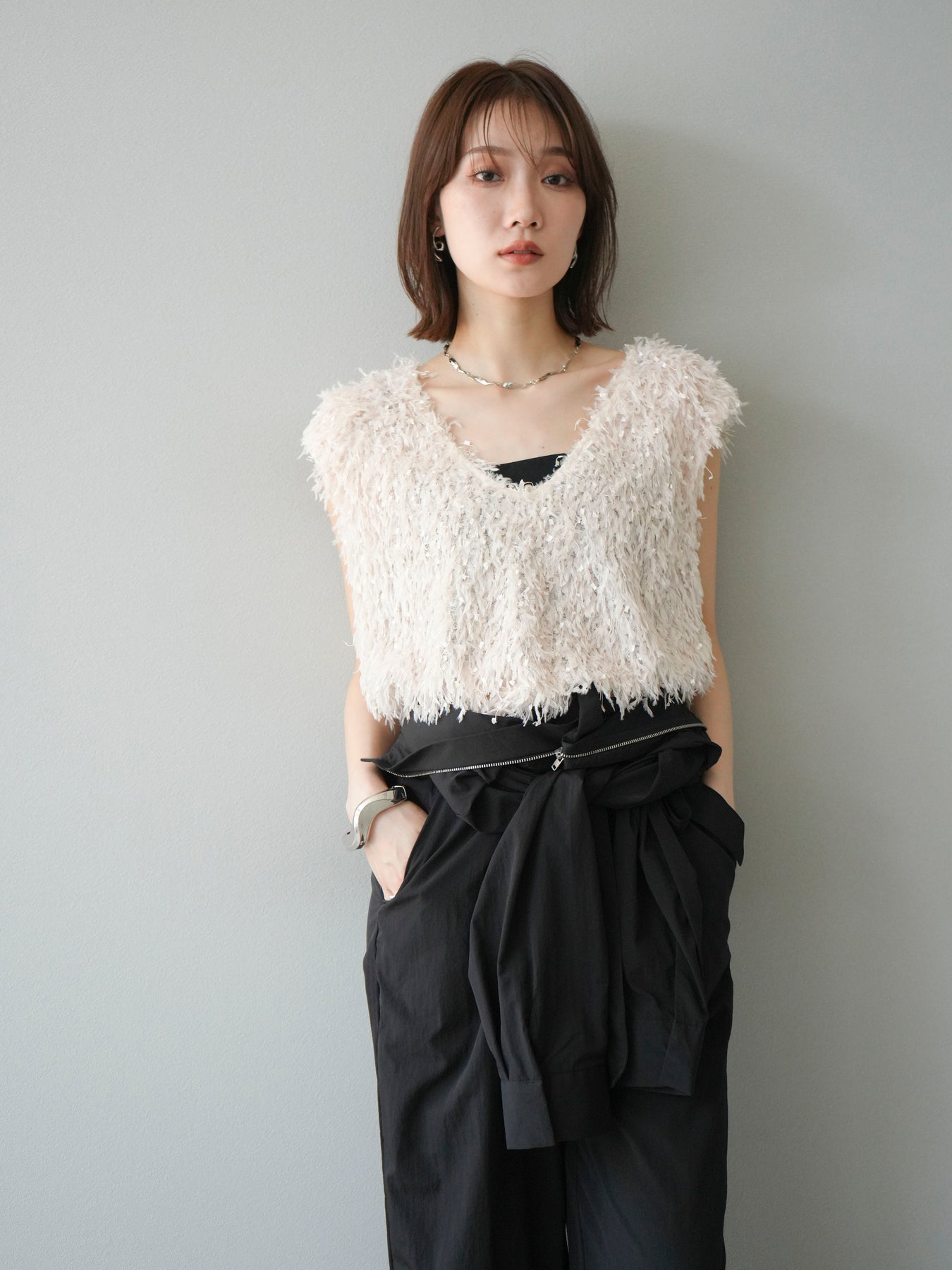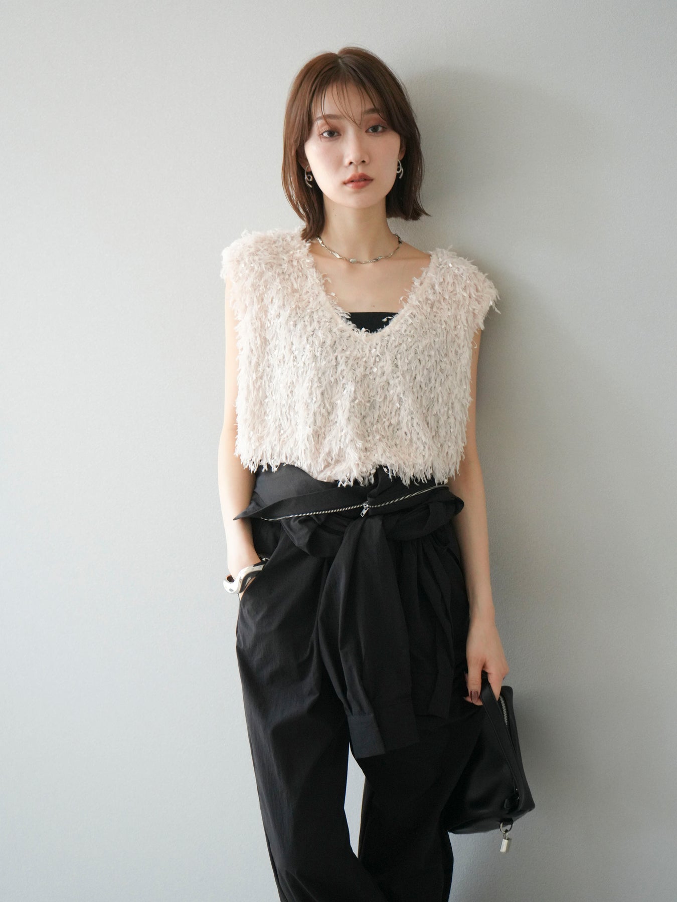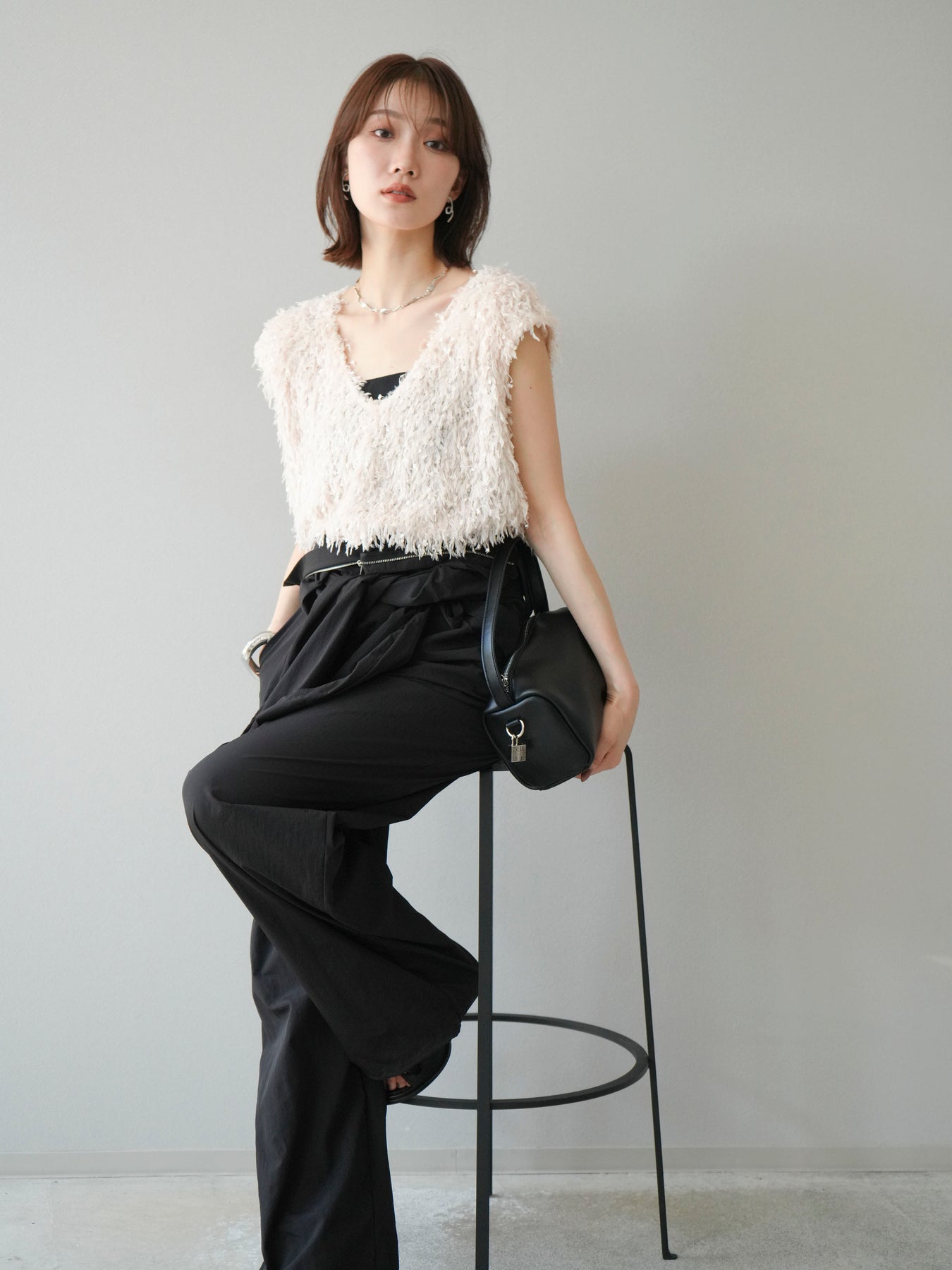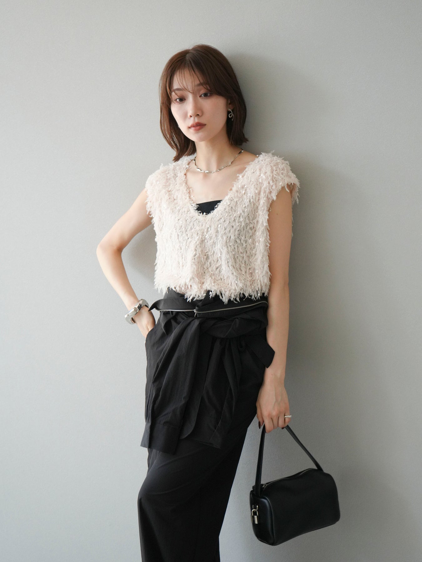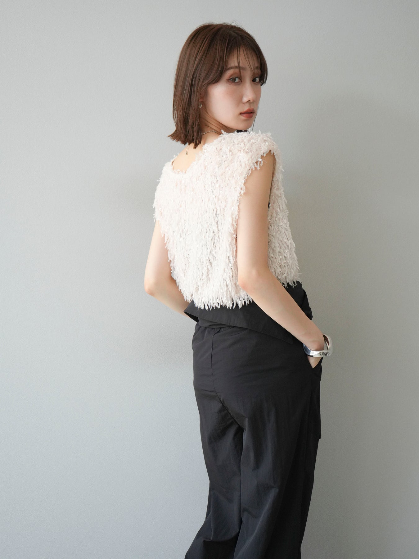 ・お手入れ方法:手洗い水温30℃以下、おしゃれ着用液体洗剤または中性洗剤のご使用をお薦めします。素材の特性上、洗濯の際に色落ちが生じる恐れがありますので単独で・短時間でのお洗濯をお薦めします。洗濯後は形を整えてから陰干ししてください。アイロンはご使用いただけません。※タンブラー乾燥は控え、色物とは分けてください。濡れたままの状態で擦れると、色落ち色移りすることがあります。つけ置き洗いや雨や汗で濡れたまま放置は避け、速やかに処理してください。着用中の摩擦や汗、水濡れ、濃淡差があるものとの重ね着にご注意ください。