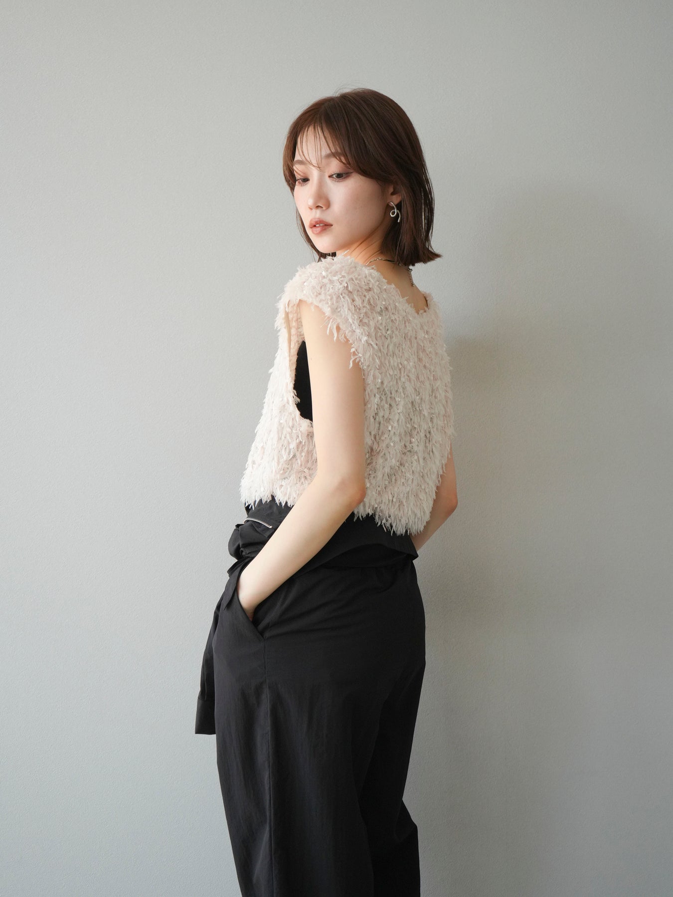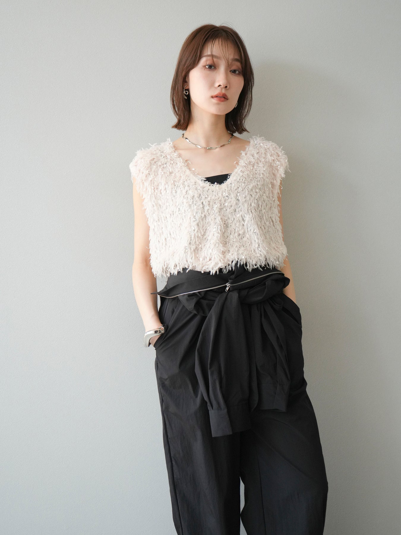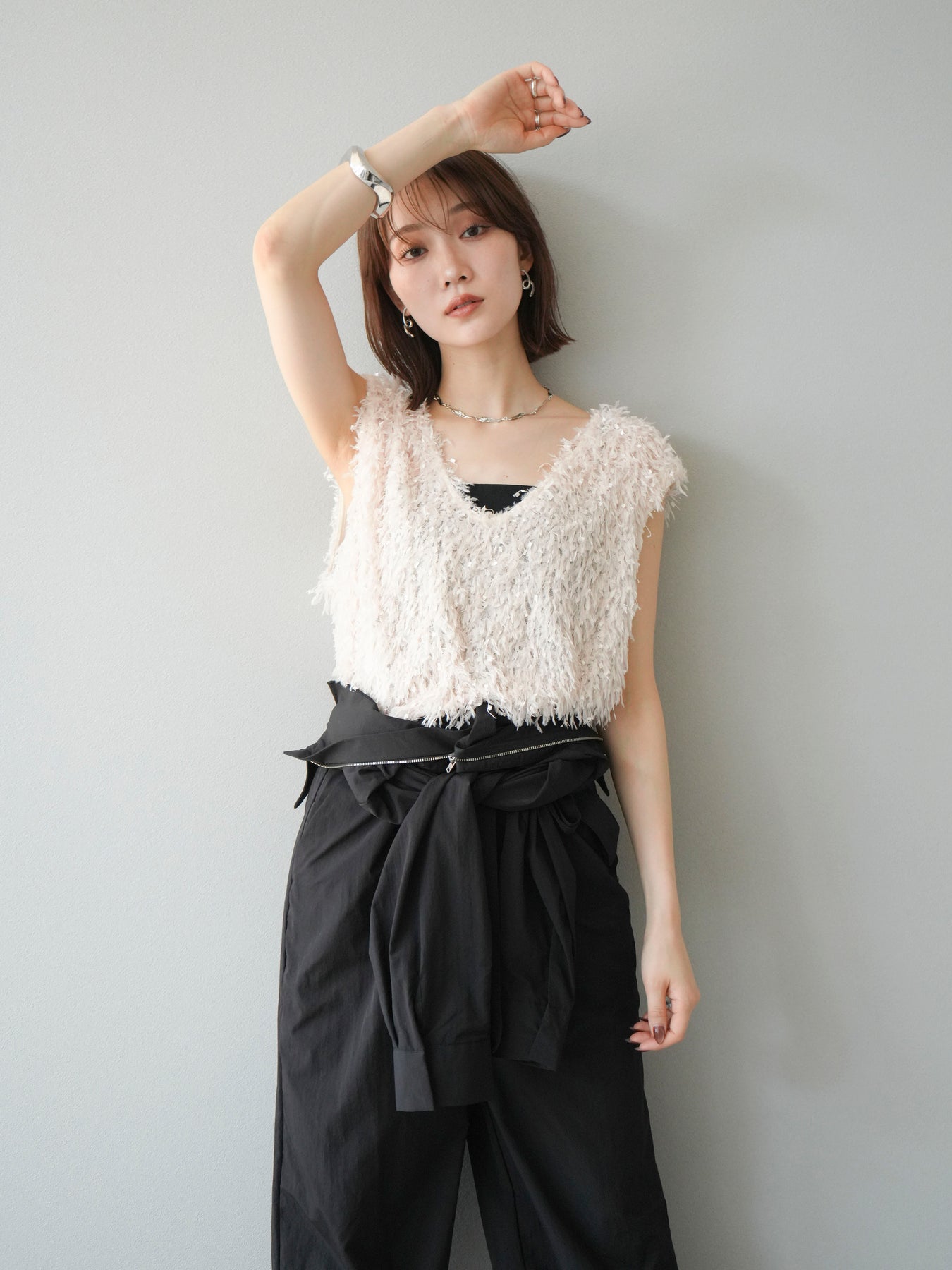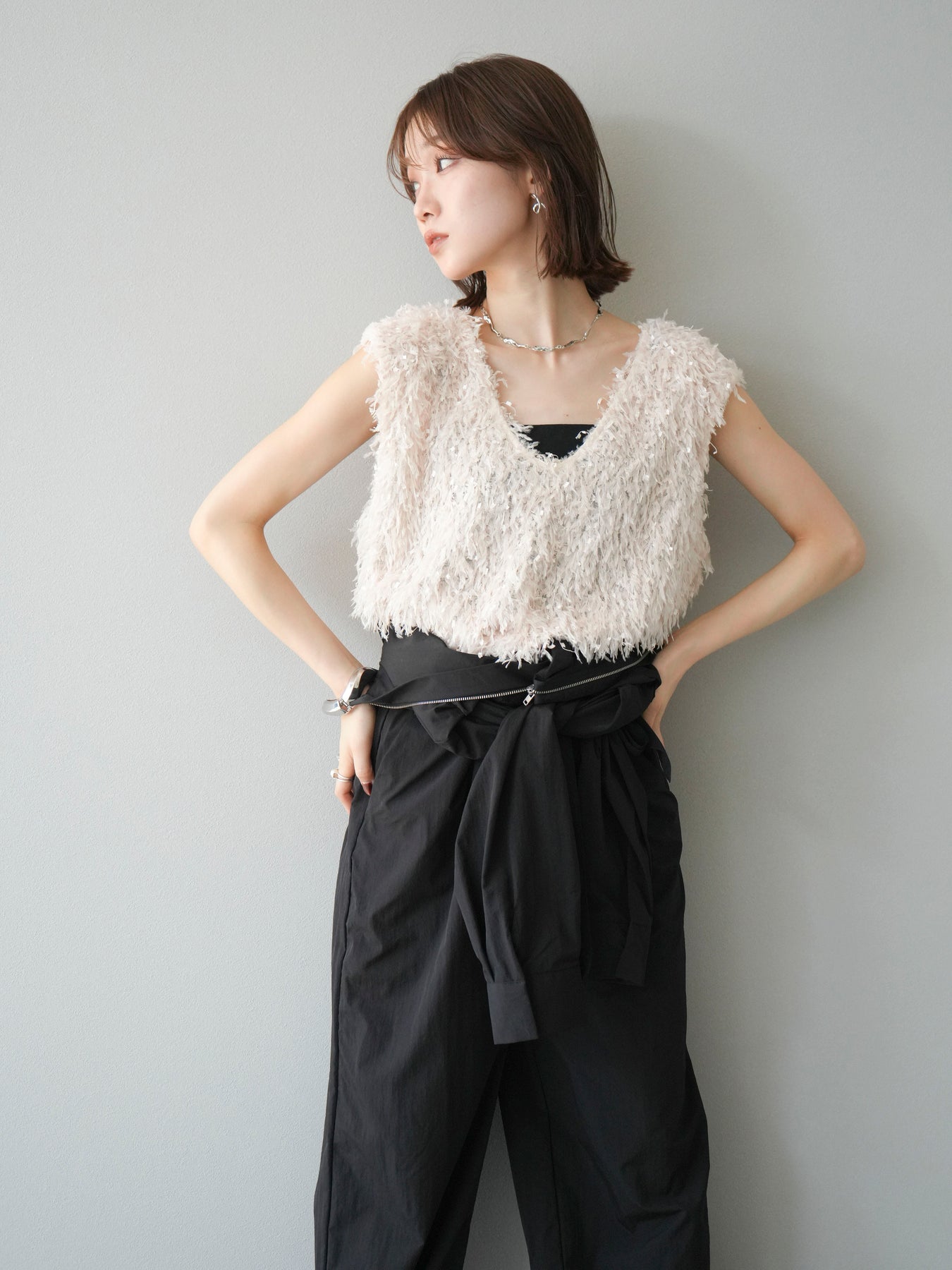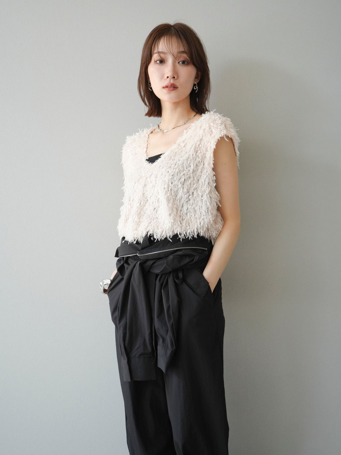・お手入れ方法:手洗い水温30℃以下、おしゃれ着用液体洗剤または中性洗剤のご使用をお薦めします。素材の特性上、洗濯の際に色落ちが生じる恐れがありますので単独で・短時間でのお洗濯をお薦めします。洗濯後は形を整えてから陰干ししてください。アイロンはご使用いただけません。※タンブラー乾燥は控え、色物とは分けてください。濡れたままの状態で擦れると、色落ち色移りすることがあります。つけ置き洗いや雨や汗で濡れたまま放置は避け、速やかに処理してください。着用中の摩擦や汗、水濡れ、濃淡差があるものとの重ね着にご注意ください。