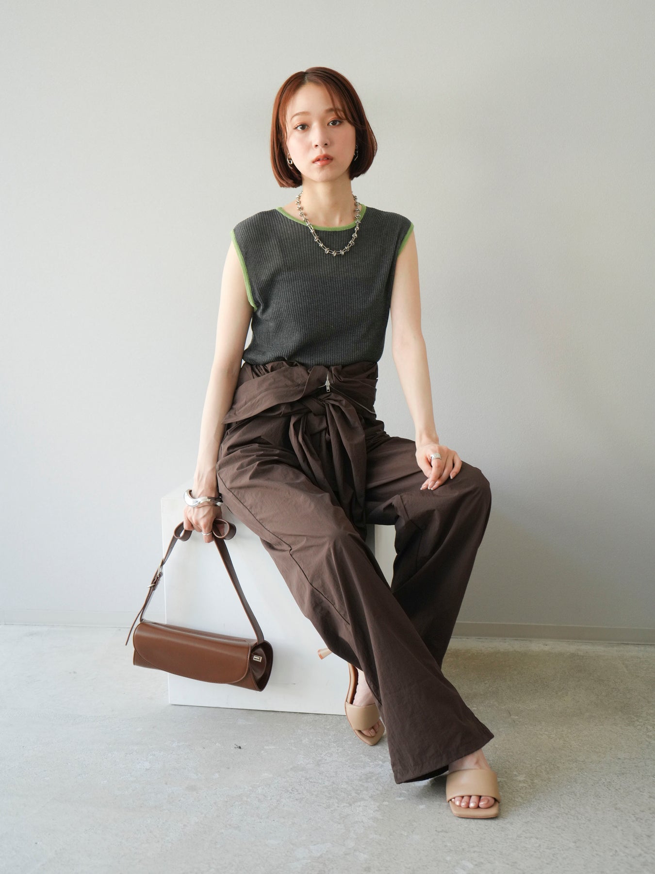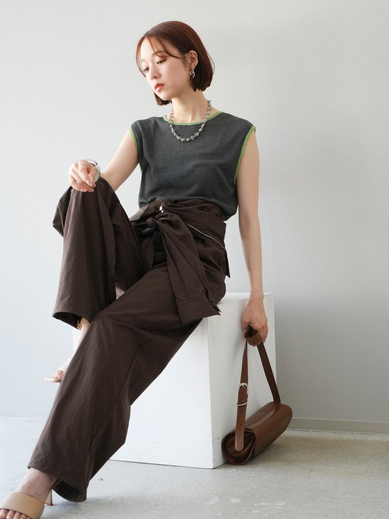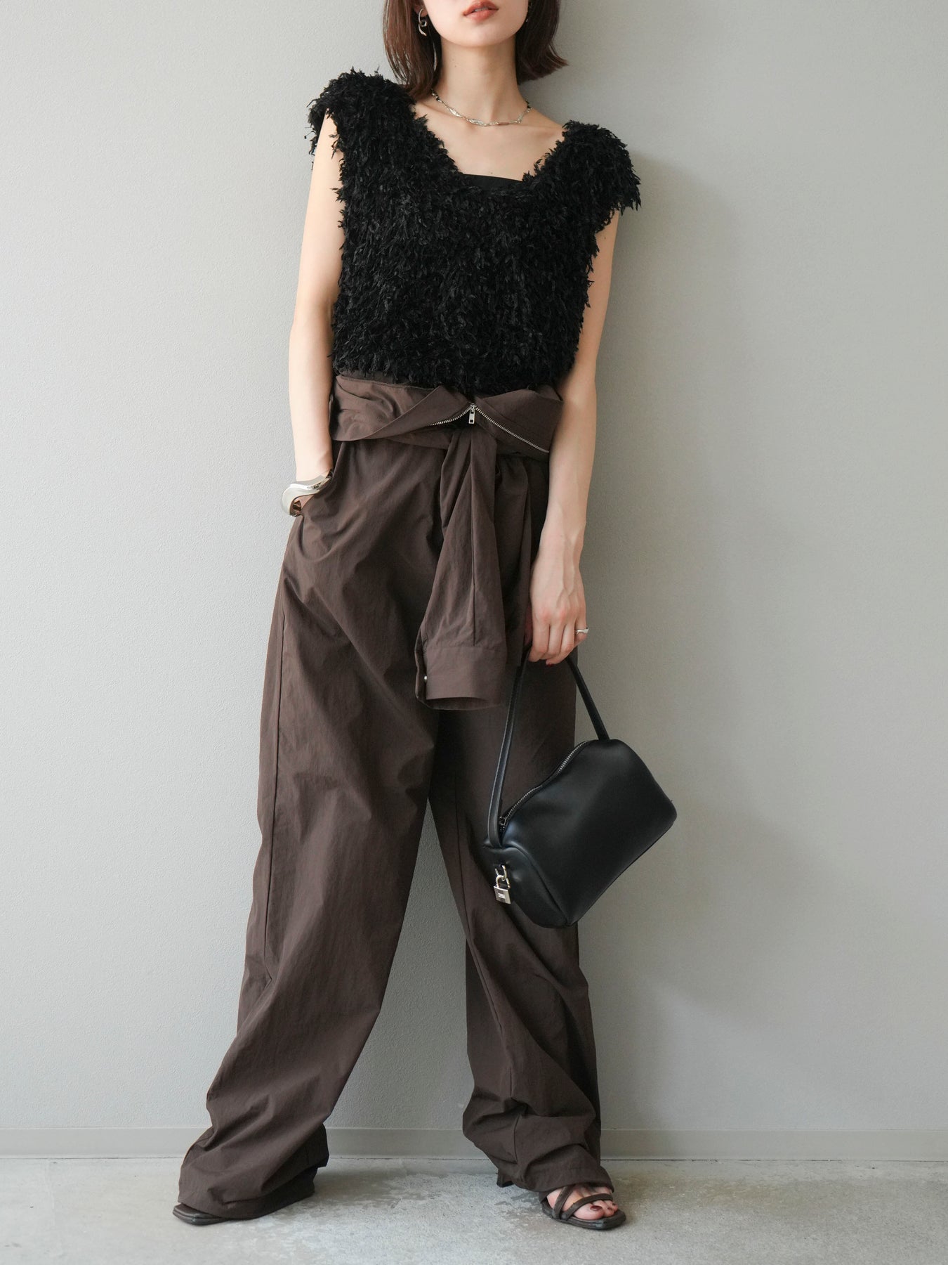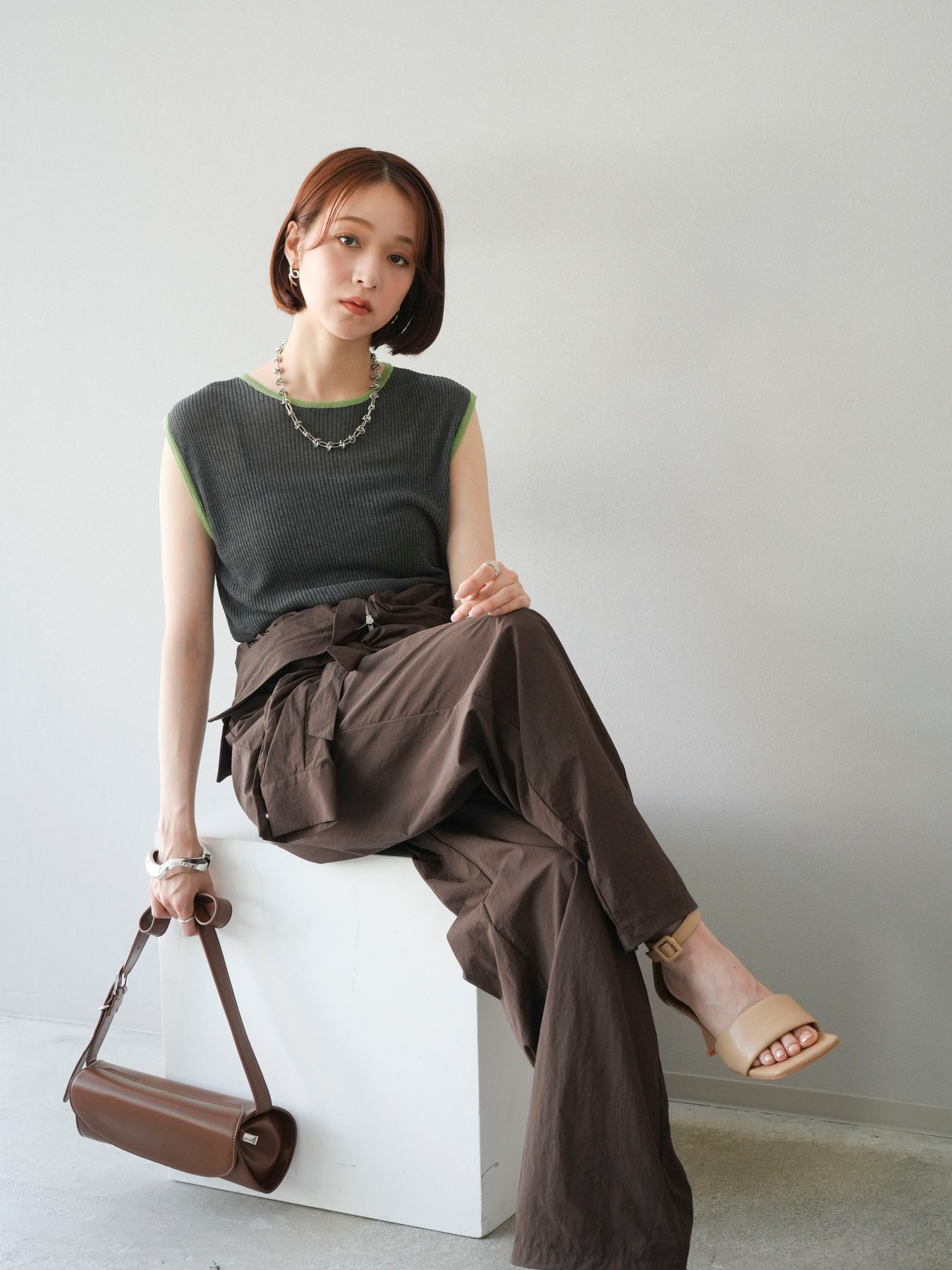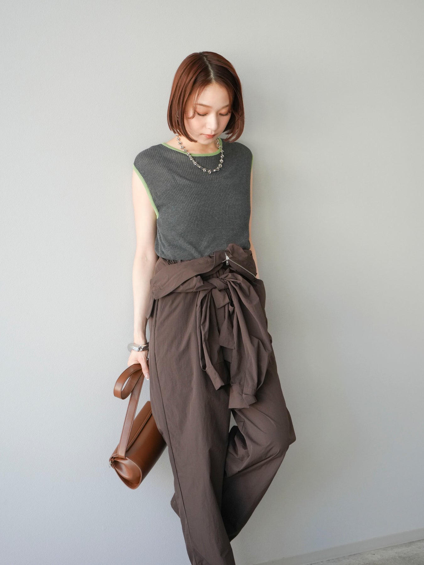 ミニマルなデザインとモード感を兼ね備えたナイロン素材のジャンプスーツ。 軽くしなやかな風合いで、ワイドなシルエットがこなれた印象を与えてくれます。 ウエストの共布ベルトでシルエットの調整も可能。 1枚でサマになる主役アイテムとして、デイリーにも旅行やお出かけにも活躍します。