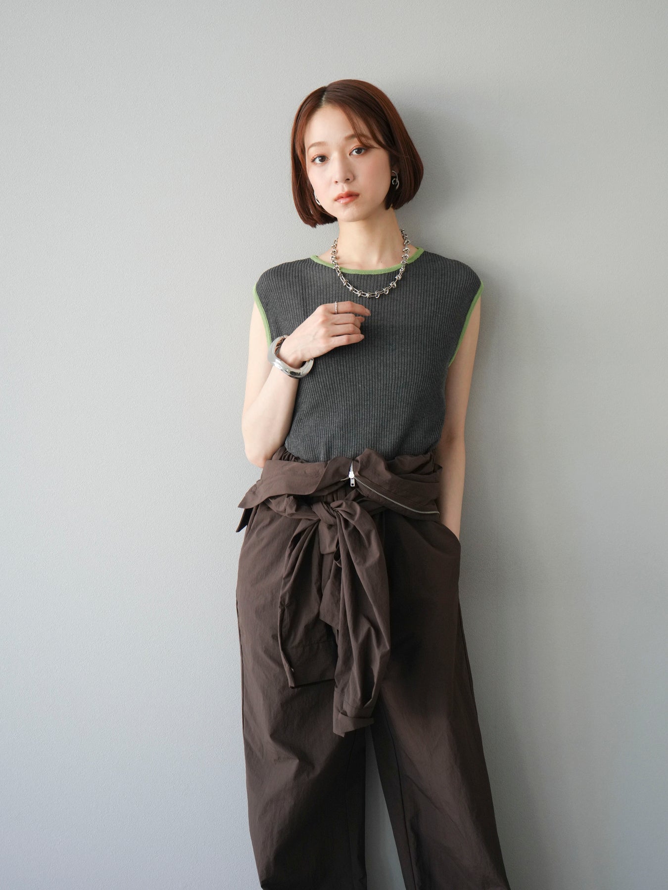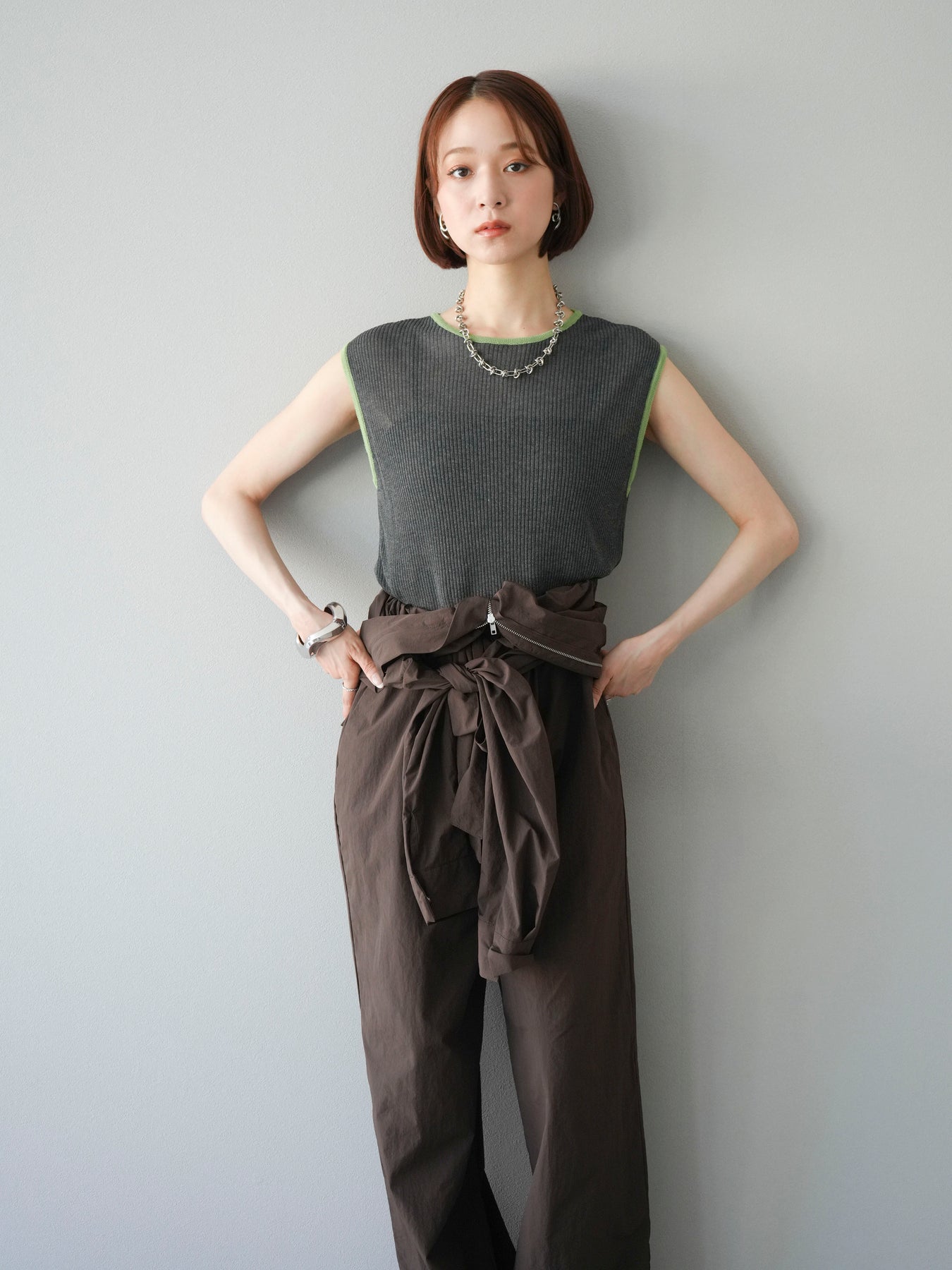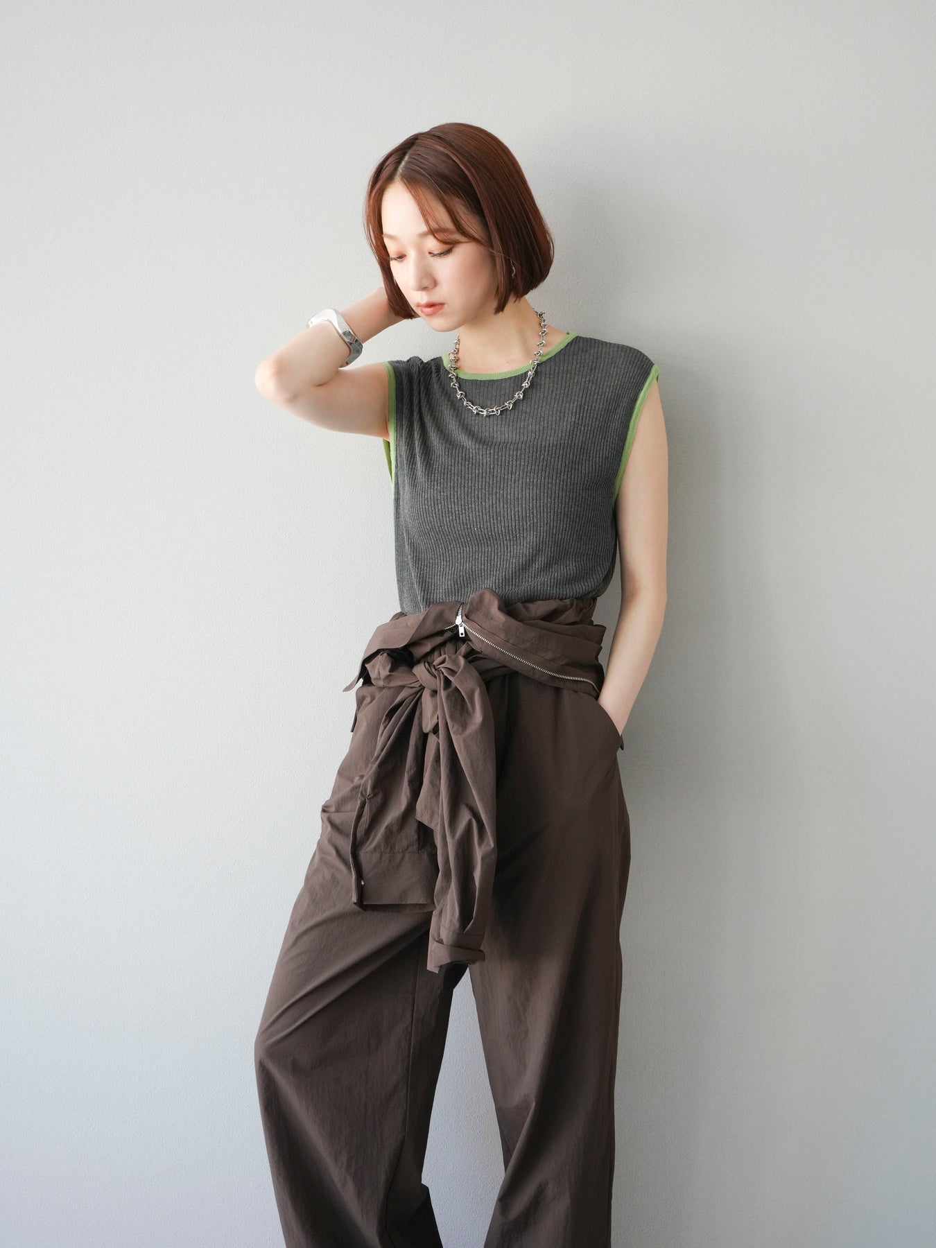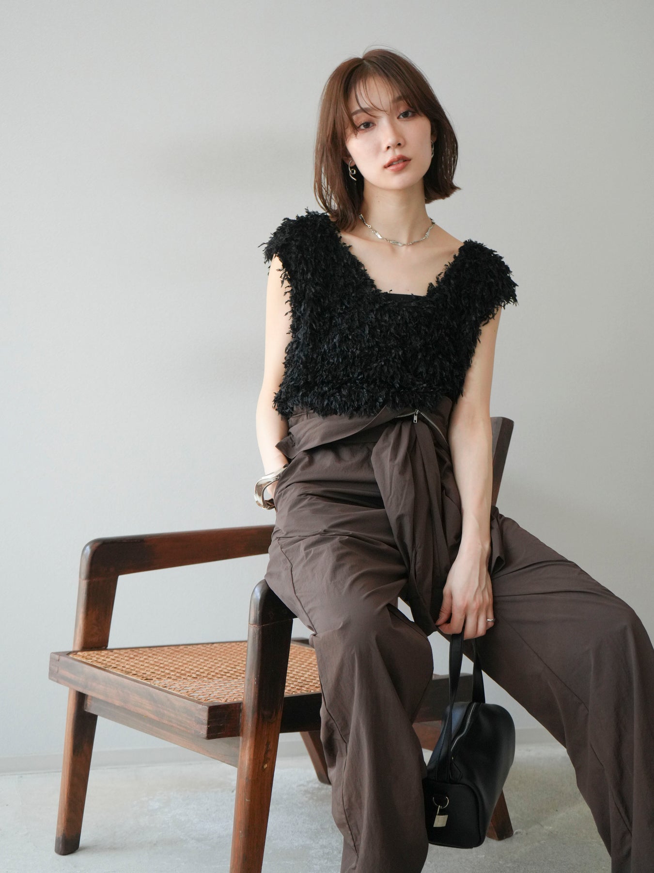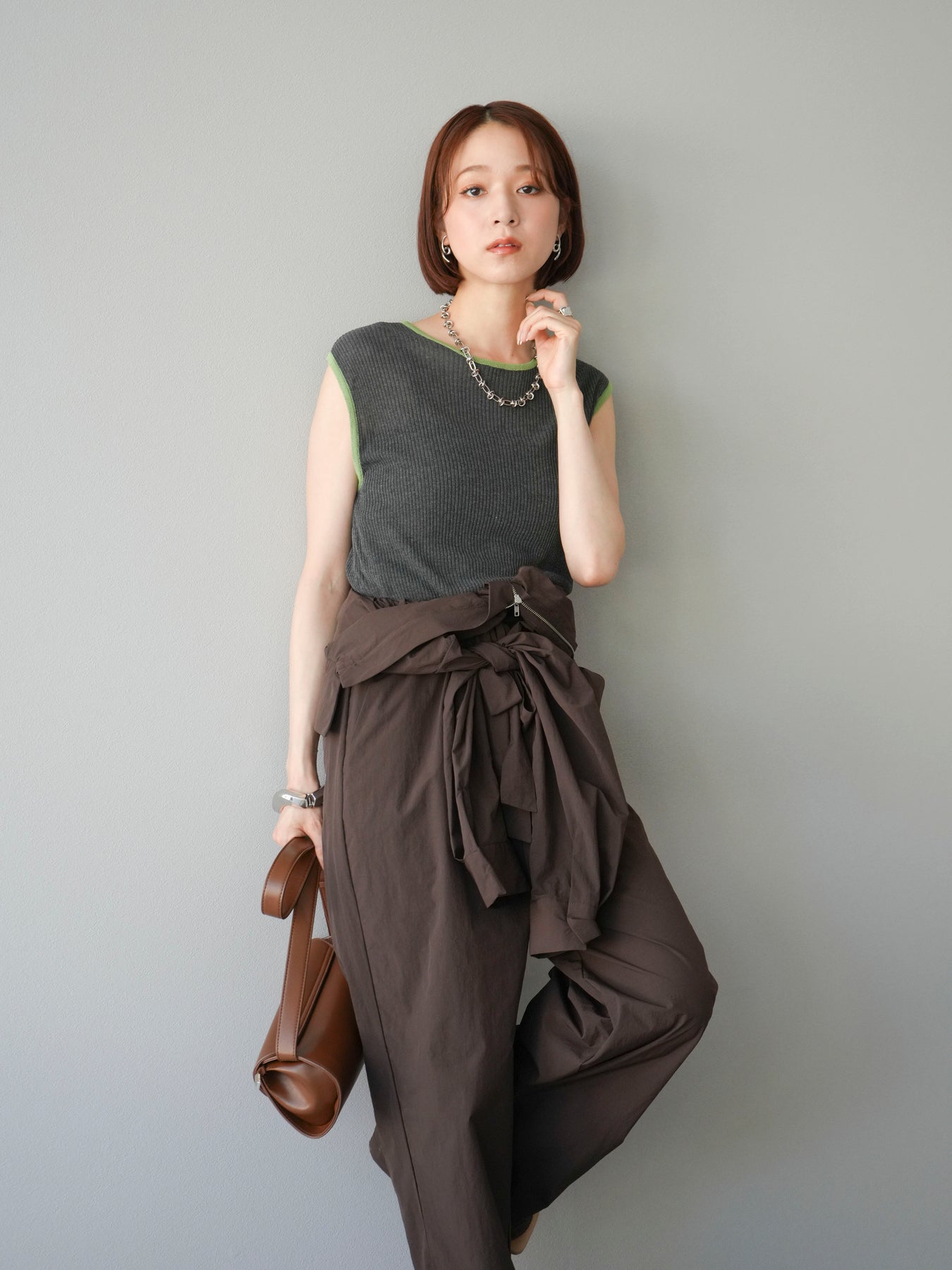ミニマルなデザインとモード感を兼ね備えたナイロン素材のジャンプスーツ。 軽くしなやかな風合いで、ワイドなシルエットがこなれた印象を与えてくれます。 ウエストの共布ベルトでシルエットの調整も可能。 1枚でサマになる主役アイテムとして、デイリーにも旅行やお出かけにも活躍します。
