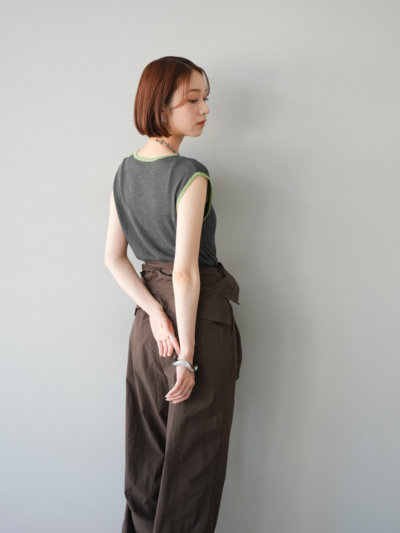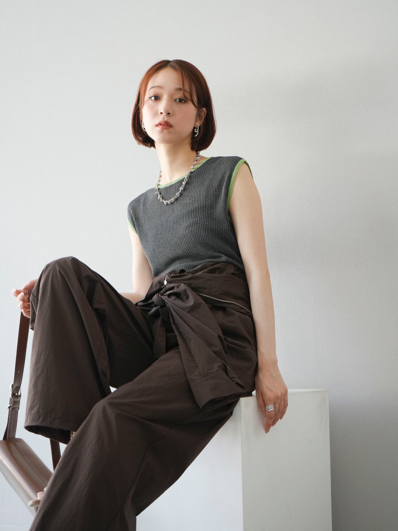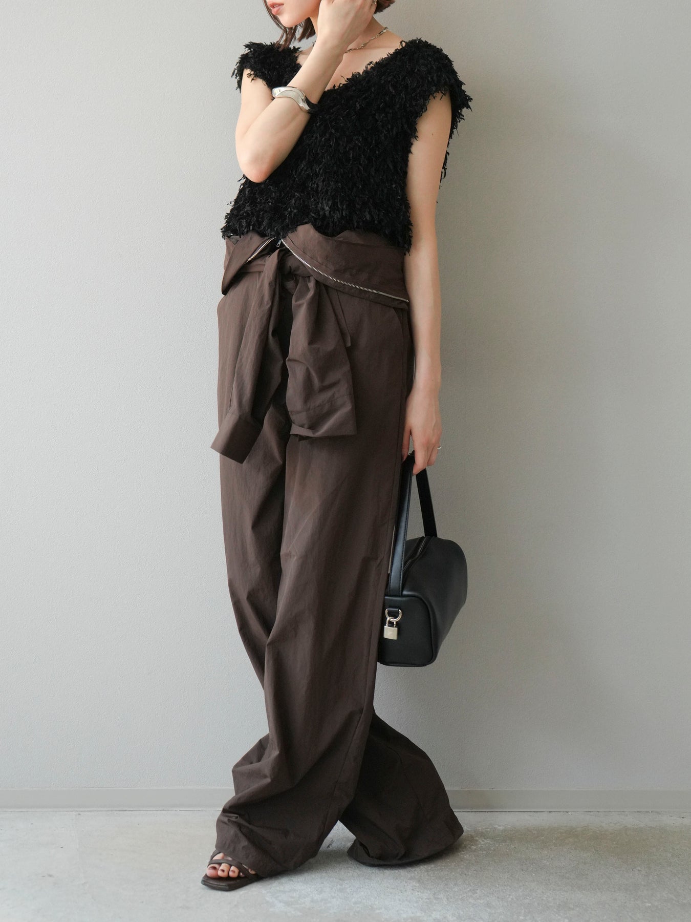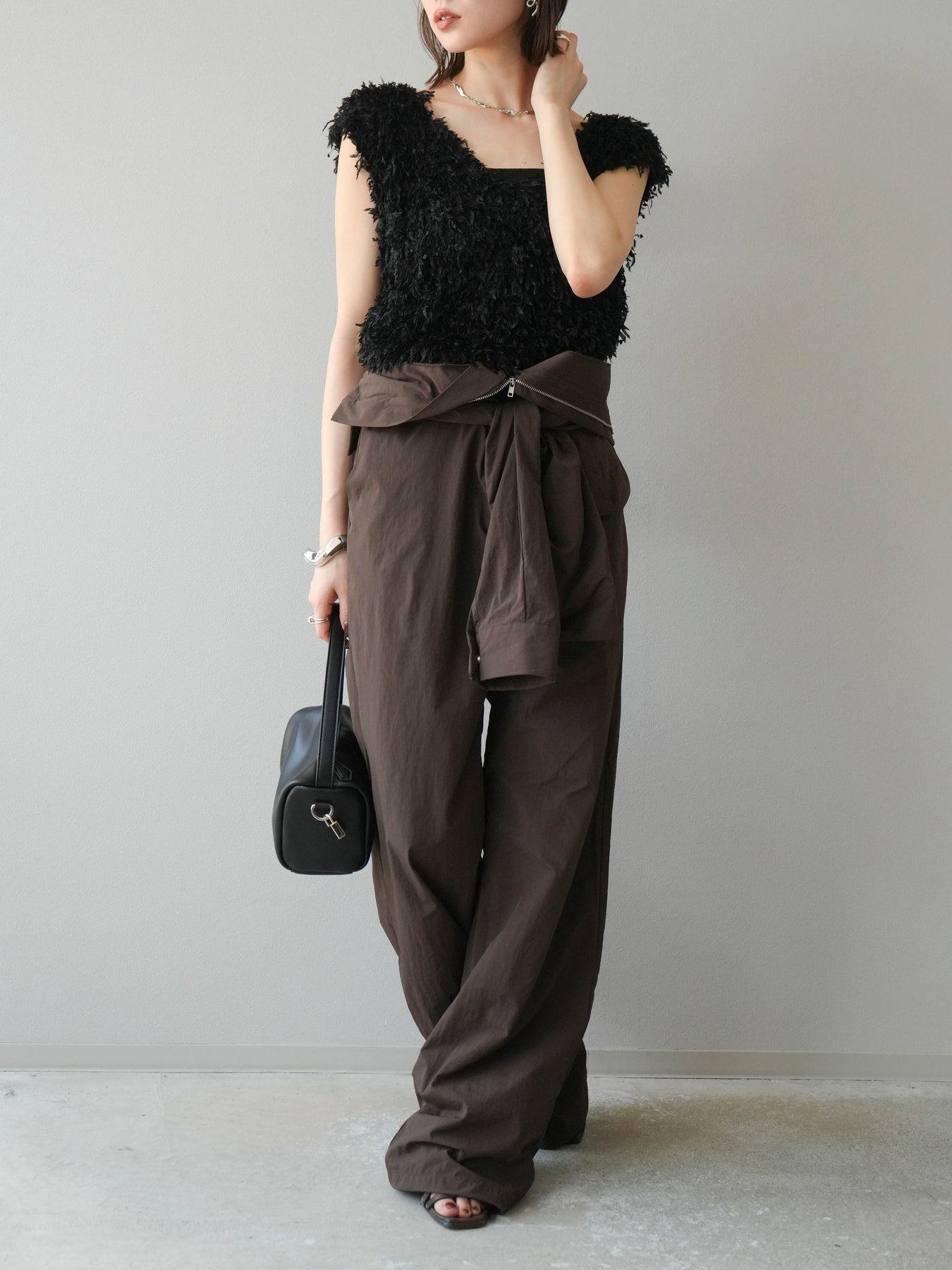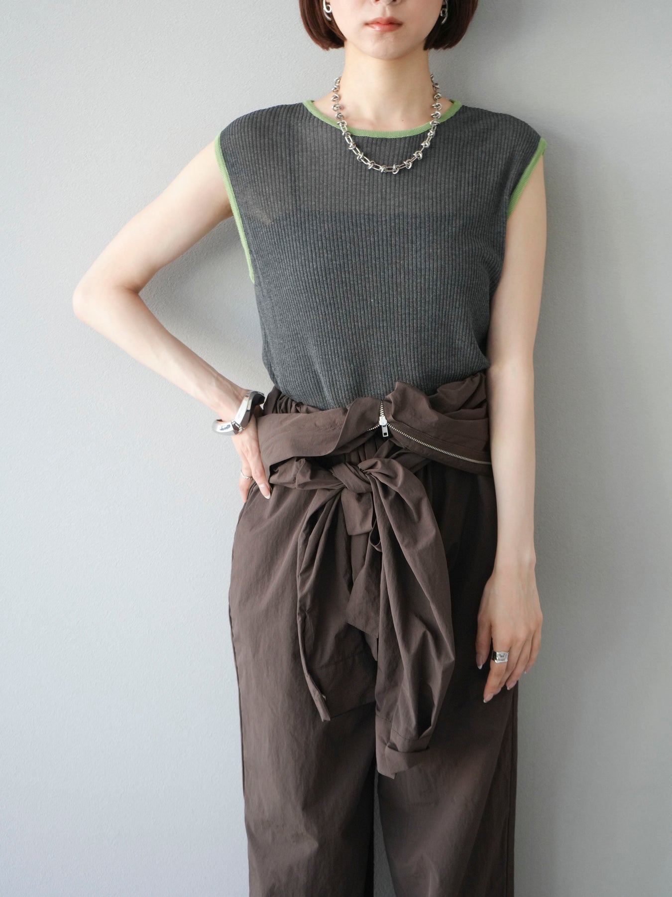 ミニマルなデザインとモード感を兼ね備えたナイロン素材のジャンプスーツ。 軽くしなやかな風合いで、ワイドなシルエットがこなれた印象を与えてくれます。 ウエストの共布ベルトでシルエットの調整も可能。 1枚でサマになる主役アイテムとして、デイリーにも旅行やお出かけにも活躍します。