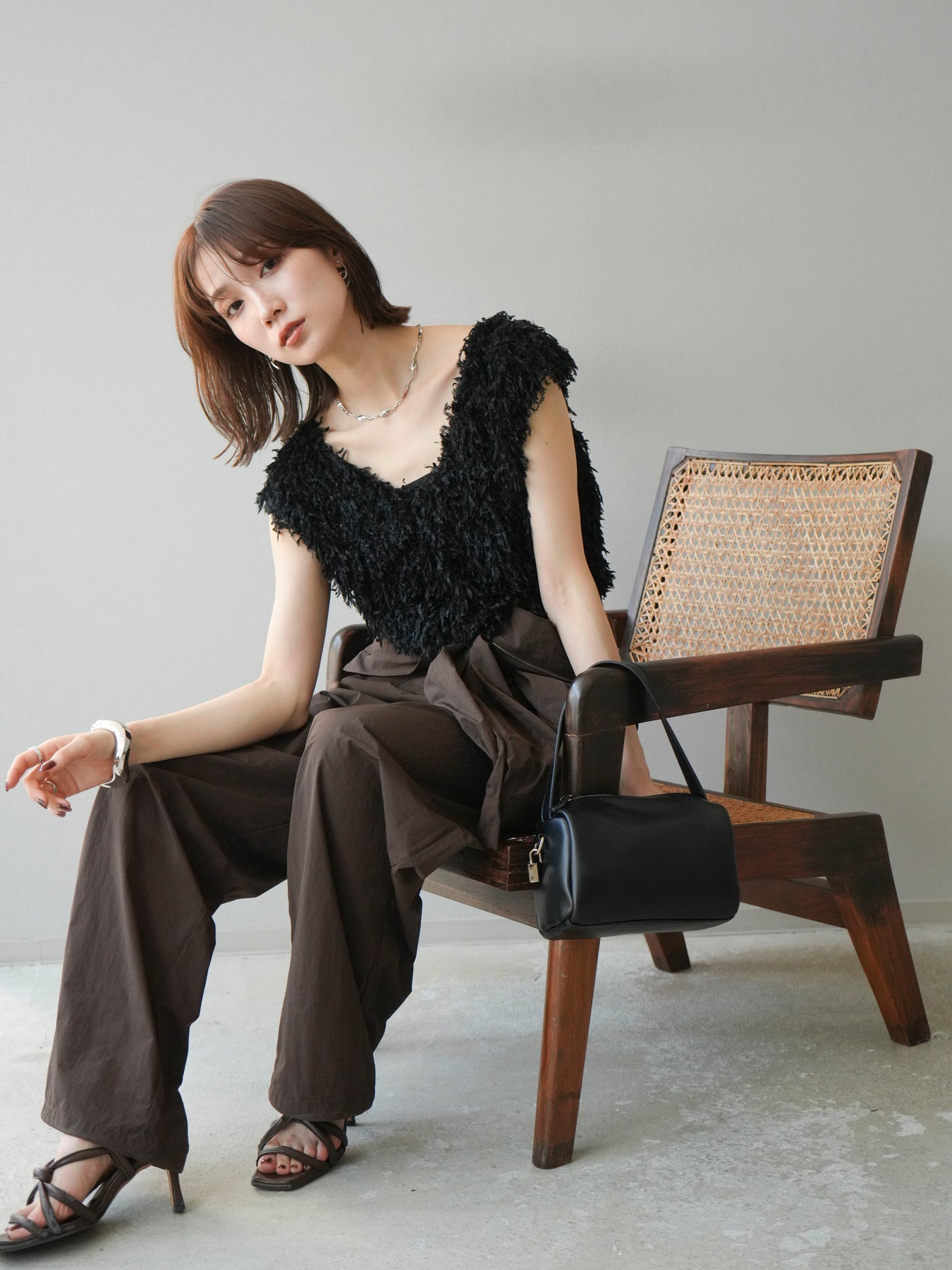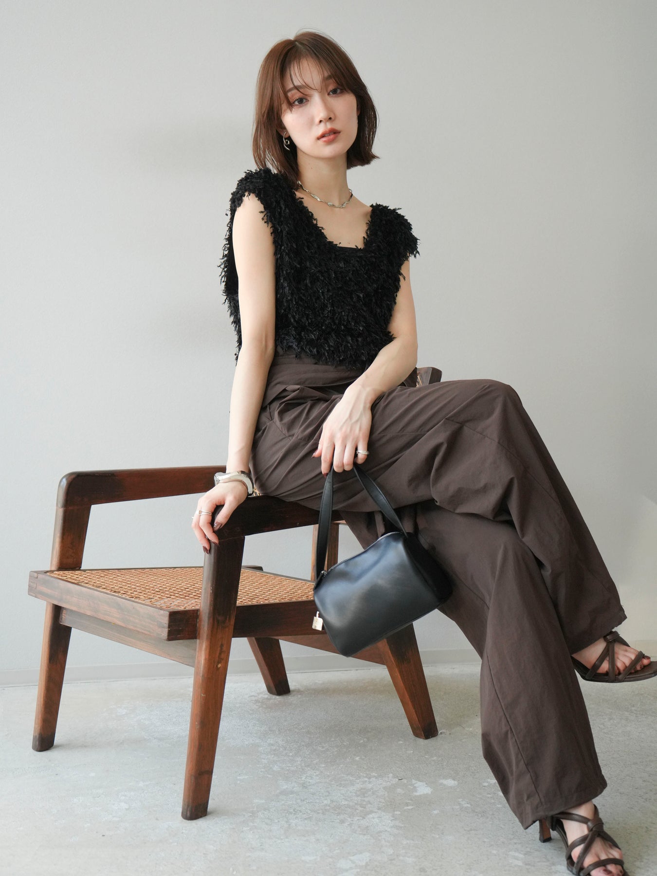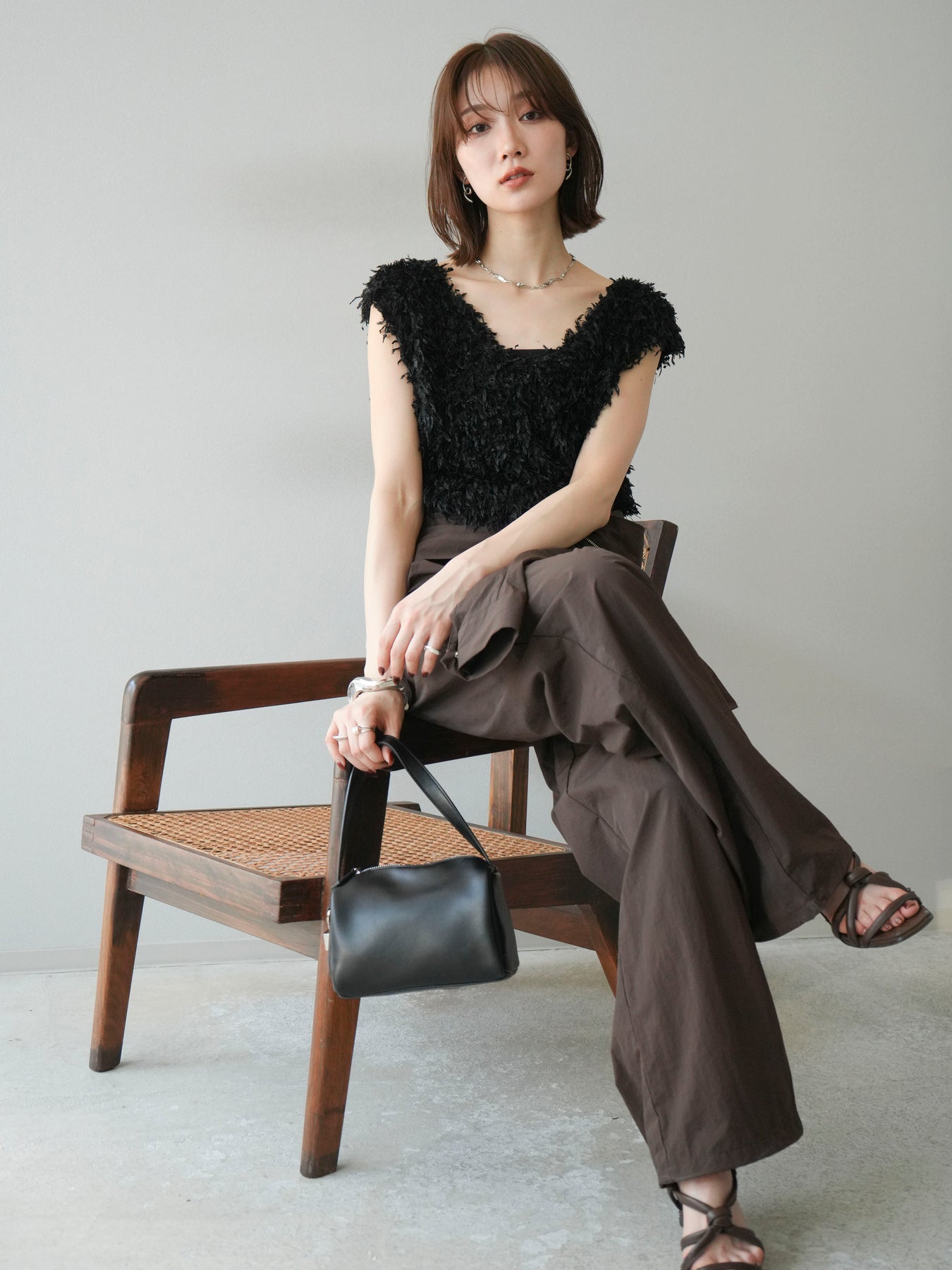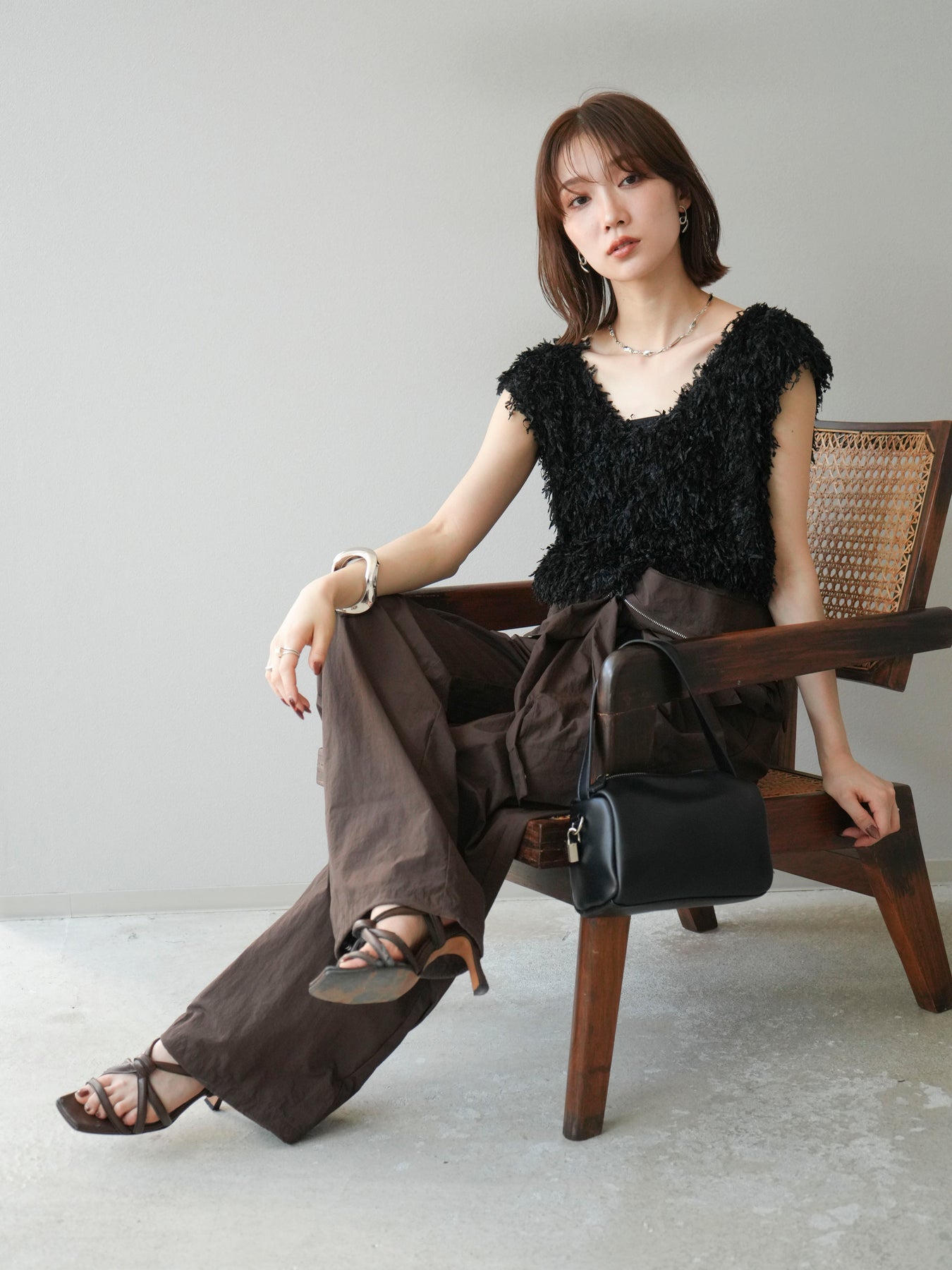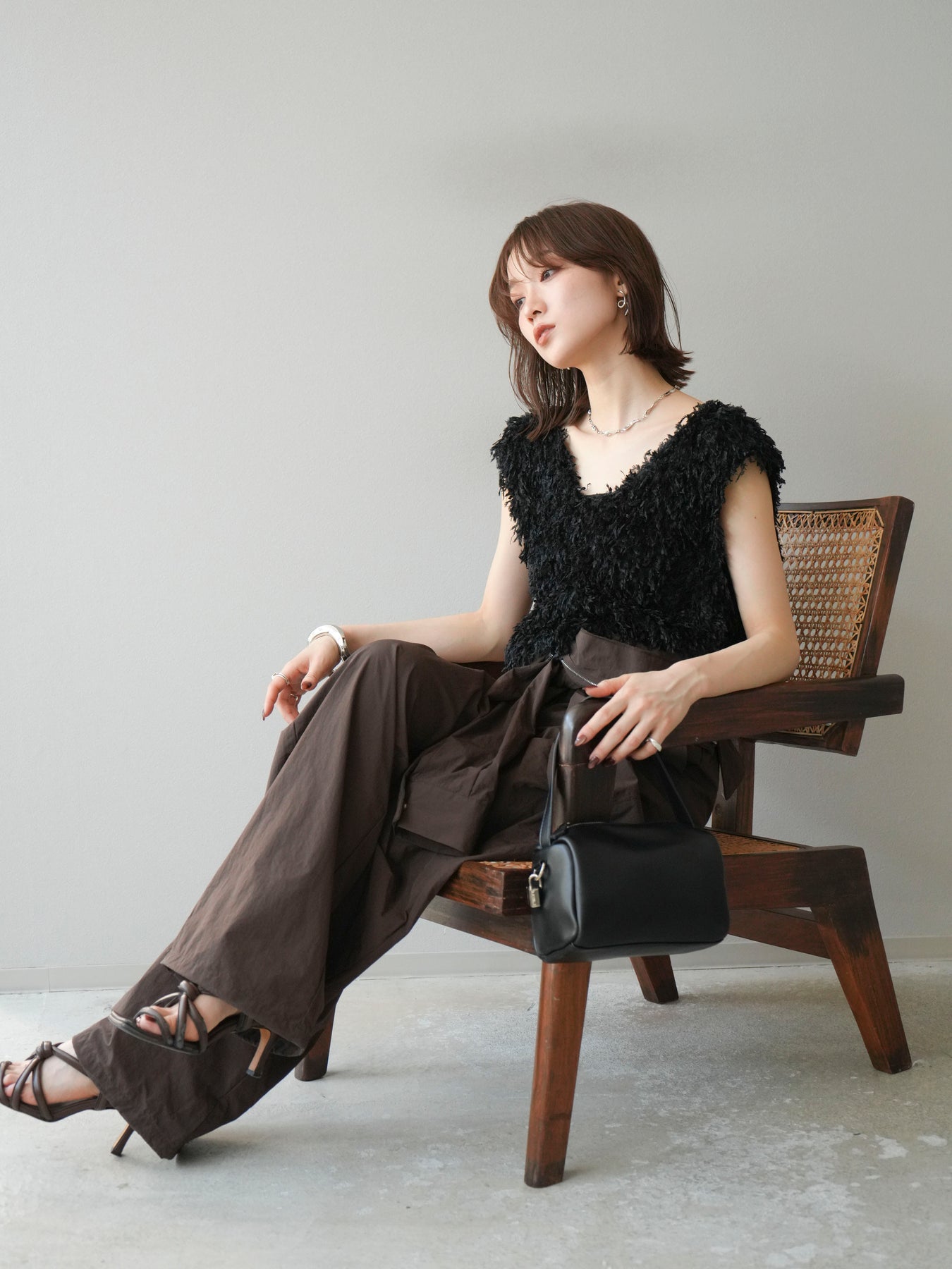 ・お手入れ方法:手洗い水温30℃以下、おしゃれ着用液体洗剤または中性洗剤のご使用をお薦めします。素材の特性上、洗濯の際に色落ちが生じる恐れがありますので単独で・短時間でのお洗濯をお薦めします。洗濯後は形を整えてから陰干ししてください。アイロンはご使用いただけません。※タンブラー乾燥は控え、色物とは分けてください。濡れたままの状態で擦れると、色落ち色移りすることがあります。つけ置き洗いや雨や汗で濡れたまま放置は避け、速やかに処理してください。着用中の摩擦や汗、水濡れ、濃淡差があるものとの重ね着にご注意ください。