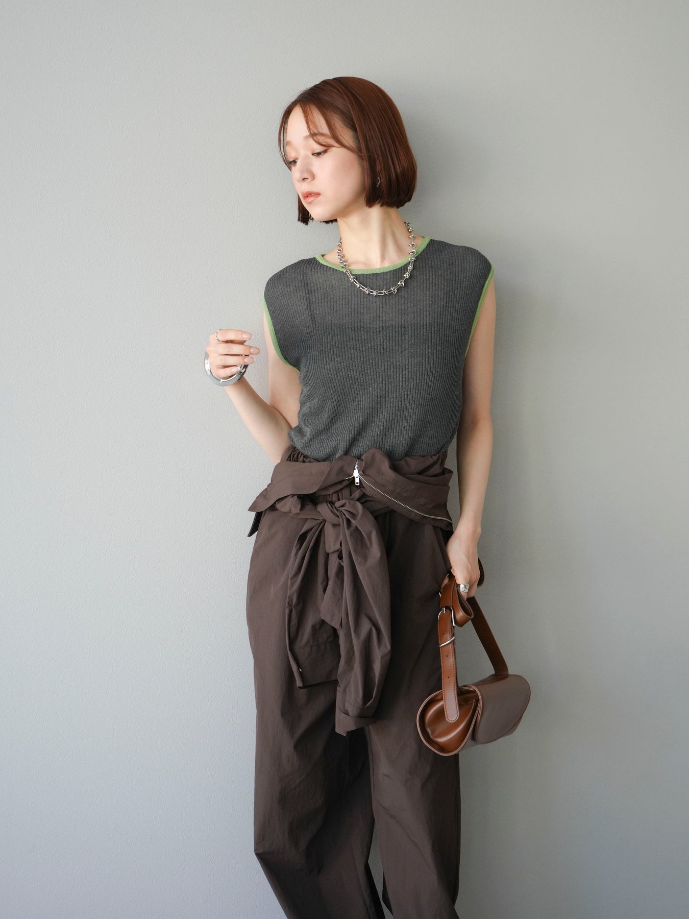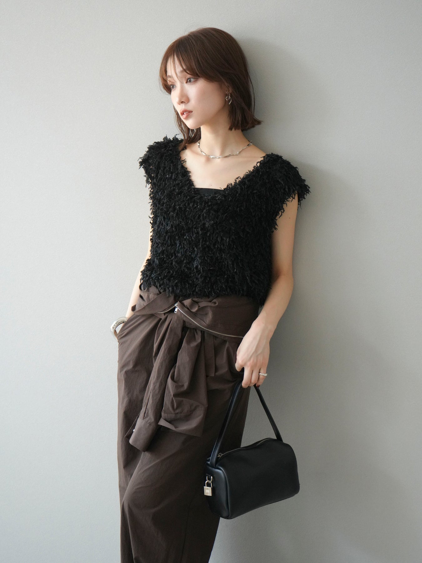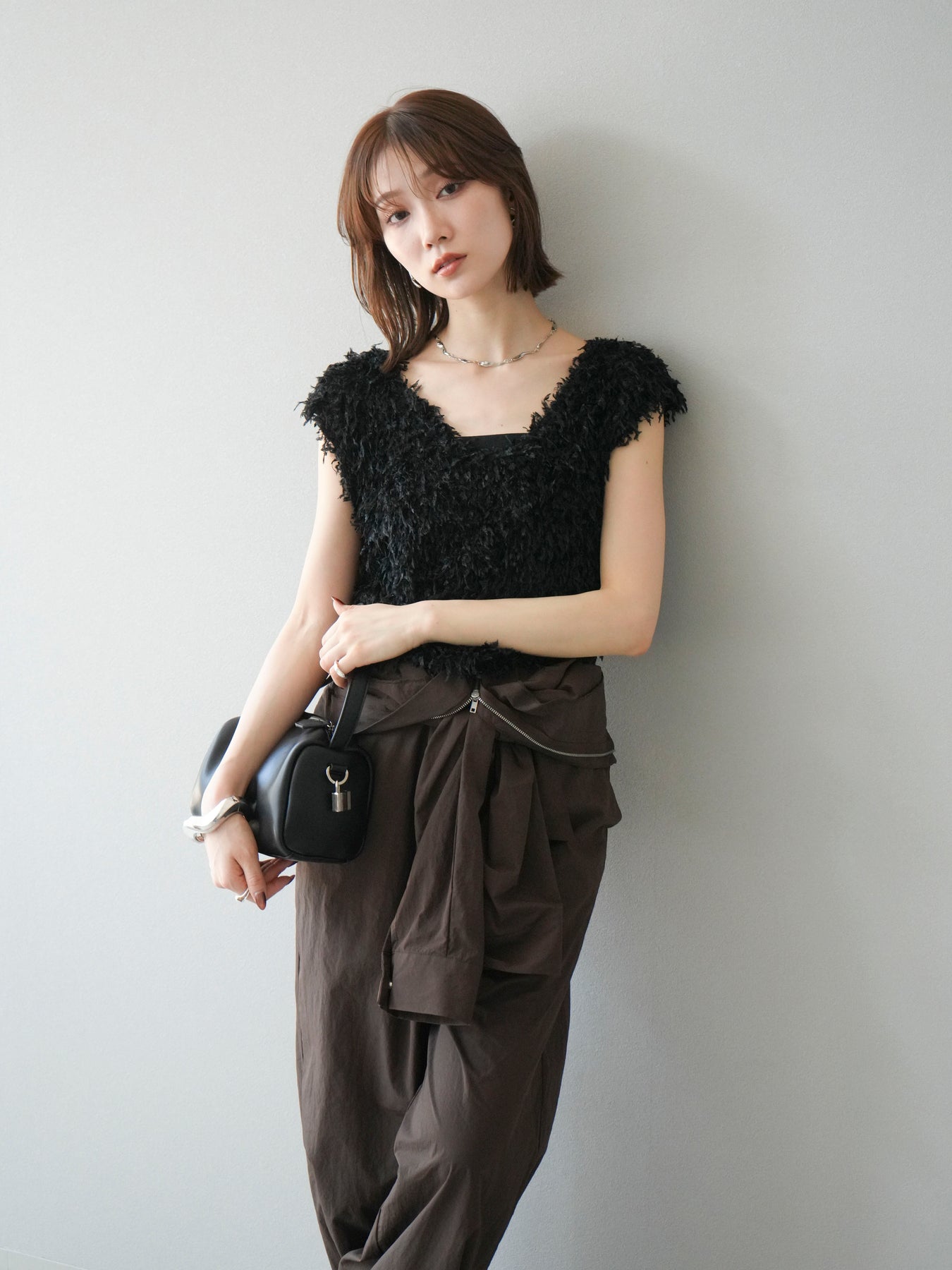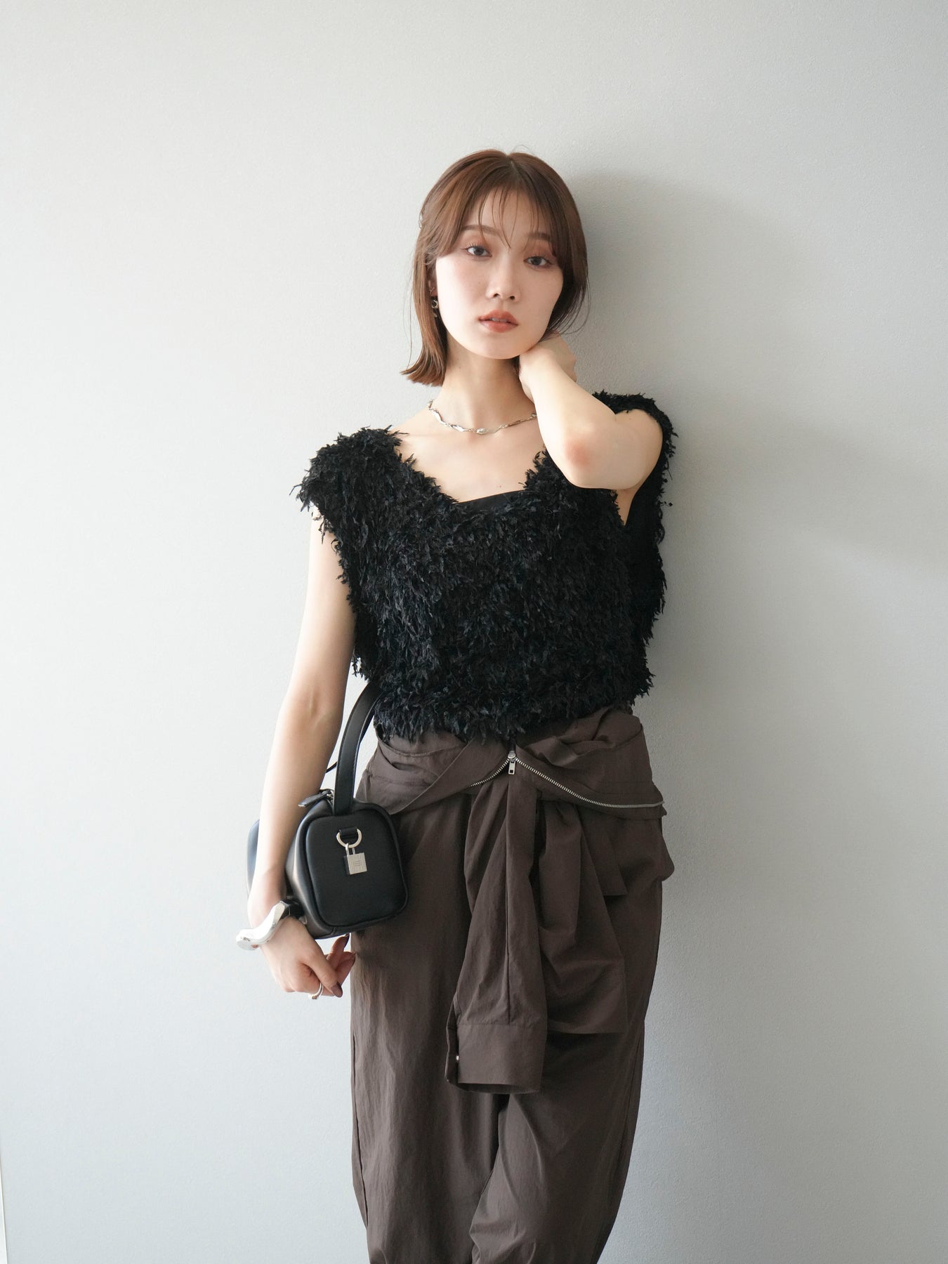 ・お手入れ方法:手洗い水温30℃以下、おしゃれ着用液体洗剤または中性洗剤のご使用をお薦めします。素材の特性上、洗濯の際に色落ちが生じる恐れがありますので単独で・短時間でのお洗濯をお薦めします。洗濯後は形を整えてから陰干ししてください。アイロンはご使用いただけません。※タンブラー乾燥は控え、色物とは分けてください。濡れたままの状態で擦れると、色落ち色移りすることがあります。つけ置き洗いや雨や汗で濡れたまま放置は避け、速やかに処理してください。着用中の摩擦や汗、水濡れ、濃淡差があるものとの重ね着にご注意ください。