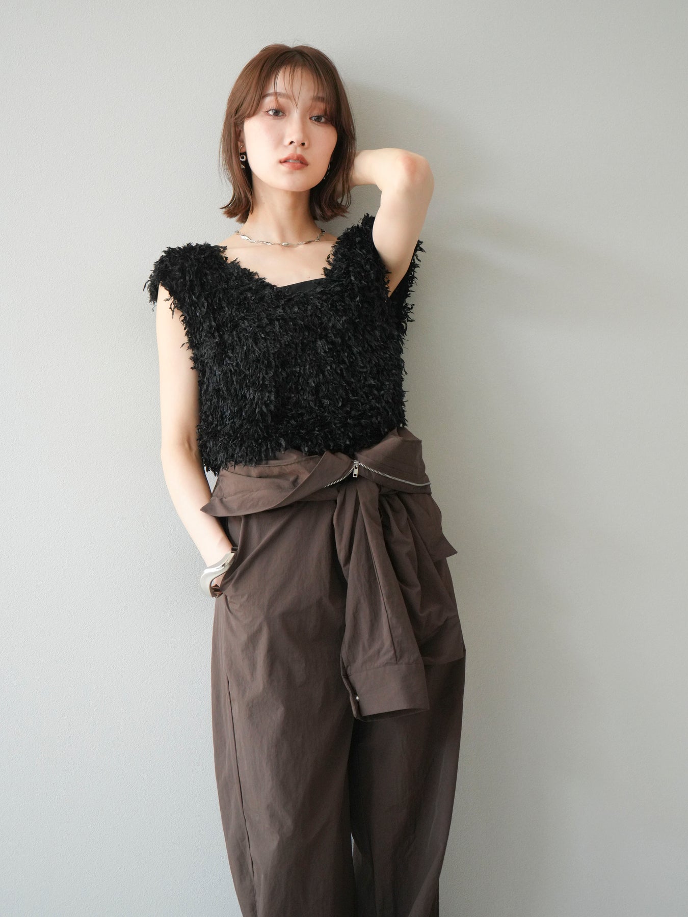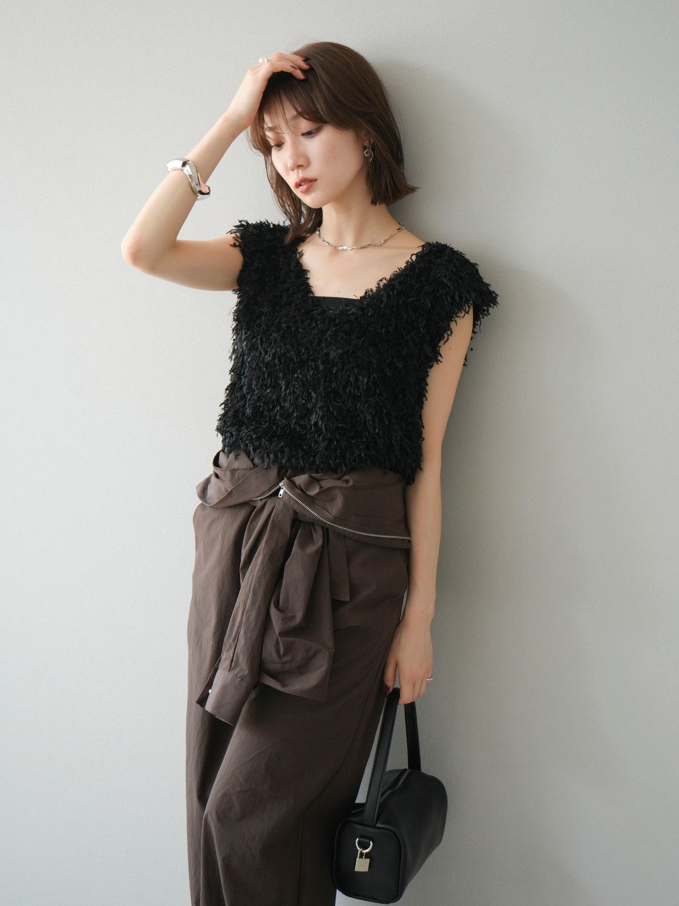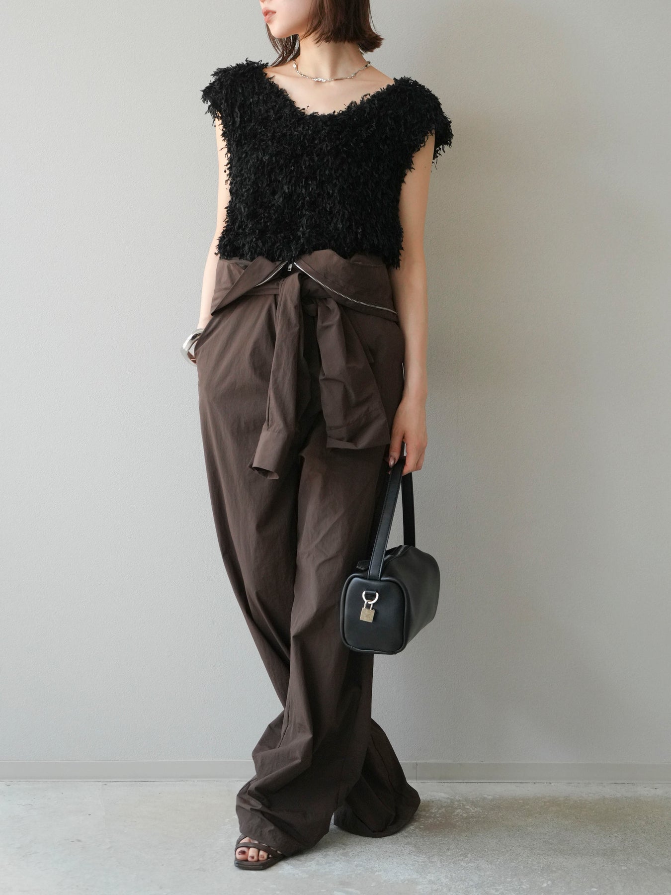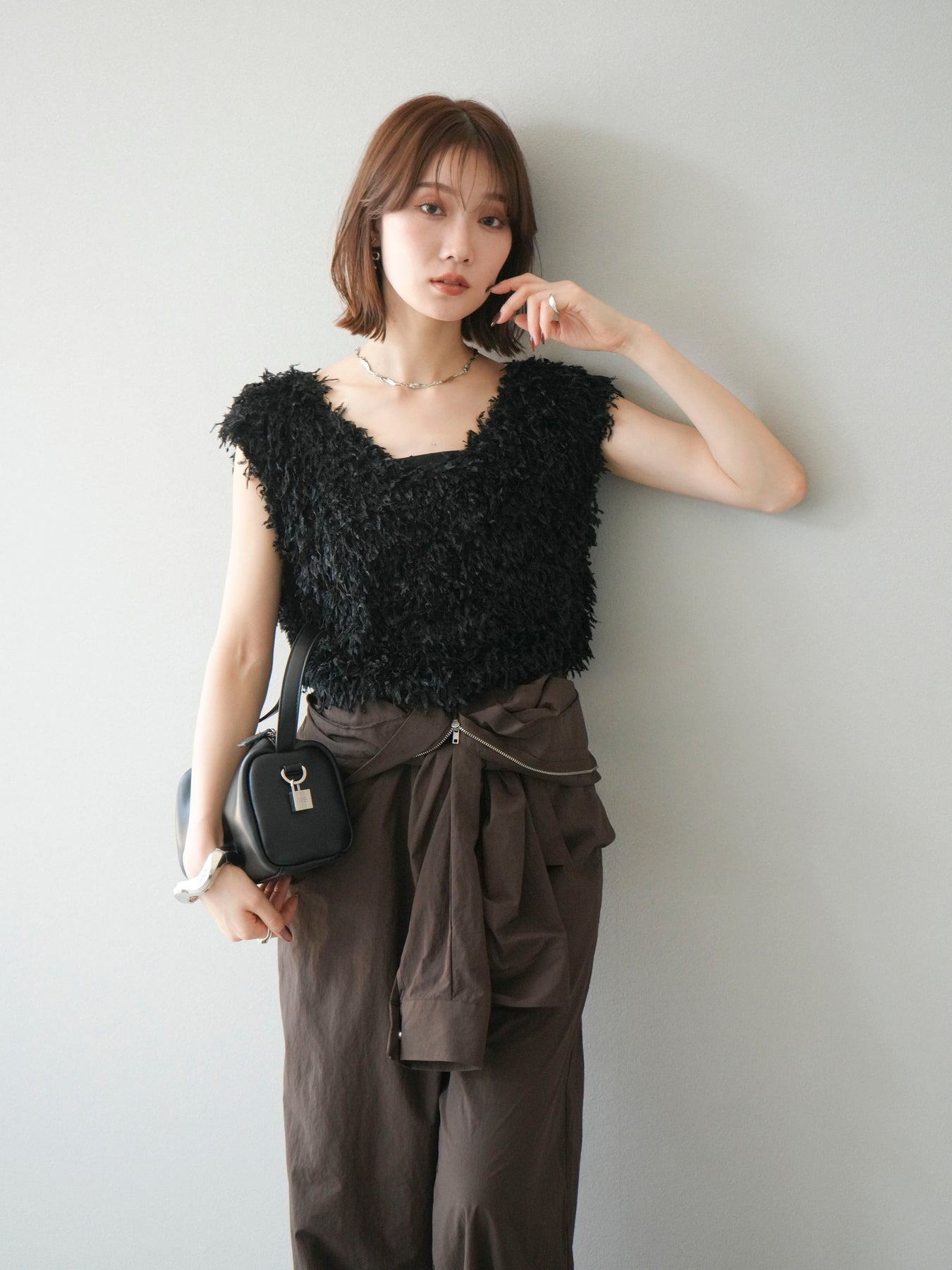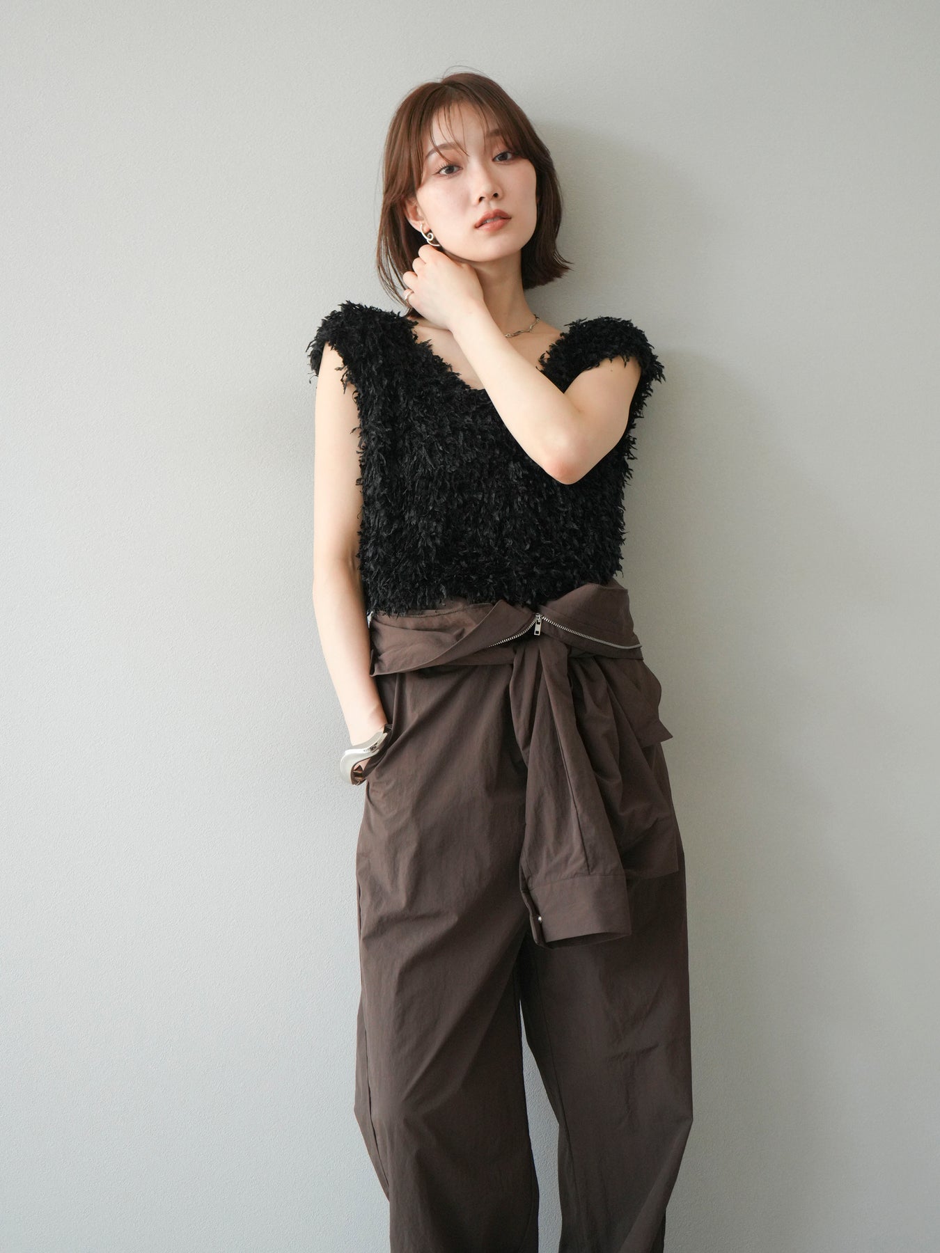 ・お手入れ方法:手洗い水温30℃以下、おしゃれ着用液体洗剤または中性洗剤のご使用をお薦めします。素材の特性上、洗濯の際に色落ちが生じる恐れがありますので単独で・短時間でのお洗濯をお薦めします。洗濯後は形を整えてから陰干ししてください。アイロンはご使用いただけません。※タンブラー乾燥は控え、色物とは分けてください。濡れたままの状態で擦れると、色落ち色移りすることがあります。つけ置き洗いや雨や汗で濡れたまま放置は避け、速やかに処理してください。着用中の摩擦や汗、水濡れ、濃淡差があるものとの重ね着にご注意ください。