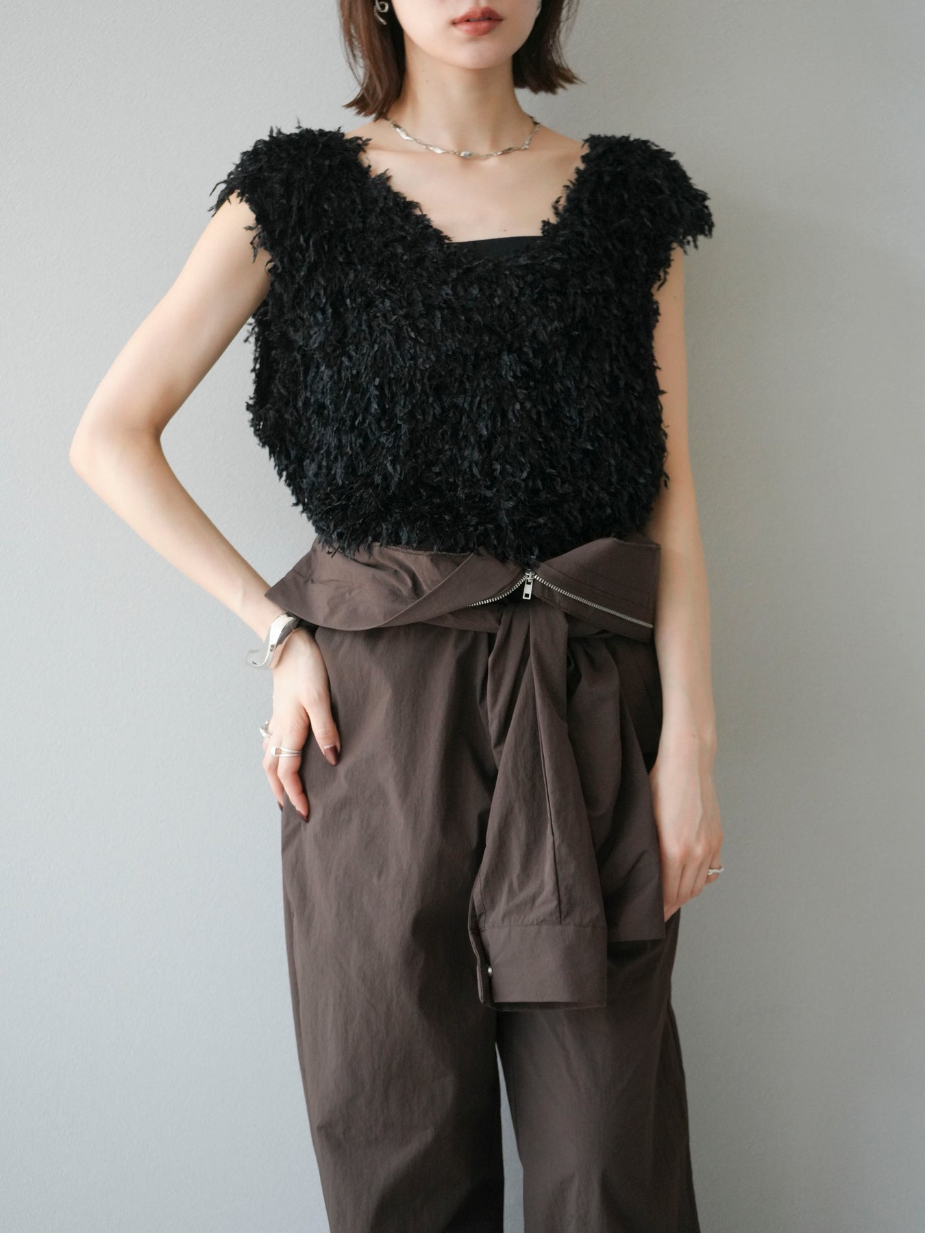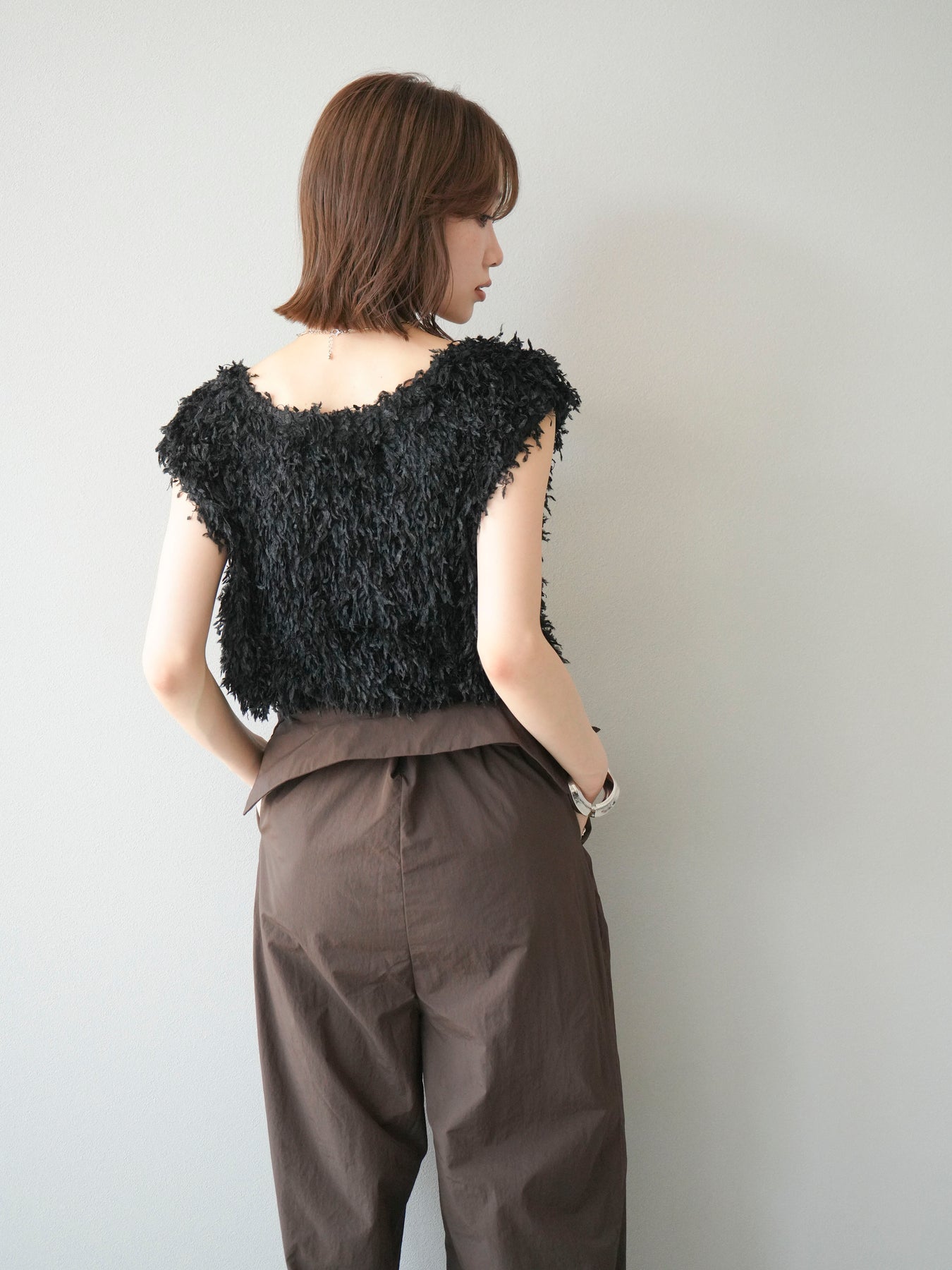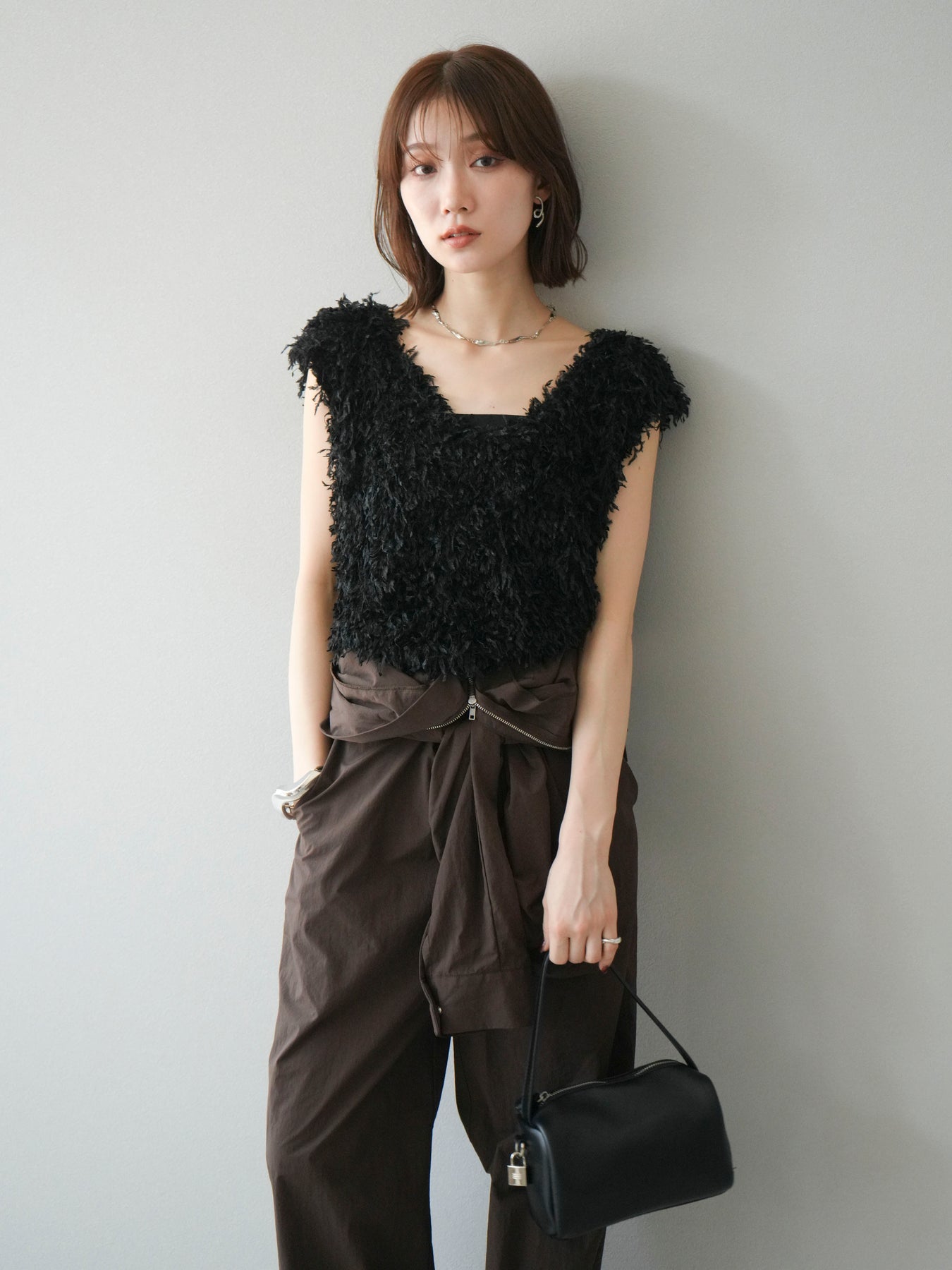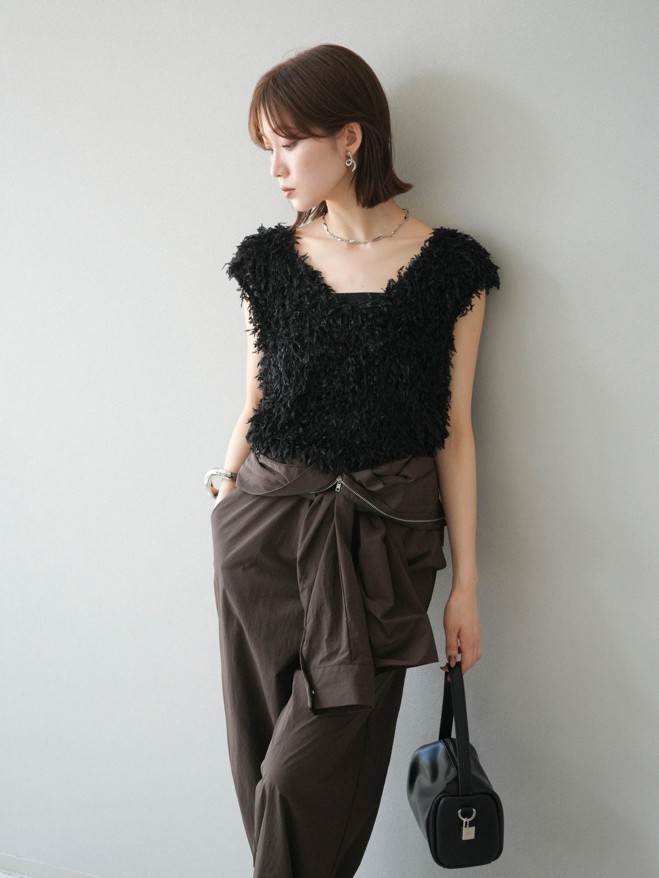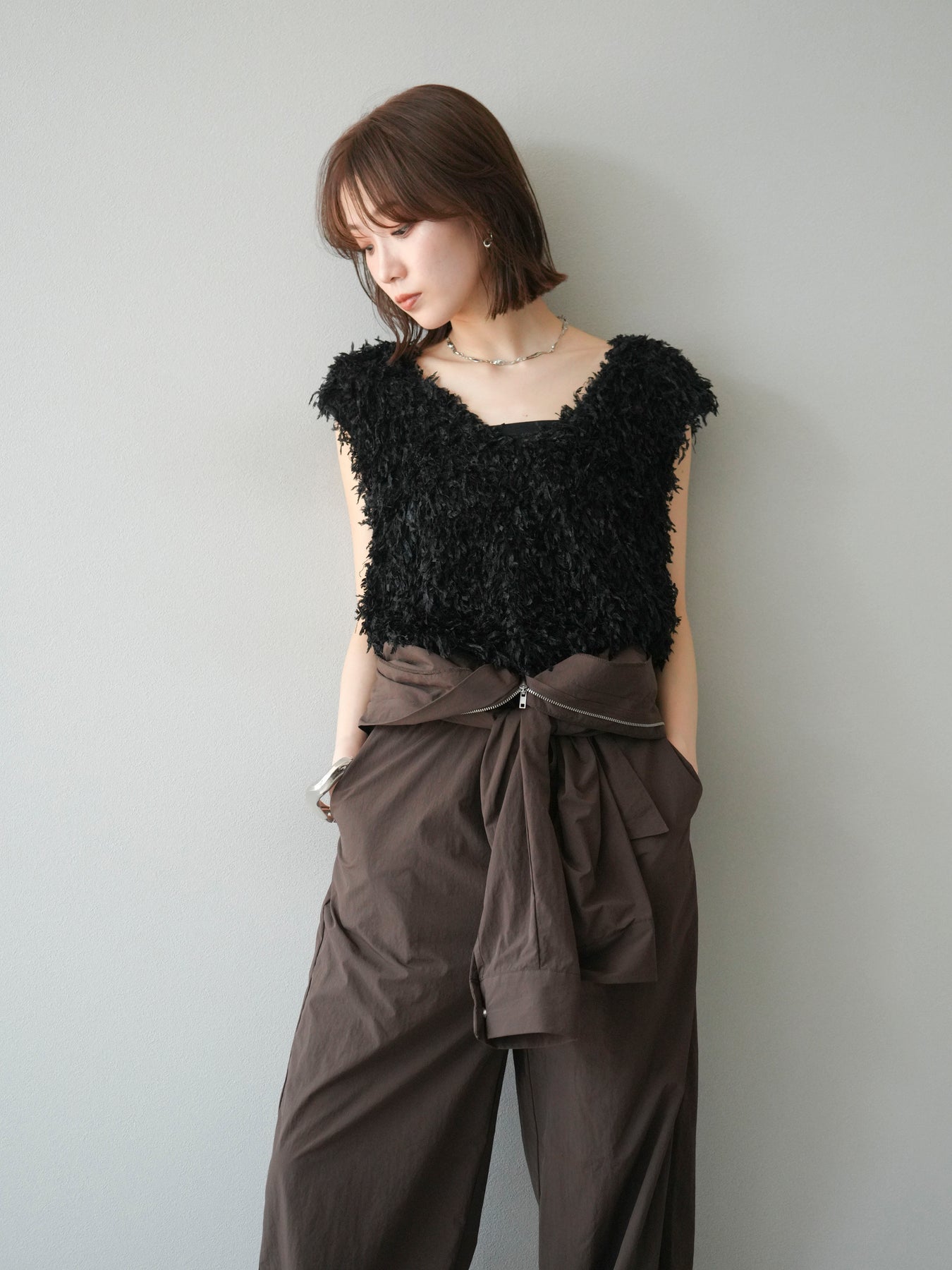 ・お手入れ方法:手洗い水温30℃以下、おしゃれ着用液体洗剤または中性洗剤のご使用をお薦めします。素材の特性上、洗濯の際に色落ちが生じる恐れがありますので単独で・短時間でのお洗濯をお薦めします。洗濯後は形を整えてから陰干ししてください。アイロンはご使用いただけません。※タンブラー乾燥は控え、色物とは分けてください。濡れたままの状態で擦れると、色落ち色移りすることがあります。つけ置き洗いや雨や汗で濡れたまま放置は避け、速やかに処理してください。着用中の摩擦や汗、水濡れ、濃淡差があるものとの重ね着にご注意ください。