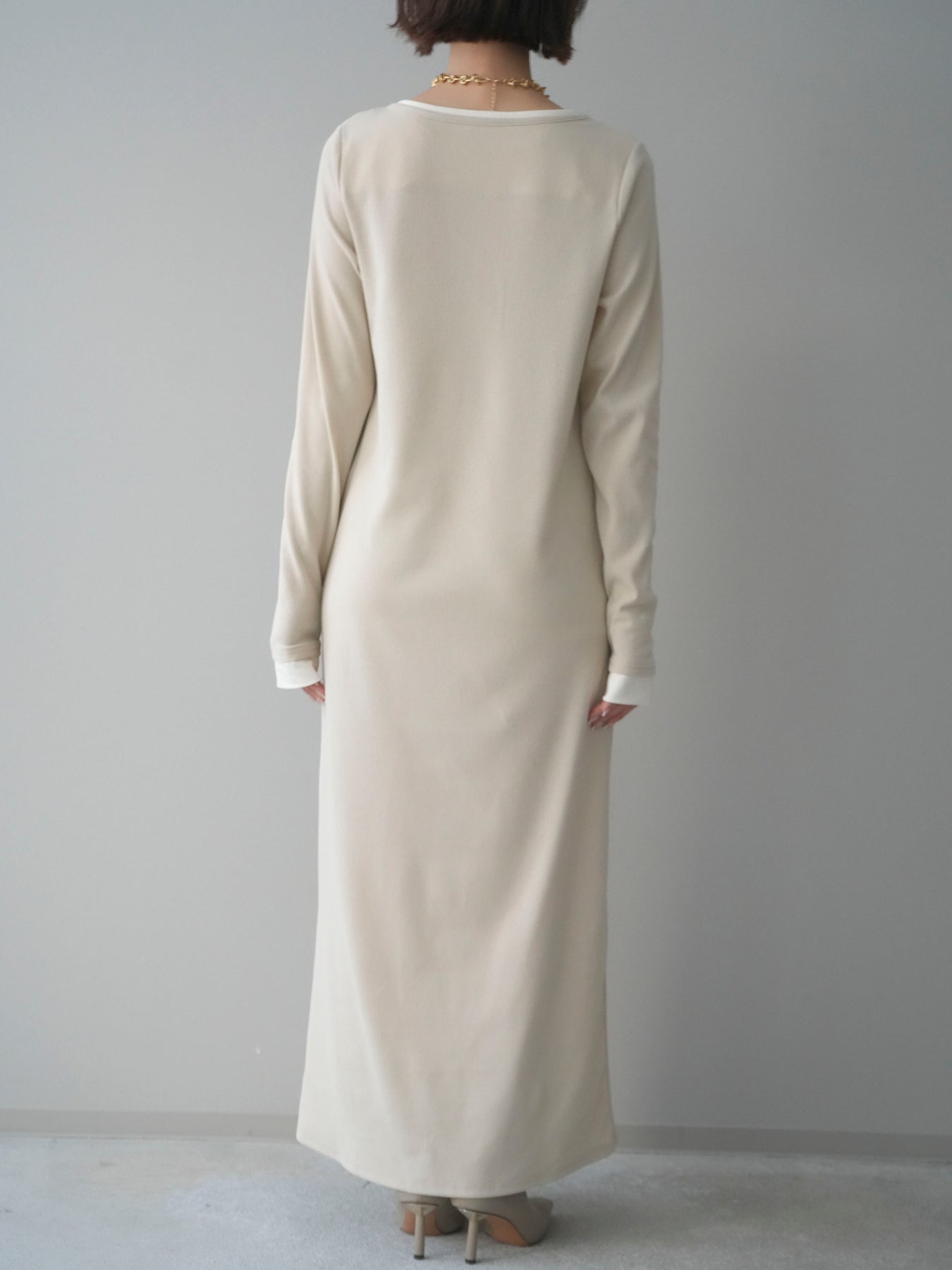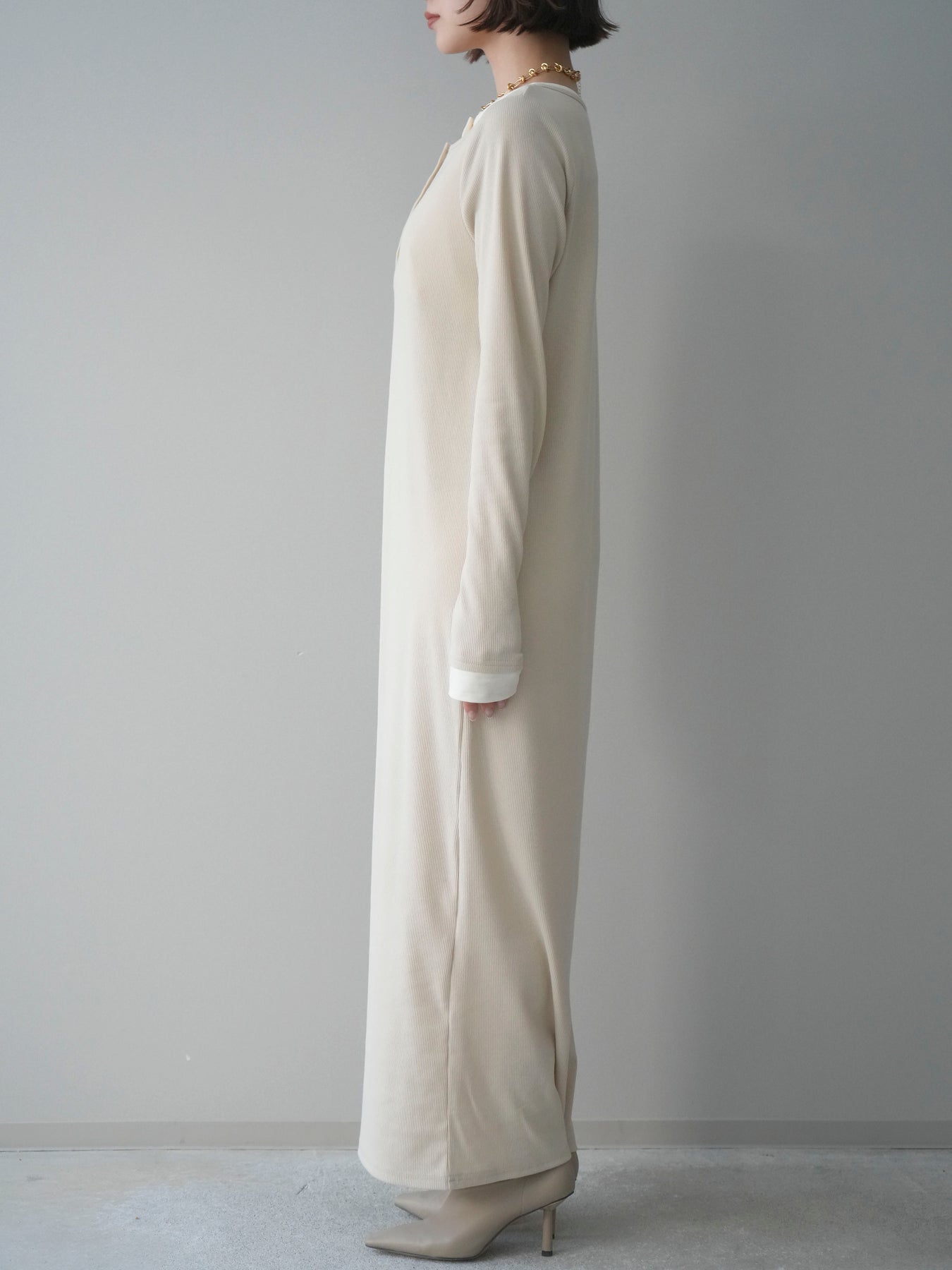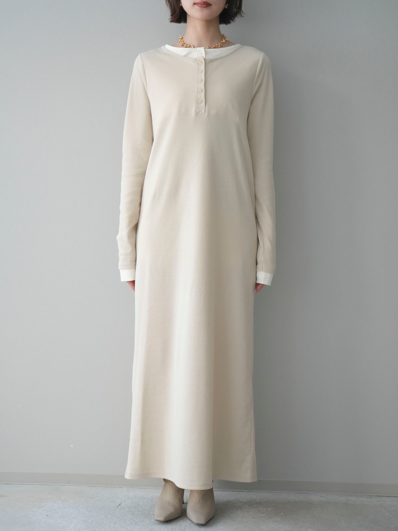 [予約]配色レイヤードヘンリーネックカットリブワンピース/ivory