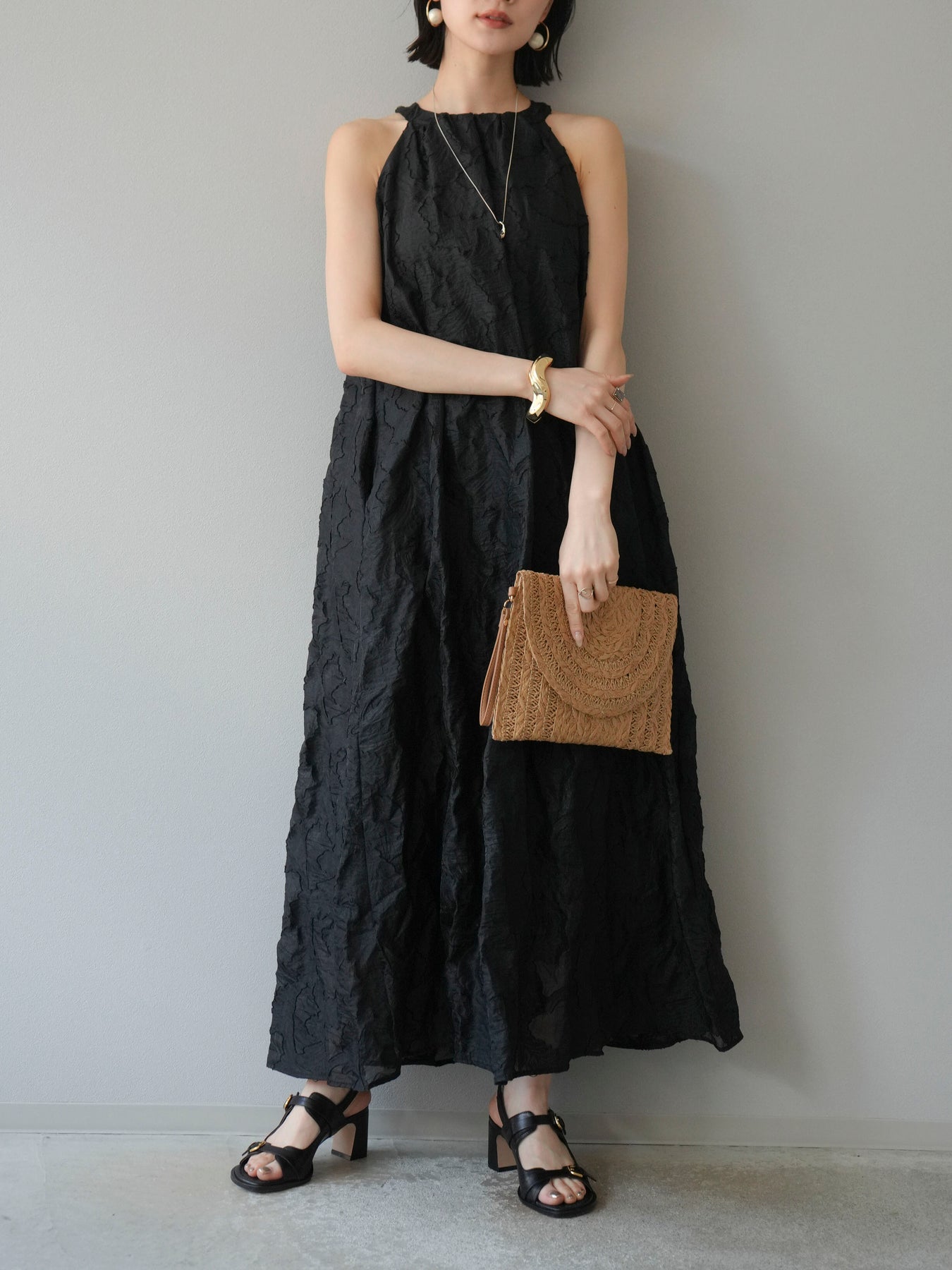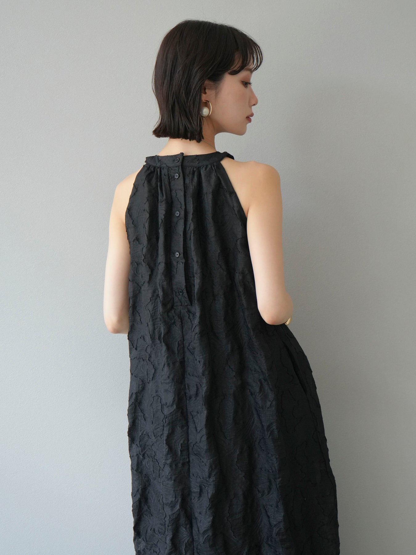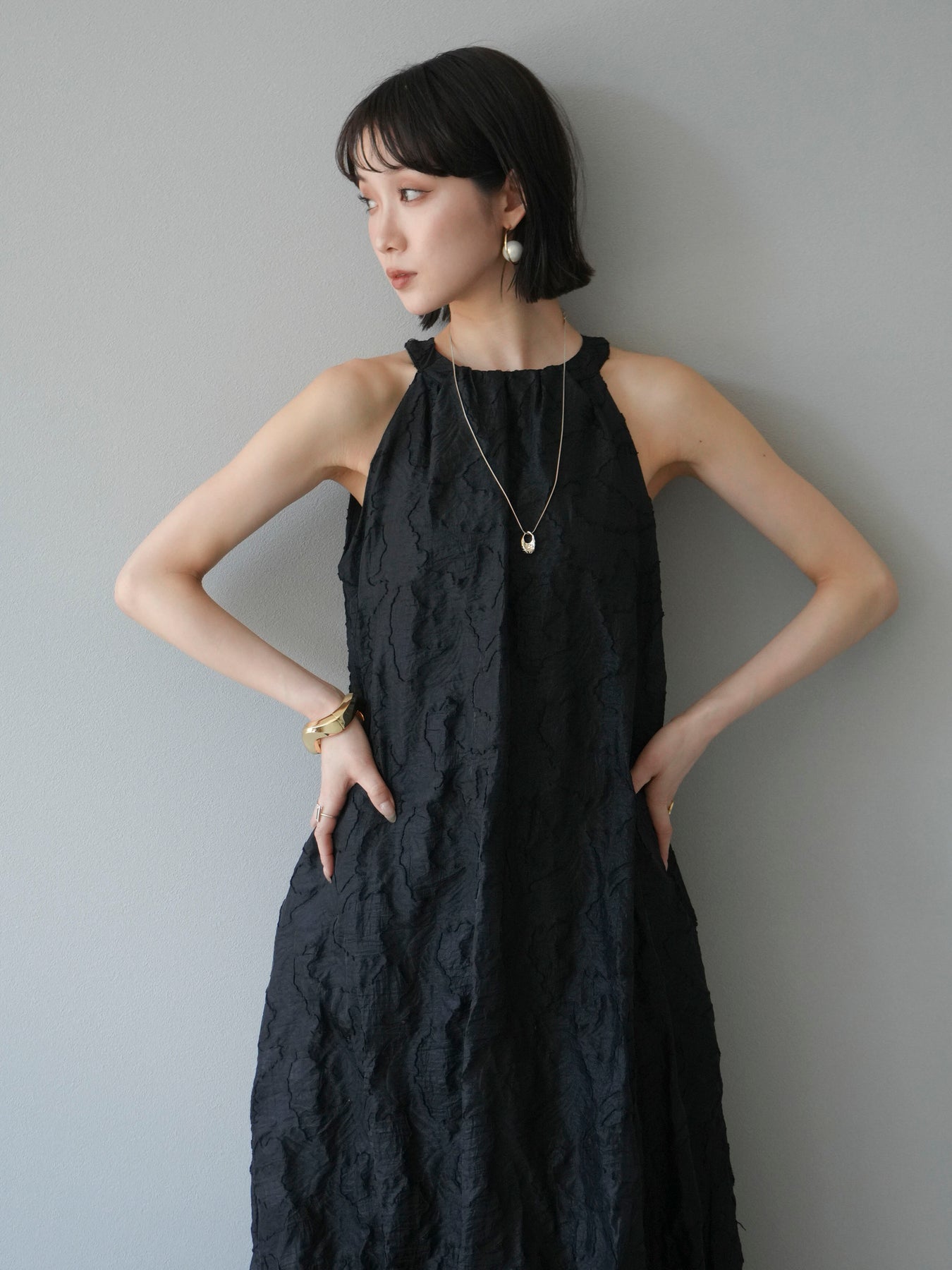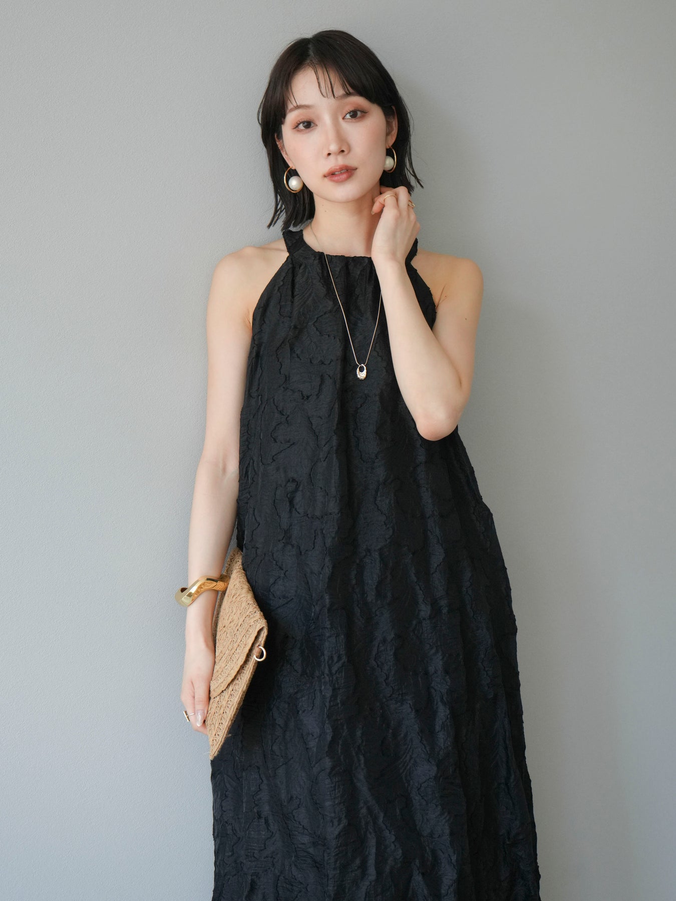 採用流行提花布料製成的露背洋裝。精緻的立體圖案和柔和的A字廓形,更添魅力。頸部的露背設計不僅凸顯肩頸曲線,更能展現健康肌膚。這件單品本身就極具存在感,足以成為眾人矚目的焦點。 ※除下裝、吊帶背心(內衣)以外的商品均為標準品,不含內衣。