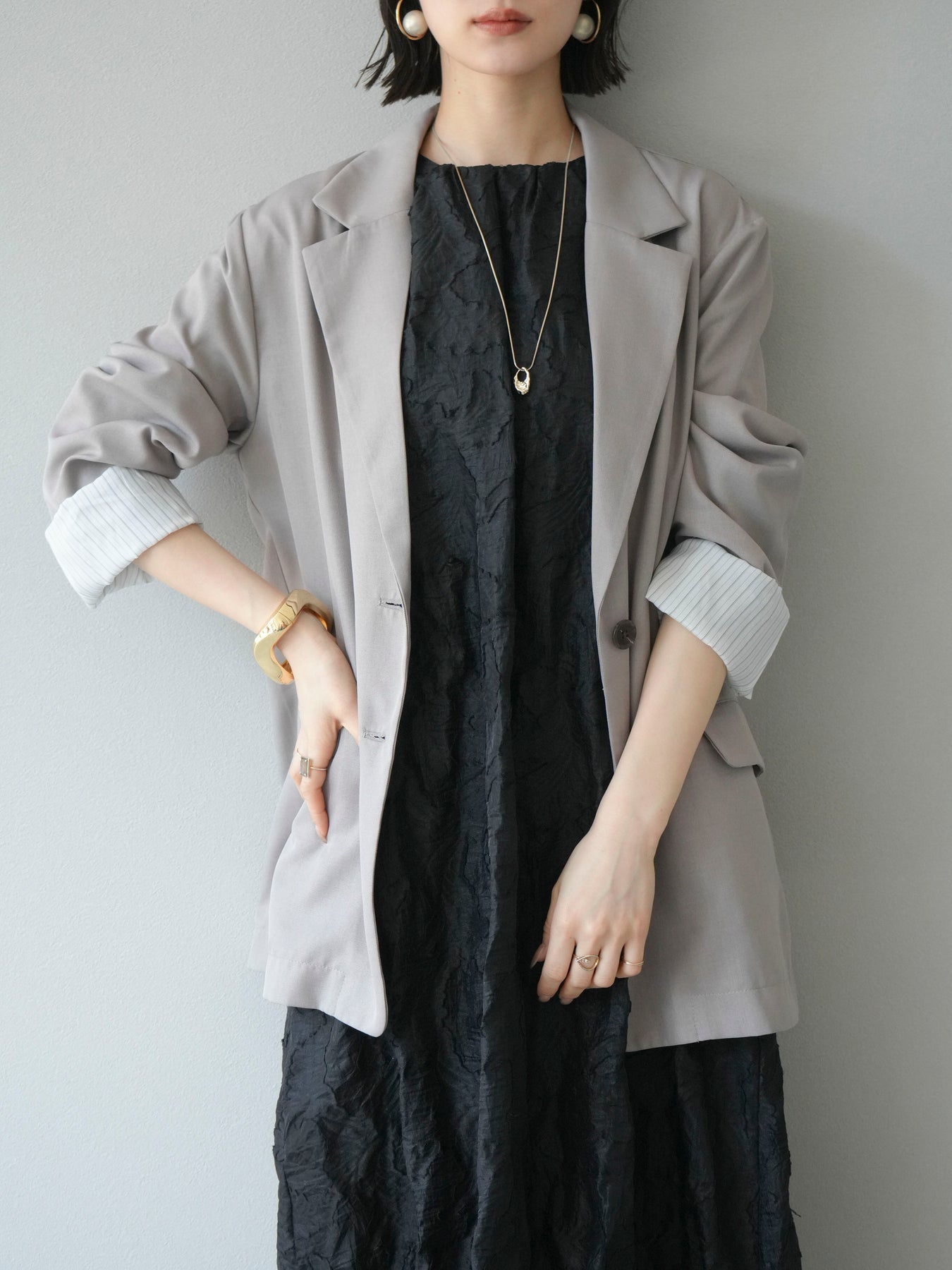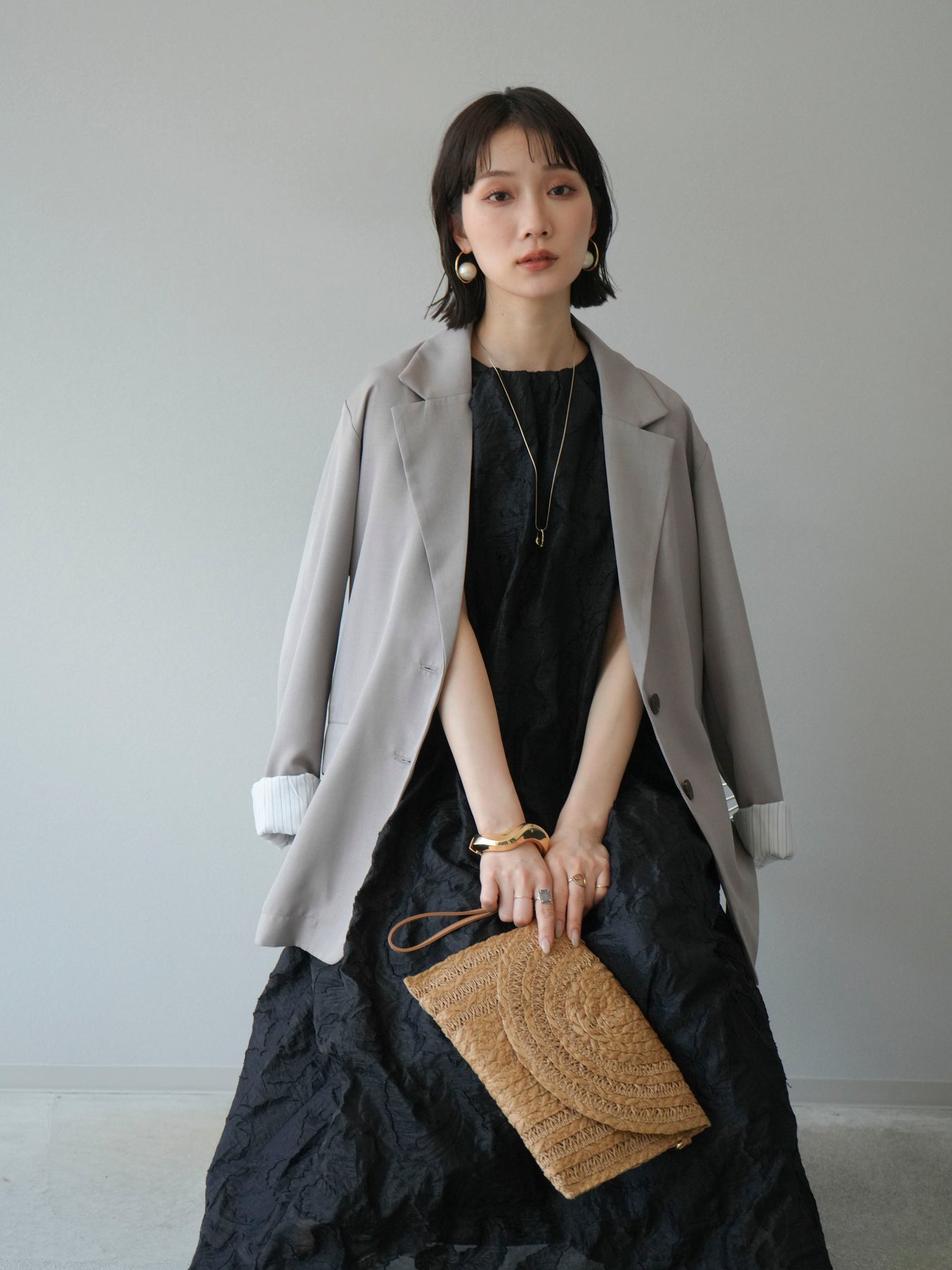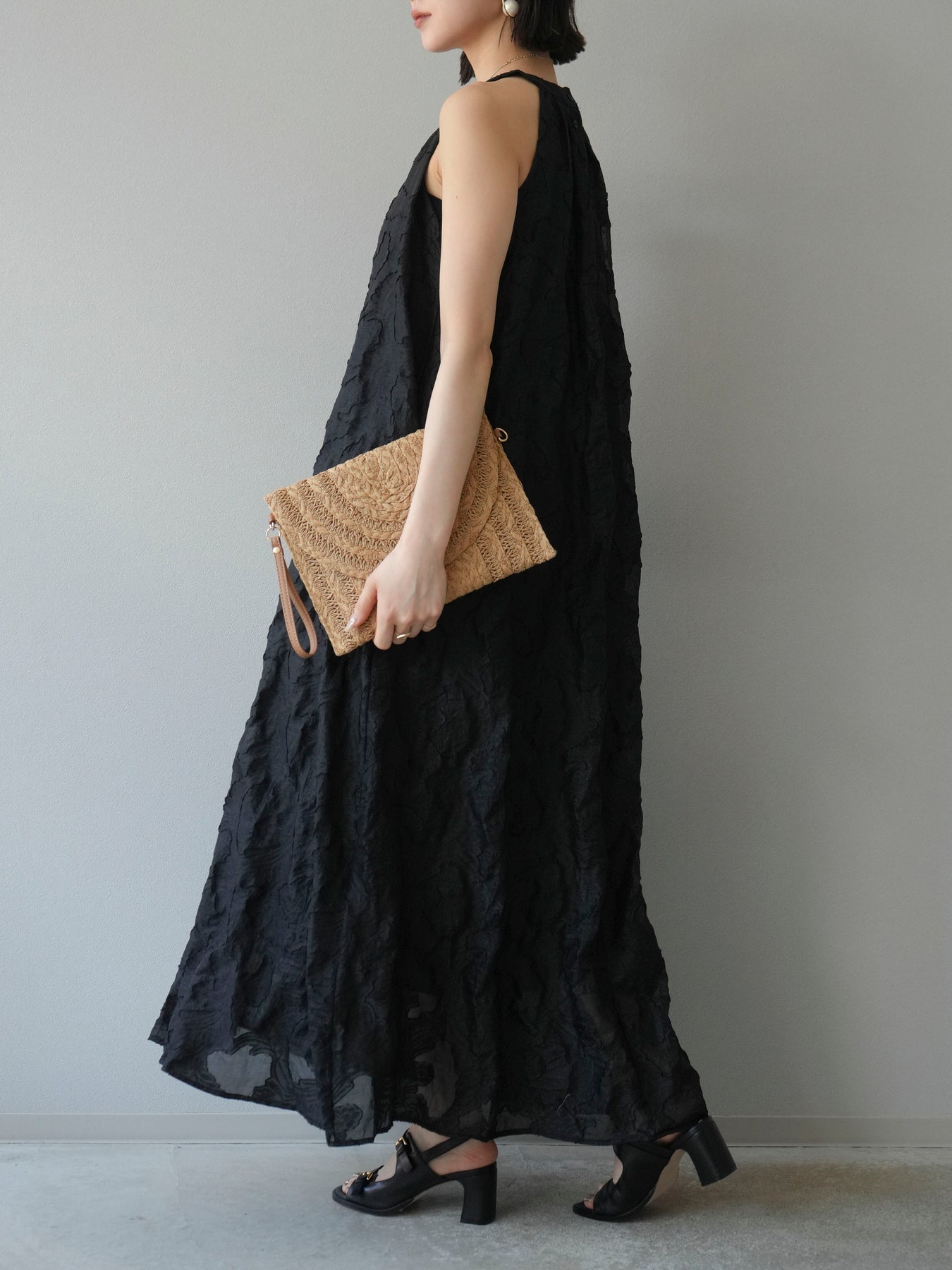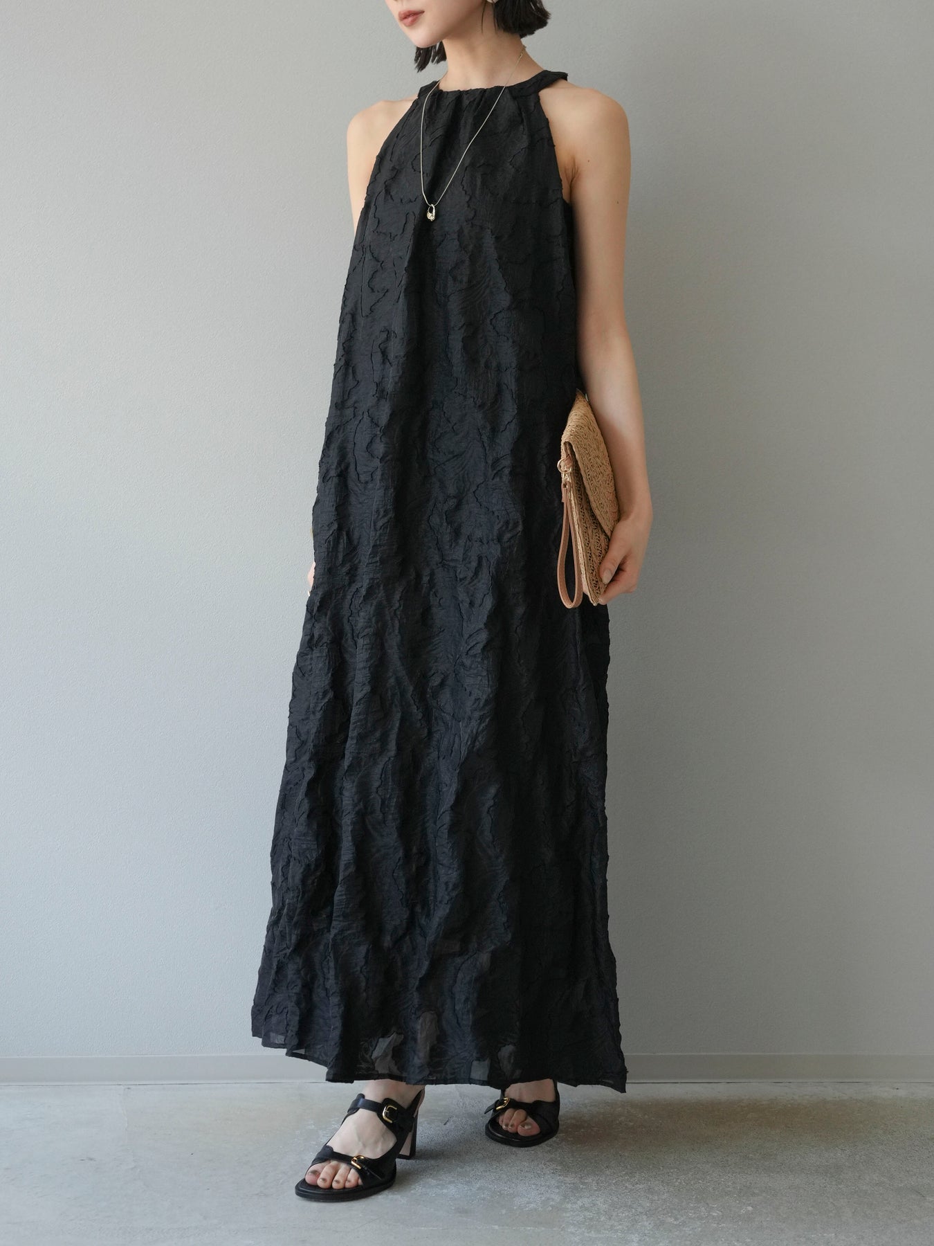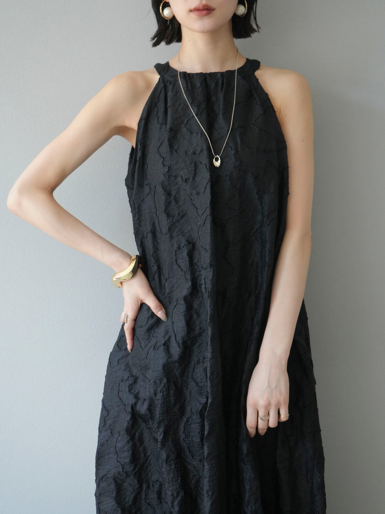 採用流行提花布料製成的露背洋裝。精緻的立體圖案和柔和的A字廓形,更添魅力。頸部的露背設計不僅凸顯肩頸曲線,更能展現健康肌膚。這件單品本身就極具存在感,足以成為眾人矚目的焦點。 ※除下裝、吊帶背心(內衣)以外的商品均為標準品,不含內衣。