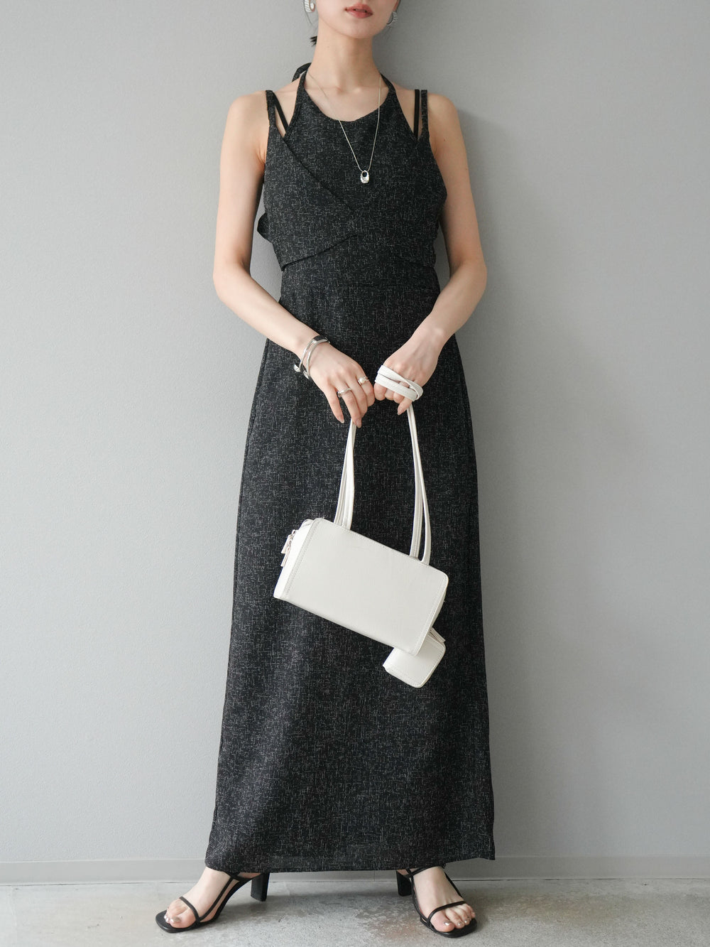 [預購] 夏季粗花呢露背吊帶洋裝/黑色