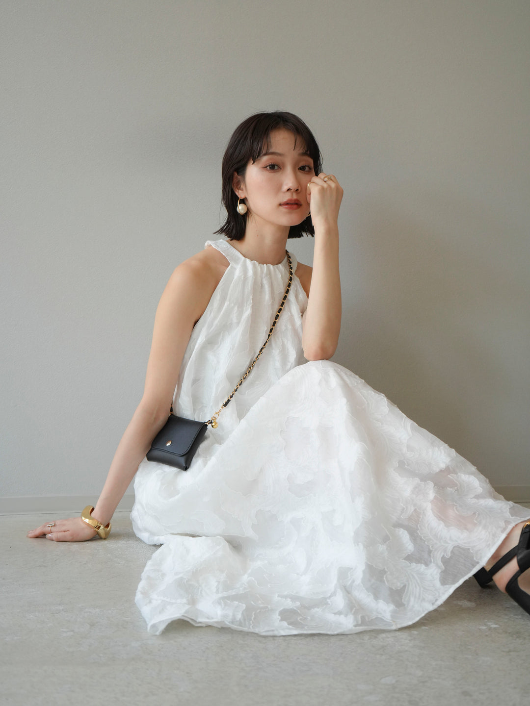 [預訂] 流蘇提花吊帶連身裙/象牙色