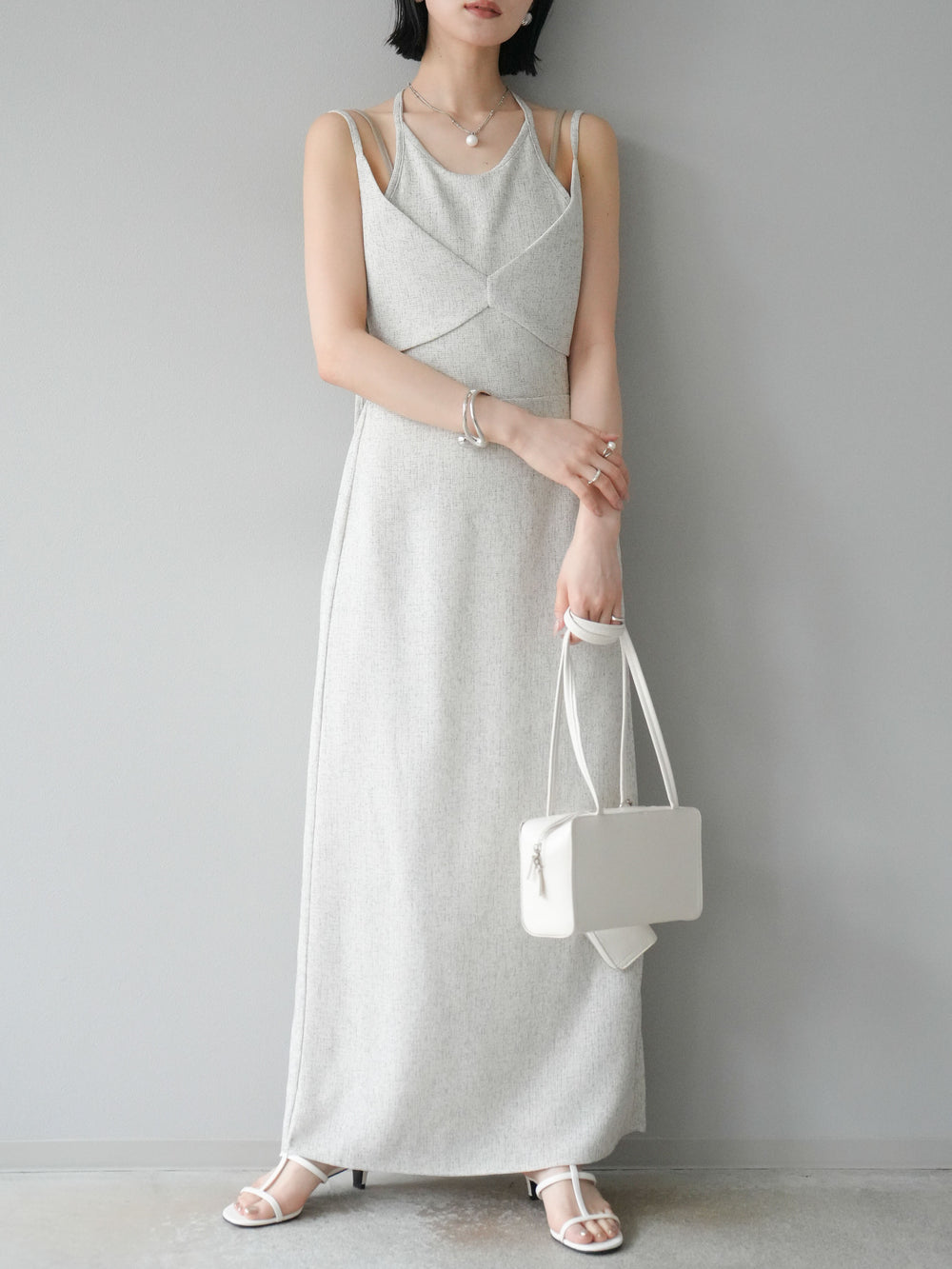 [預購] 夏季粗花呢層疊吊帶洋裝/象牙白