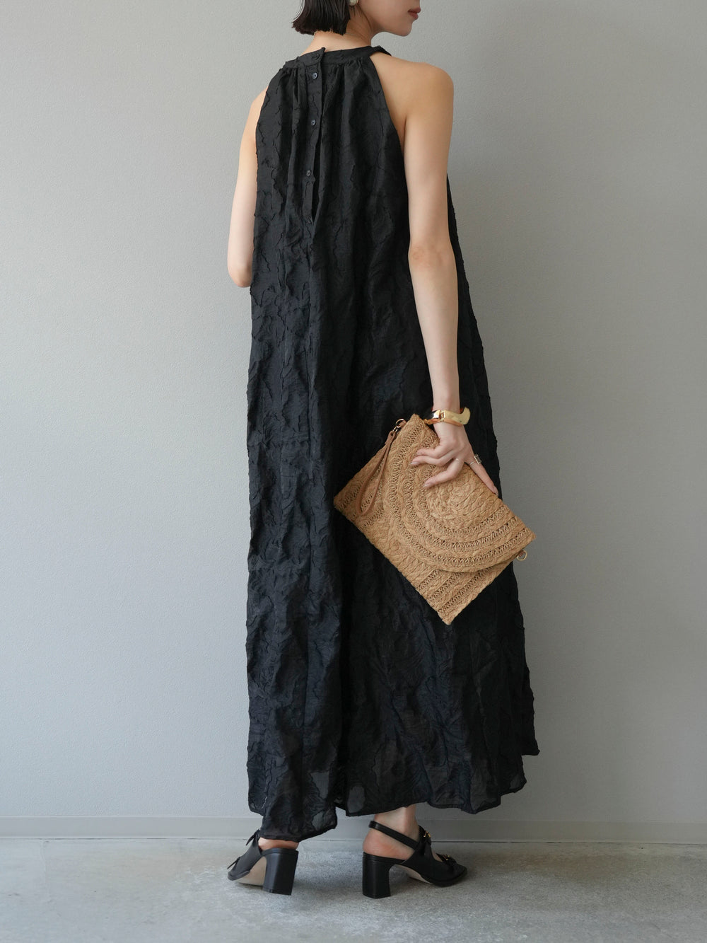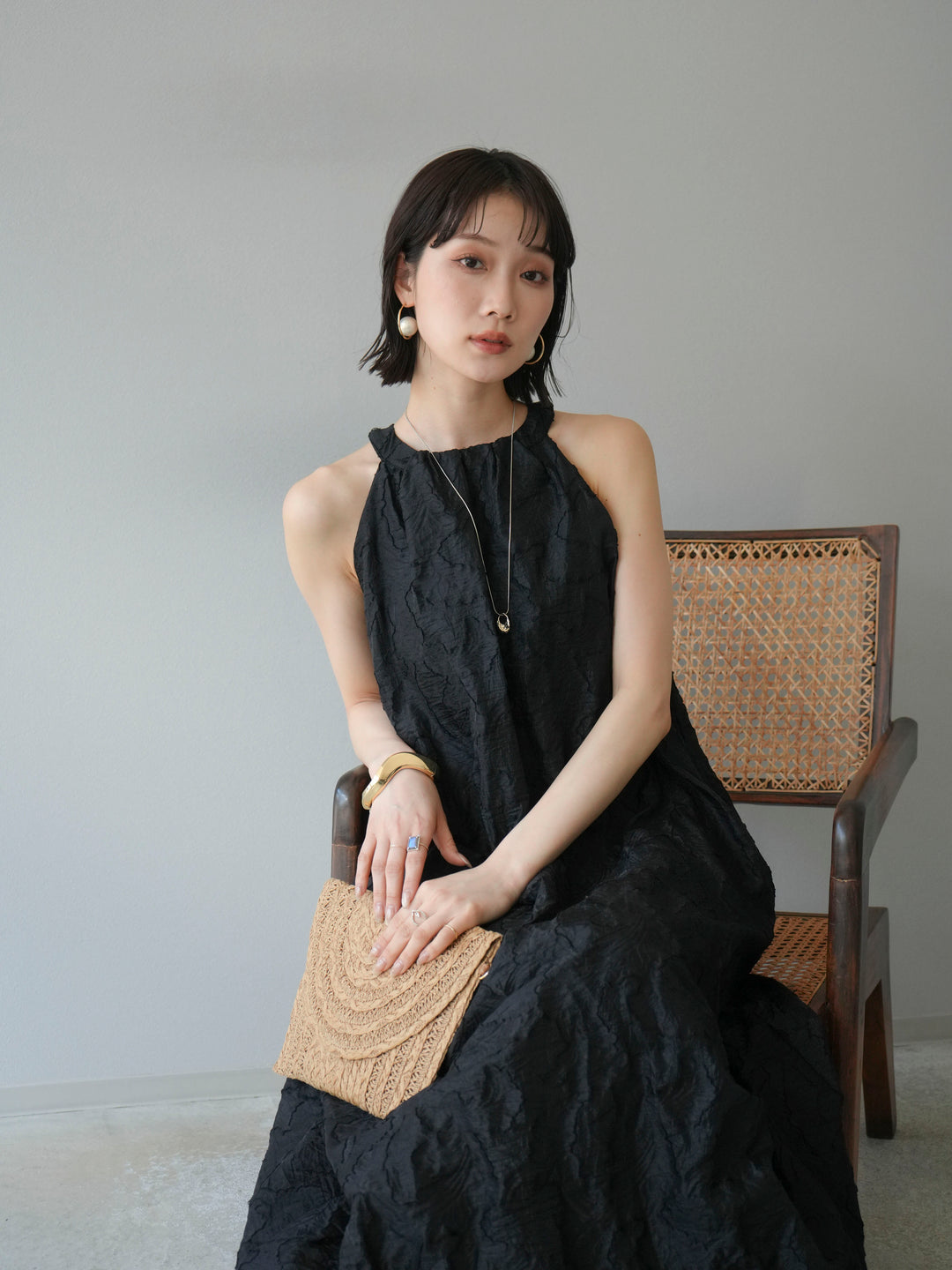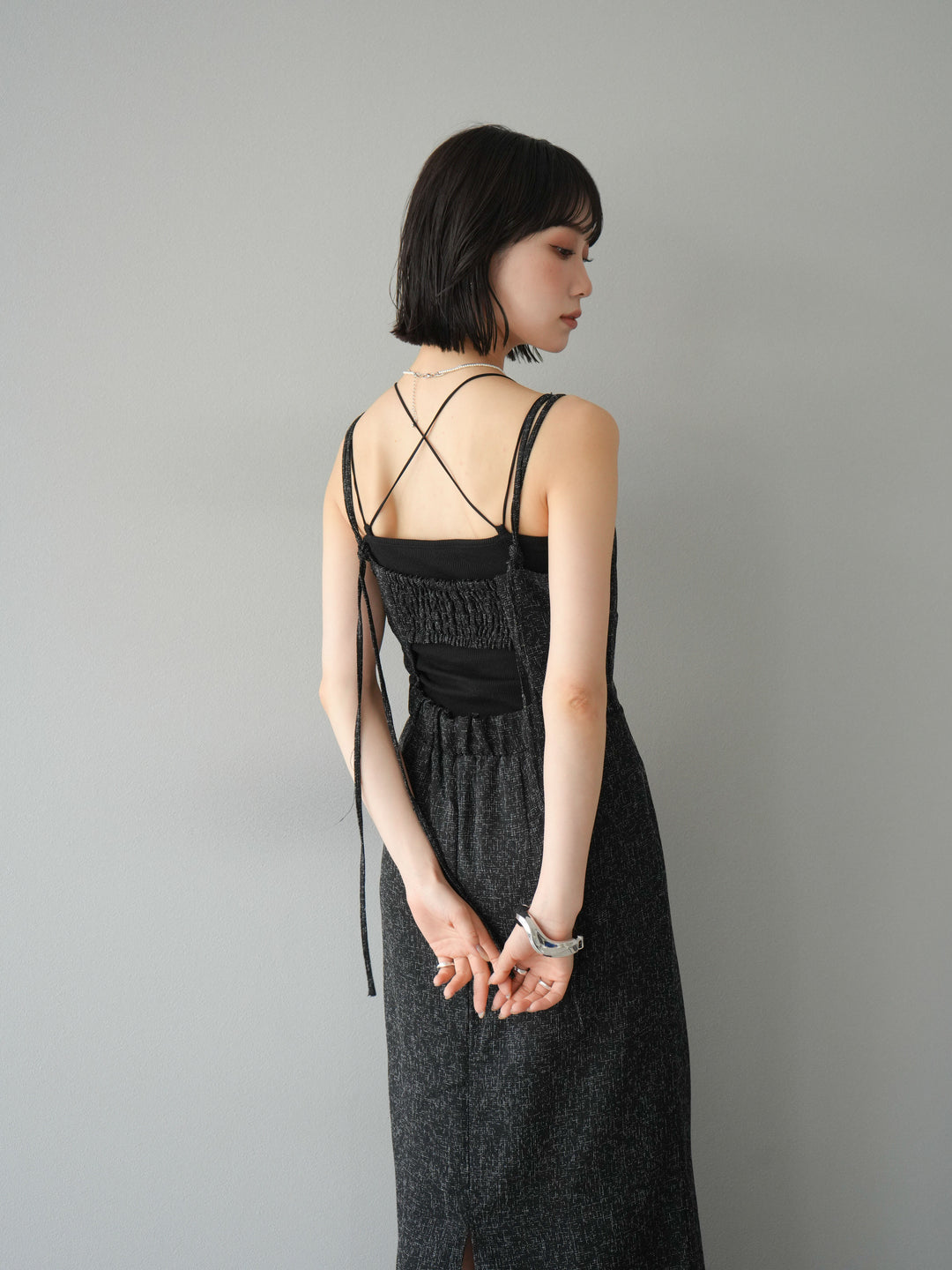[預訂] 流蘇提花吊帶洋裝/黑色