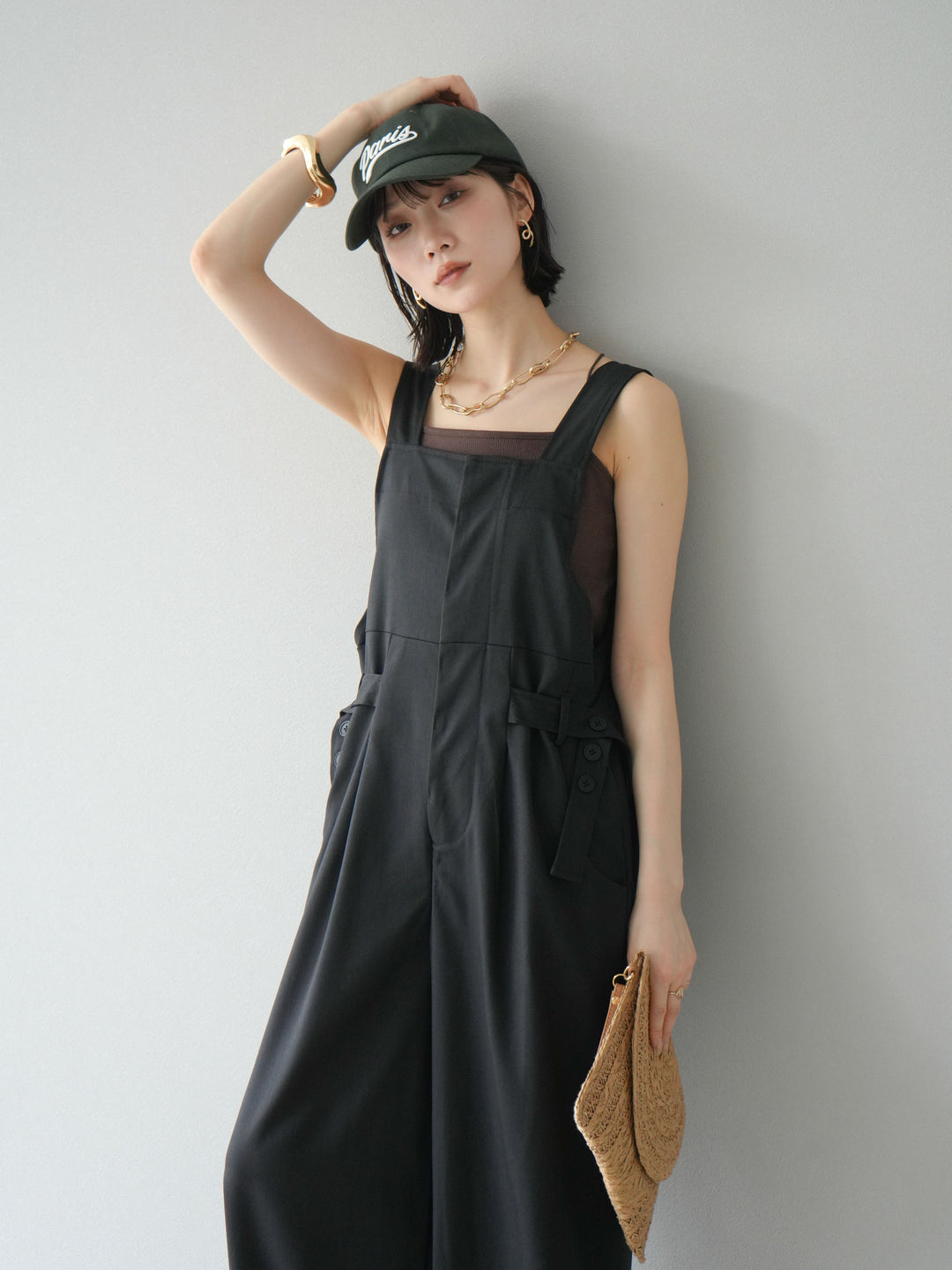 [預購] 牛仔褶飾吊帶洋裝/灰色