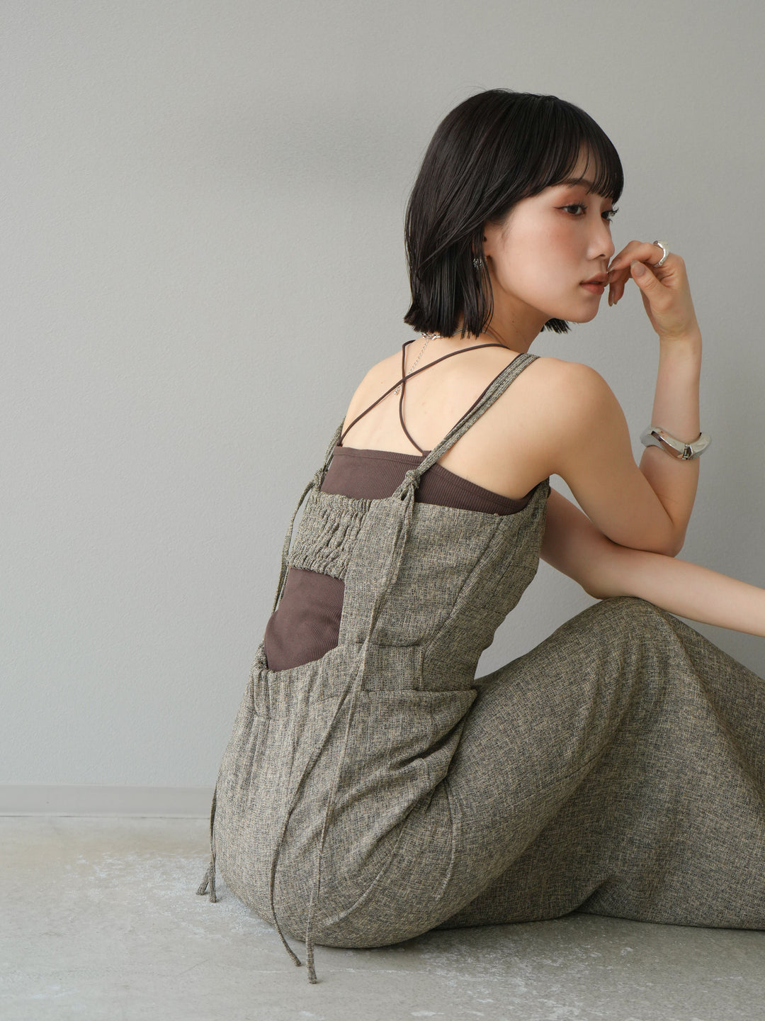 [預購] 夏季粗花呢層疊吊帶洋裝/棕色