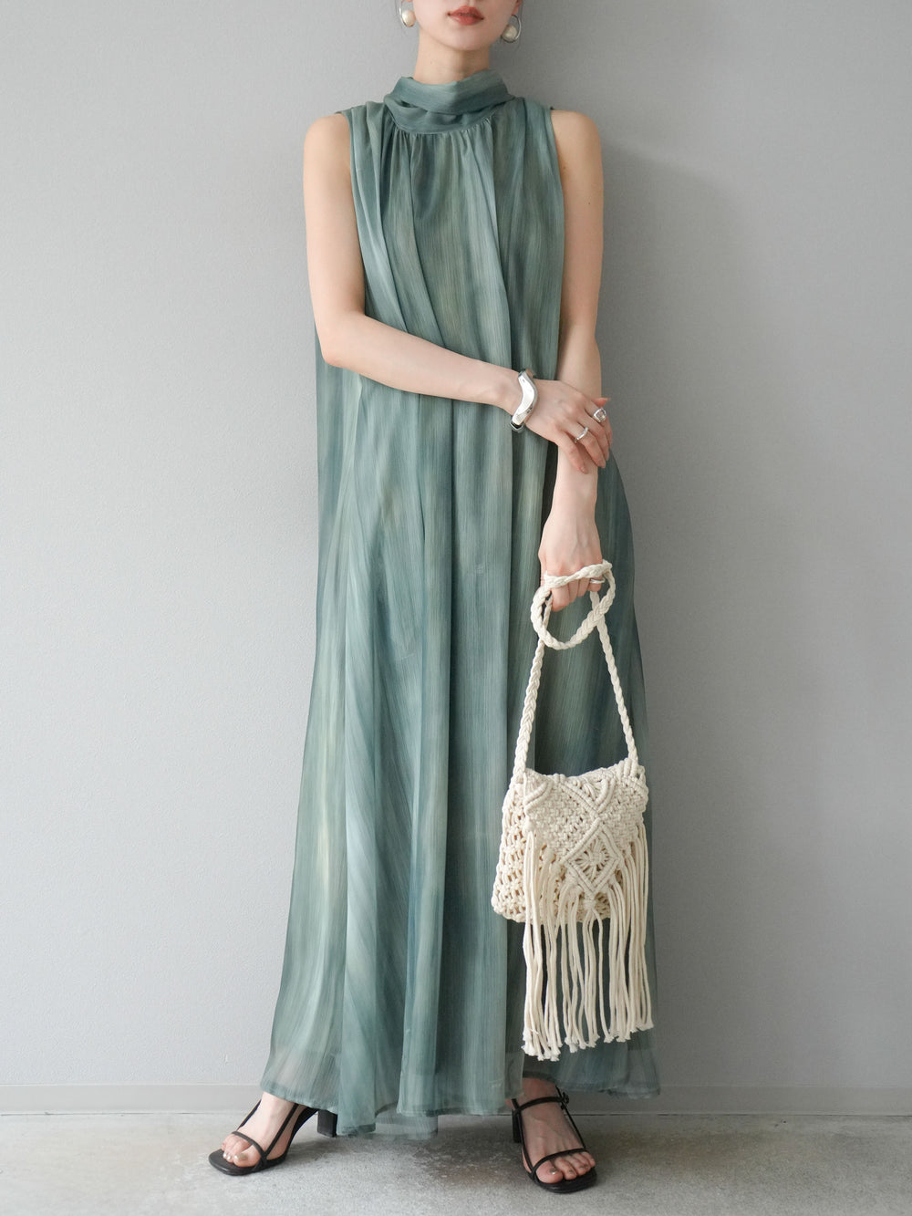 [預購] 精緻圖案掛脖透視洋裝/綠色