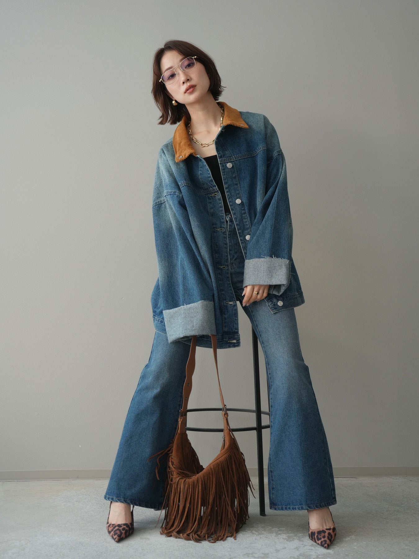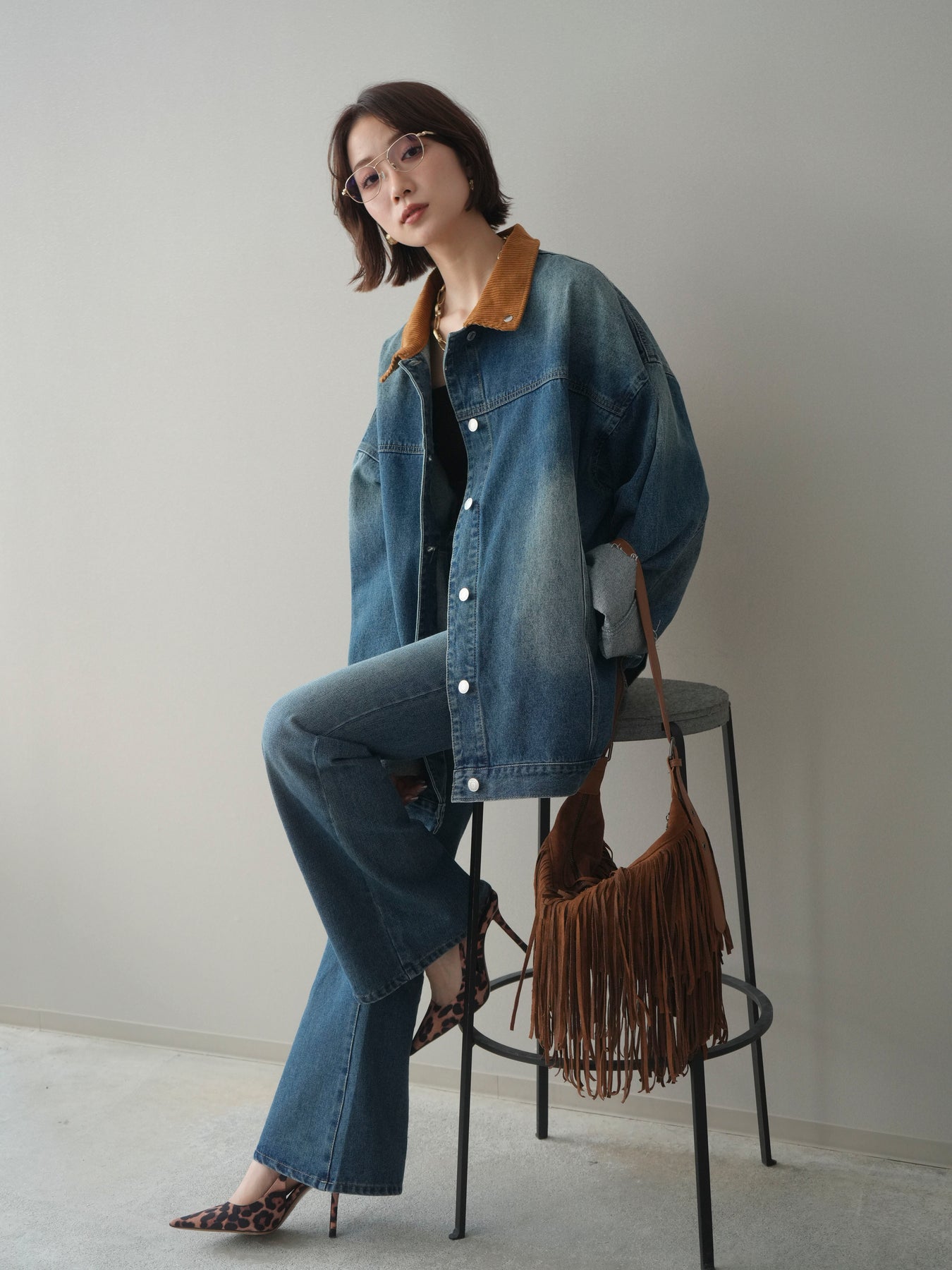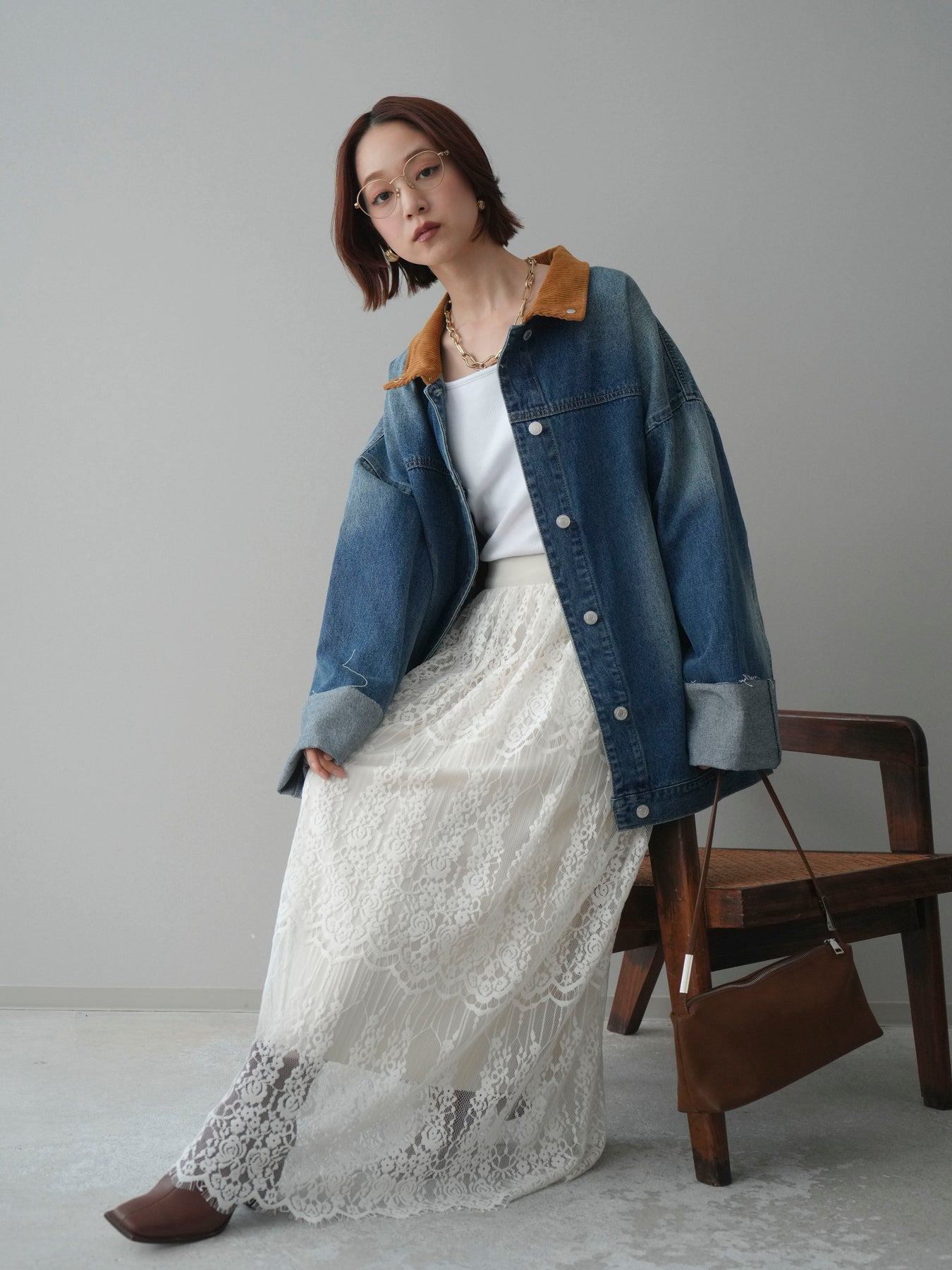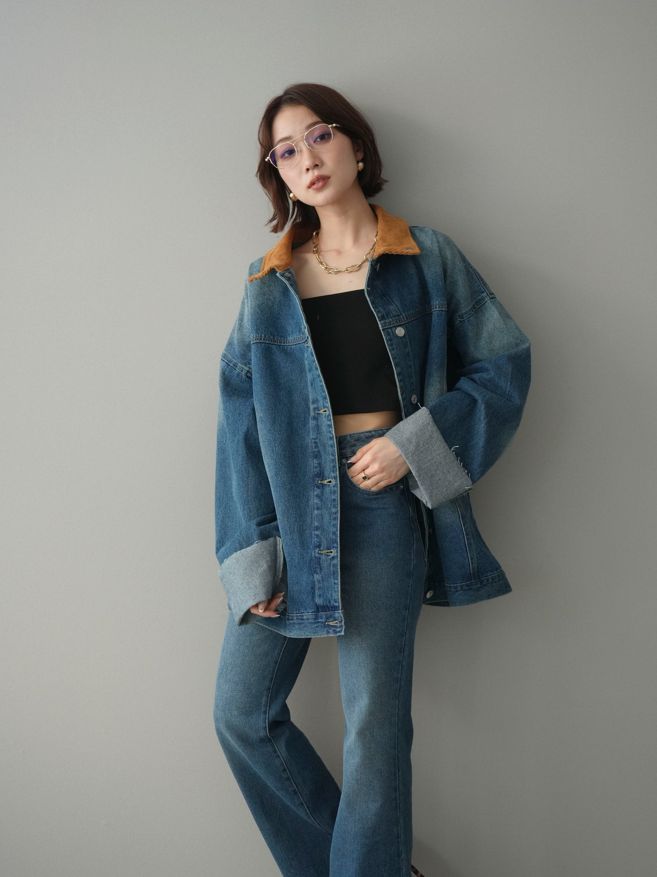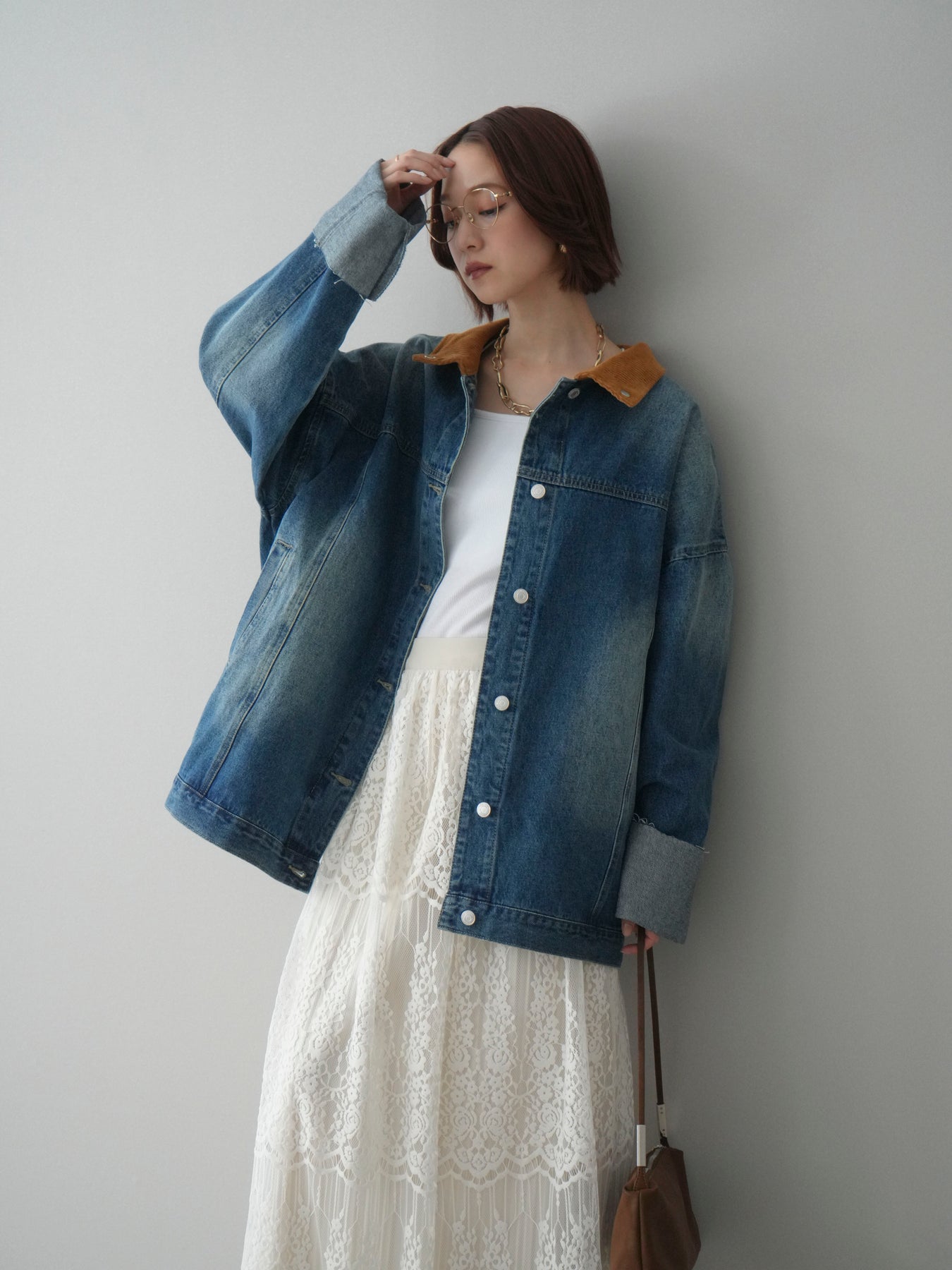 コーデュロイとデニムを組み合わせた、存在感のあるミドル丈ジャケット。異素材の切り替えがシンプルな中にも奥行きを生み、羽織るだけでこなれた印象に仕上がります。程よくゆとりのあるシルエットで、厚手のトップスの上からも着用しやすく、ロングシーズン活躍。袖口を折り返した際のデザインもアクセントになり、カジュアルながらも計算されたバランスの一着です。パンツにもスカートにも合わせやすく、デイリーからお出かけまで幅広いスタイリングに対応します。 ※ボトムス、キャミソール(インナー)以外の商品は一律でインナーは付属していません。