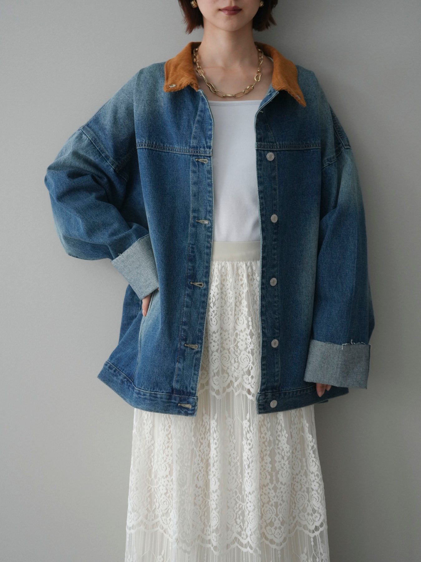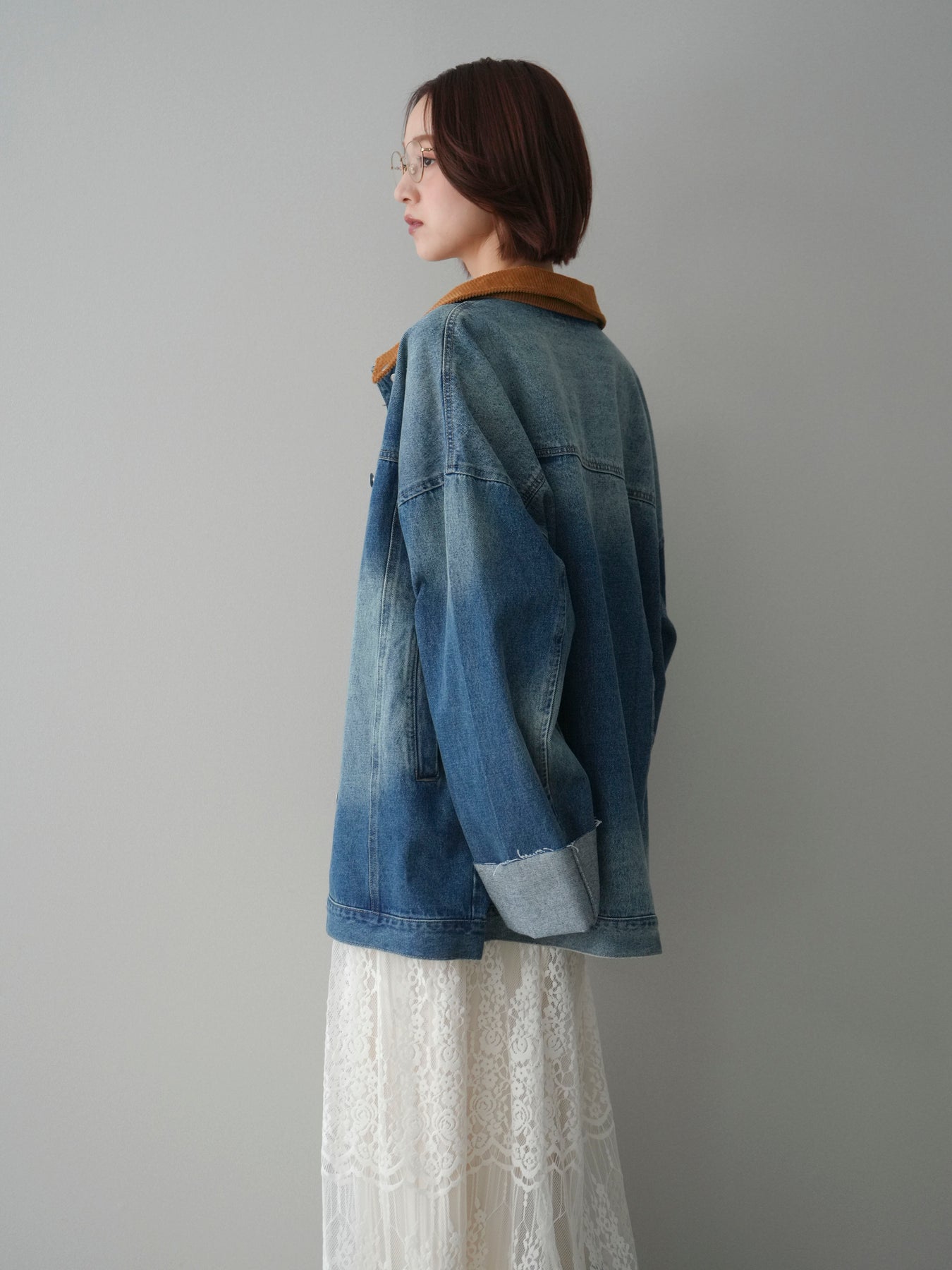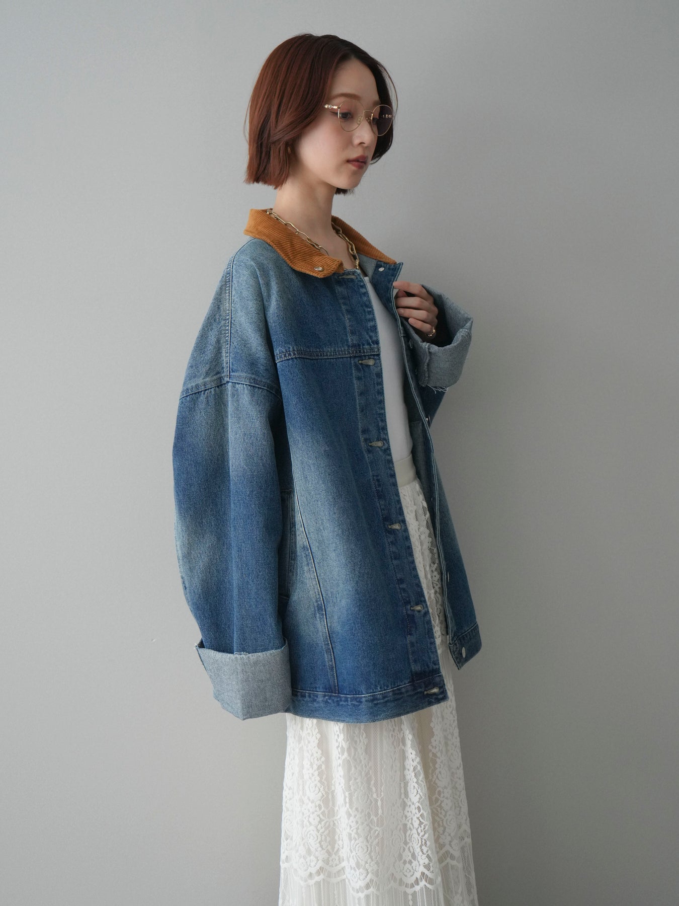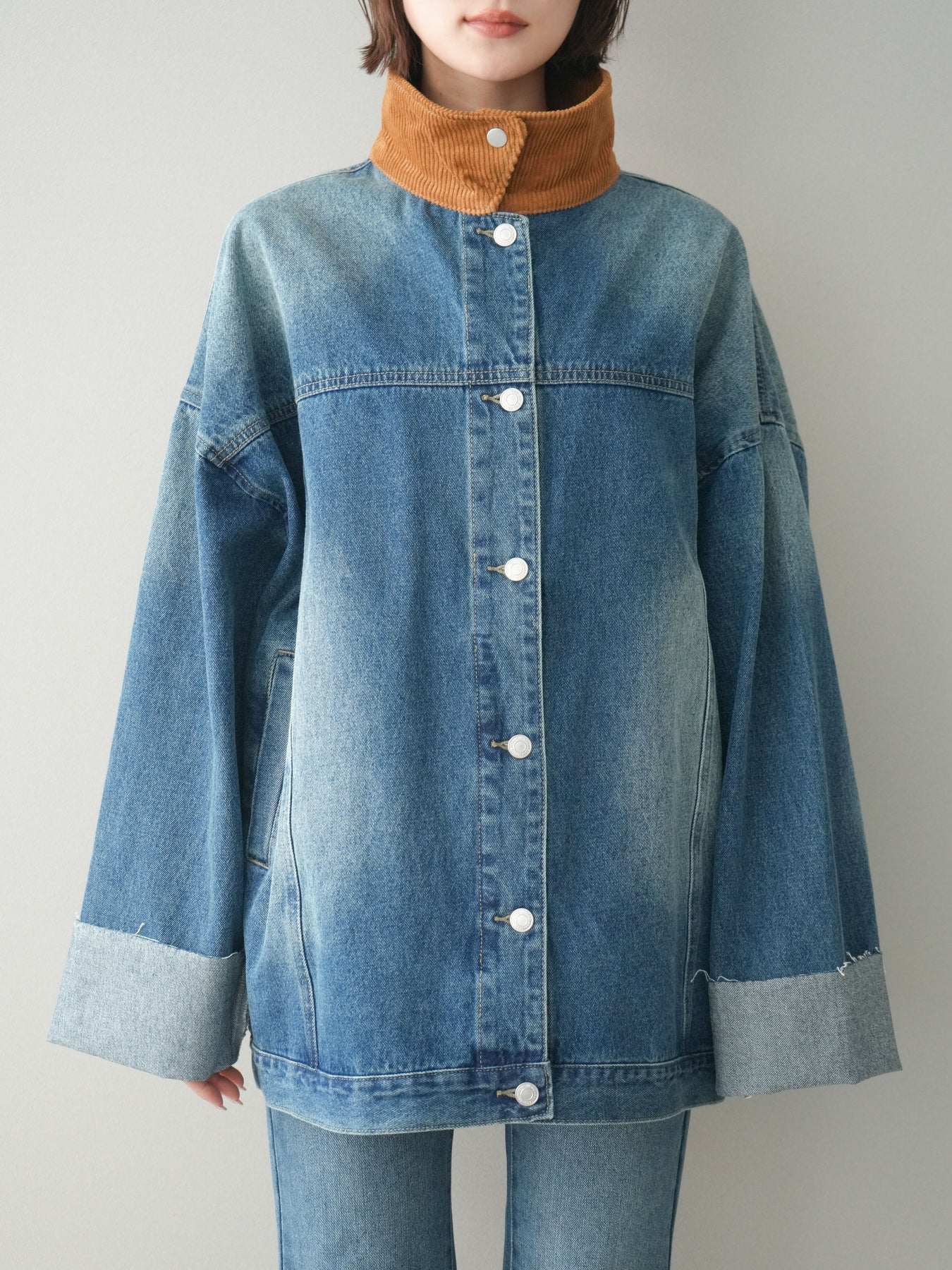 [予約]コーデュロイ×デニムミドルジャケット/blue