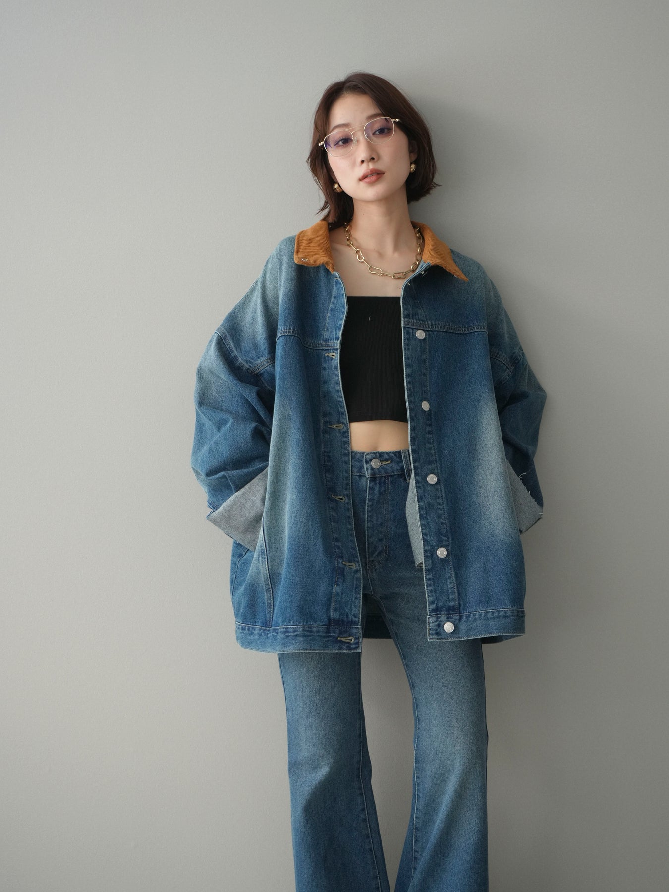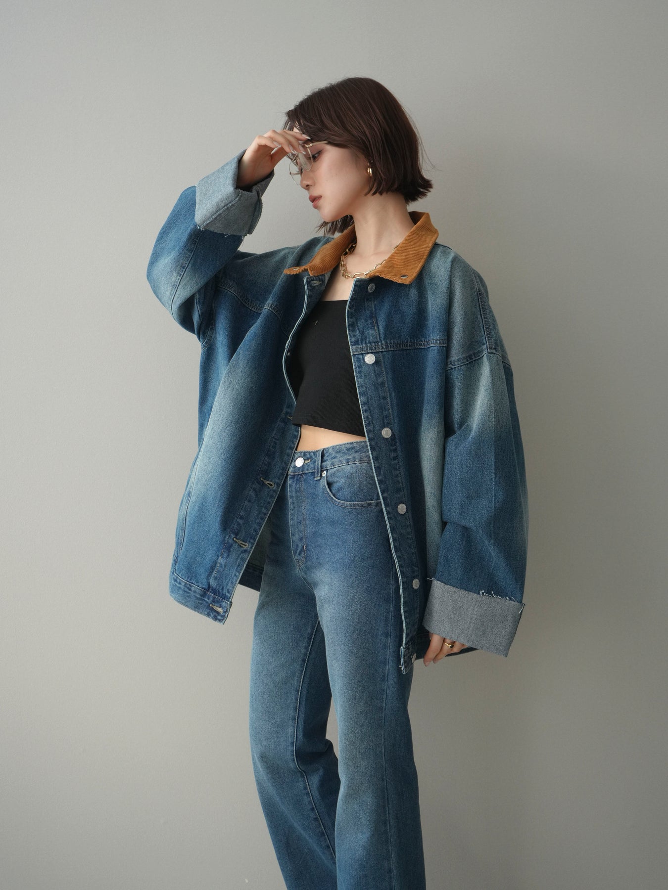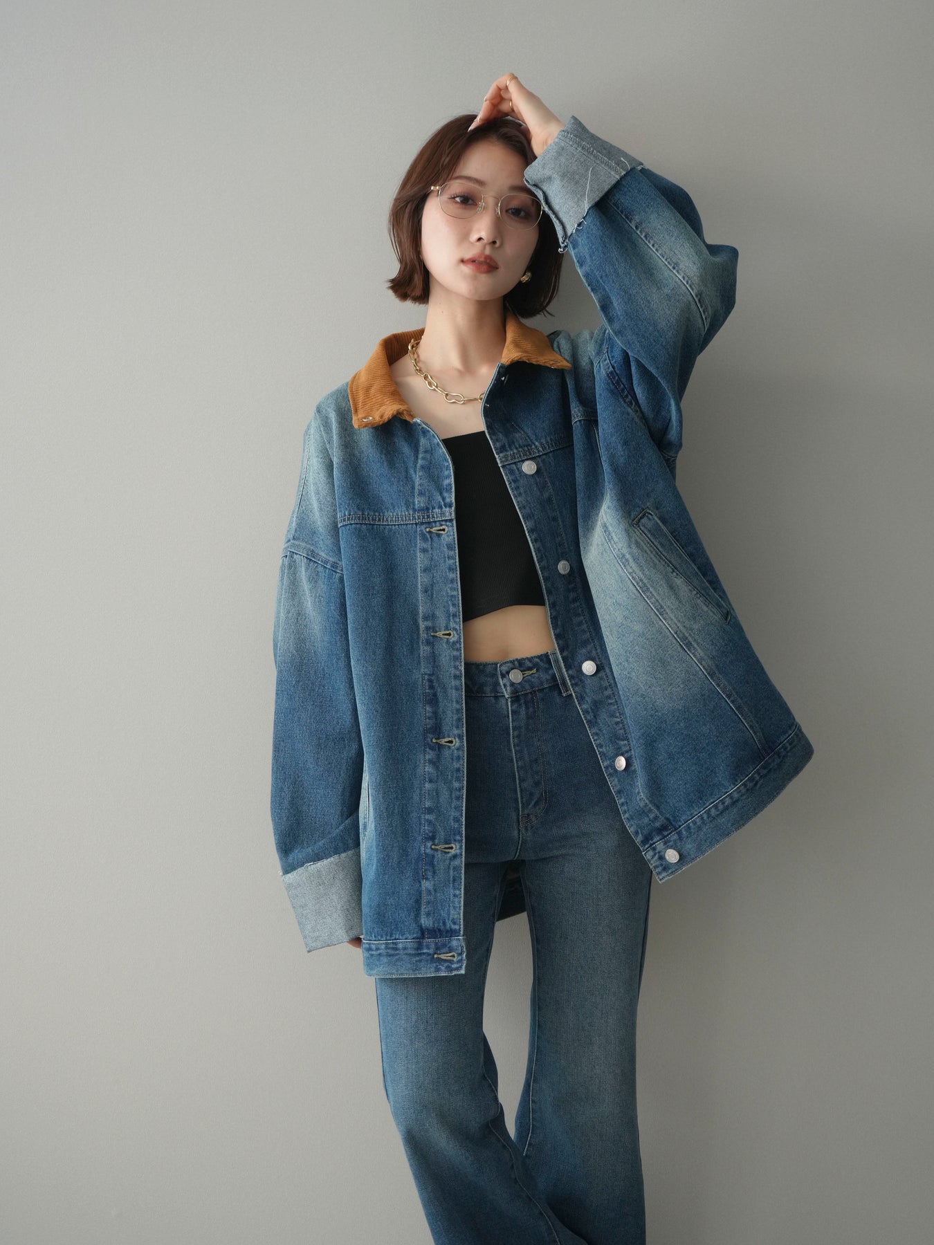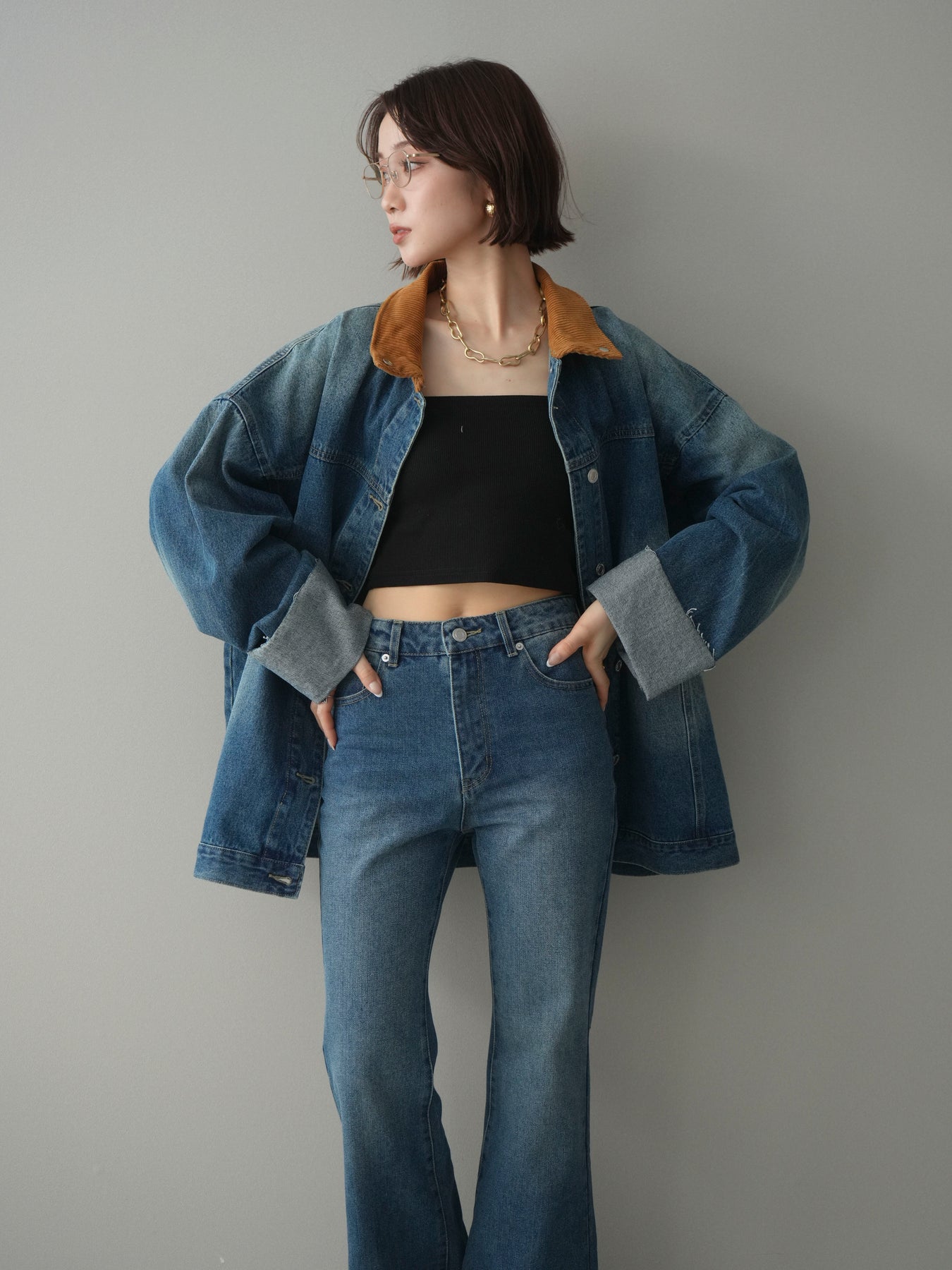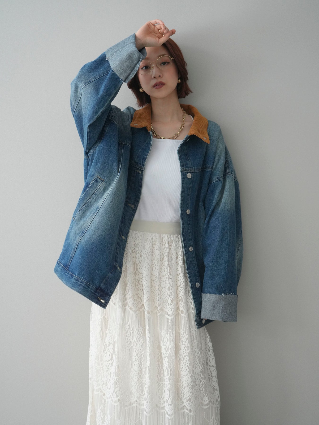[予約]コーデュロイ×デニムミドルジャケット/blue