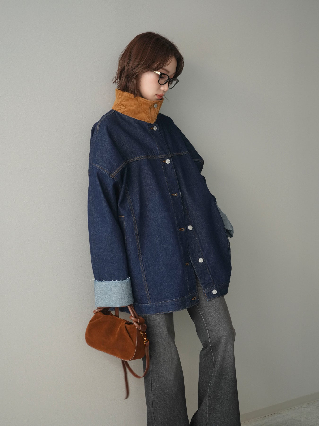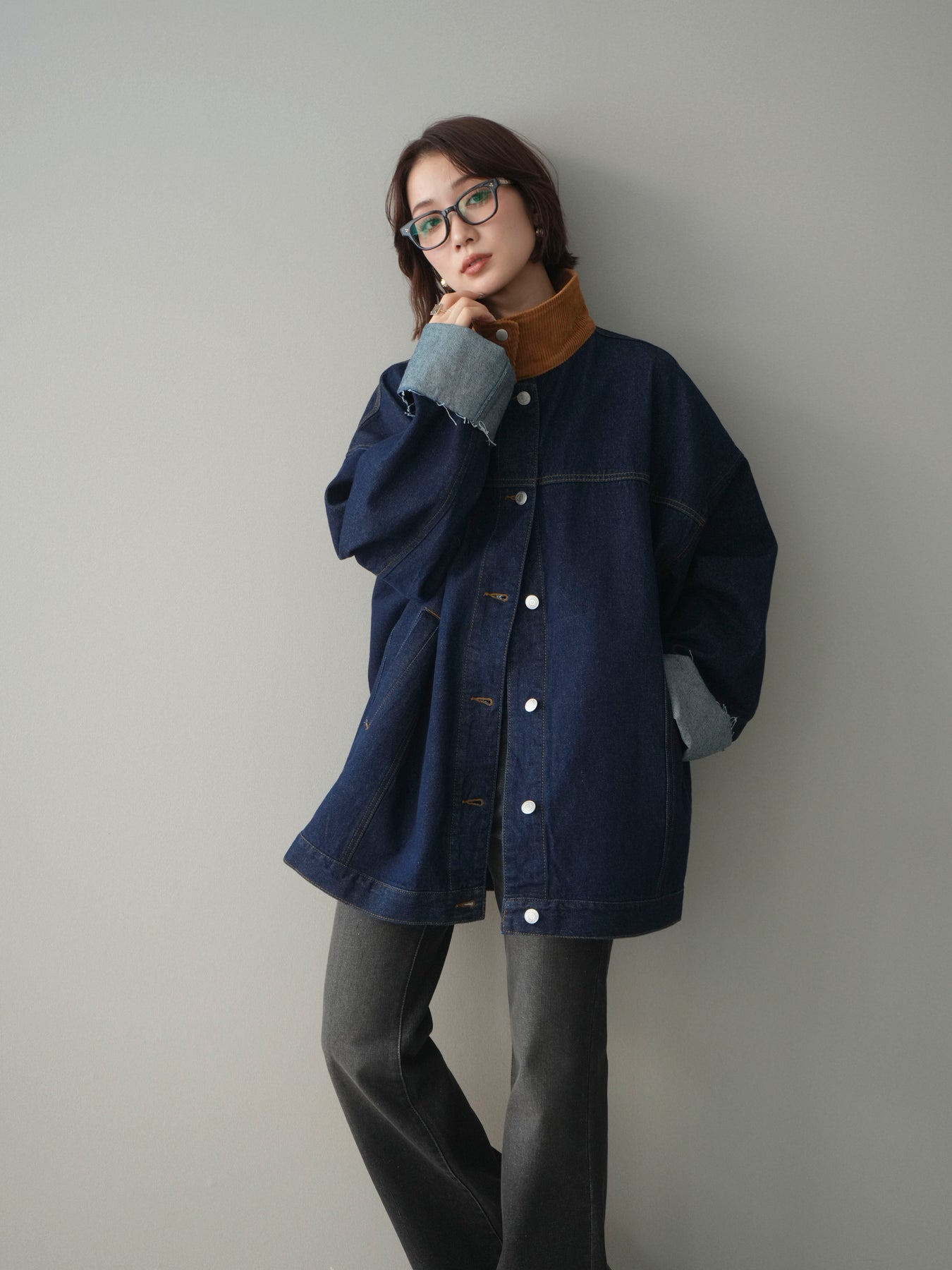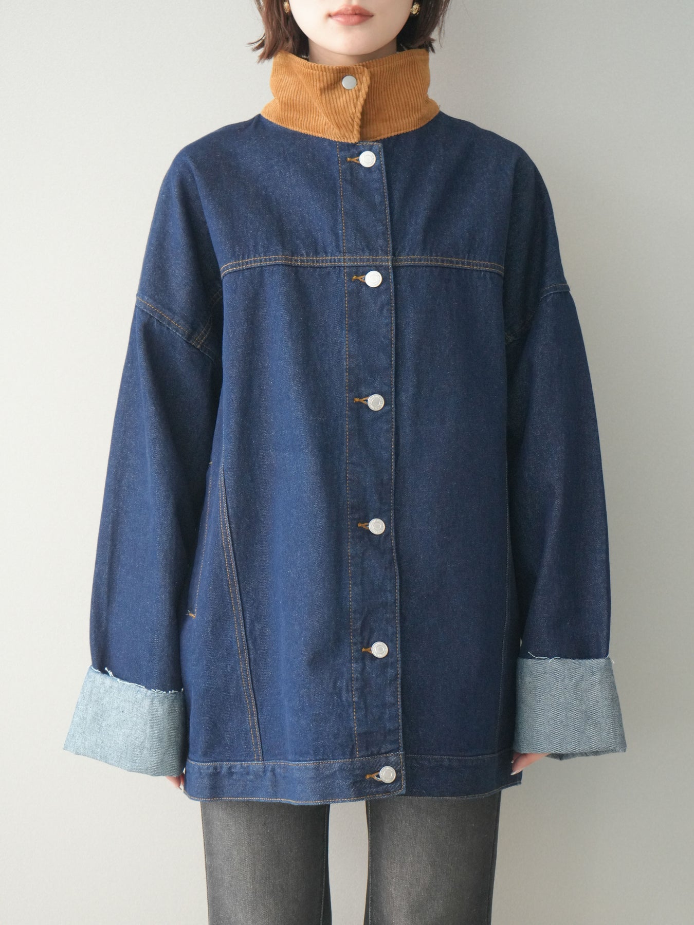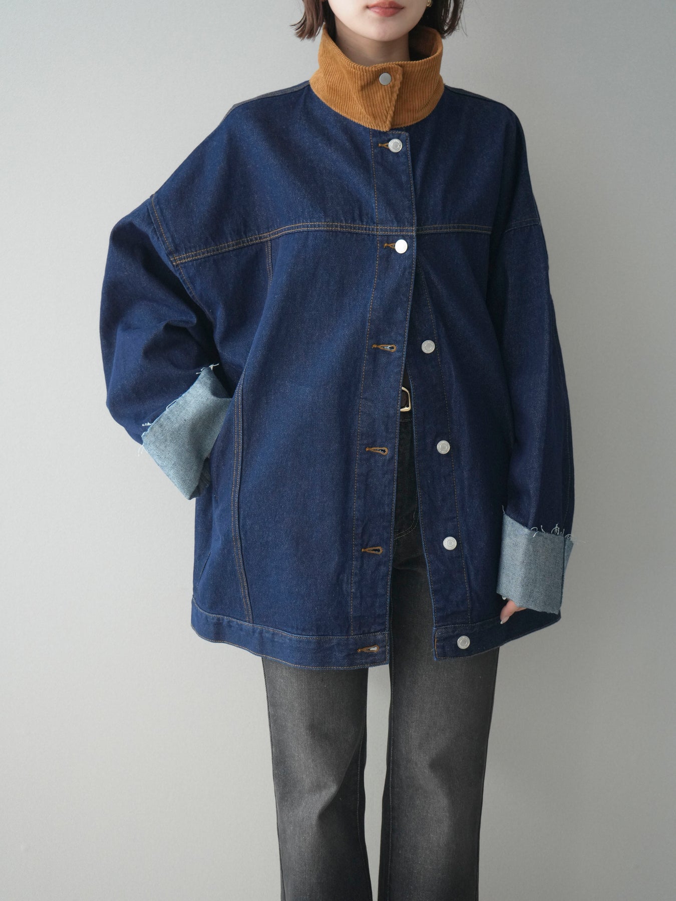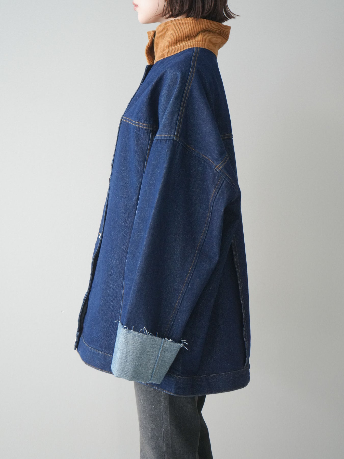 [予約]コーデュロイ×デニムミドルジャケット/indigo