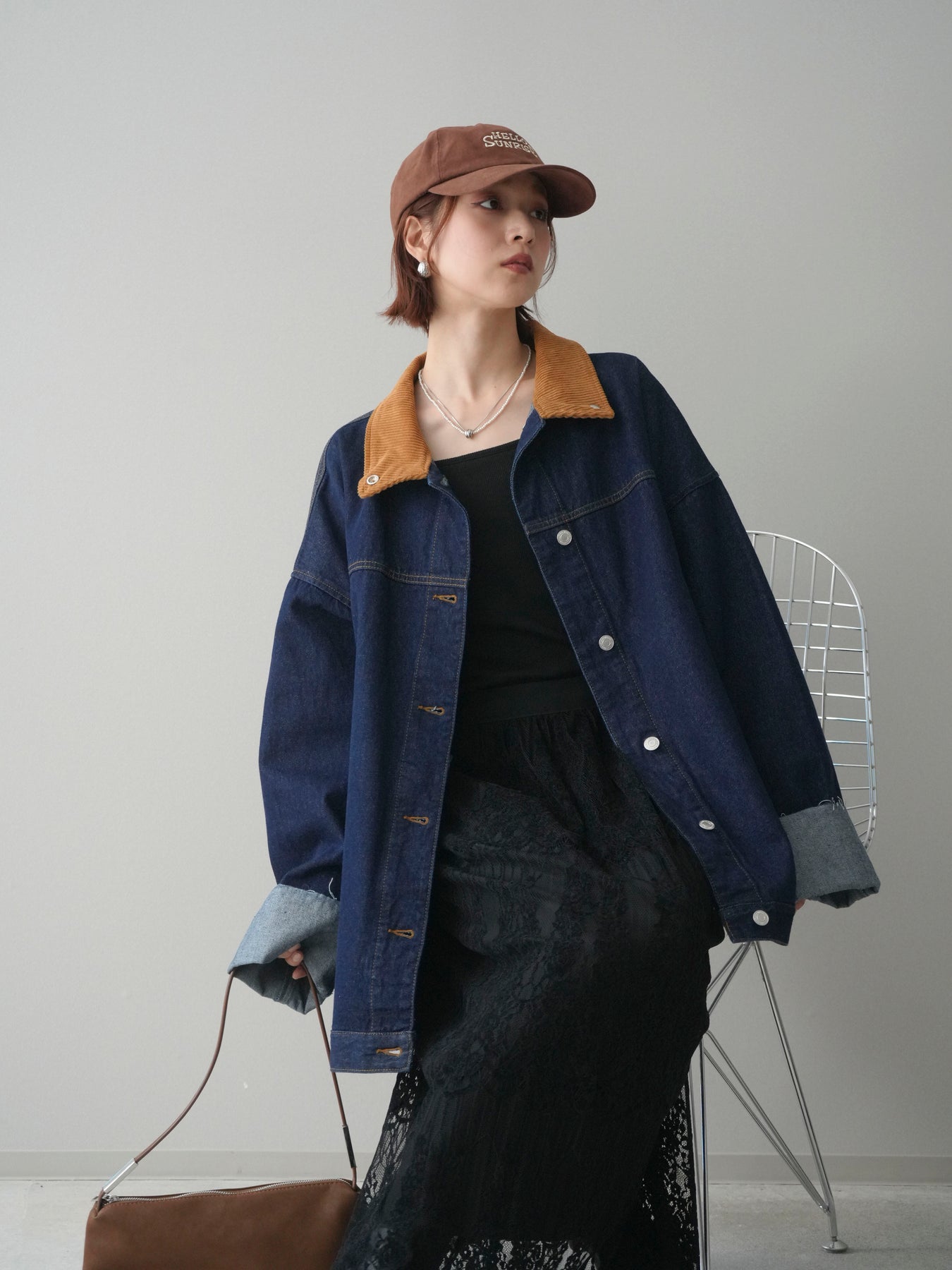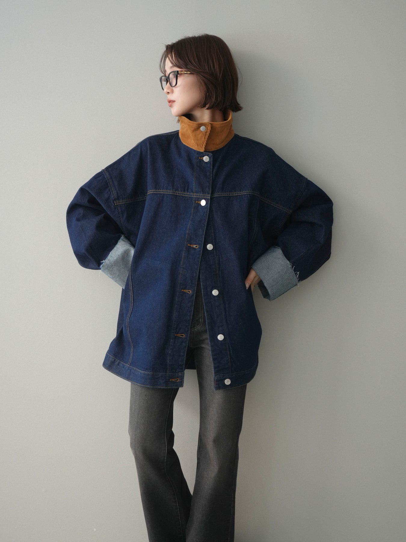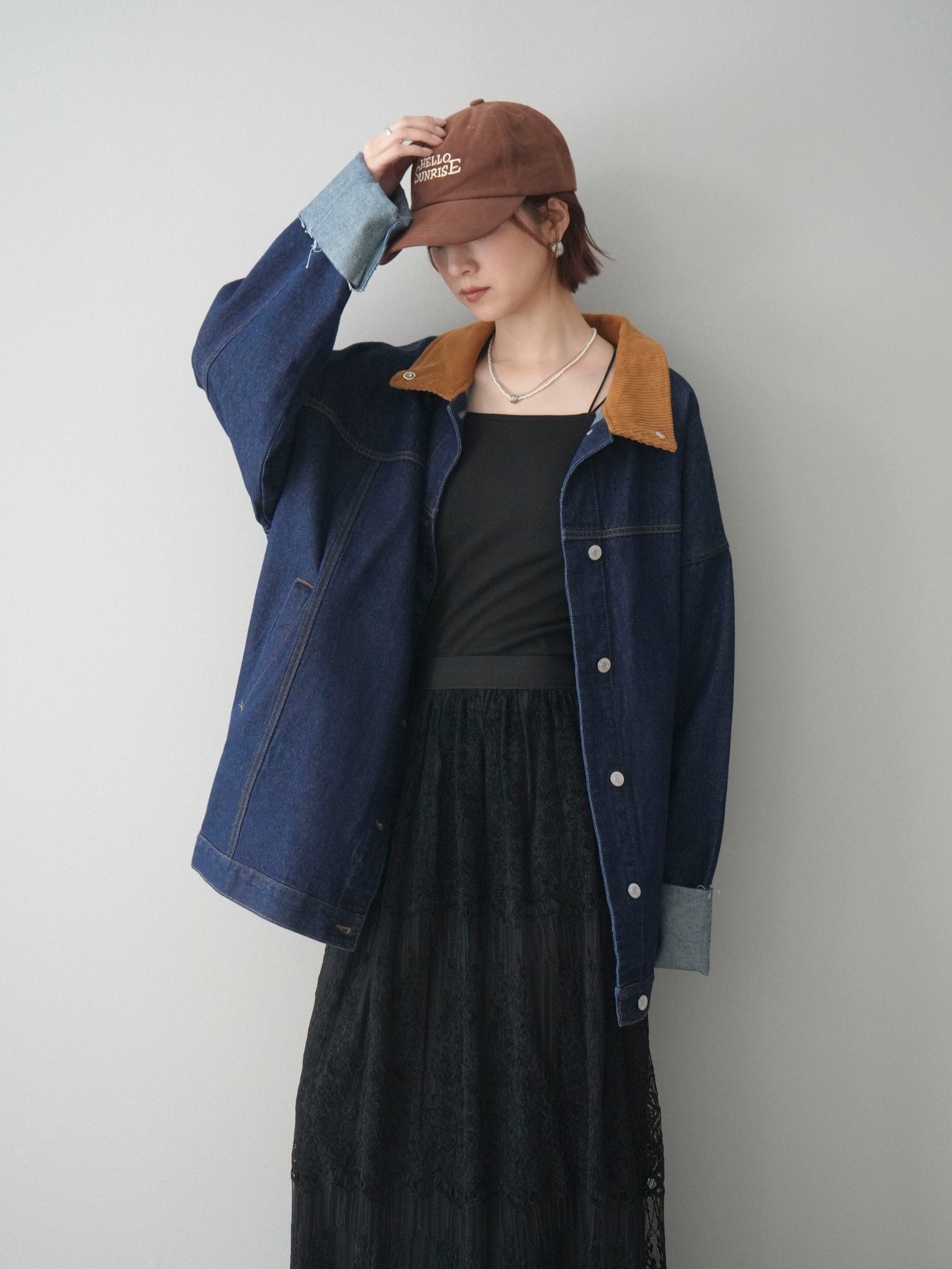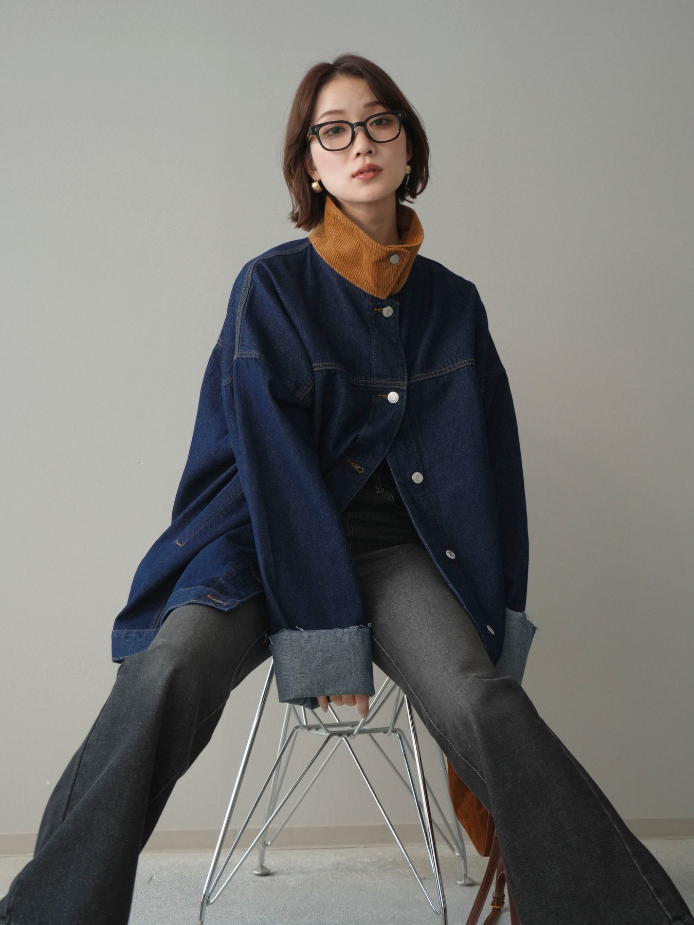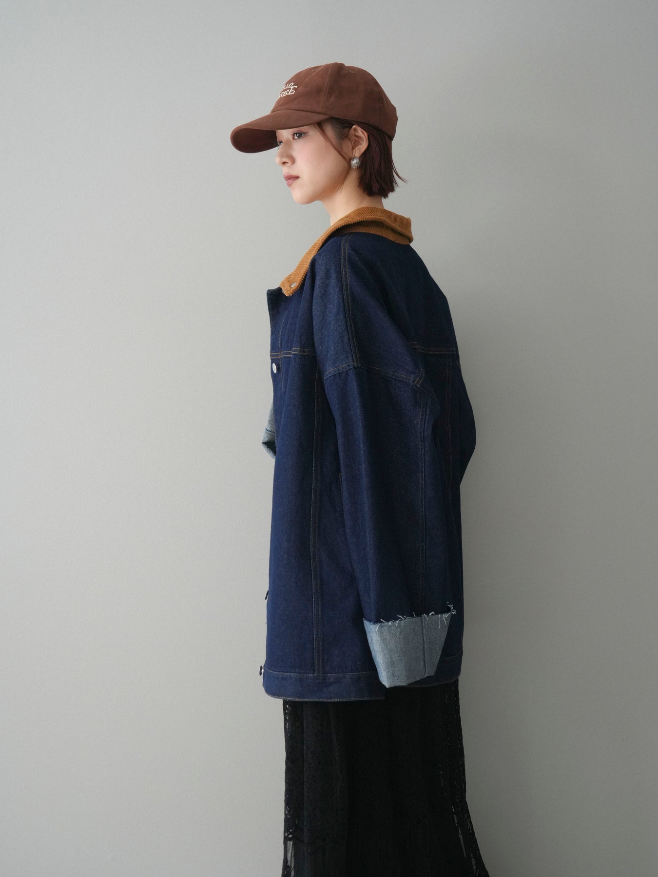 [予約]コーデュロイ×デニムミドルジャケット/indigo