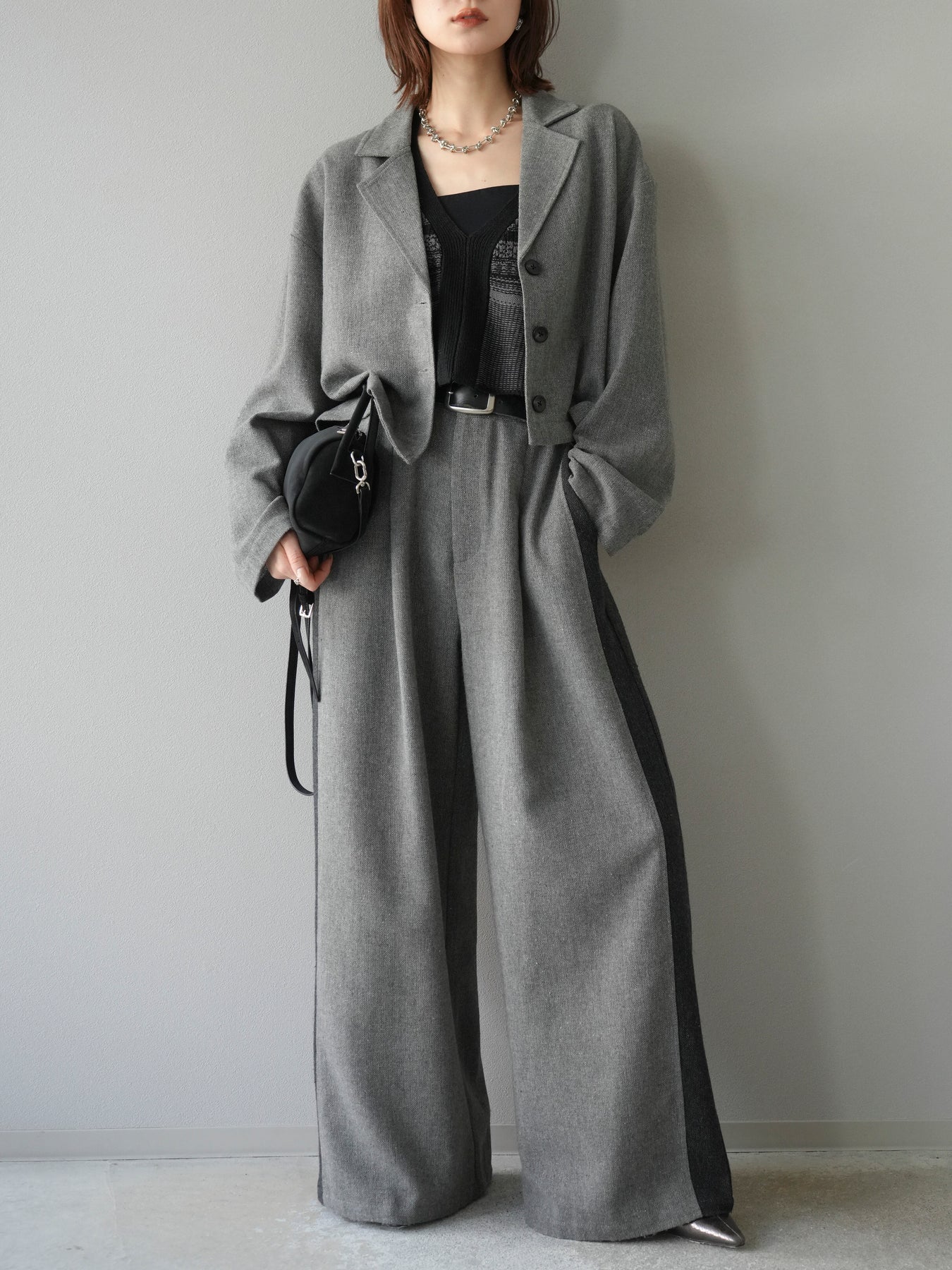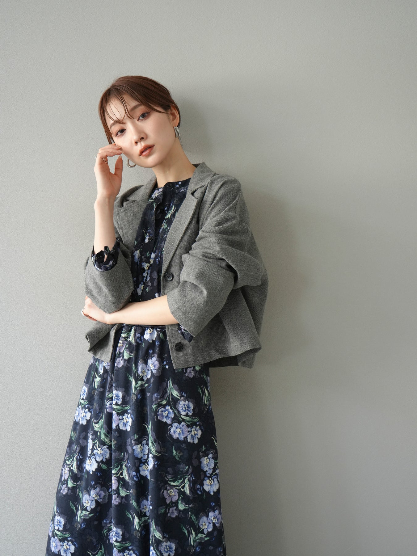 上品なツイード素材で仕立てたショートジャケット。コンパクトな丈感がスタイルアップ効果を叶え、羽織るだけでバランスの良いシルエットに仕上がります。テーラードカラーがきちんと感を演出しつつ、程よくゆとりのあるシルエットで抜け感もプラス。パンツやスカート、ワンピースまで幅広いアイテムに合わせやすく、デイリーからオフィスシーンまで活躍する一着です。 ※ボトムス、キャミソール(インナー)以外の商品は一律でインナーは付属していません。
