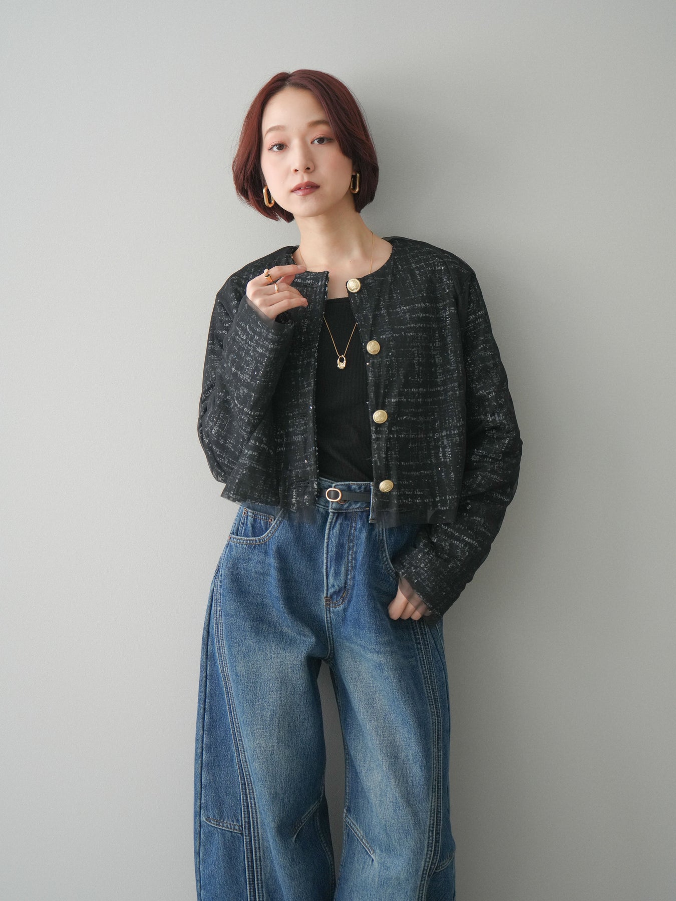 [予約]チュールレイヤードツイードクロップドジャケットに関連する商品を探す↓