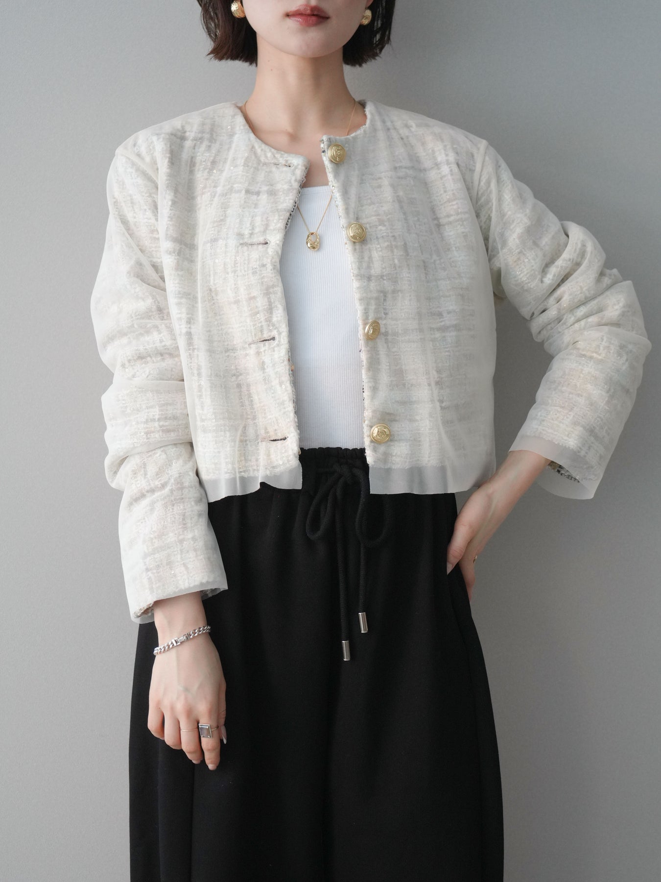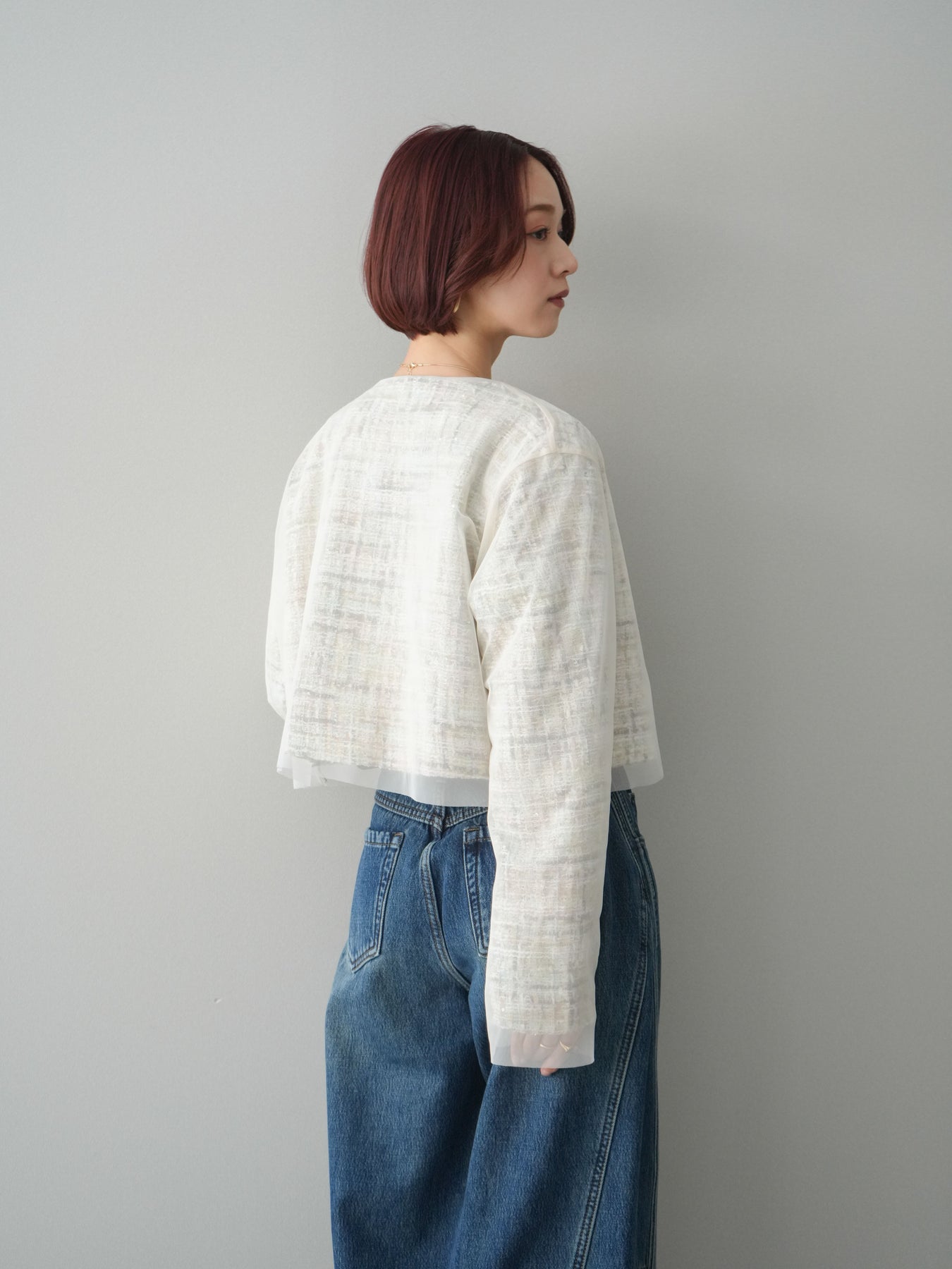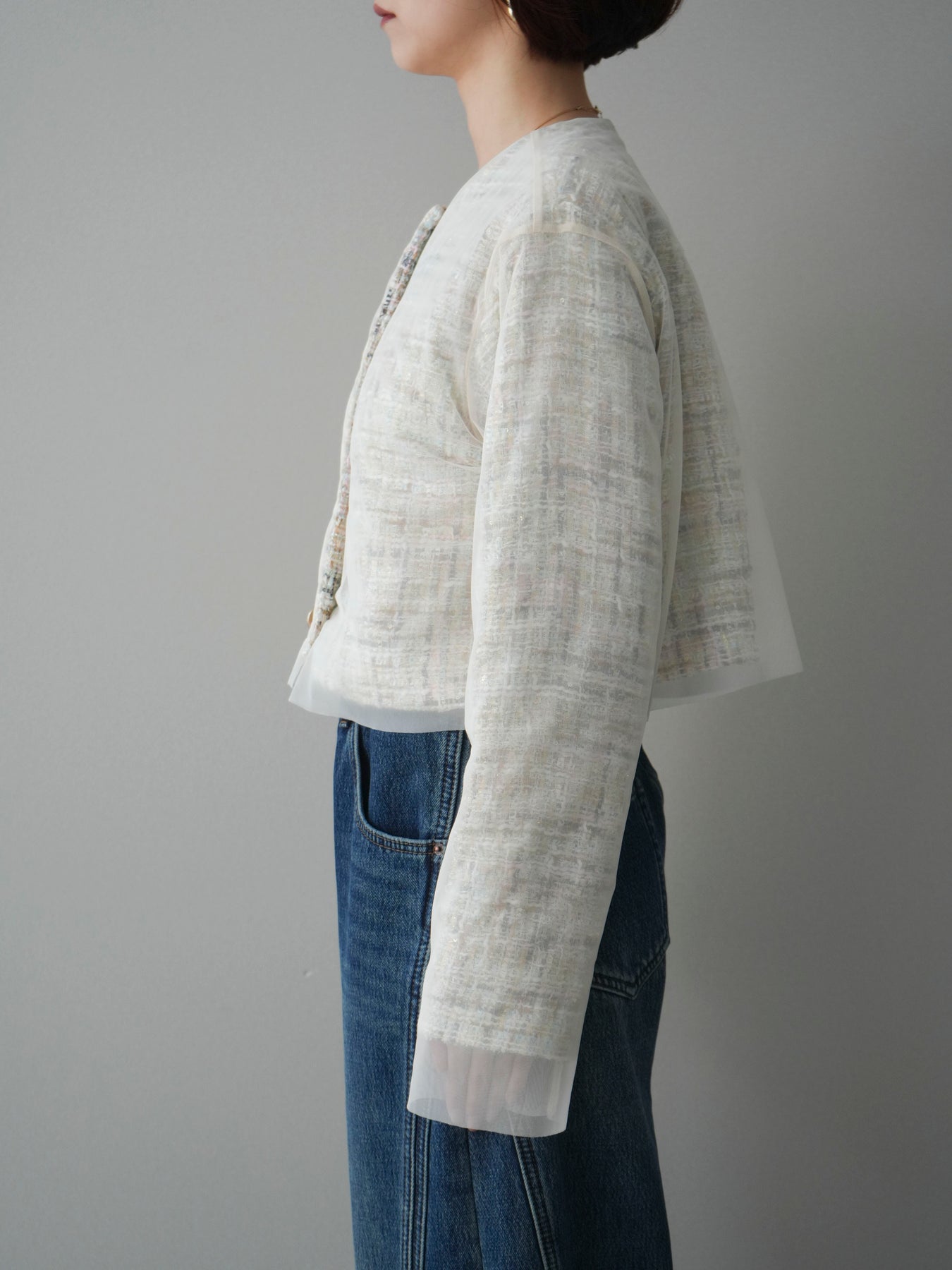 [予約]チュールレイヤードツイードクロップドジャケットに関連する商品を探す↓