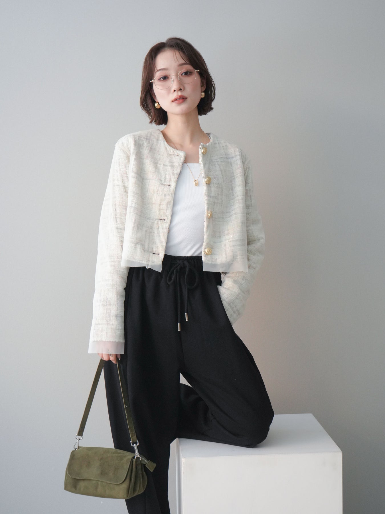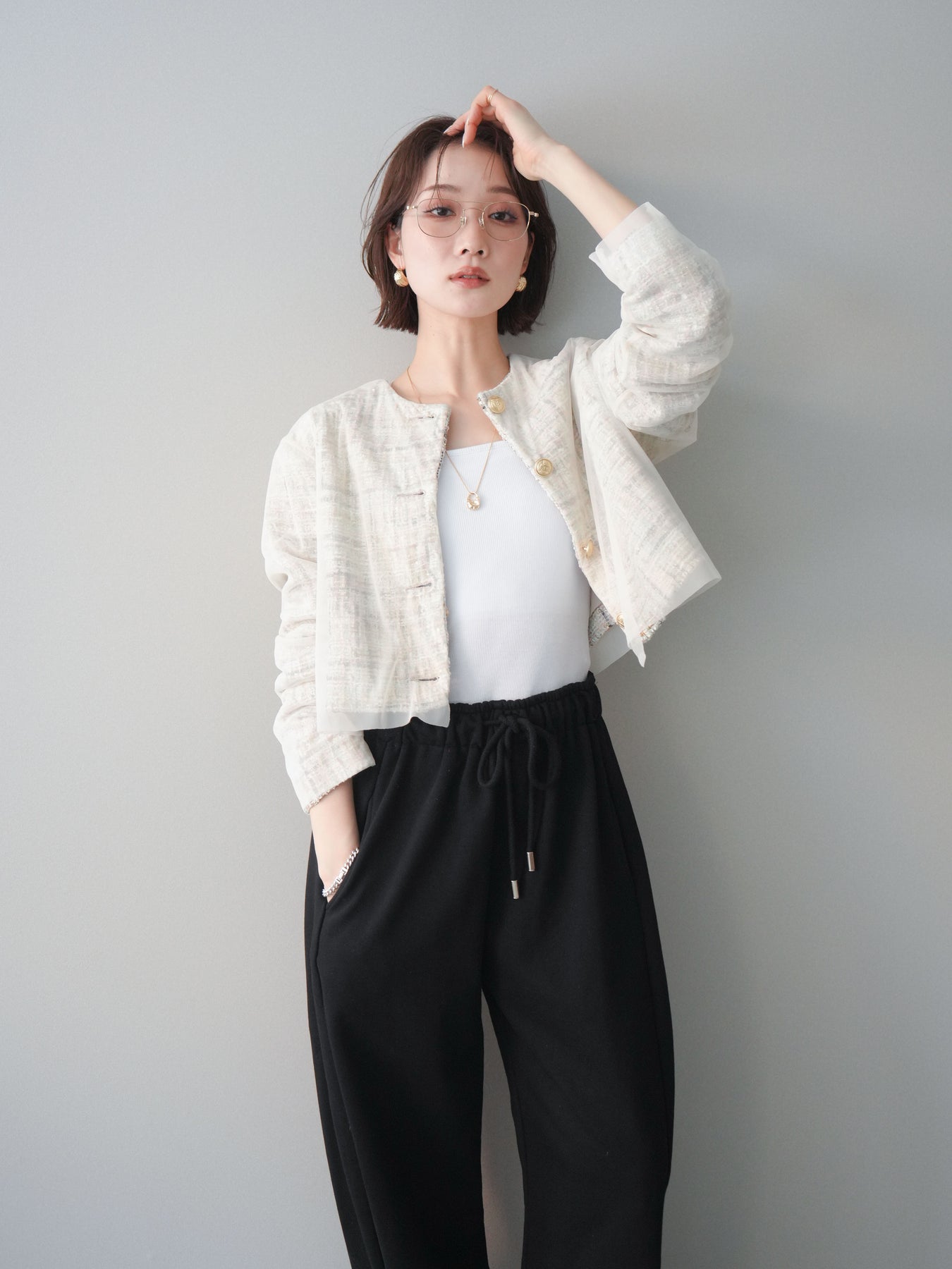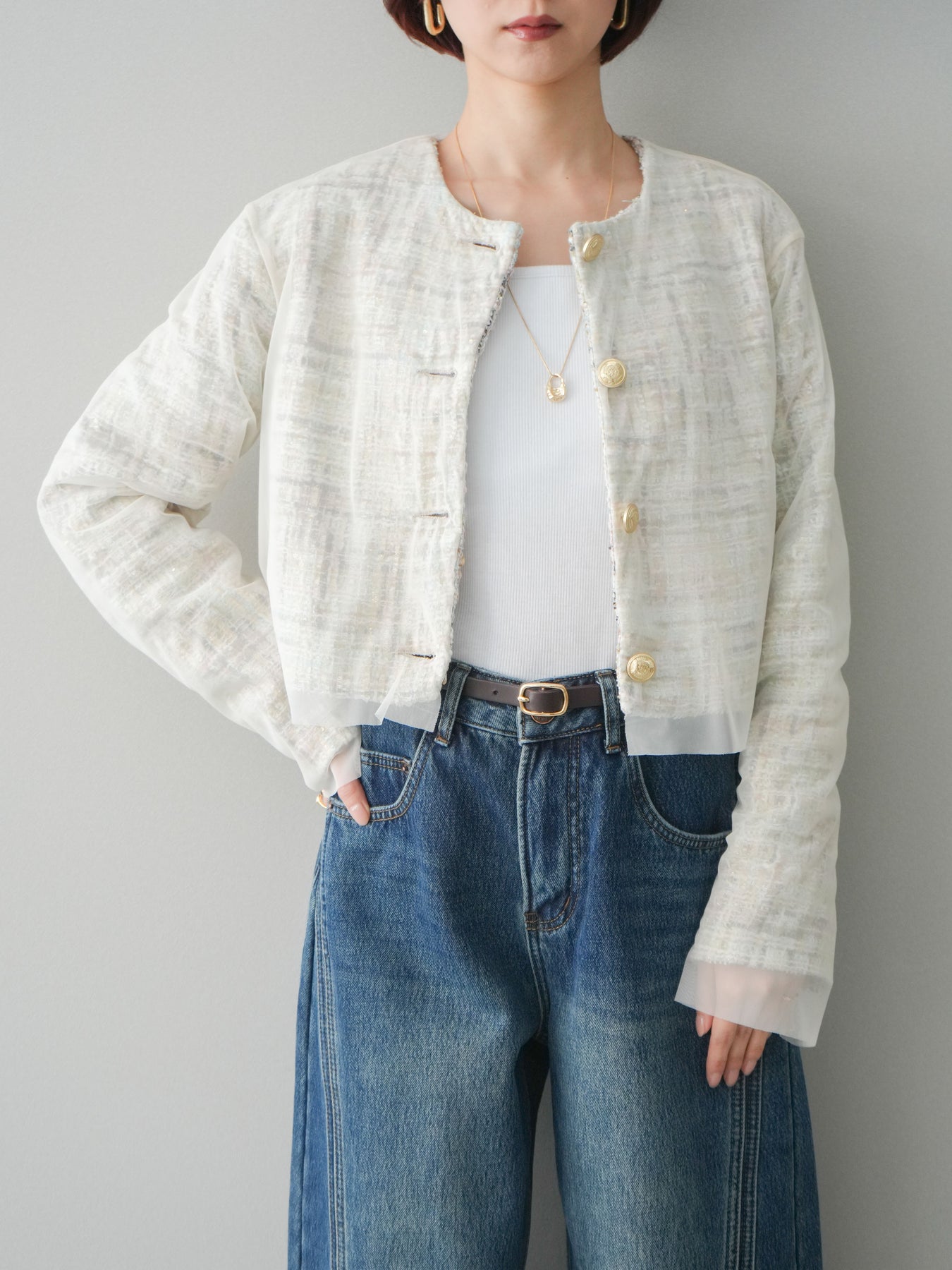 [予約]チュールレイヤードツイードクロップドジャケットに関連する商品を探す↓