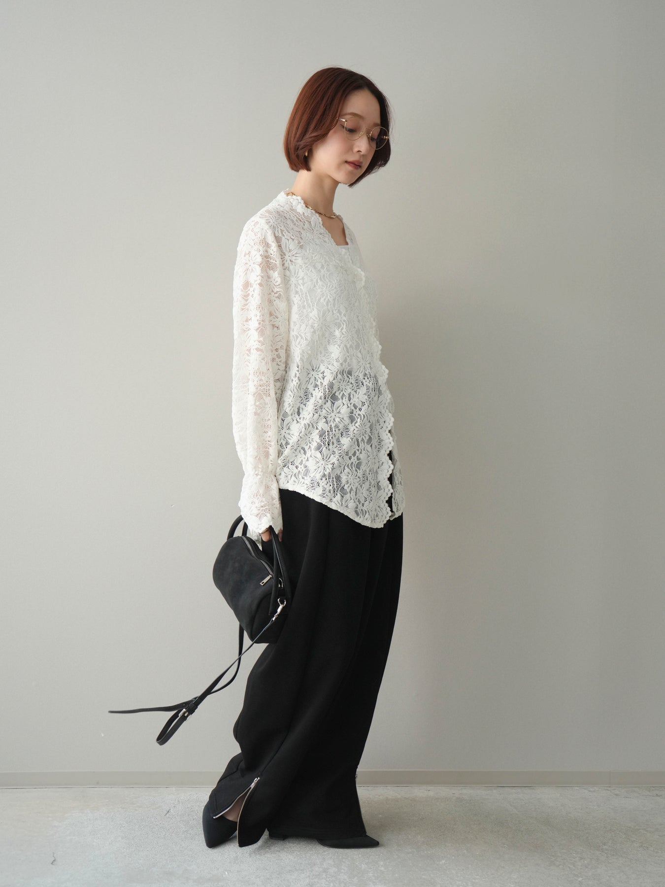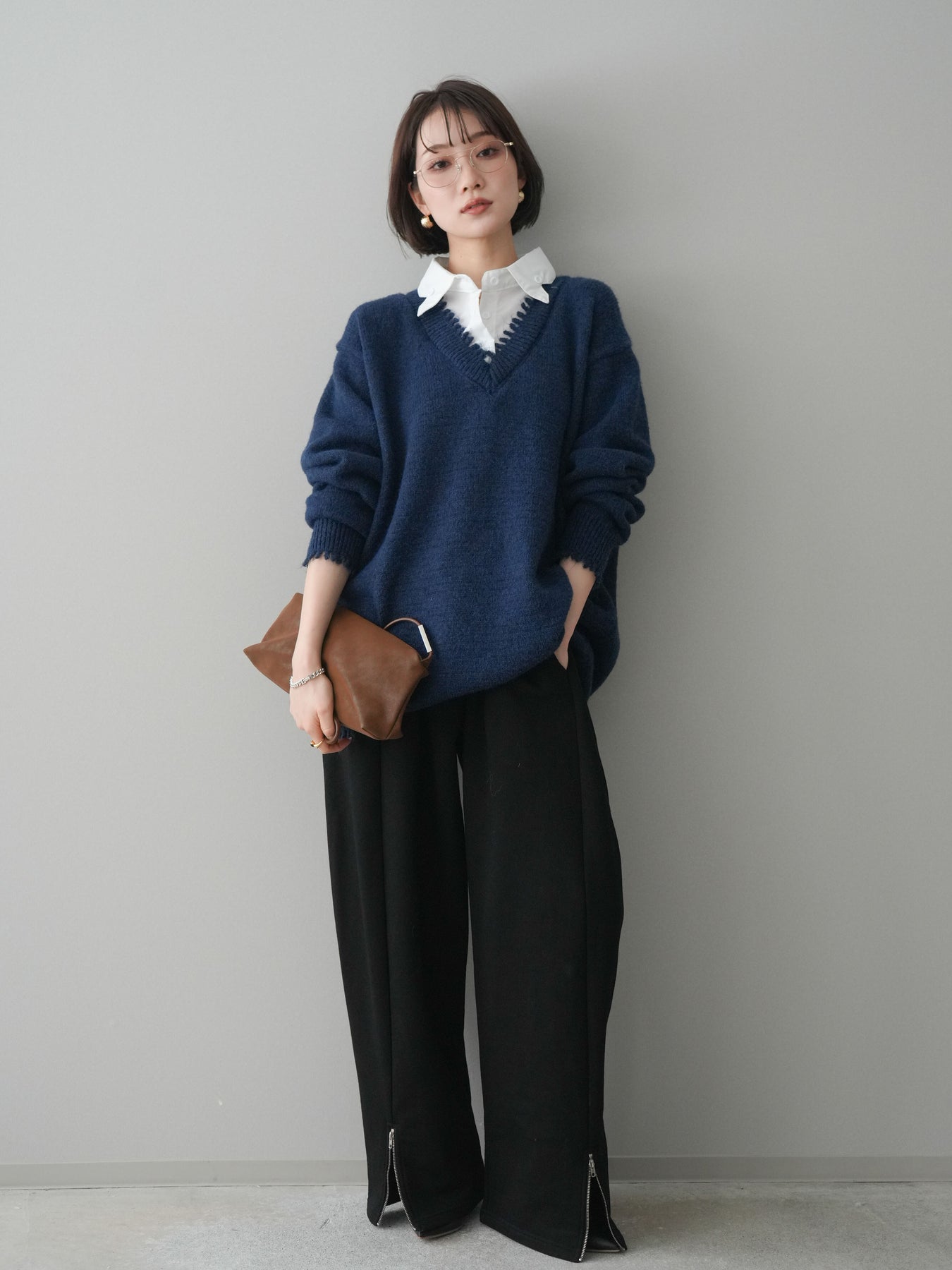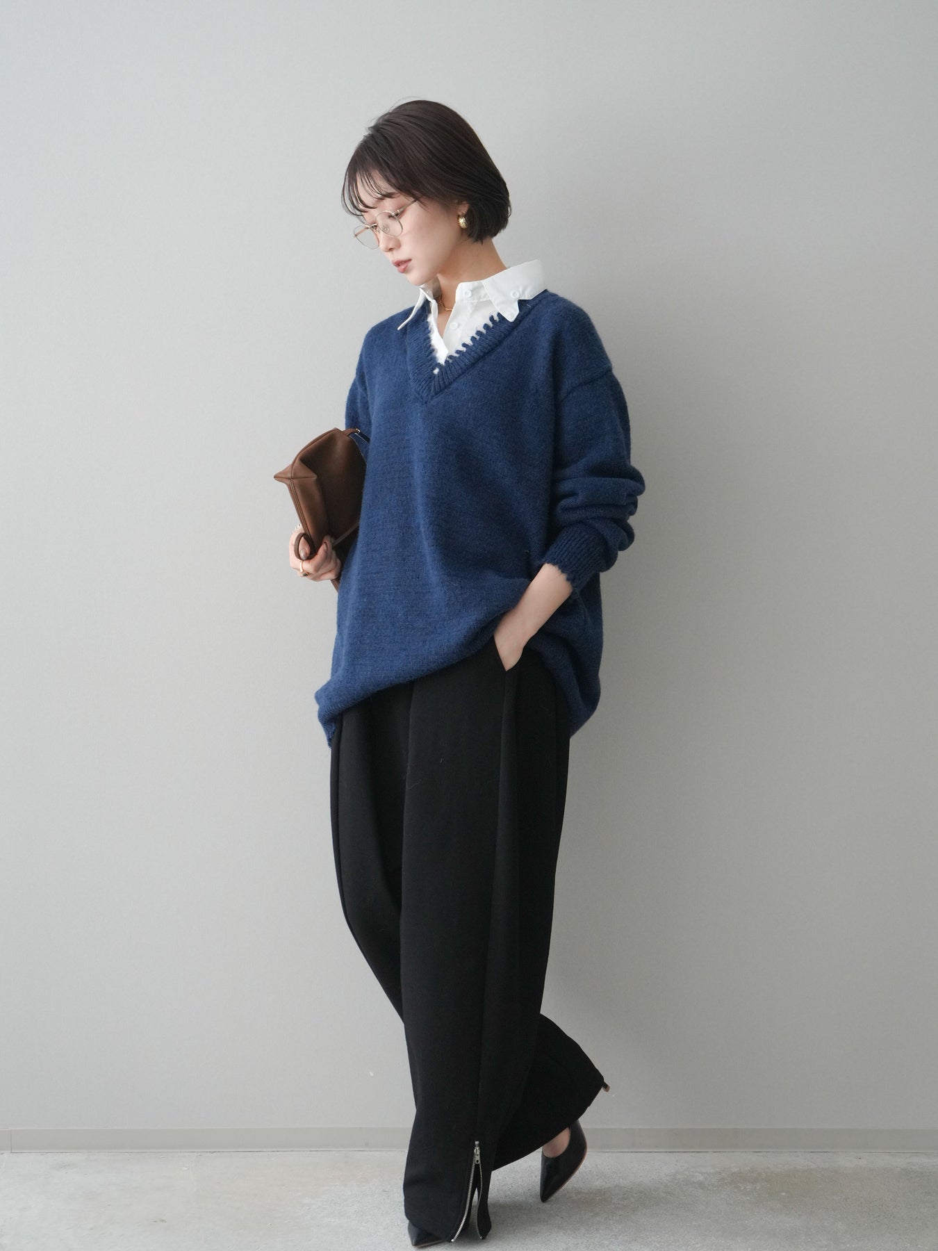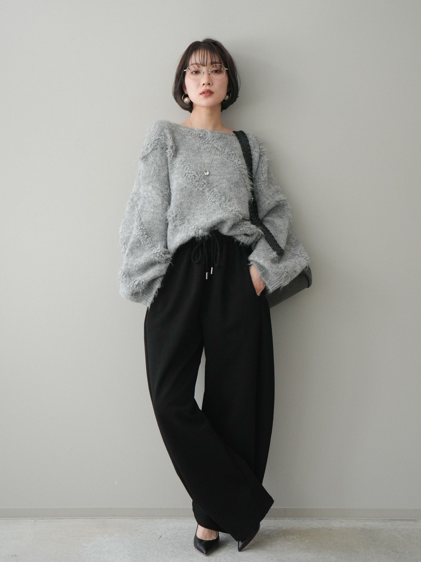 リラックス感と洗練された印象を兼ね備えたスエット素材のワイドパンツ。程よく落ち感のあるシルエットが脚のラインを拾いにくく、自然に体型をカバーしてくれます。ウエストはゴム仕様で穿き心地が良く、デイリー使いにも取り入れやすいデザイン。裾にはZIPを施し、開閉によってシルエットや足元の印象に変化をつけられるのもポイントです。カジュアルになりすぎず、きれいめトップスとも相性が良いため、幅広いスタイリングに活躍する一本です。