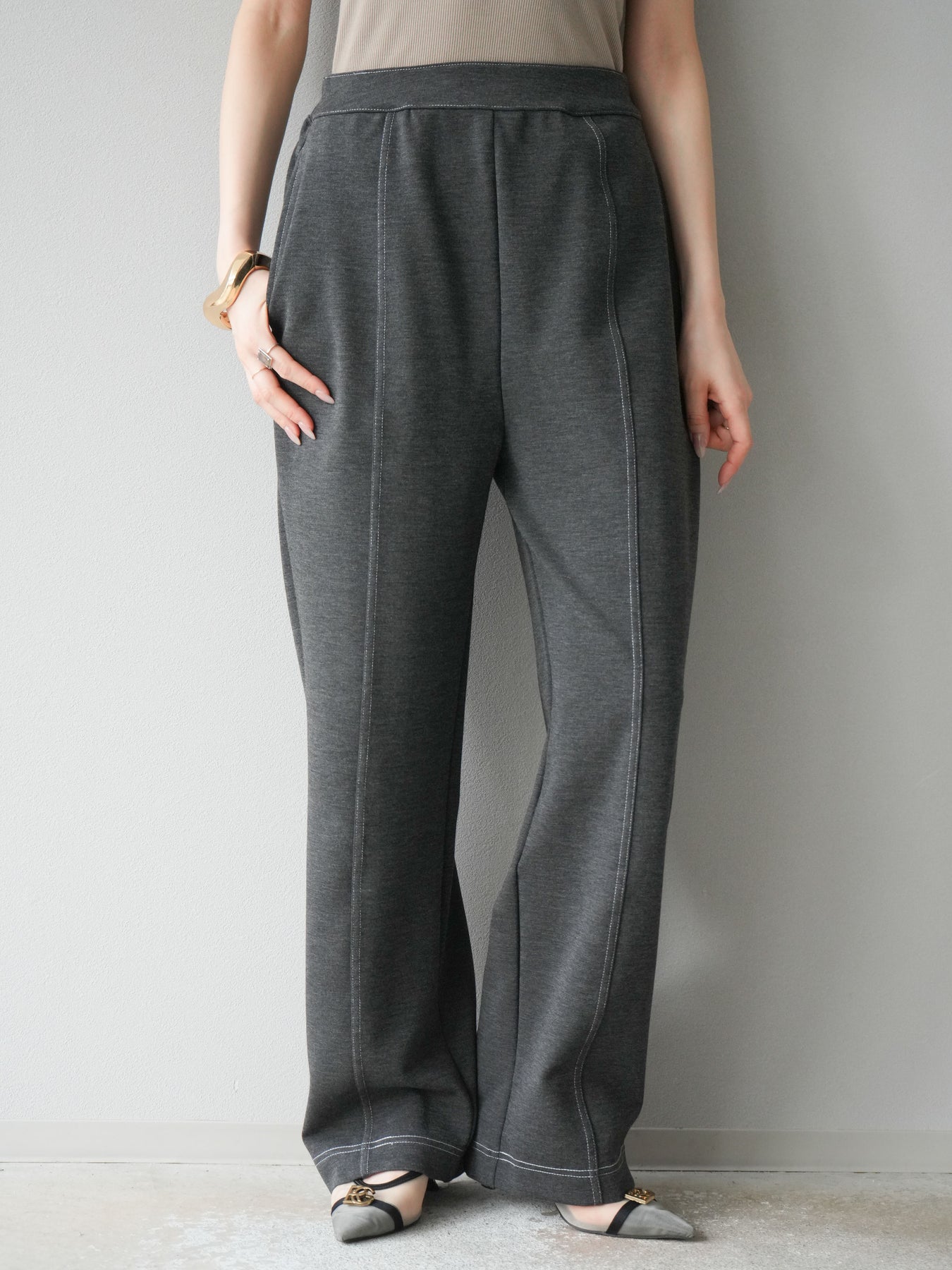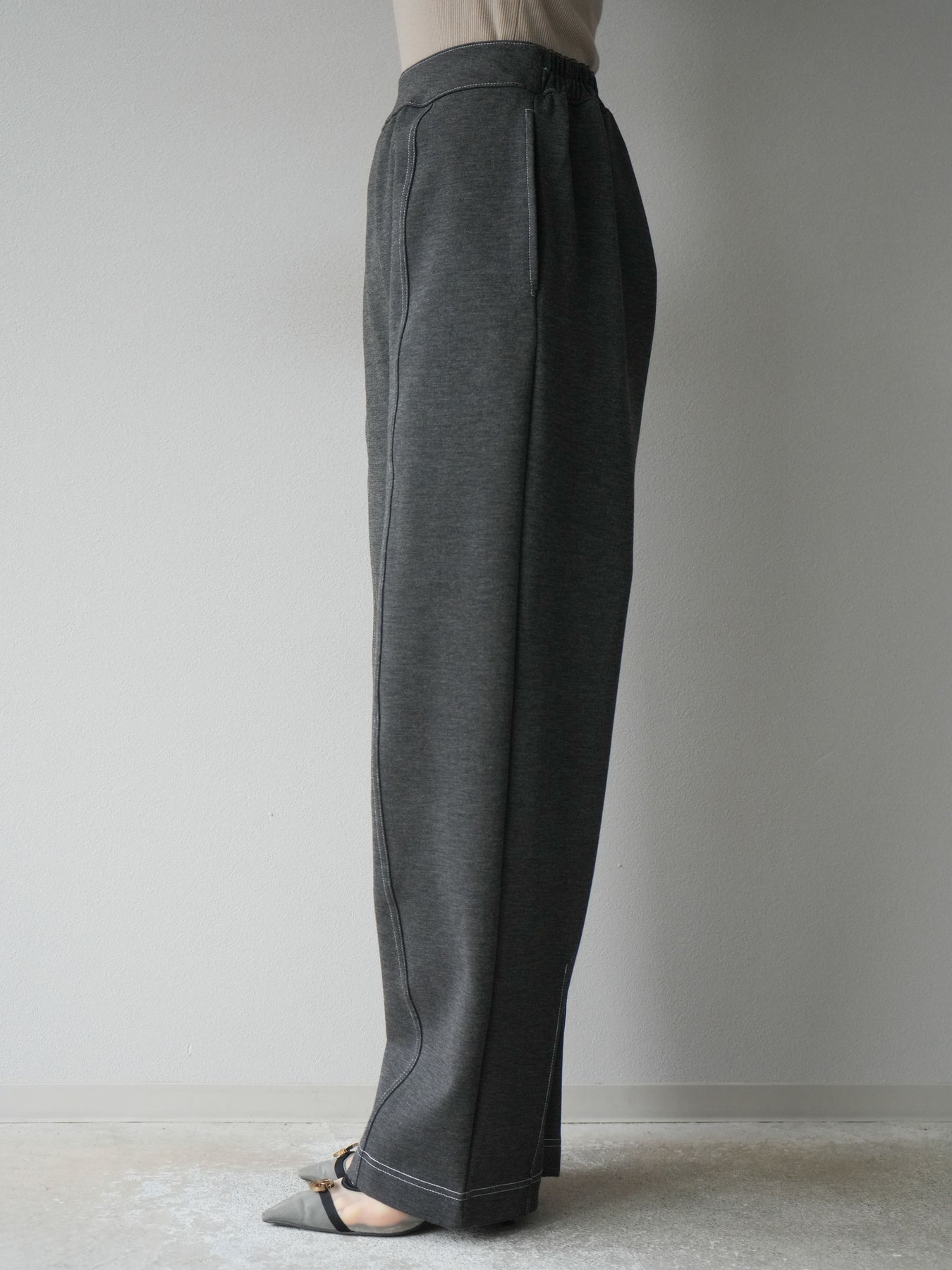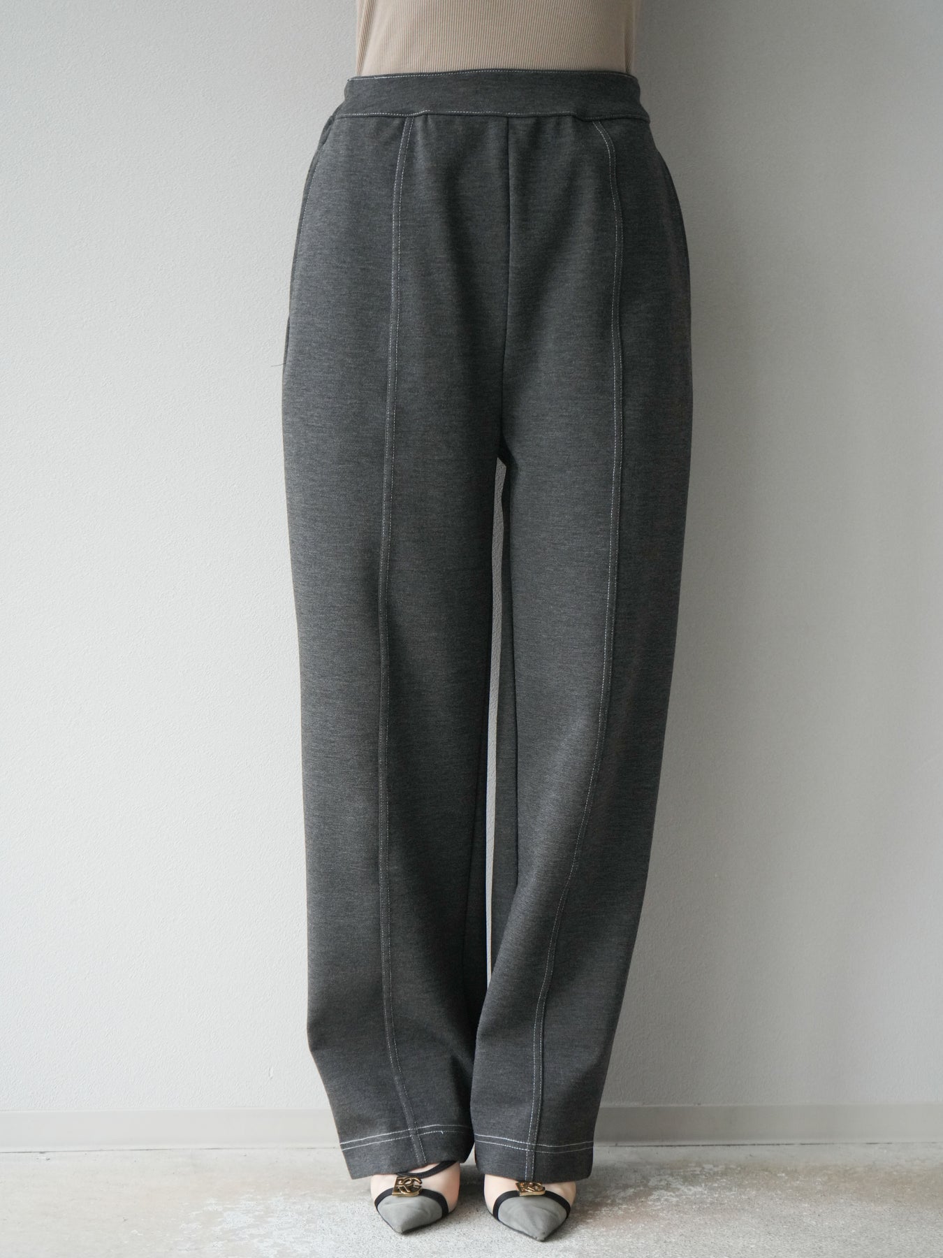 [予約]ステッチポンチライクパンツ/チャコール