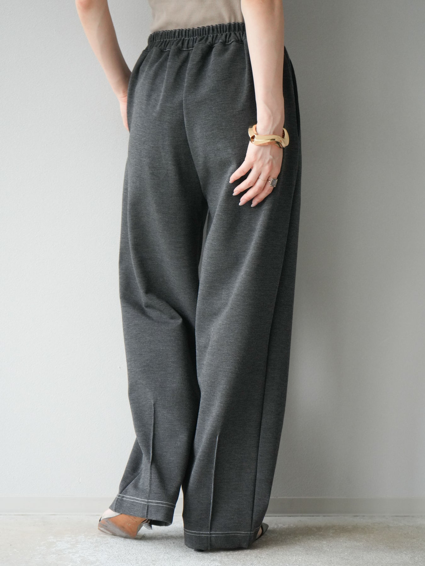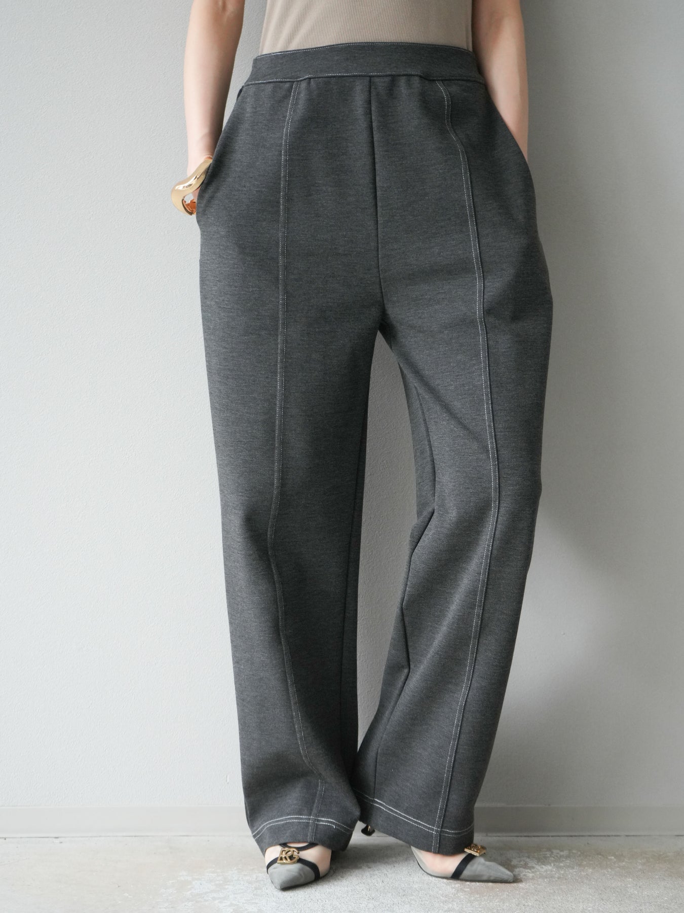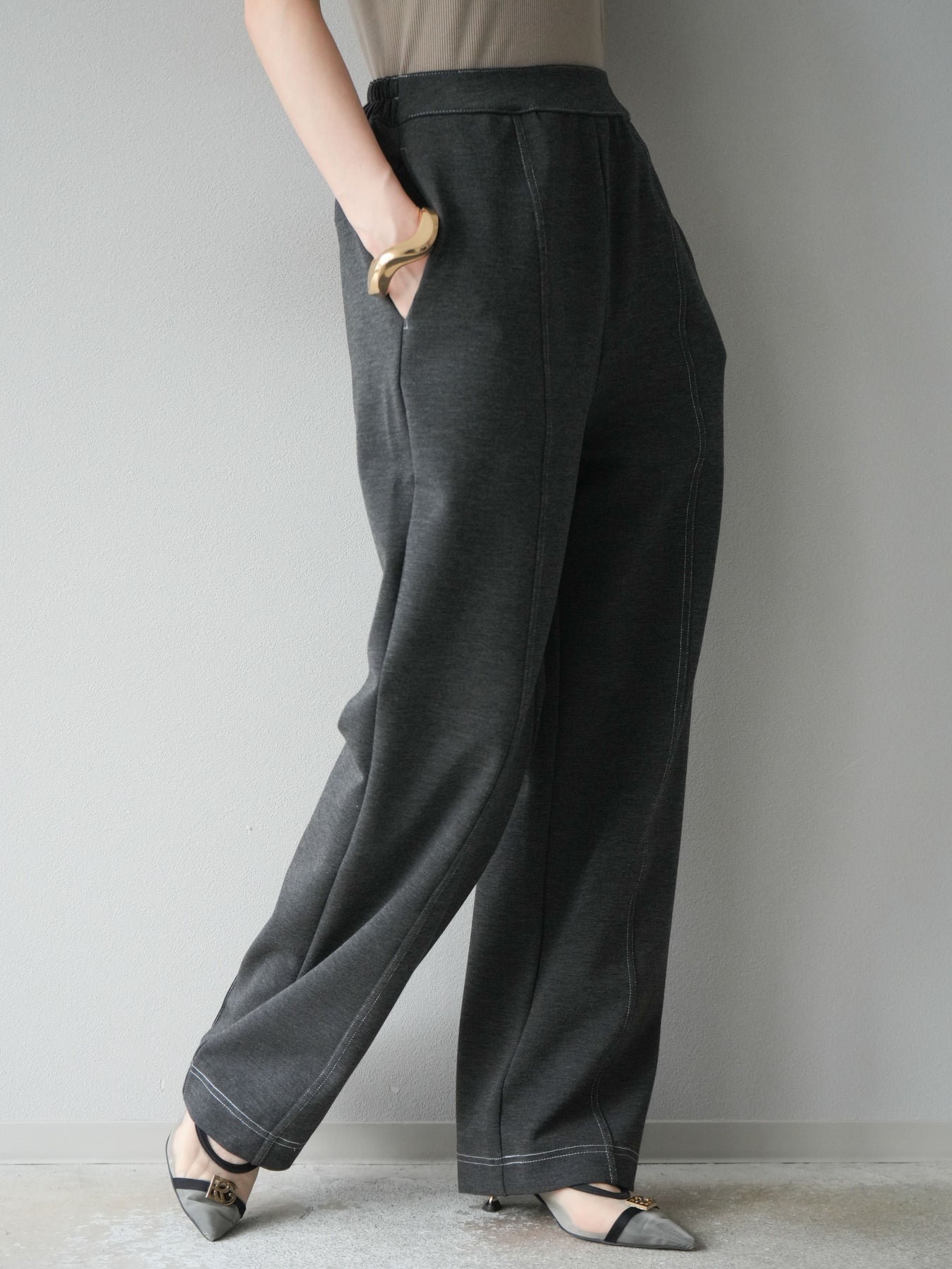 [予約]ステッチポンチライクパンツ/チャコール