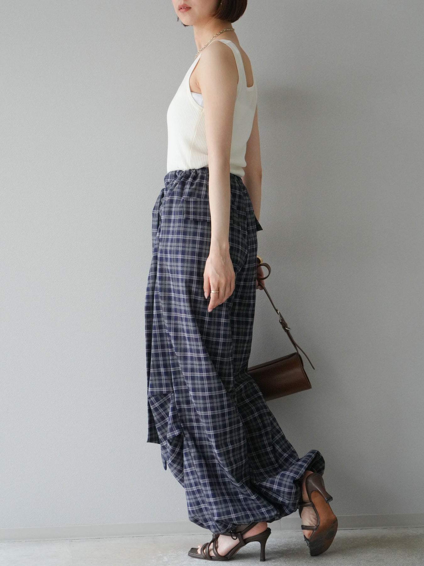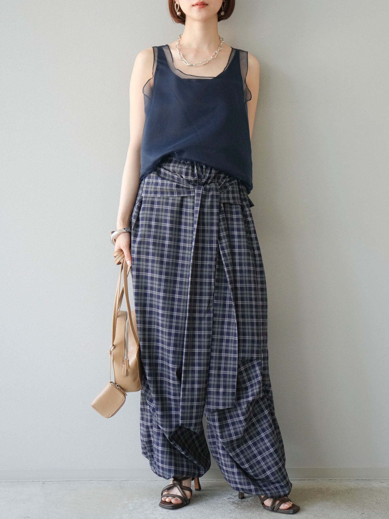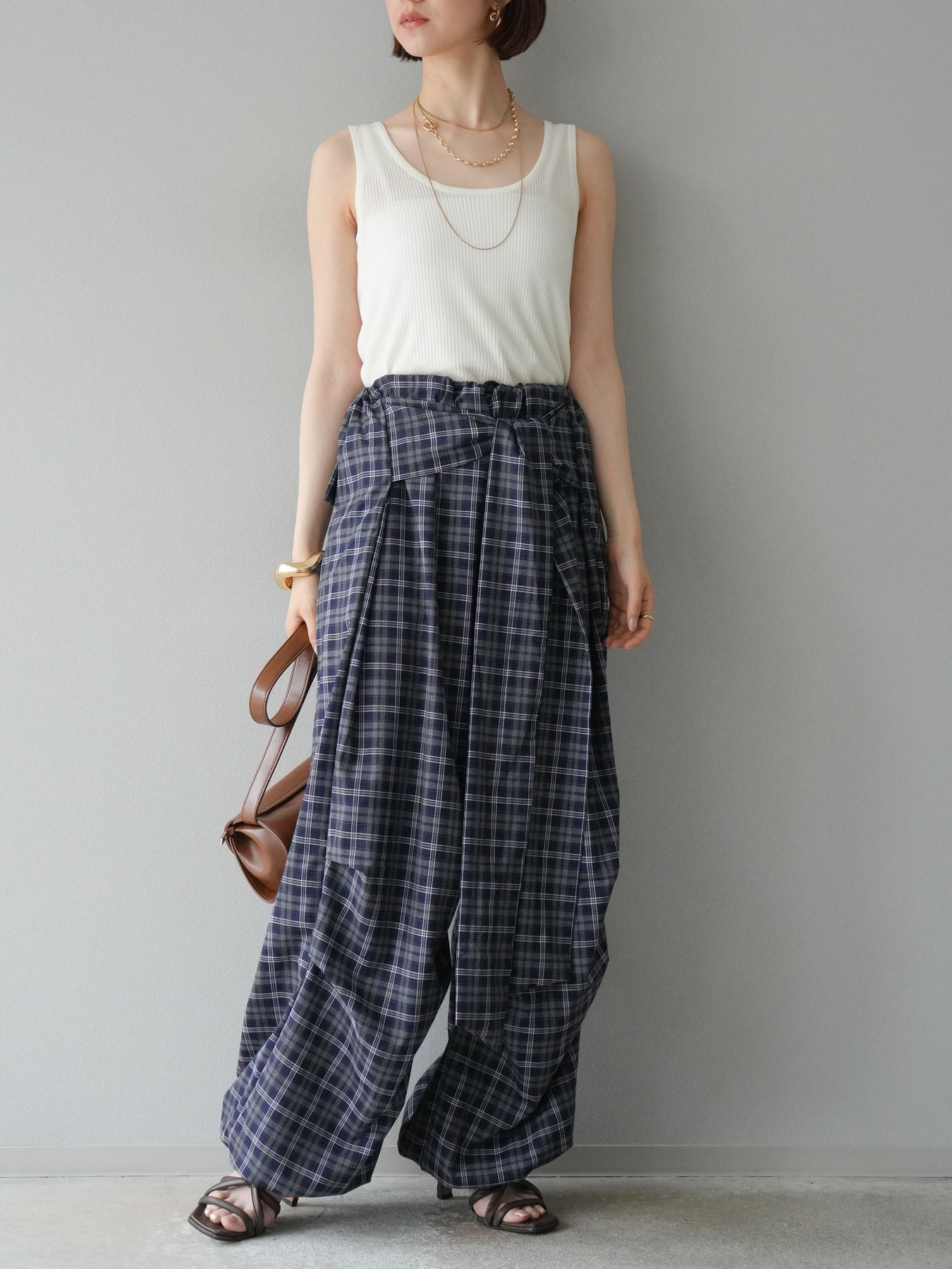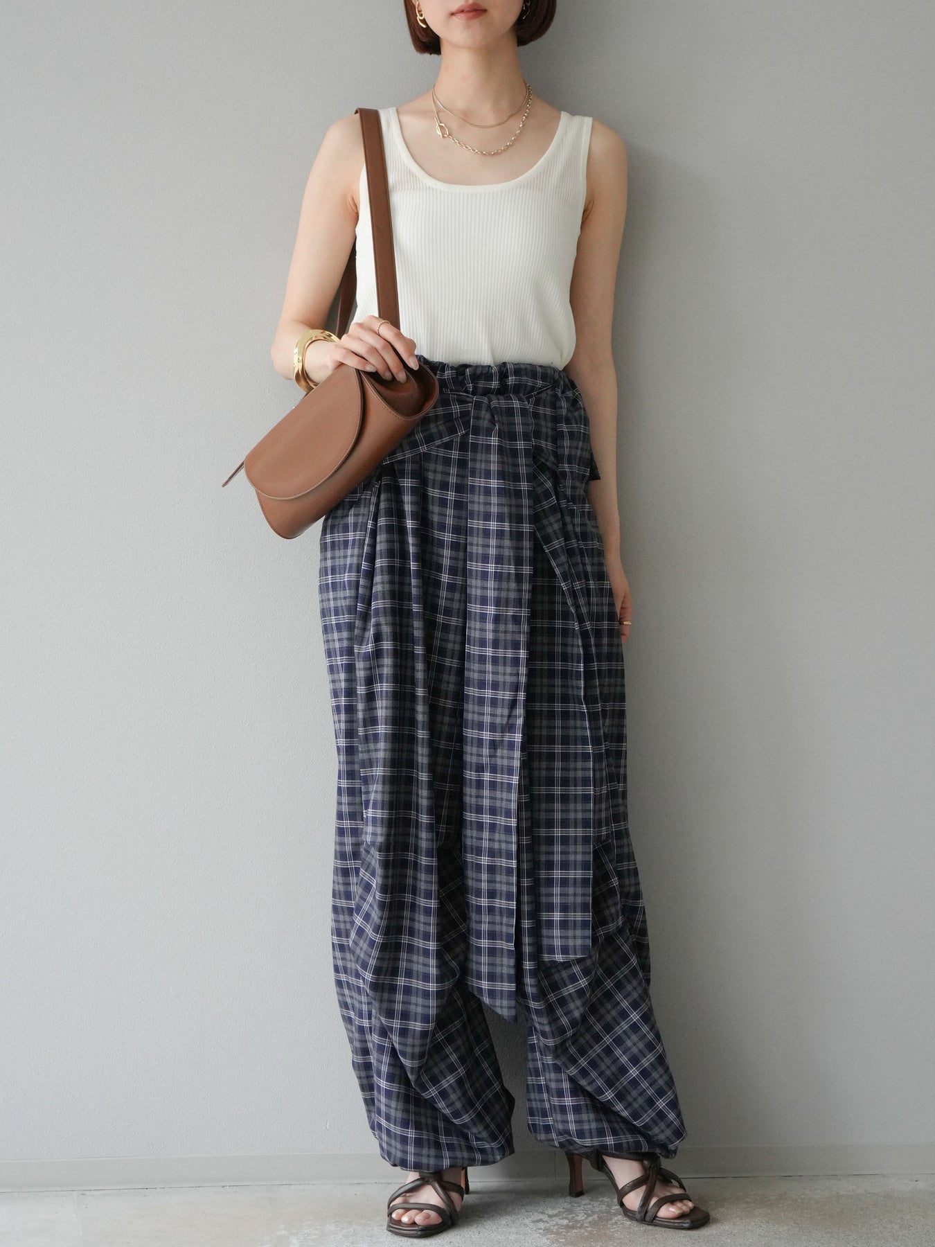 [予約]チェック柄ウエスト巻きドロストパンツに関連する商品を探す↓