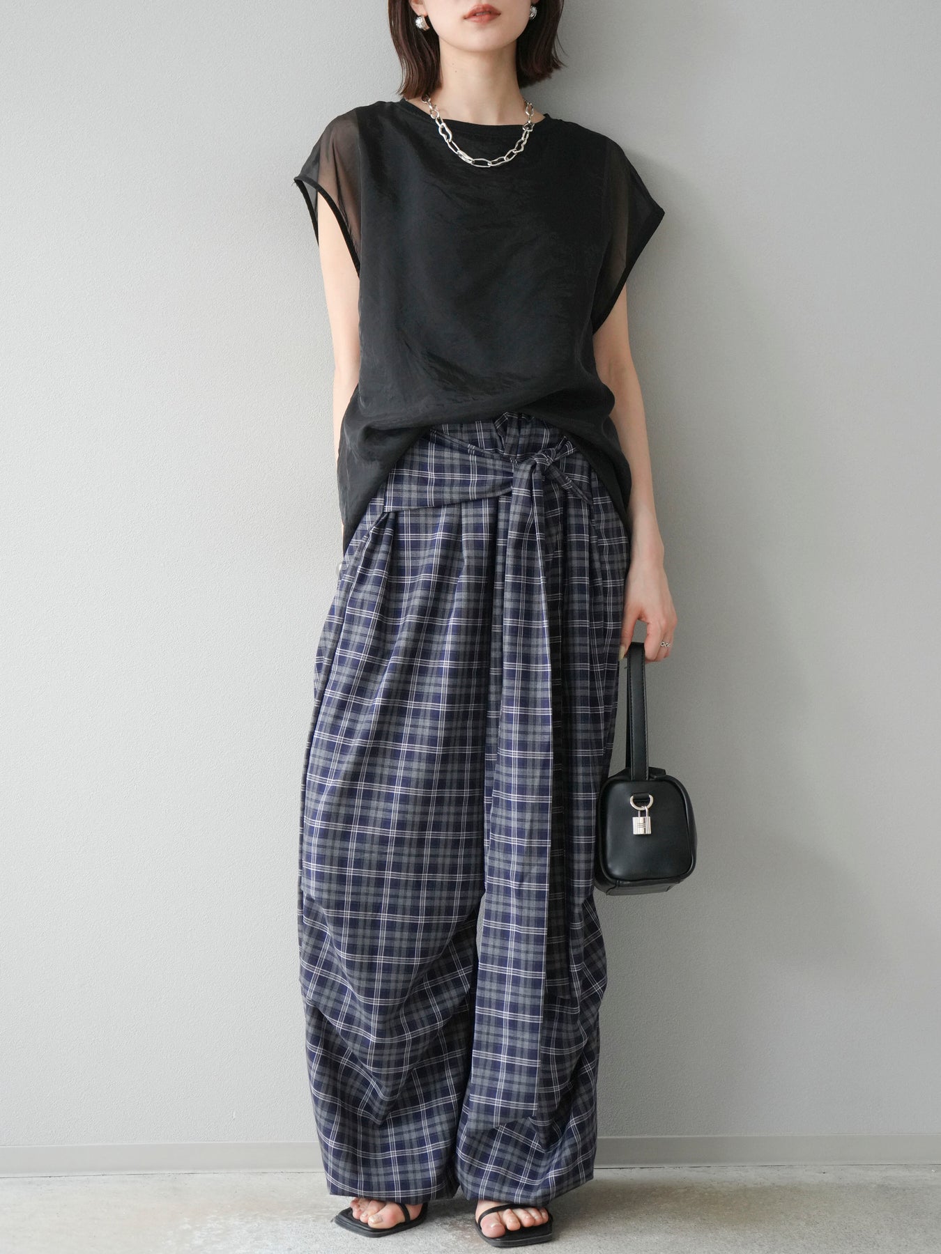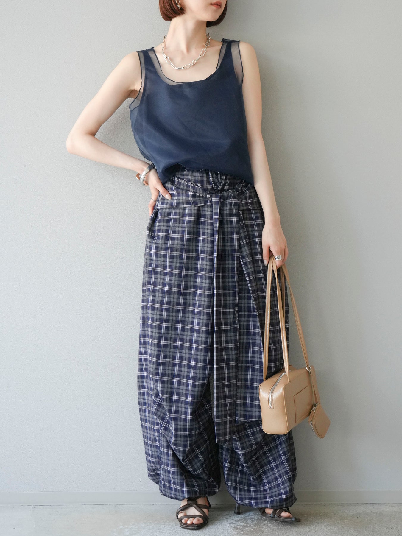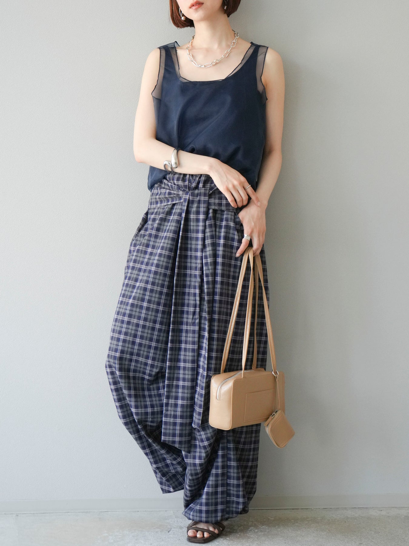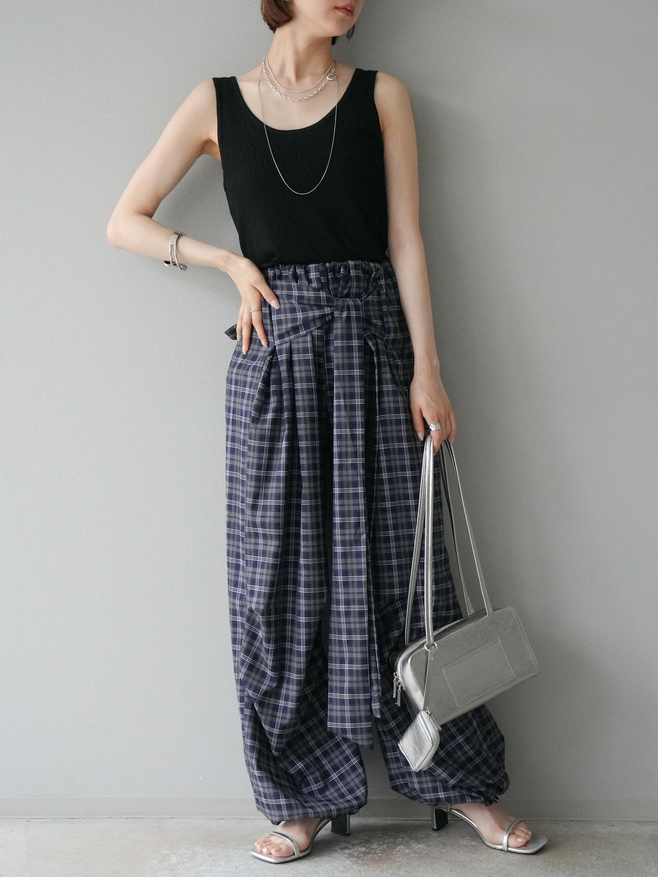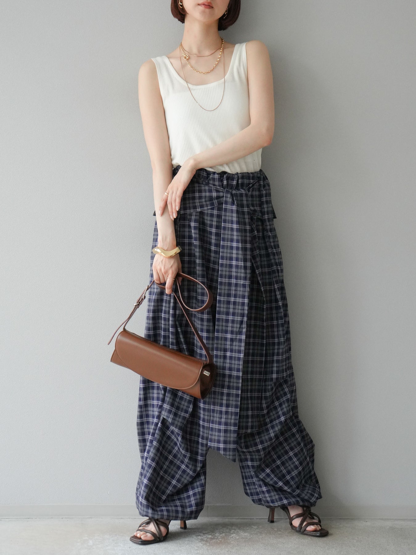 [予約]チェック柄ウエスト巻きドロストパンツに関連する商品を探す↓