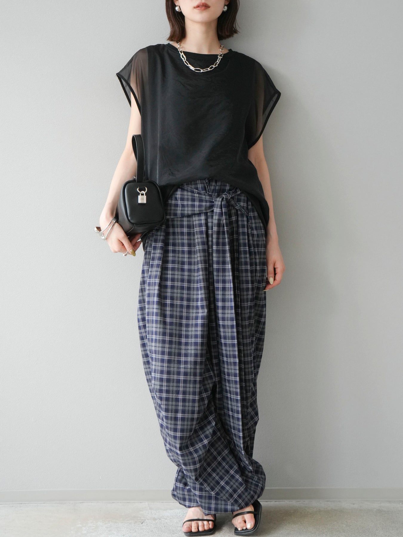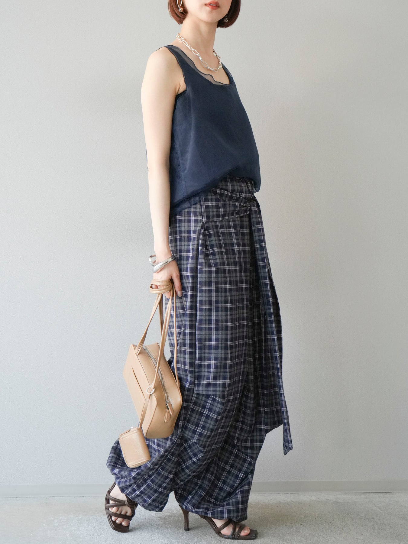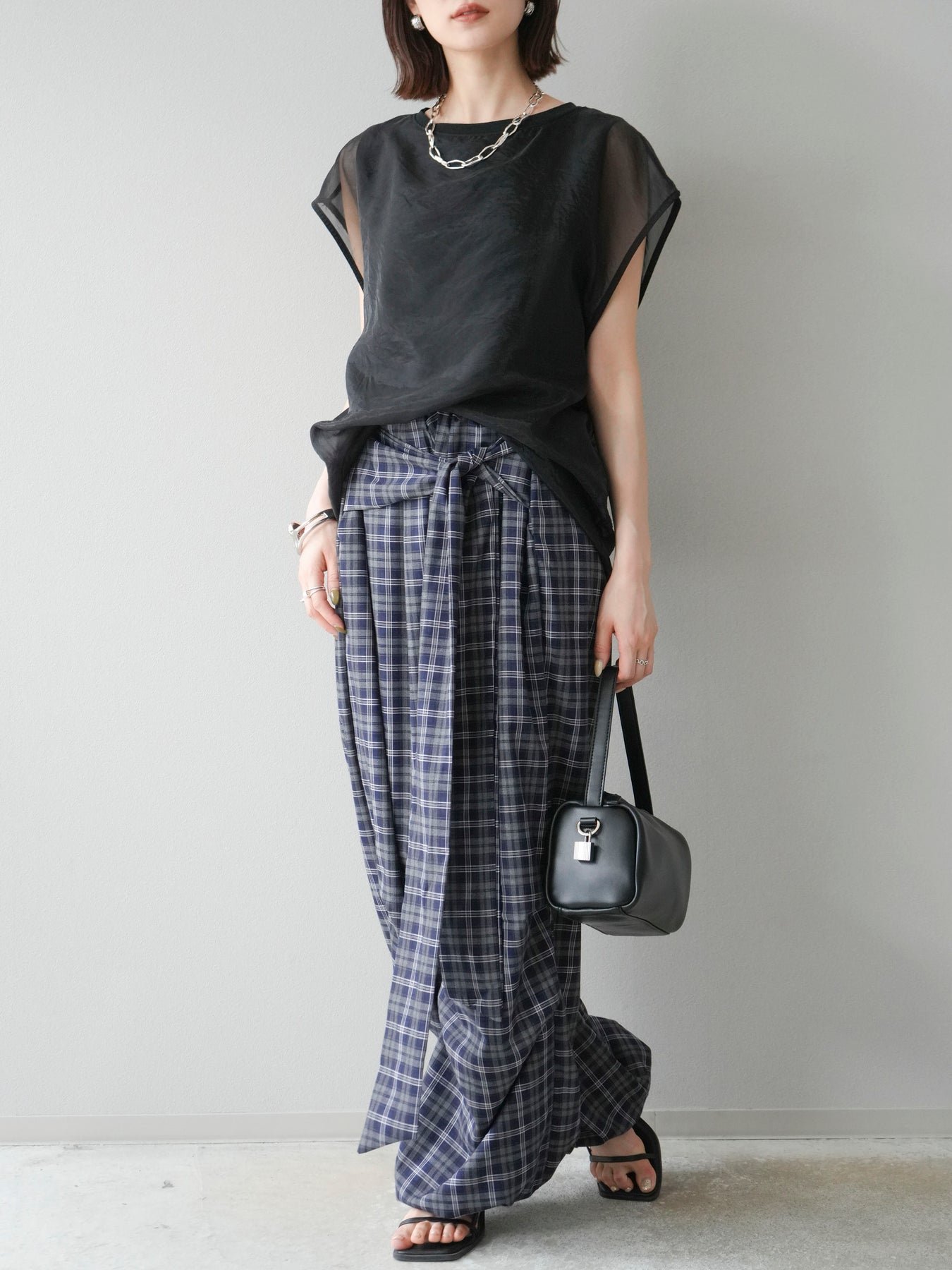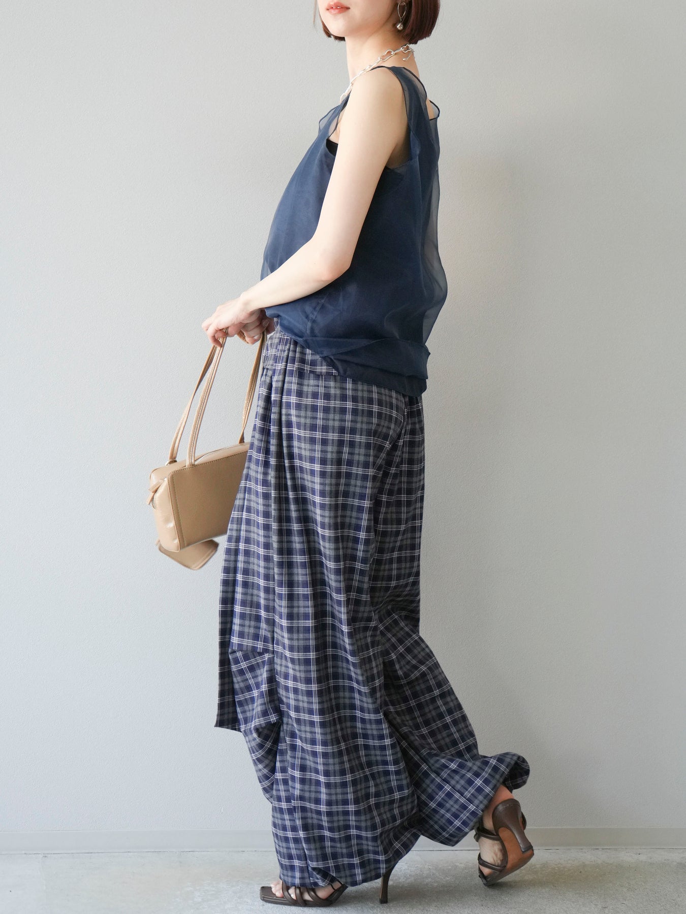 [予約]チェック柄ウエスト巻きドロストパンツに関連する商品を探す↓