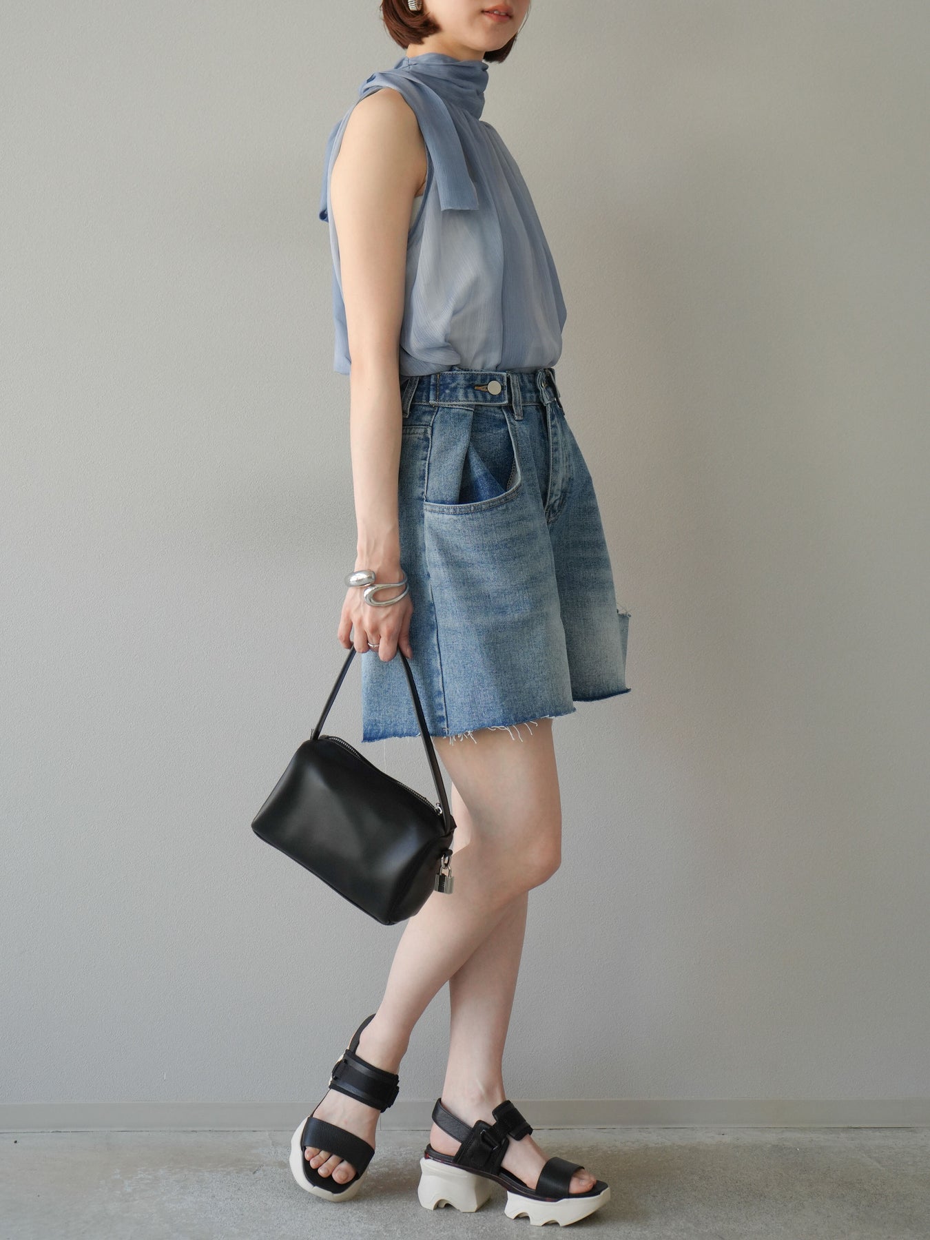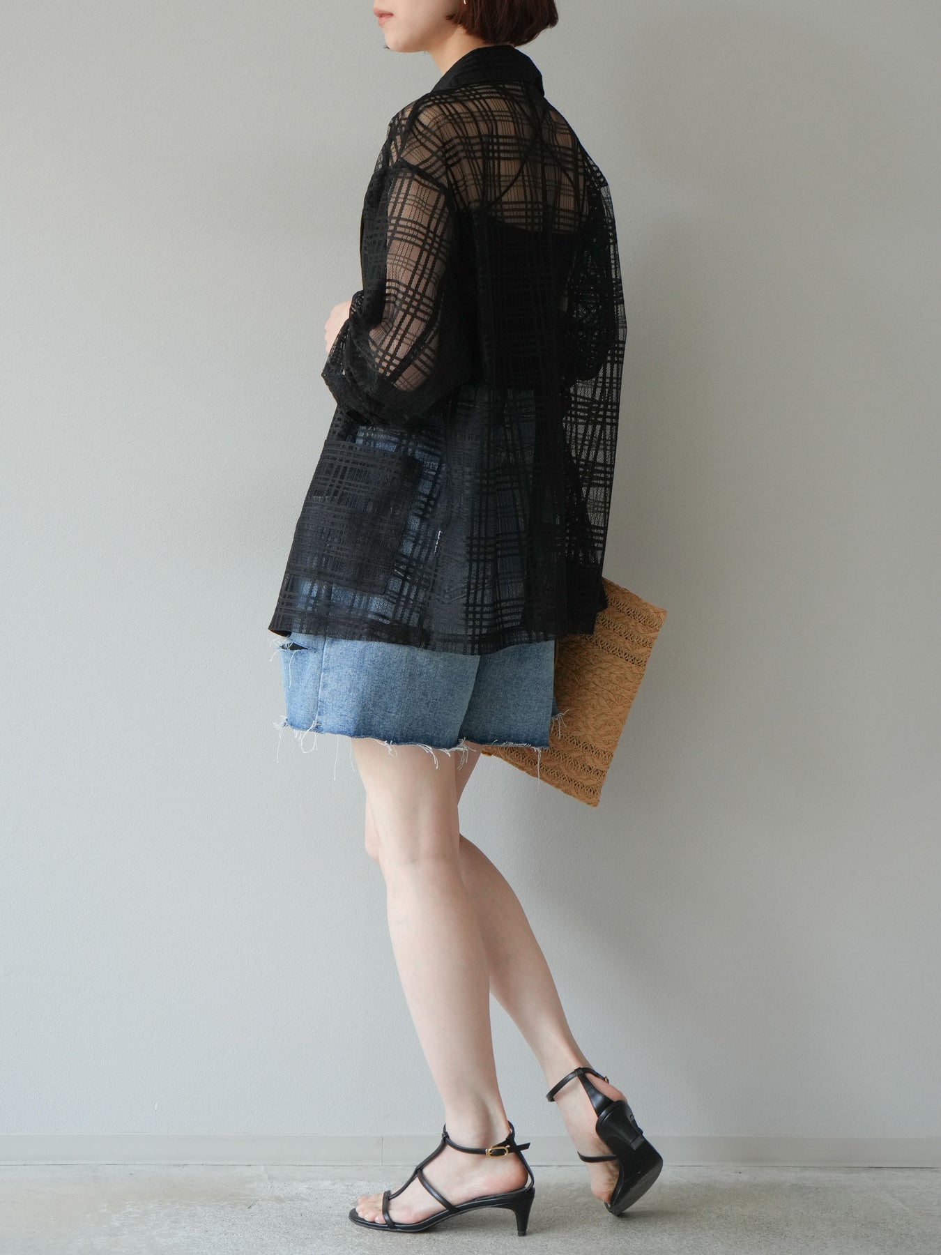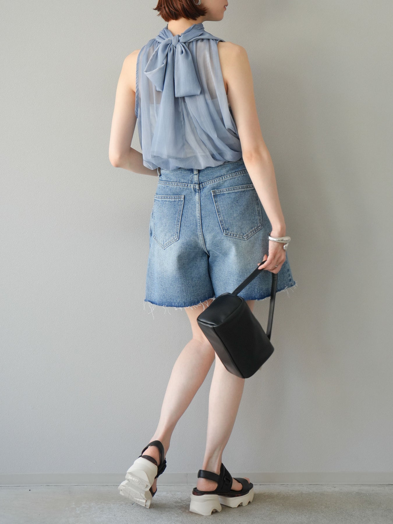 保養說明:建議在30°C或以下水溫下手洗。由於布料特性,洗滌過程中可能會出現褪色和縮水,因此建議單獨洗滌短時間。將衣物翻面,放入洗衣網中,選擇手洗模式洗滌,洗滌後,整理衣物後懸掛晾乾。 *請勿烘乾。 如果在濕潤狀態下摩擦,可能會褪色或串色。請避免浸泡或讓衣物被雨水或汗水浸濕,並及時處理。穿著時,請注意避免摩擦、汗水、水漬以及與不同顏色衣物疊穿。