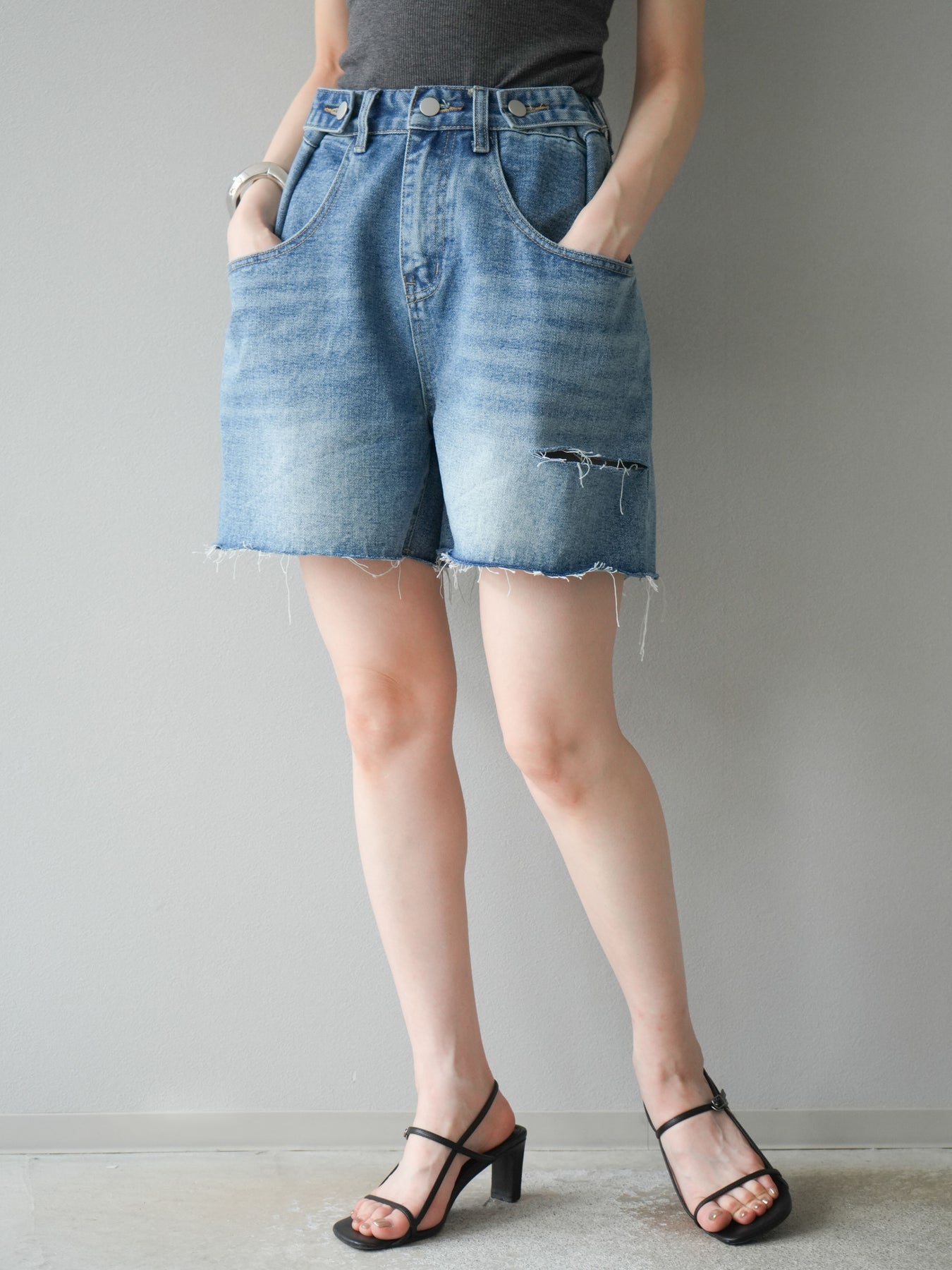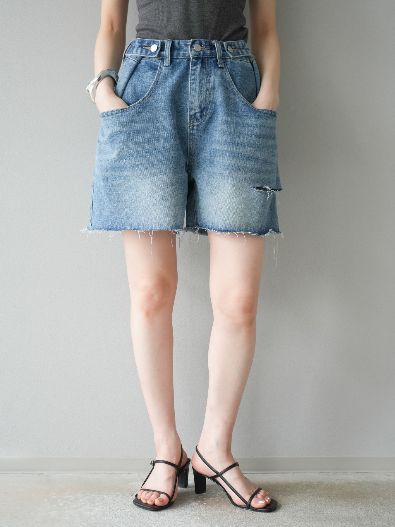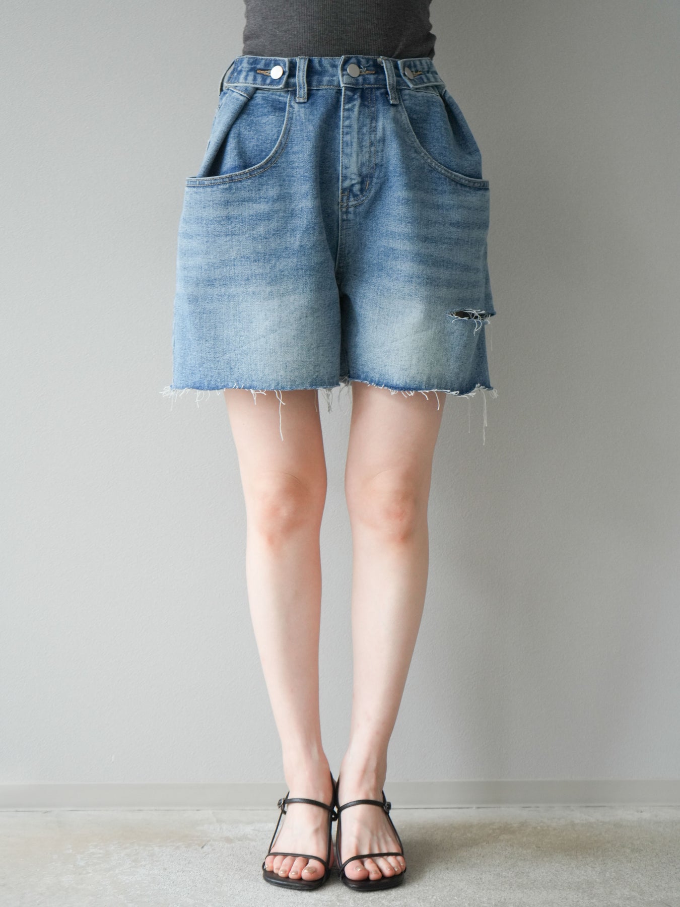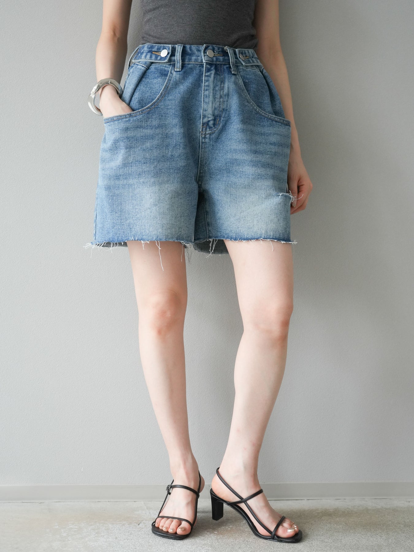 寬鬆適中的半身牛仔褲。水洗工藝和毛邊下擺營造出輕鬆休閒的風格,只需搭配一件簡單的上衣即可打造時尚造型。略高腰的設計也有顯瘦效果。柔軟的牛仔布料活動自如,非常適合日常穿著。它與T恤和襯衫搭配完美,是您春夏衣櫥的必備單品。