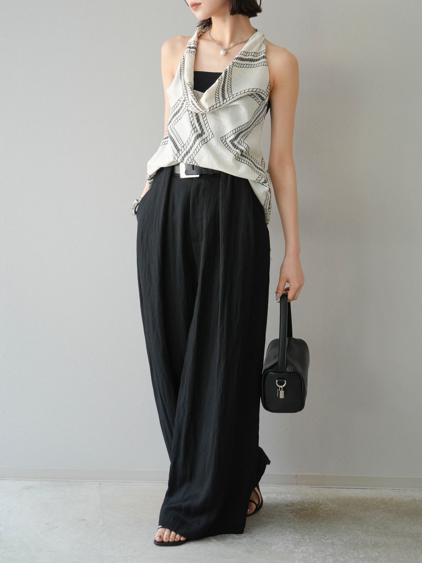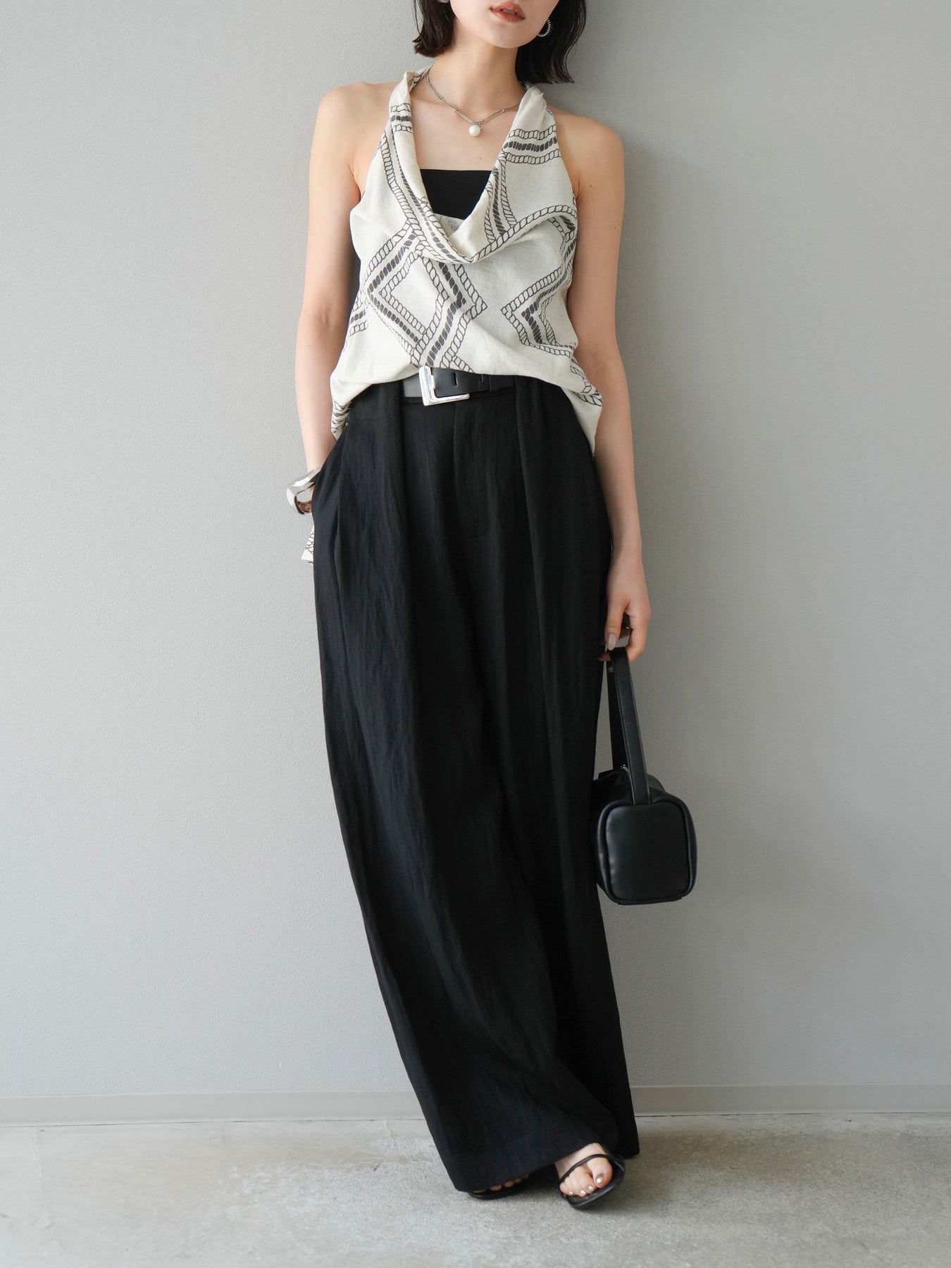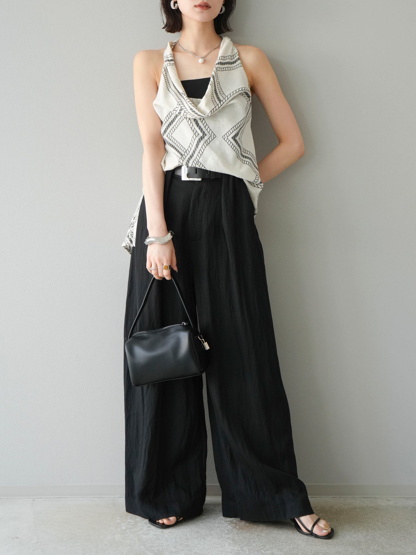 這款闊腿褲造型時尚,腰部配有寬腰帶。寬鬆的直筒輪廓和垂墜的布料營造出優美的效果,更能拉長腿部線條。腰帶可拆卸,方便依個人風格變換造型。建議將上衣塞進褲腰,讓腰帶成為視覺焦點,或搭配寬鬆的襯衫,打造休閒造型。這是一款兼具百搭性與設計感的單品。