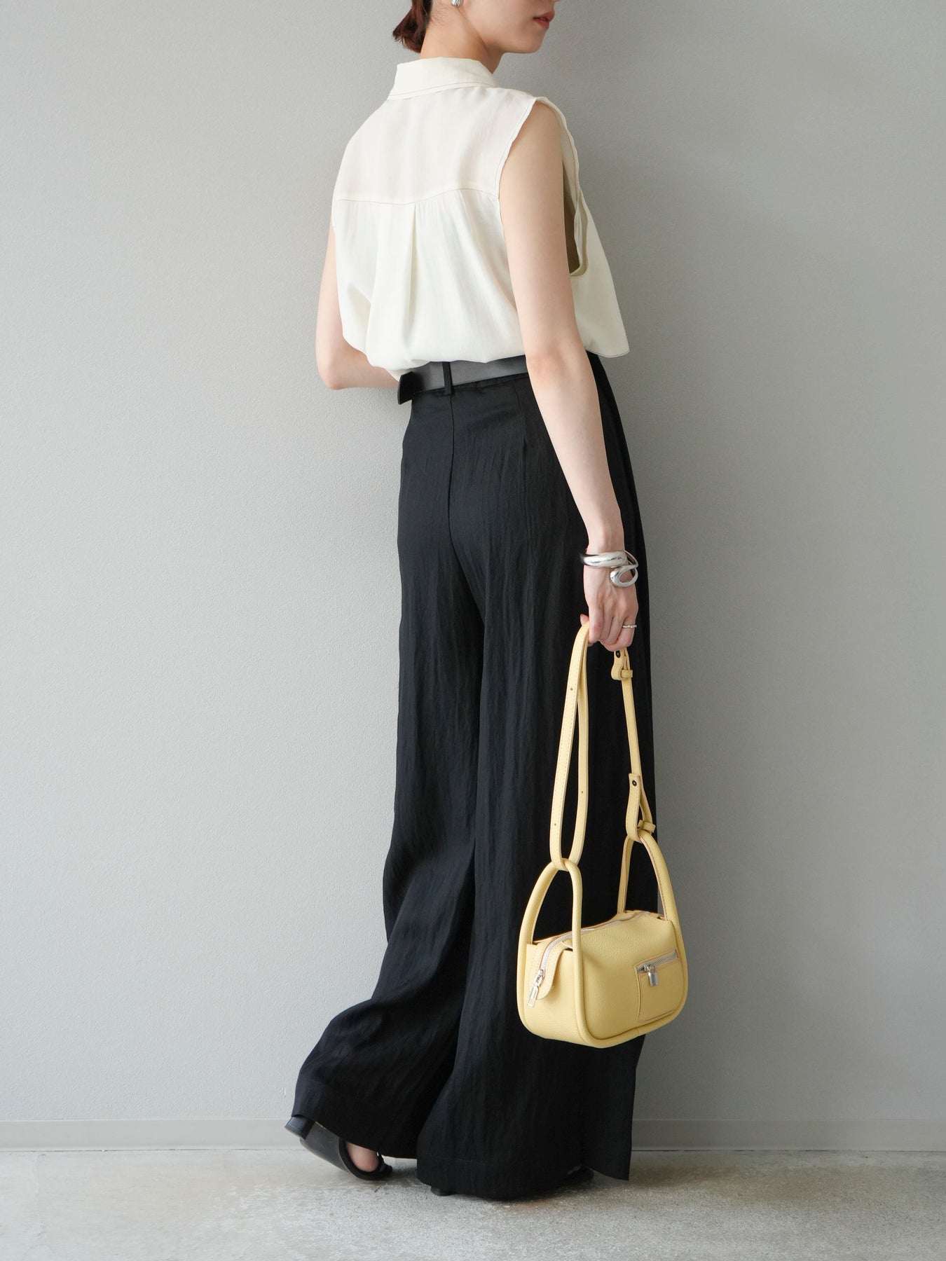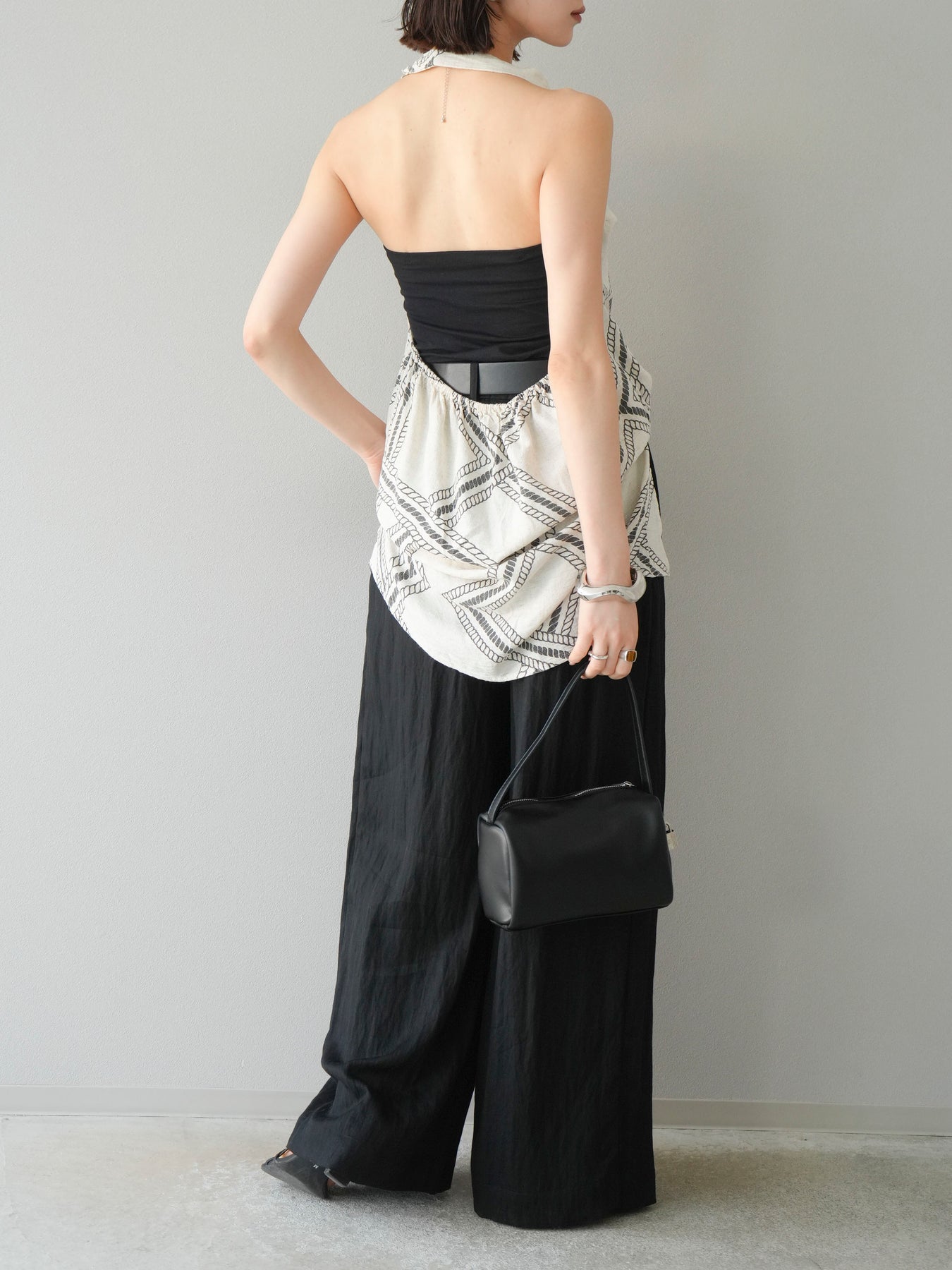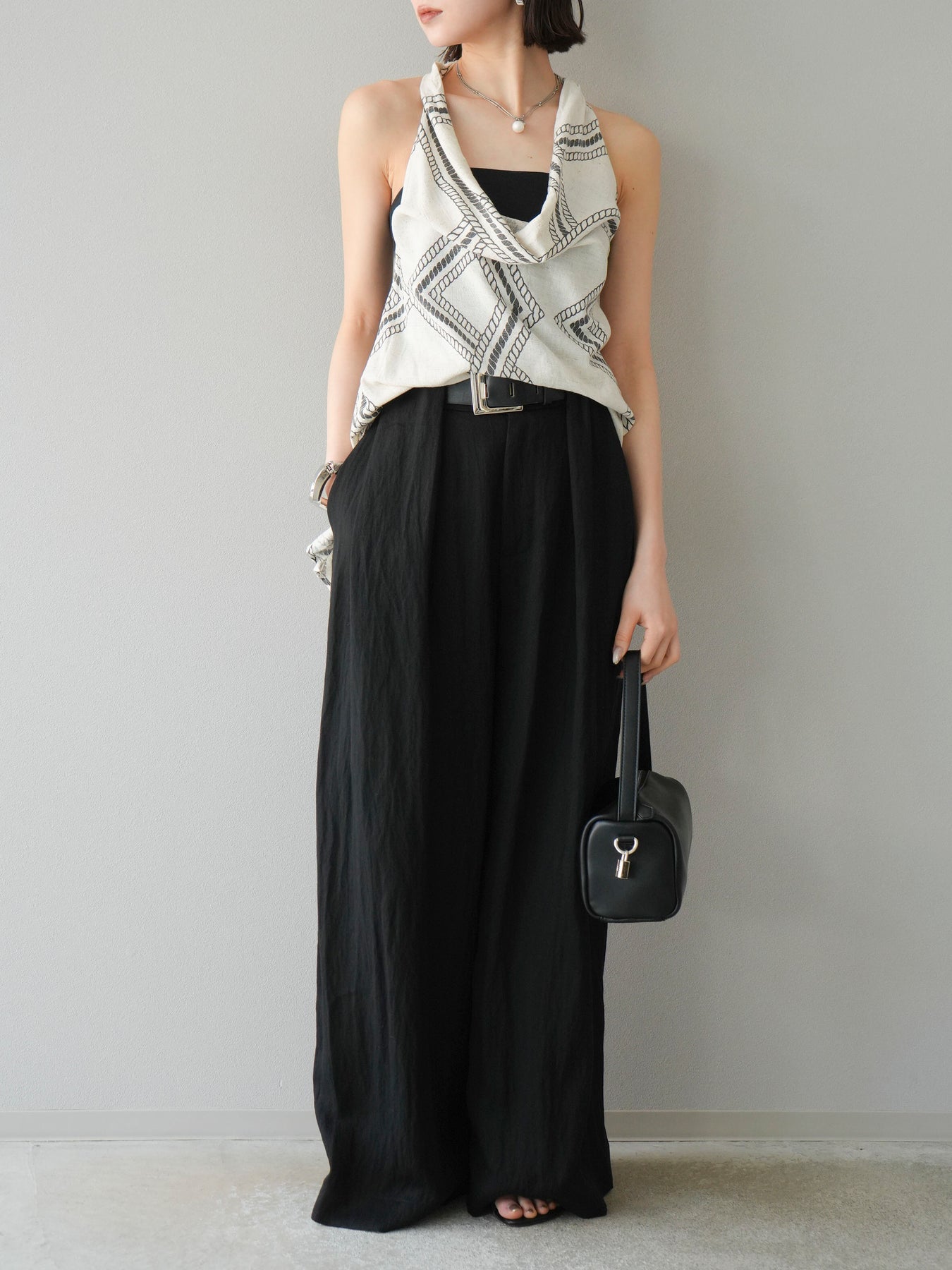 這款闊腿褲造型時尚,腰部配有寬腰帶。寬鬆的直筒輪廓和垂墜的布料營造出優美的效果,更能拉長腿部線條。腰帶可拆卸,方便依個人風格變換造型。建議將上衣塞進褲腰,讓腰帶成為視覺焦點,或搭配寬鬆的襯衫,打造休閒造型。這是一款兼具百搭性與設計感的單品。