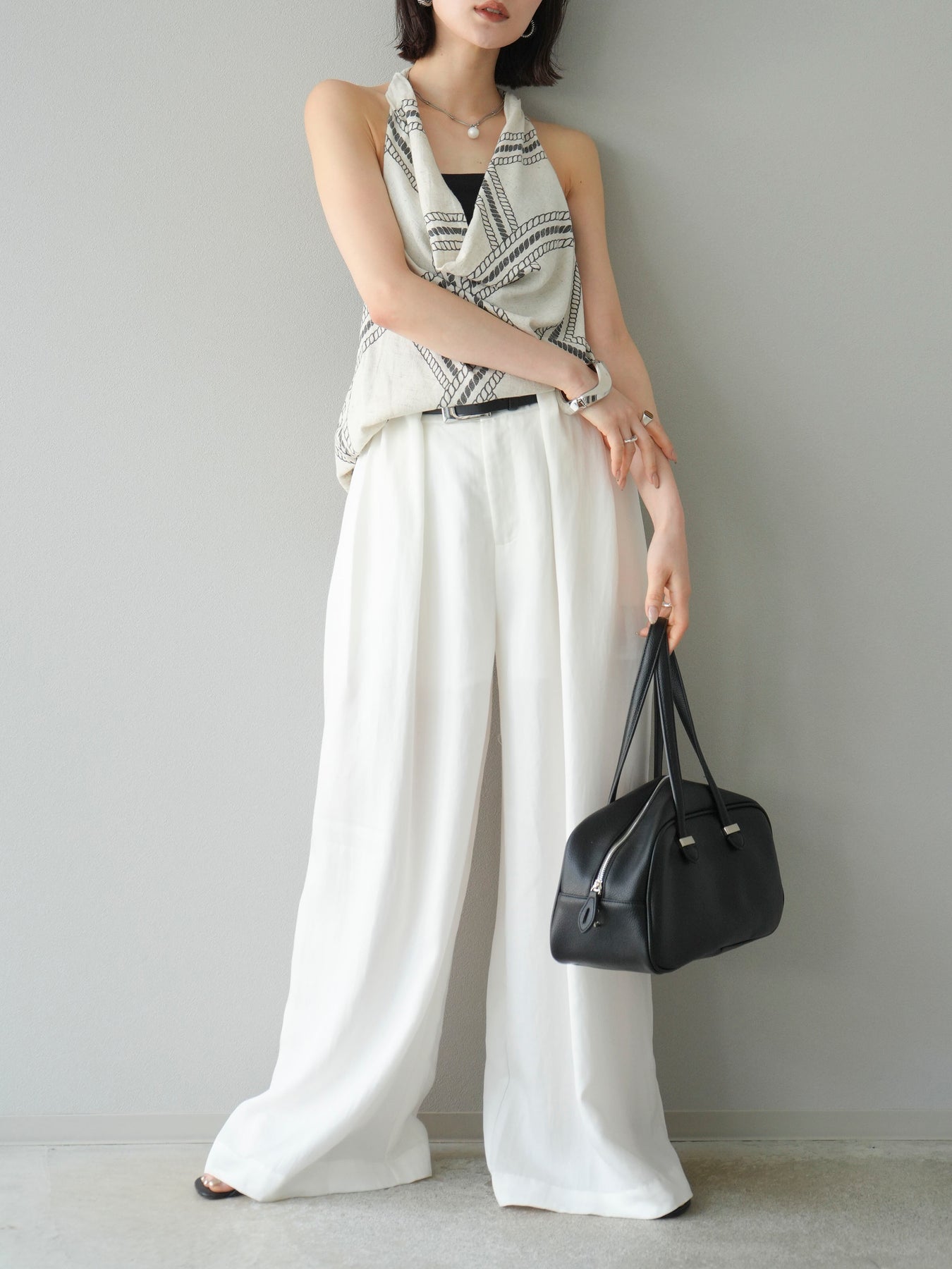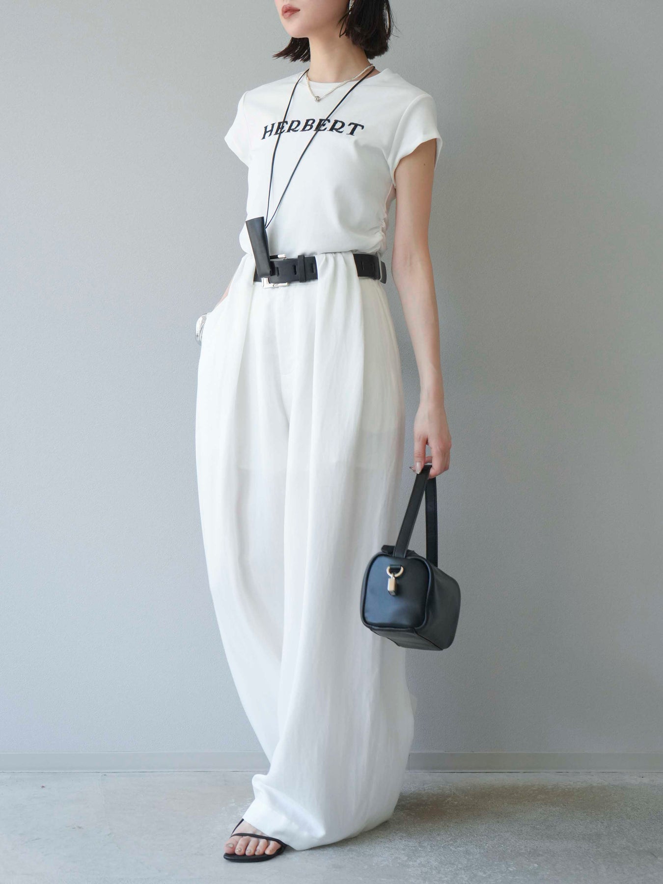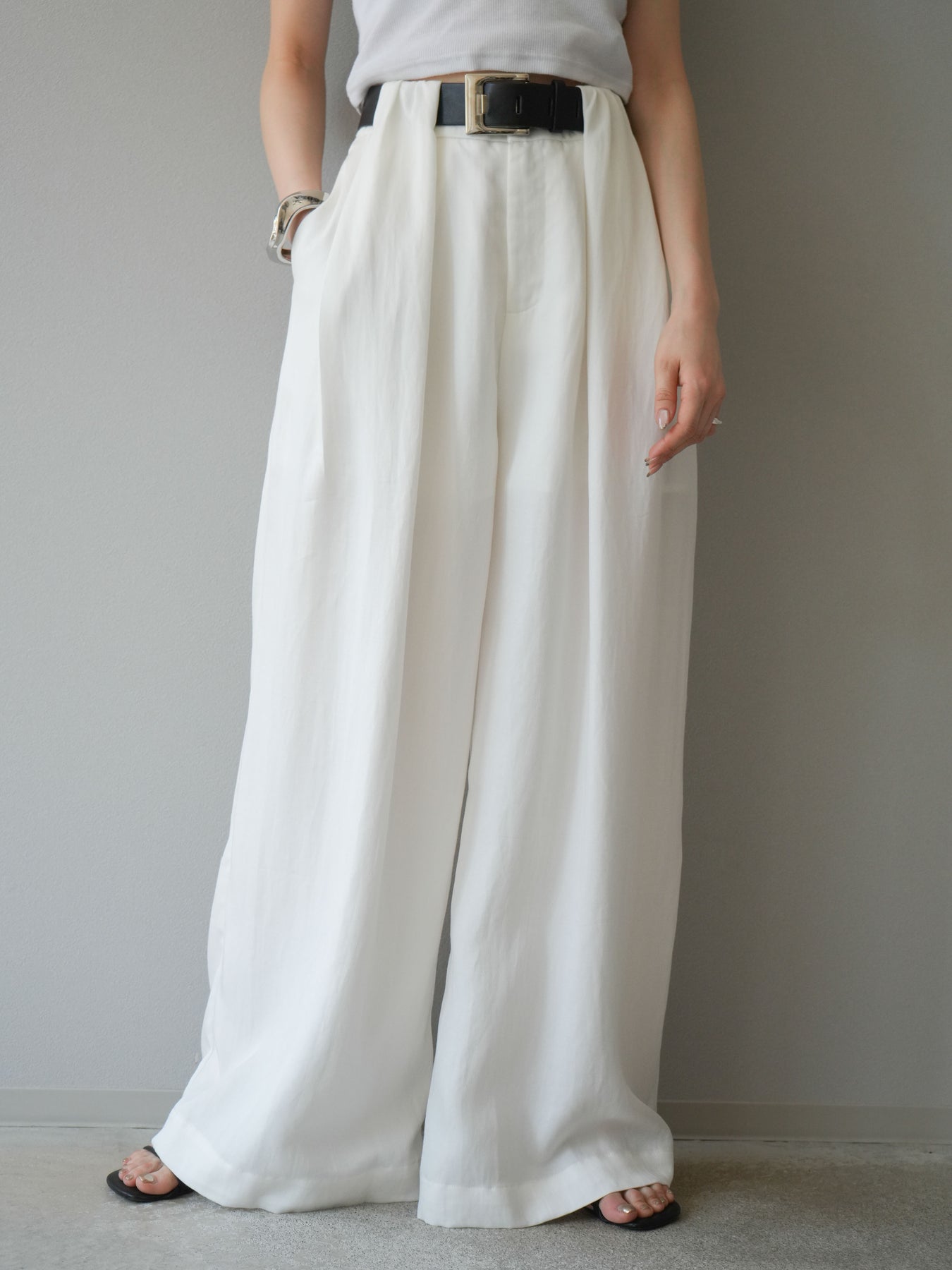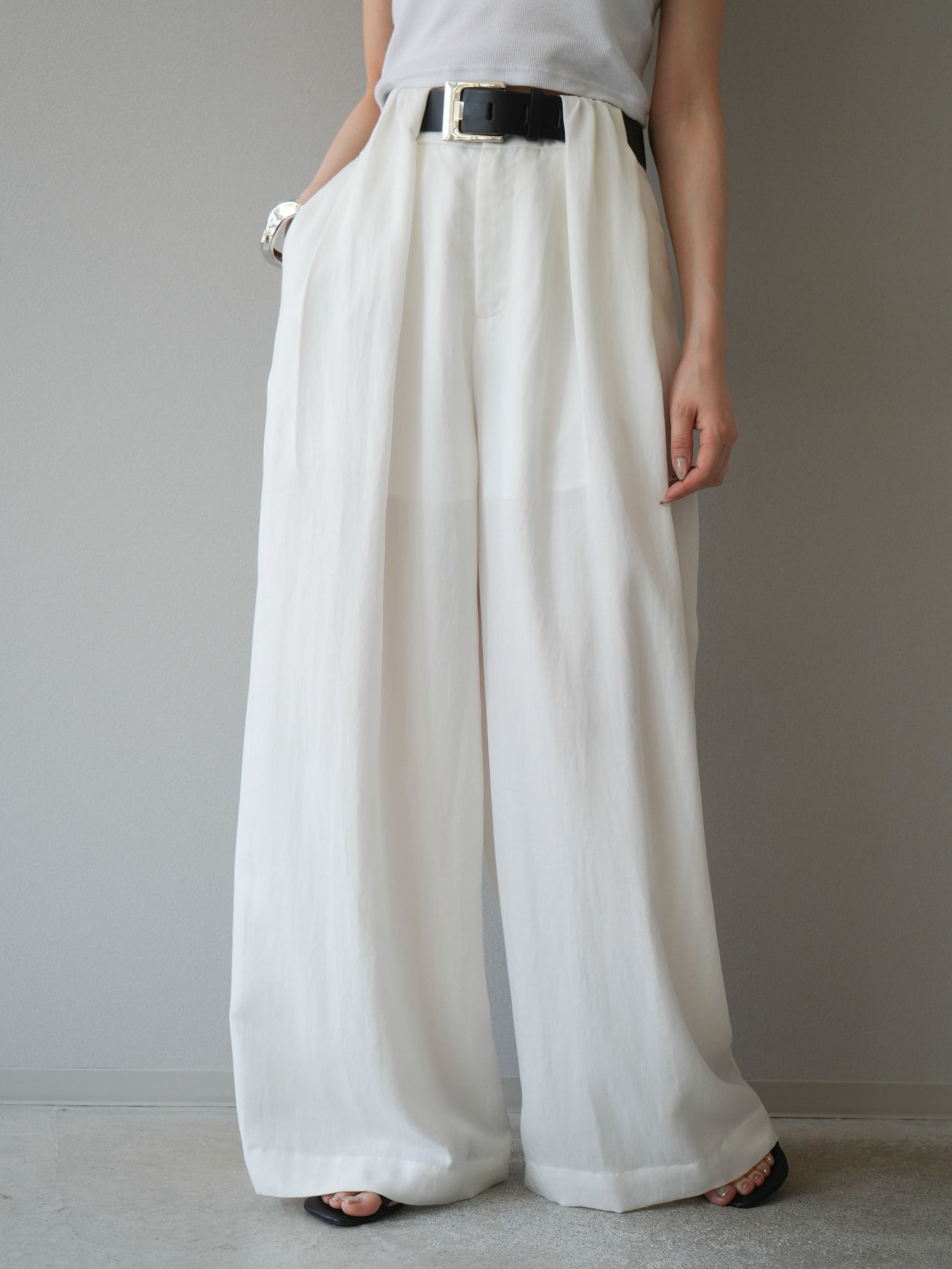 【預購】寬褲配大帶/象牙白