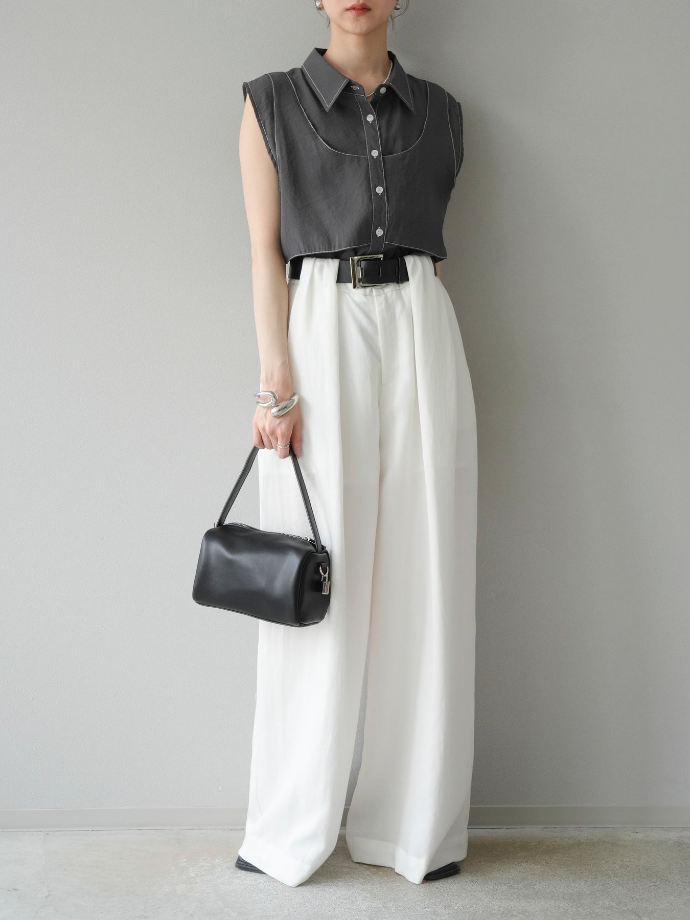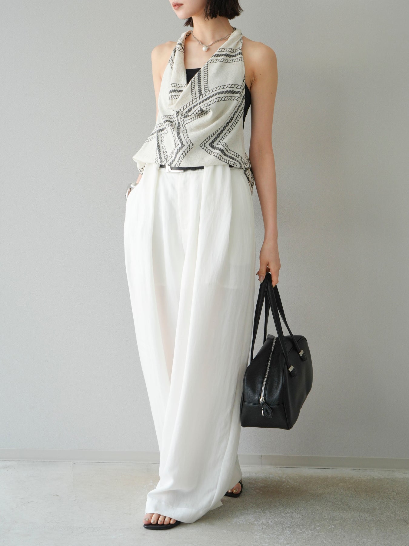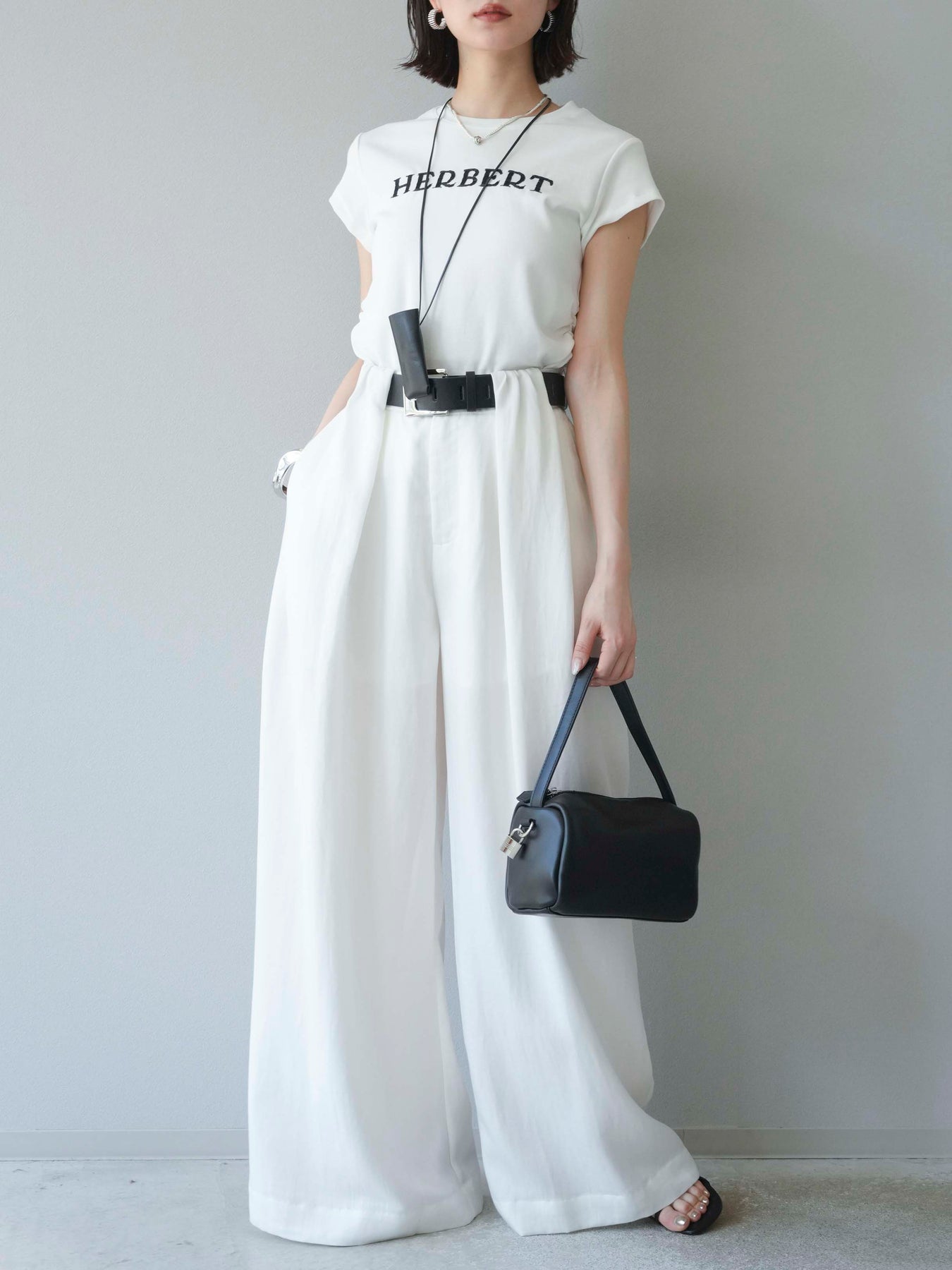 【預購】寬褲配大帶/象牙白