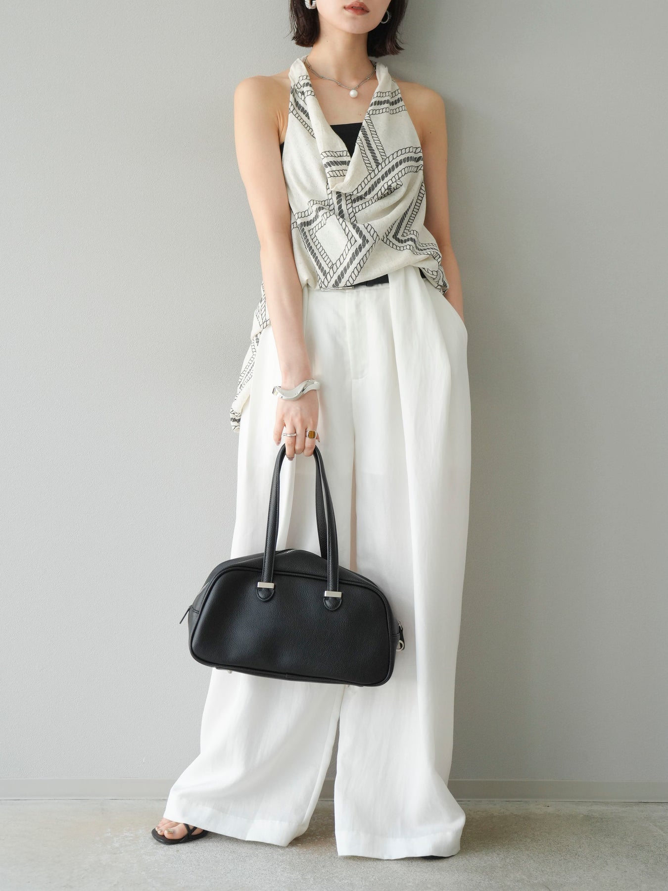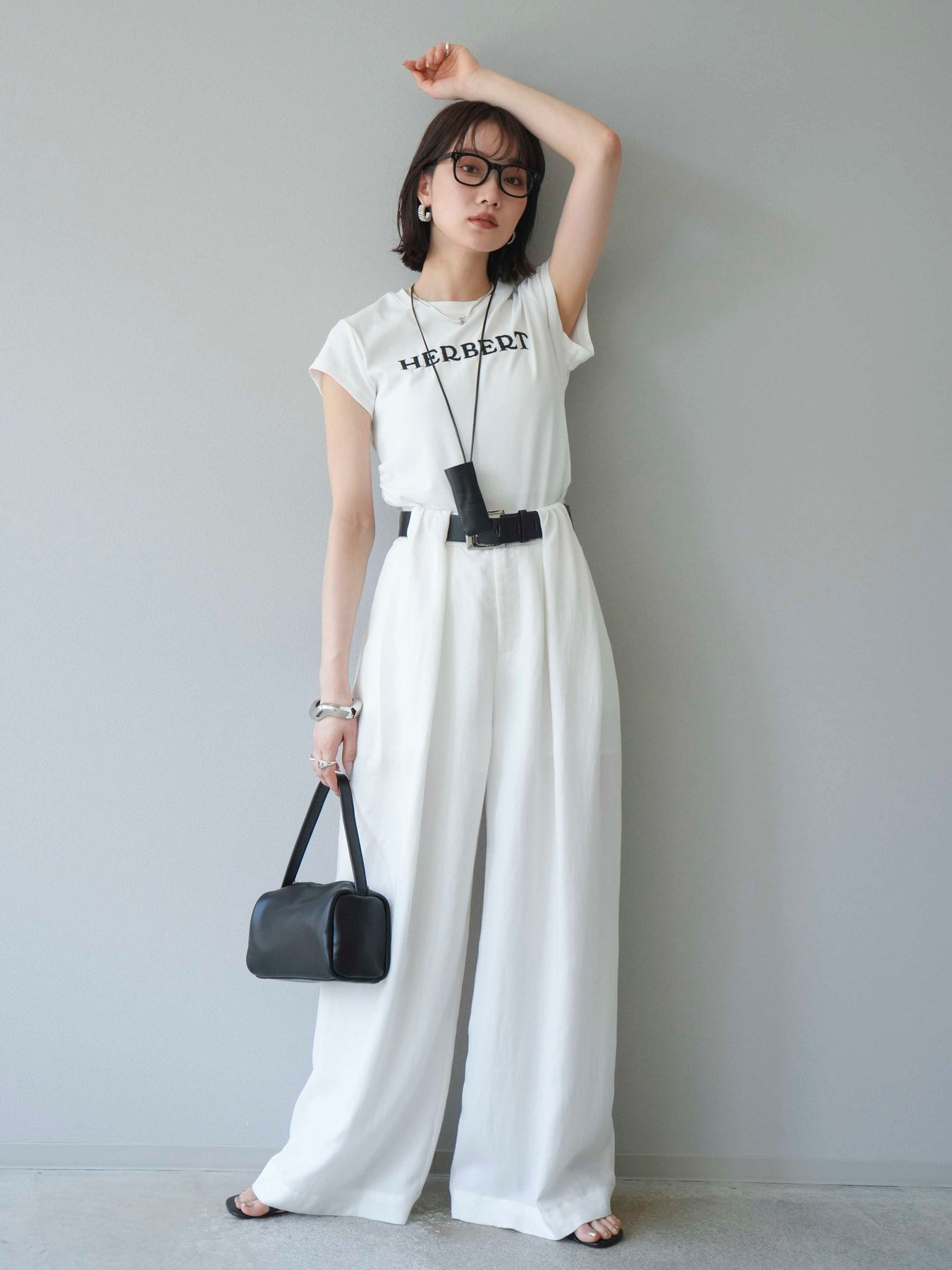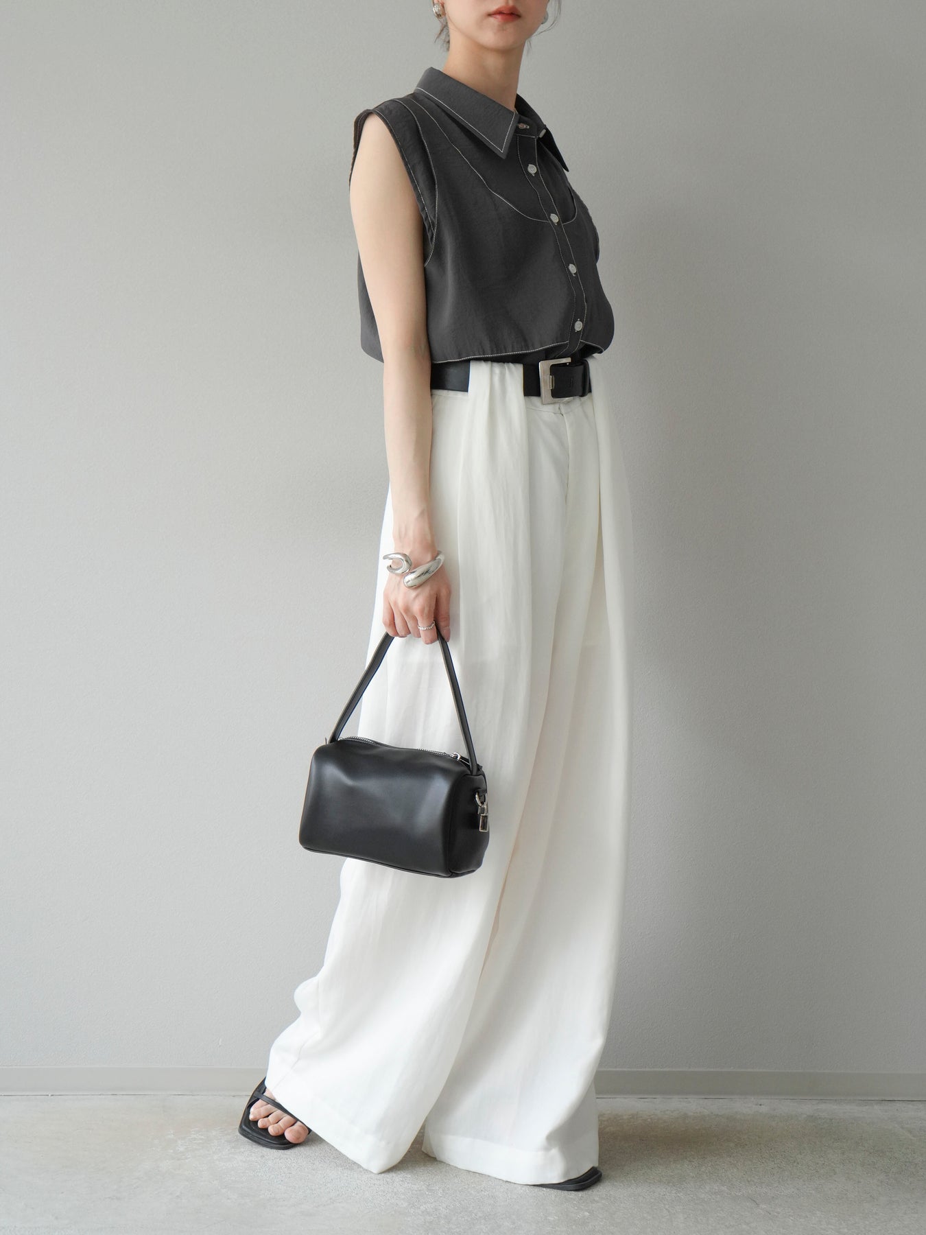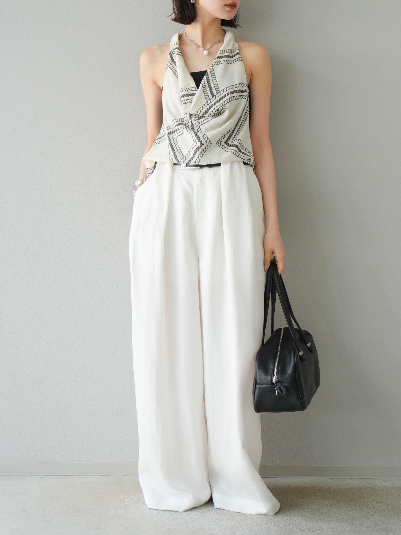 【預購】寬褲配大帶/象牙白