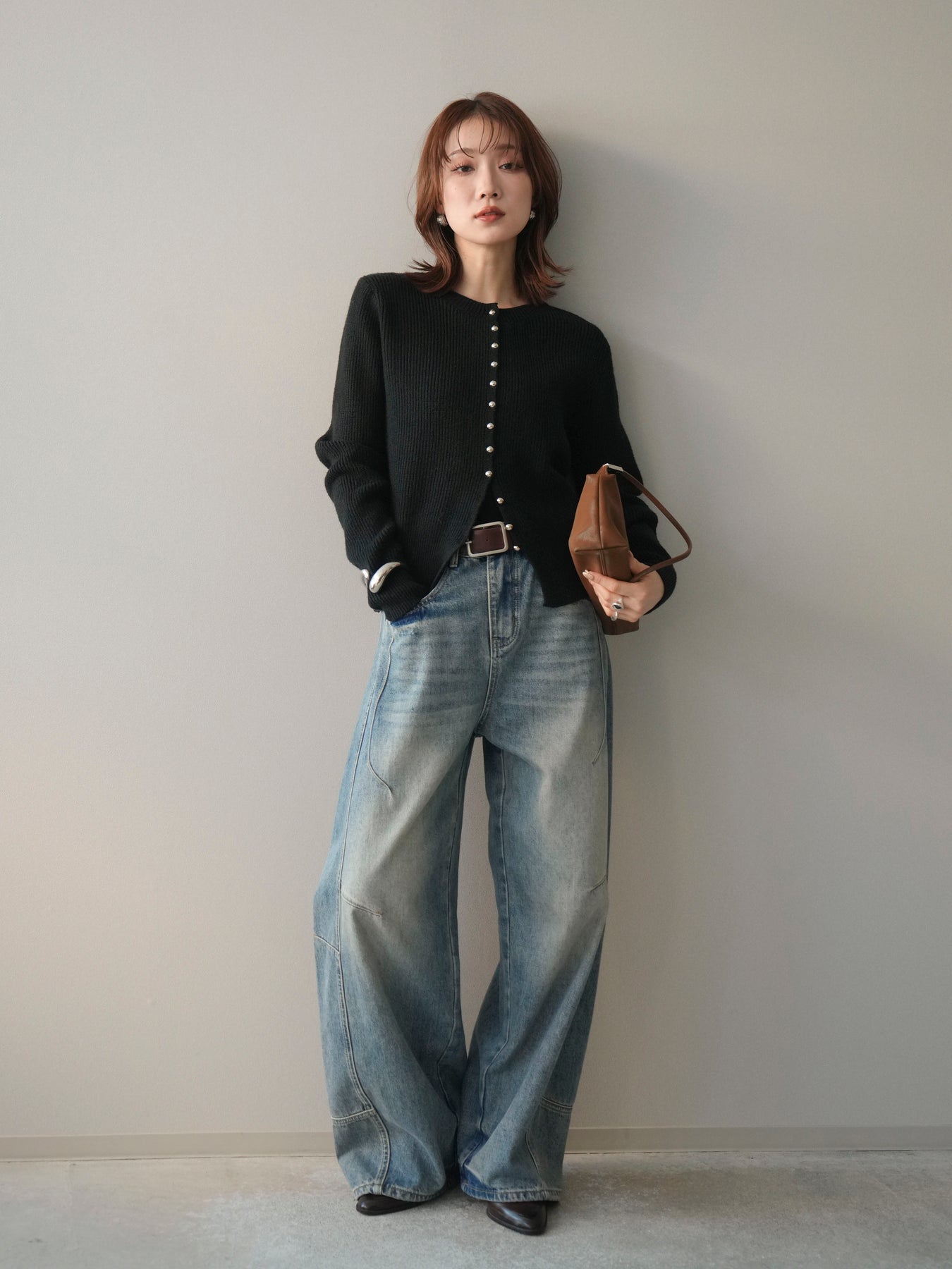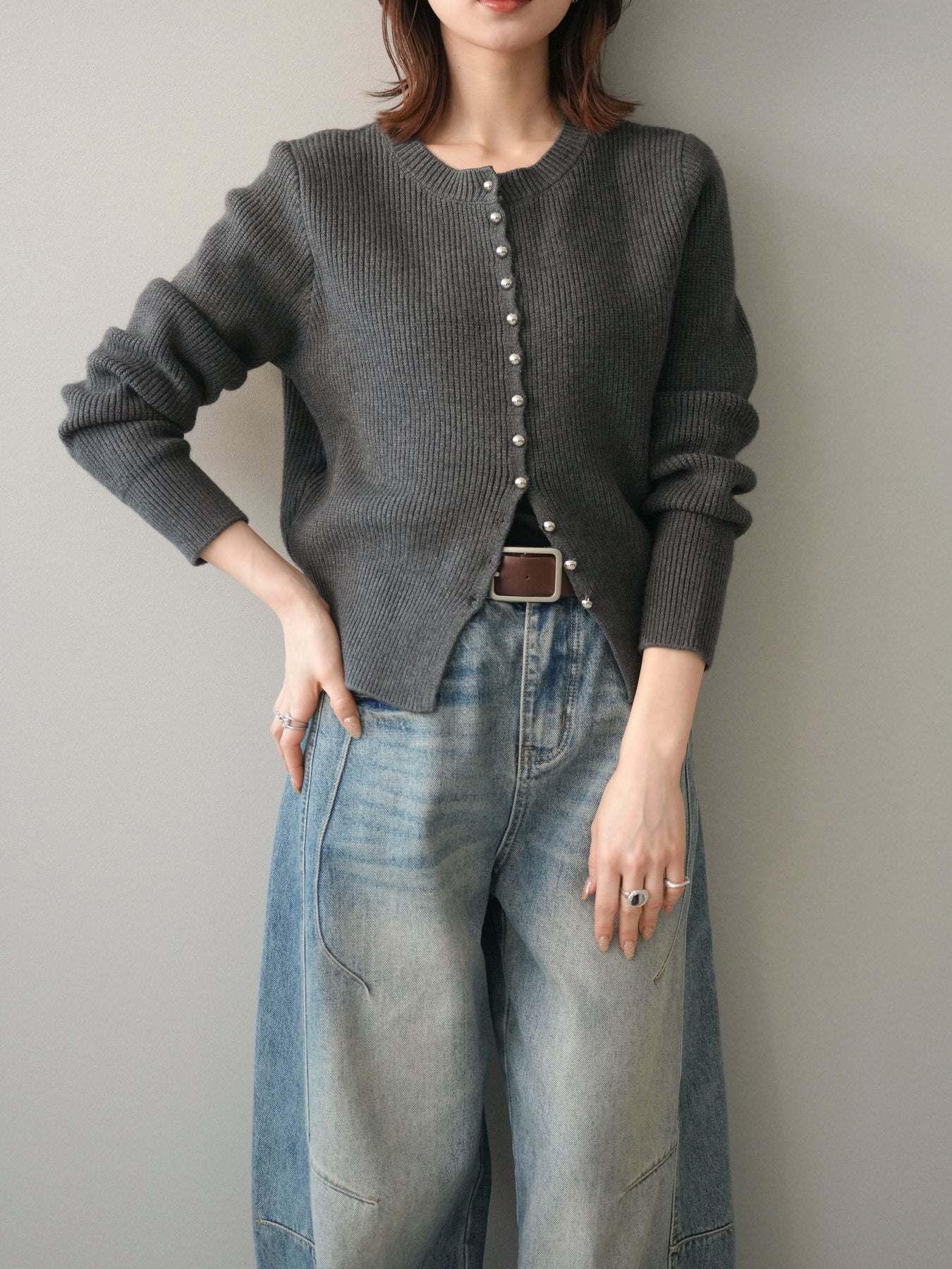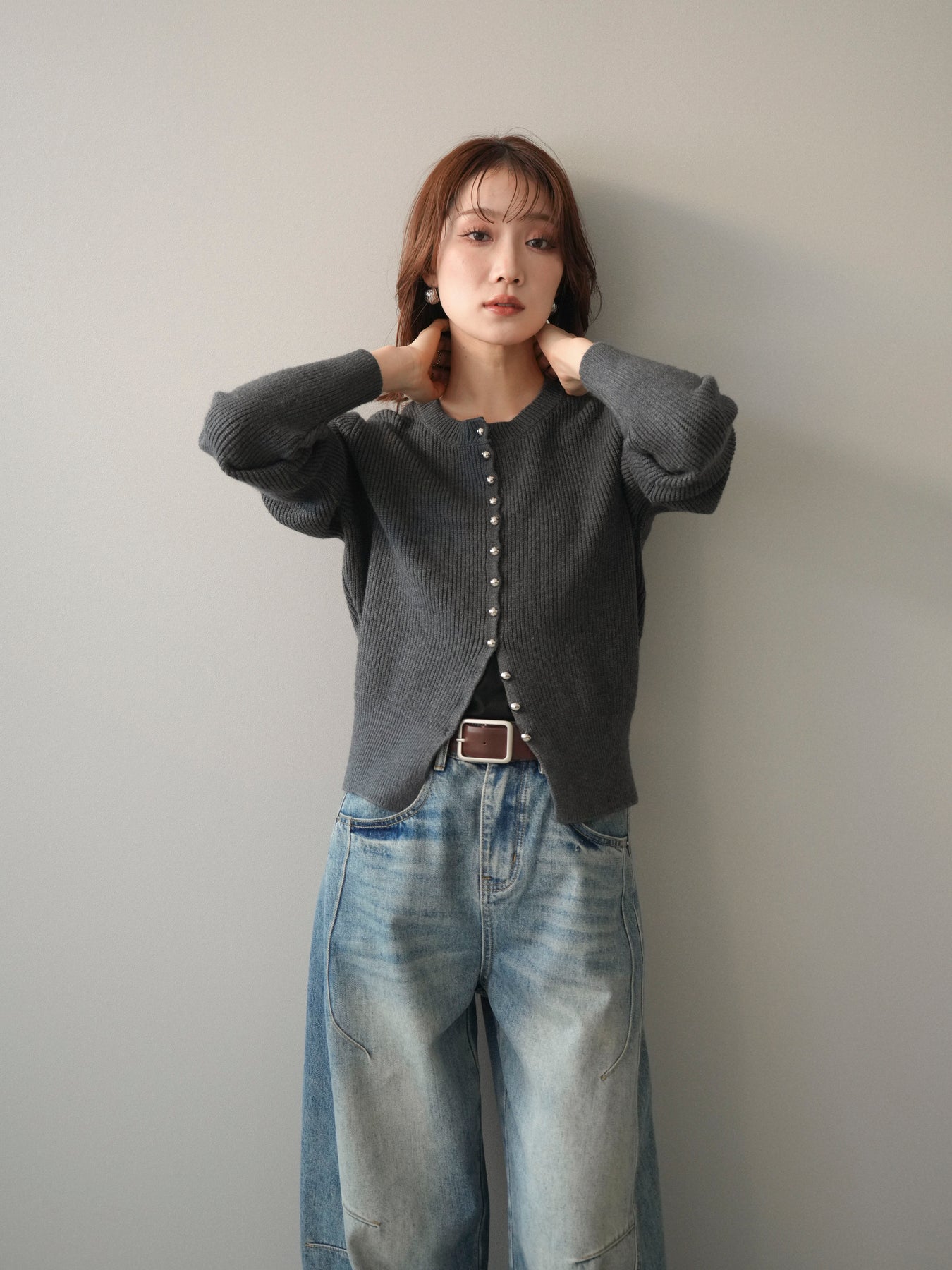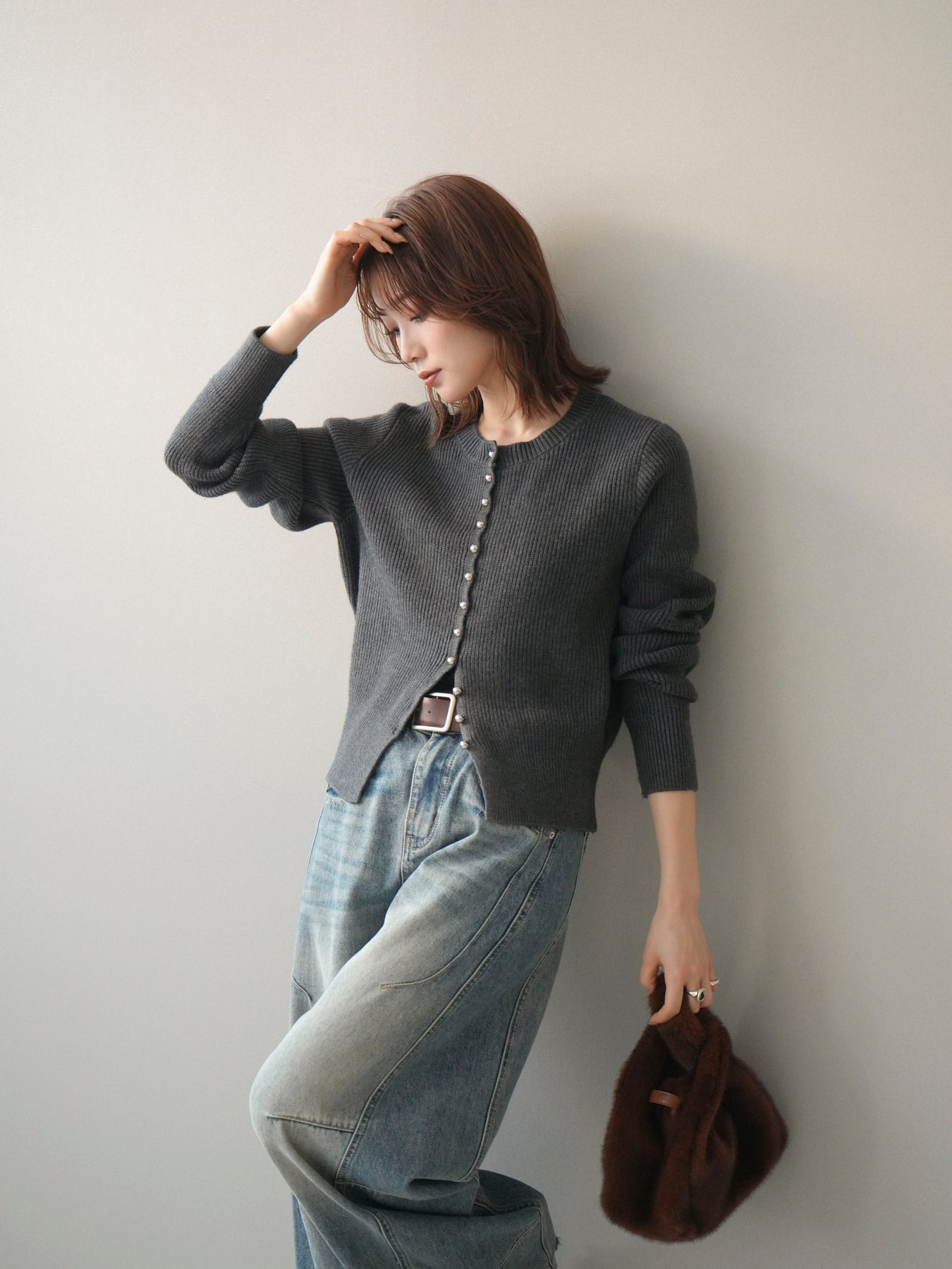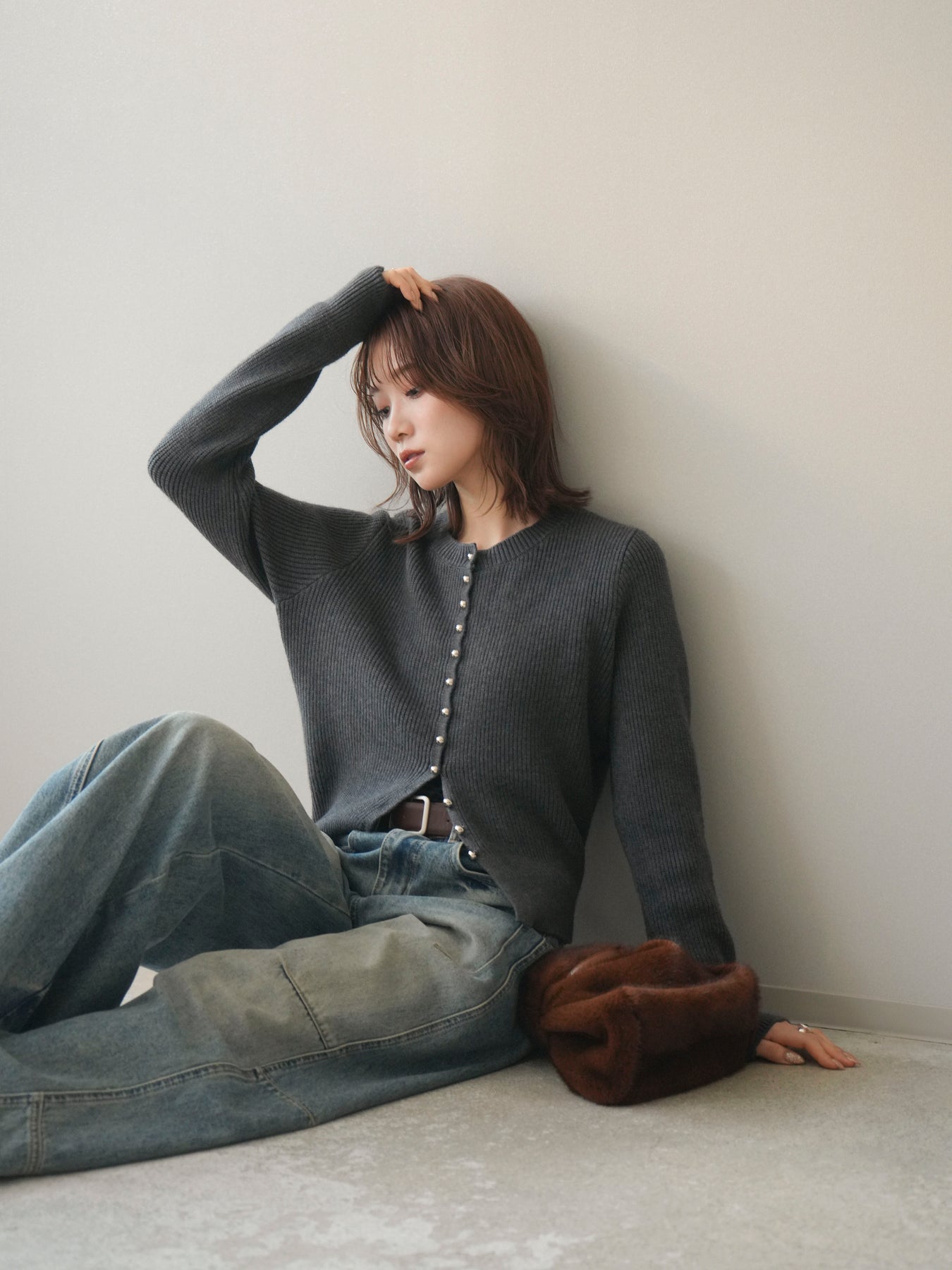[予約]シルバーボタン畦編みニットカーディガンに関連する商品を探す↓