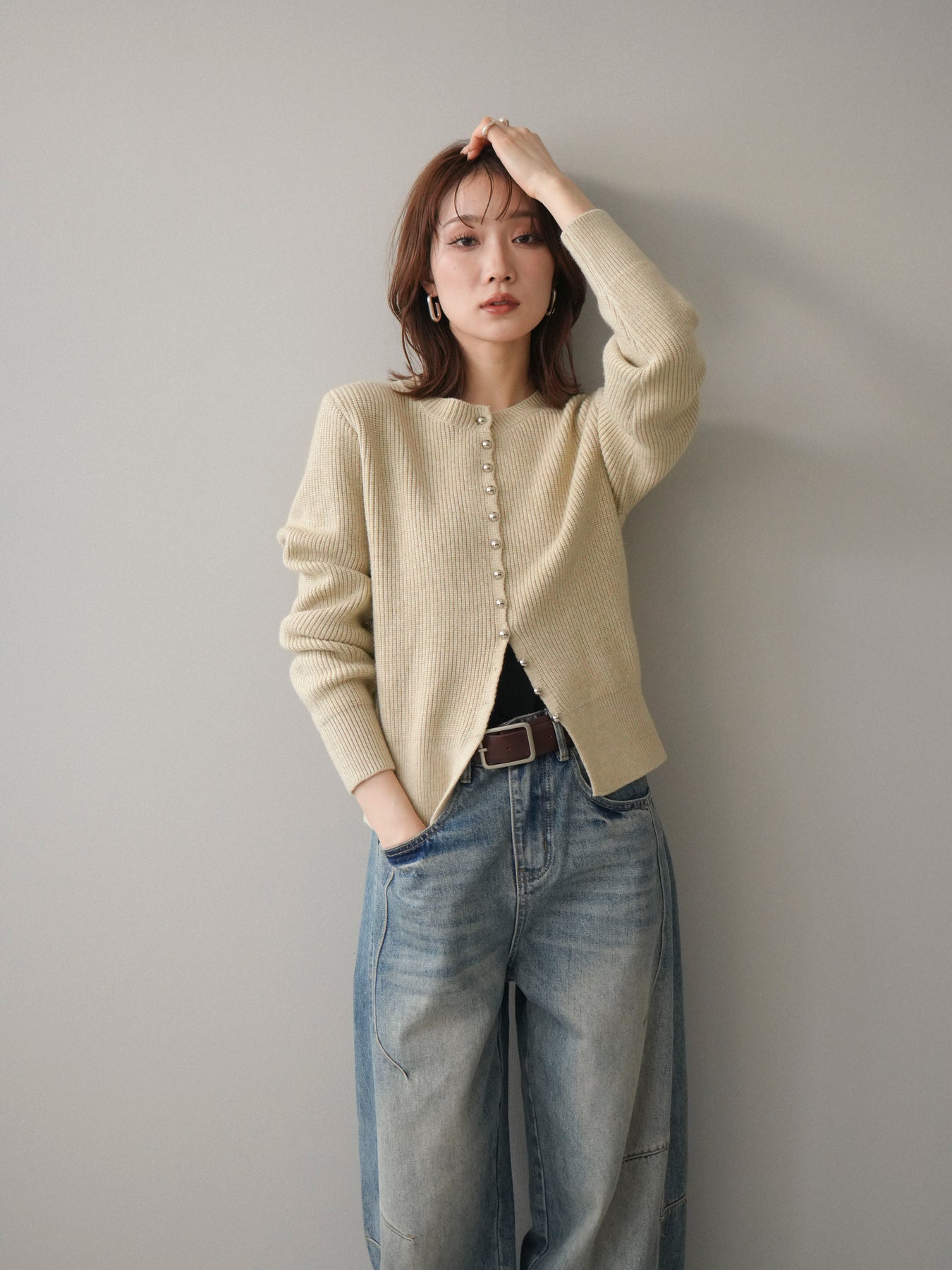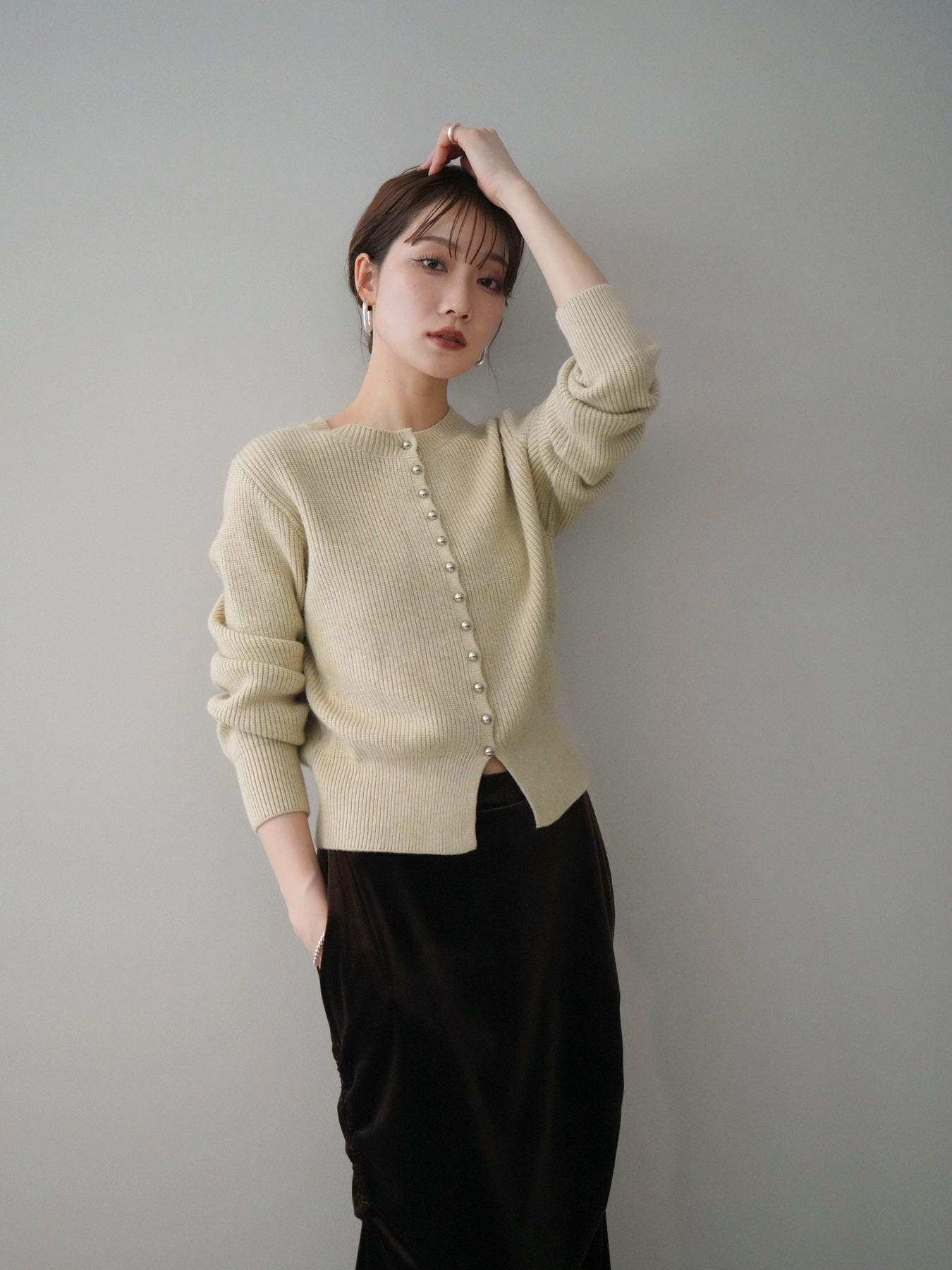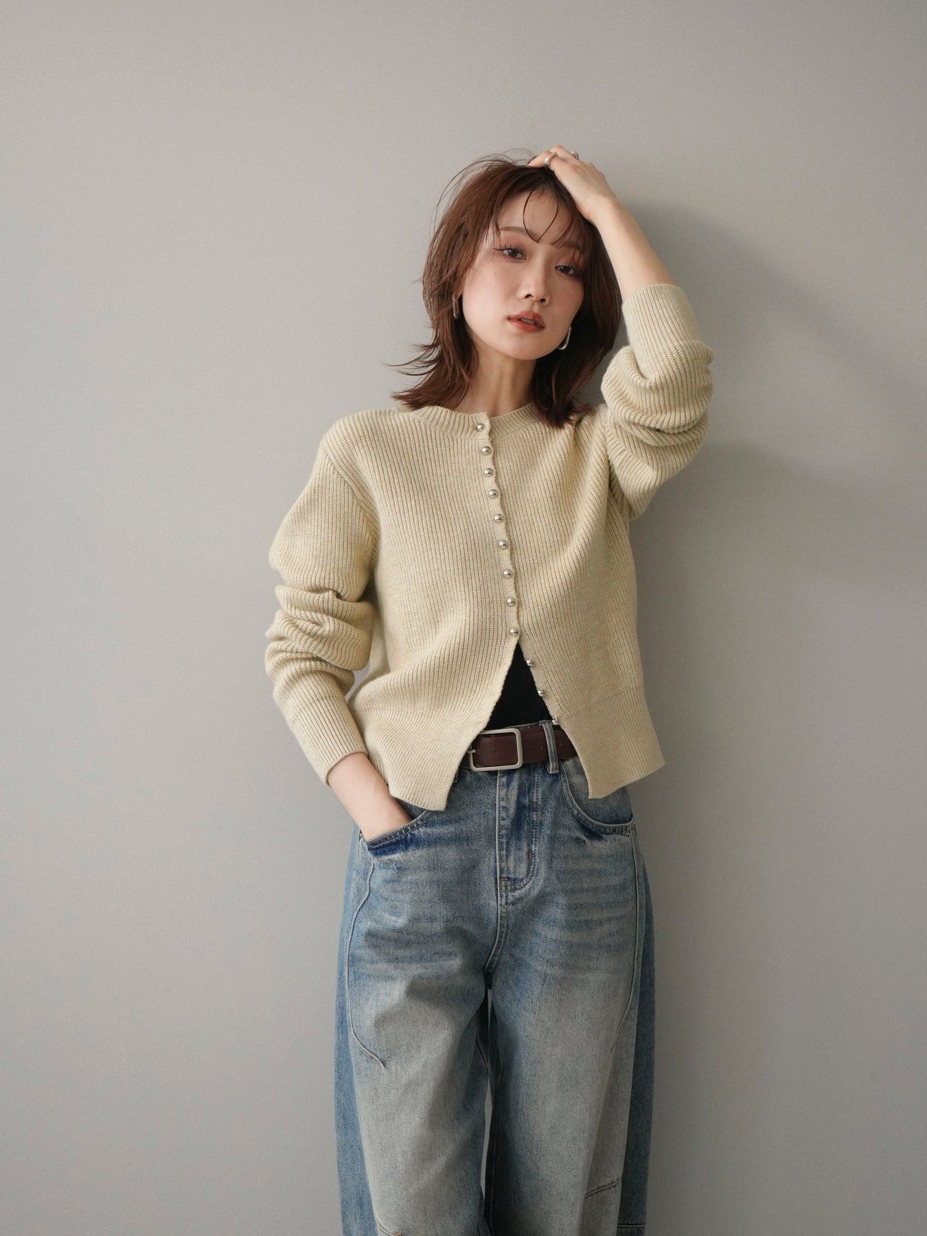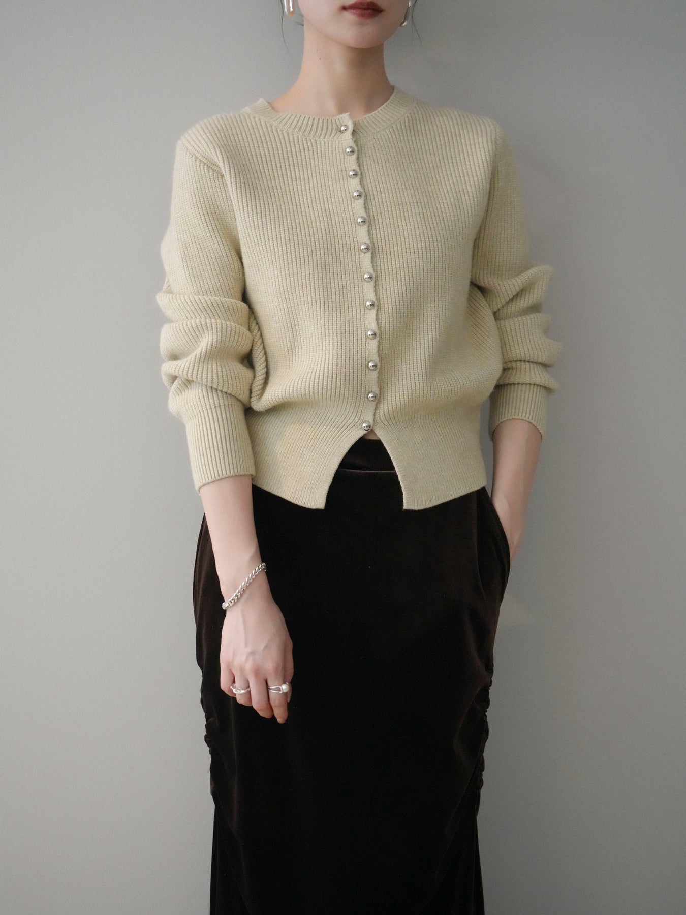 [予約]シルバーボタン畦編みニットカーディガン/ivory