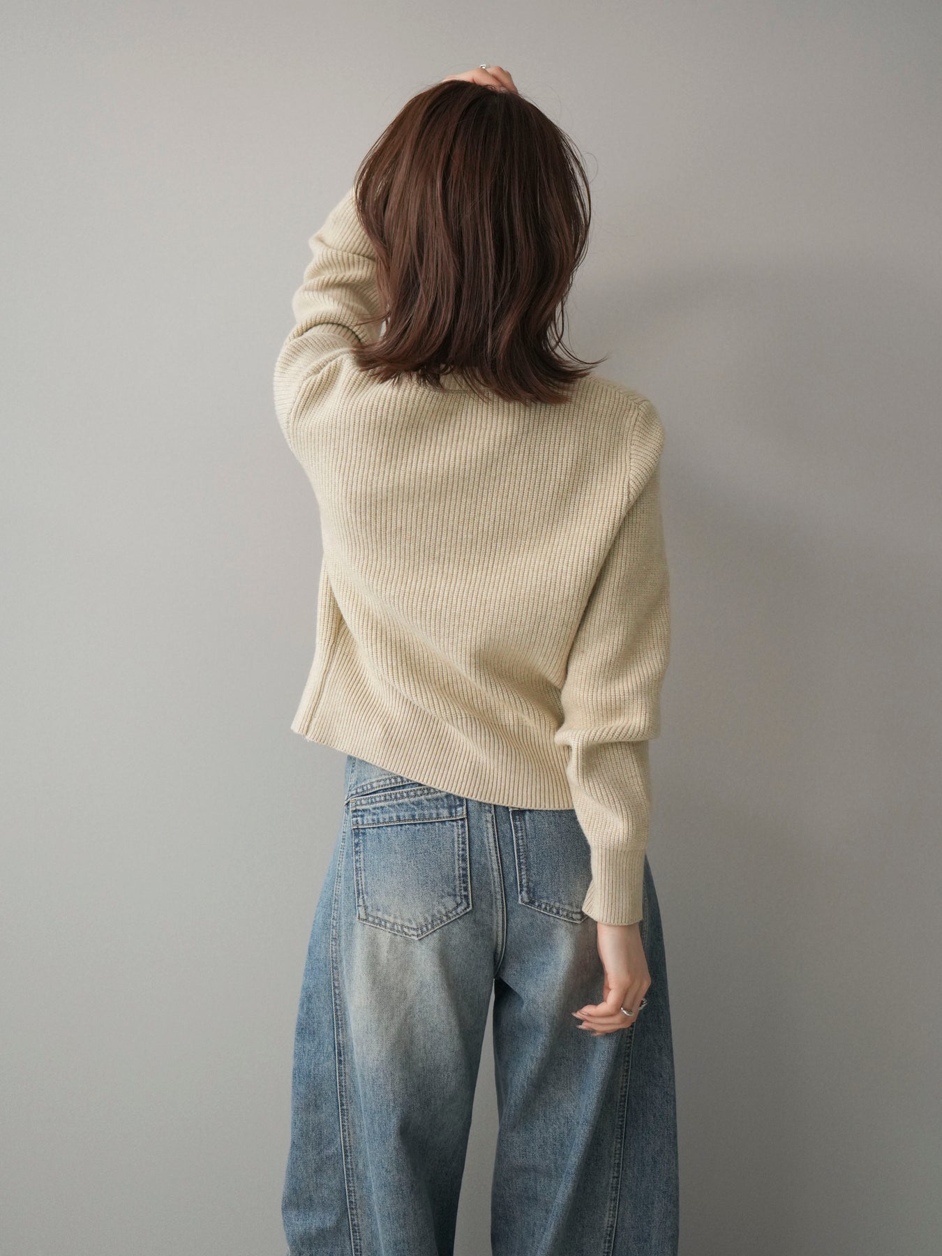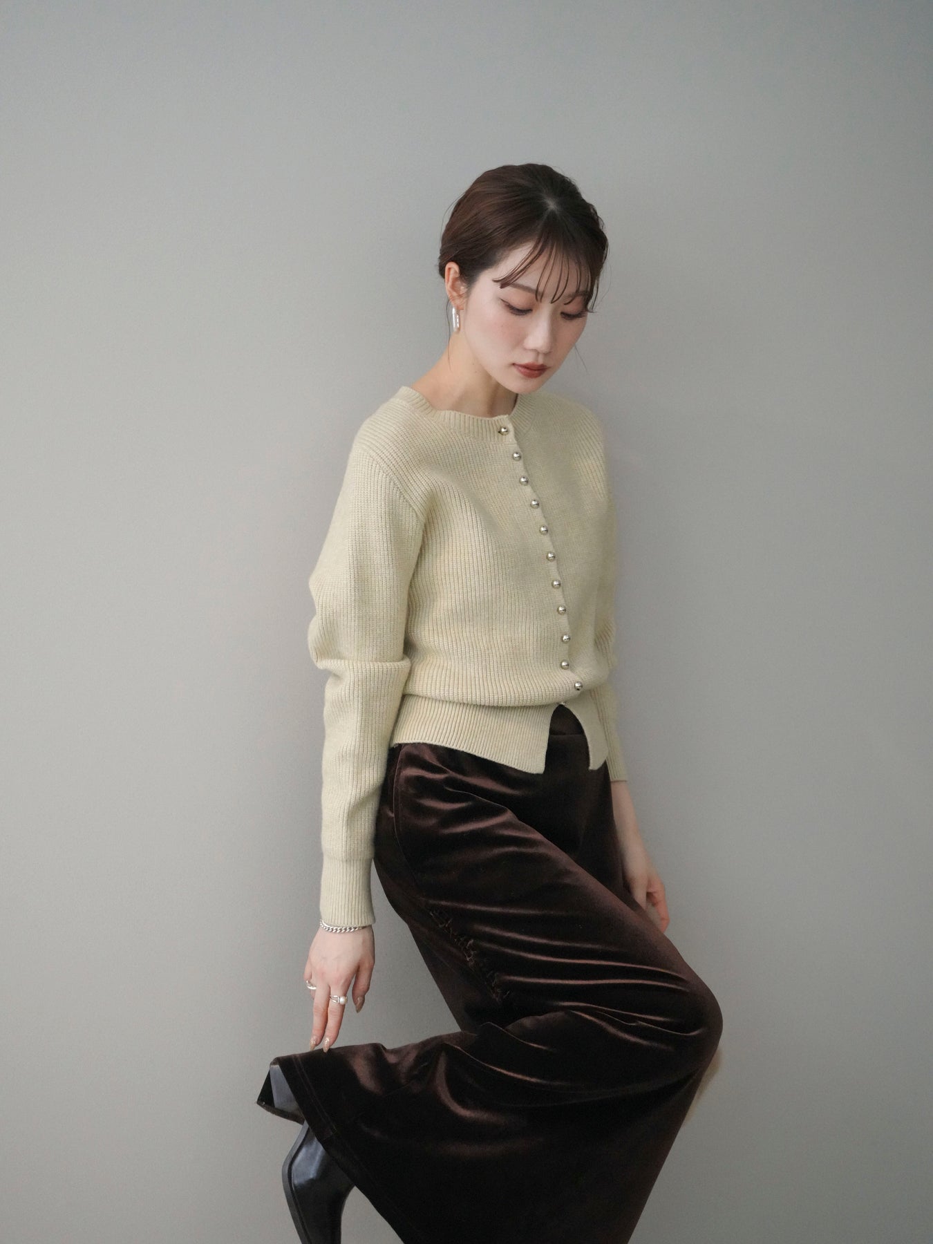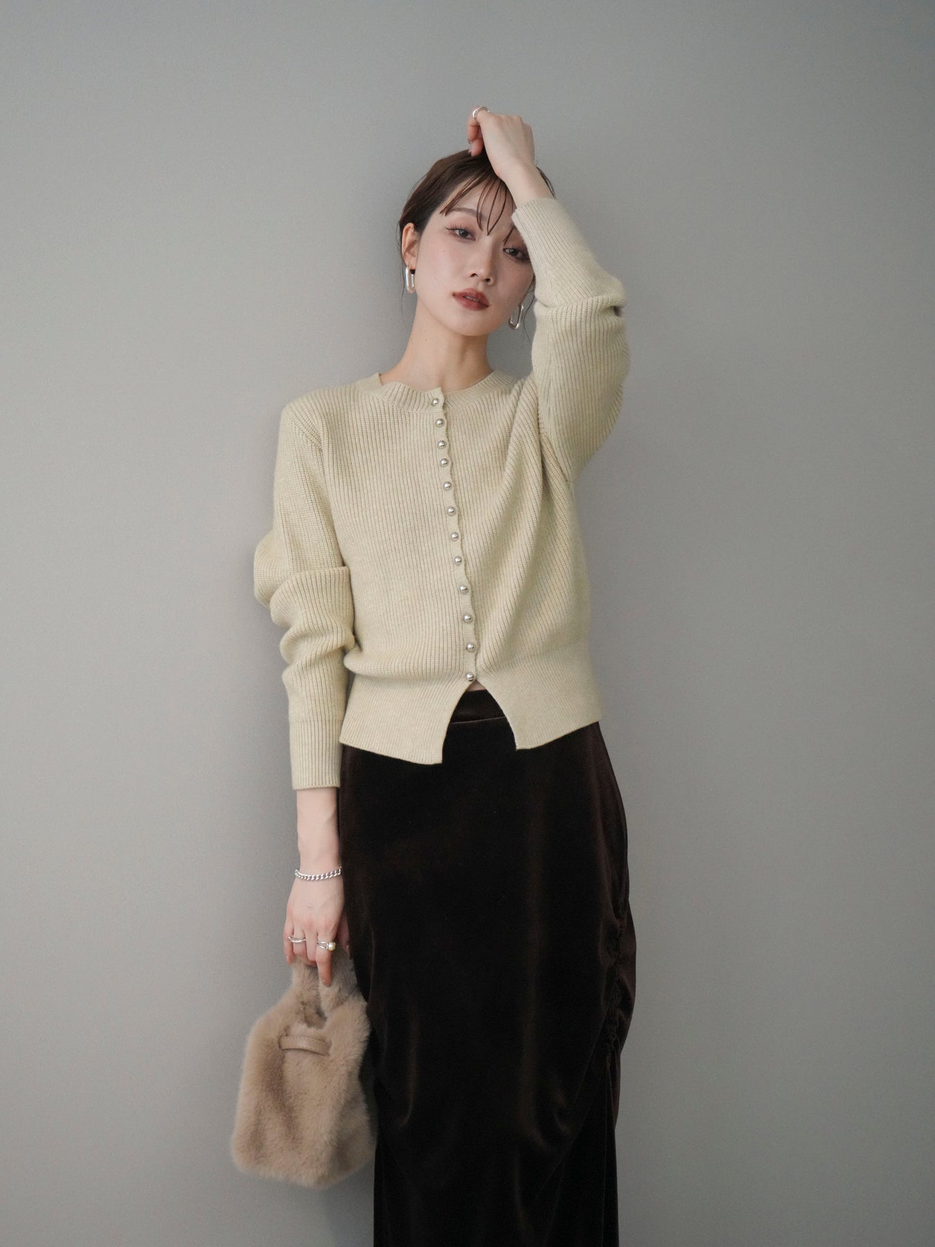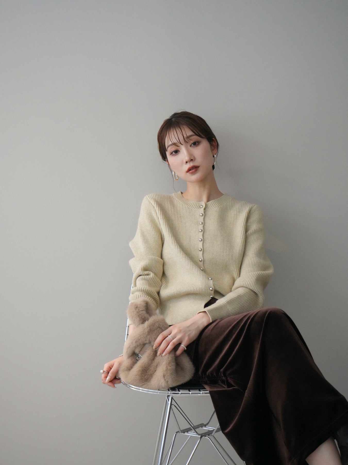 [予約]シルバーボタン畦編みニットカーディガン/ivory